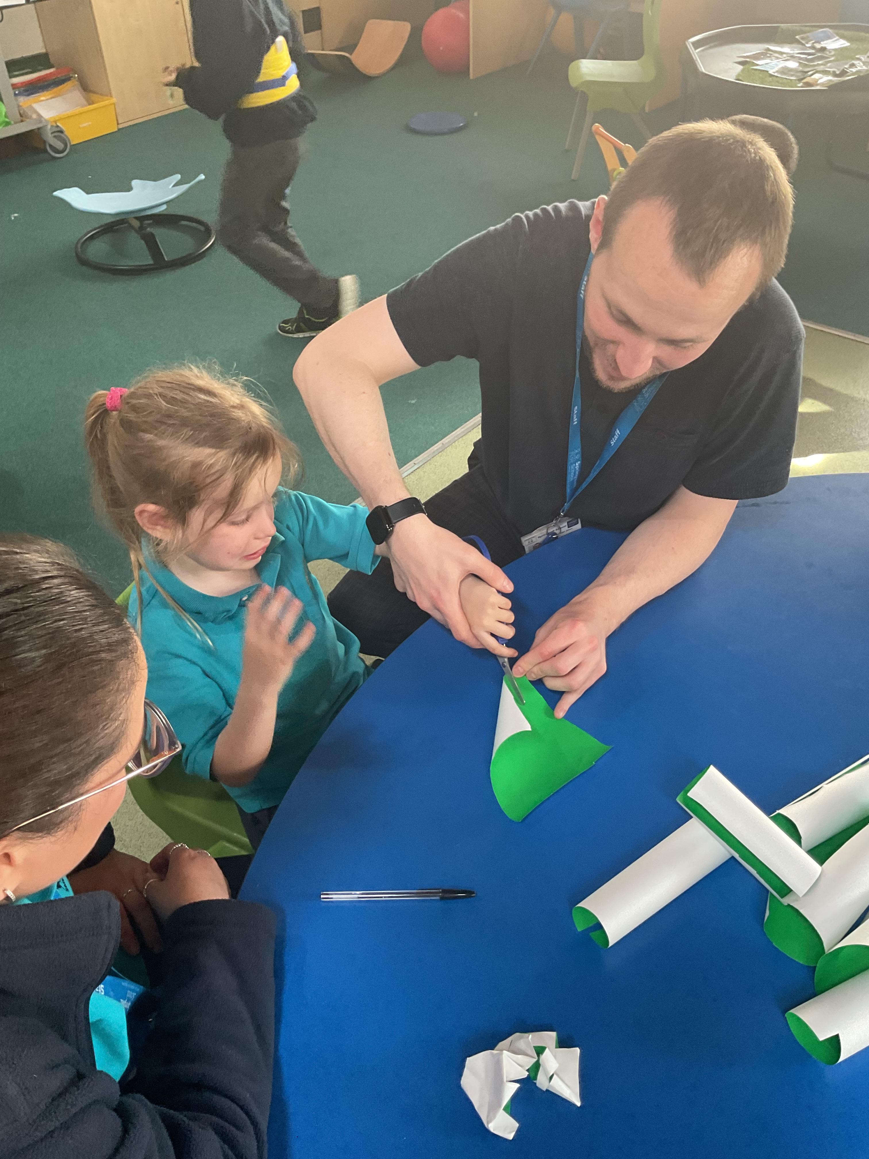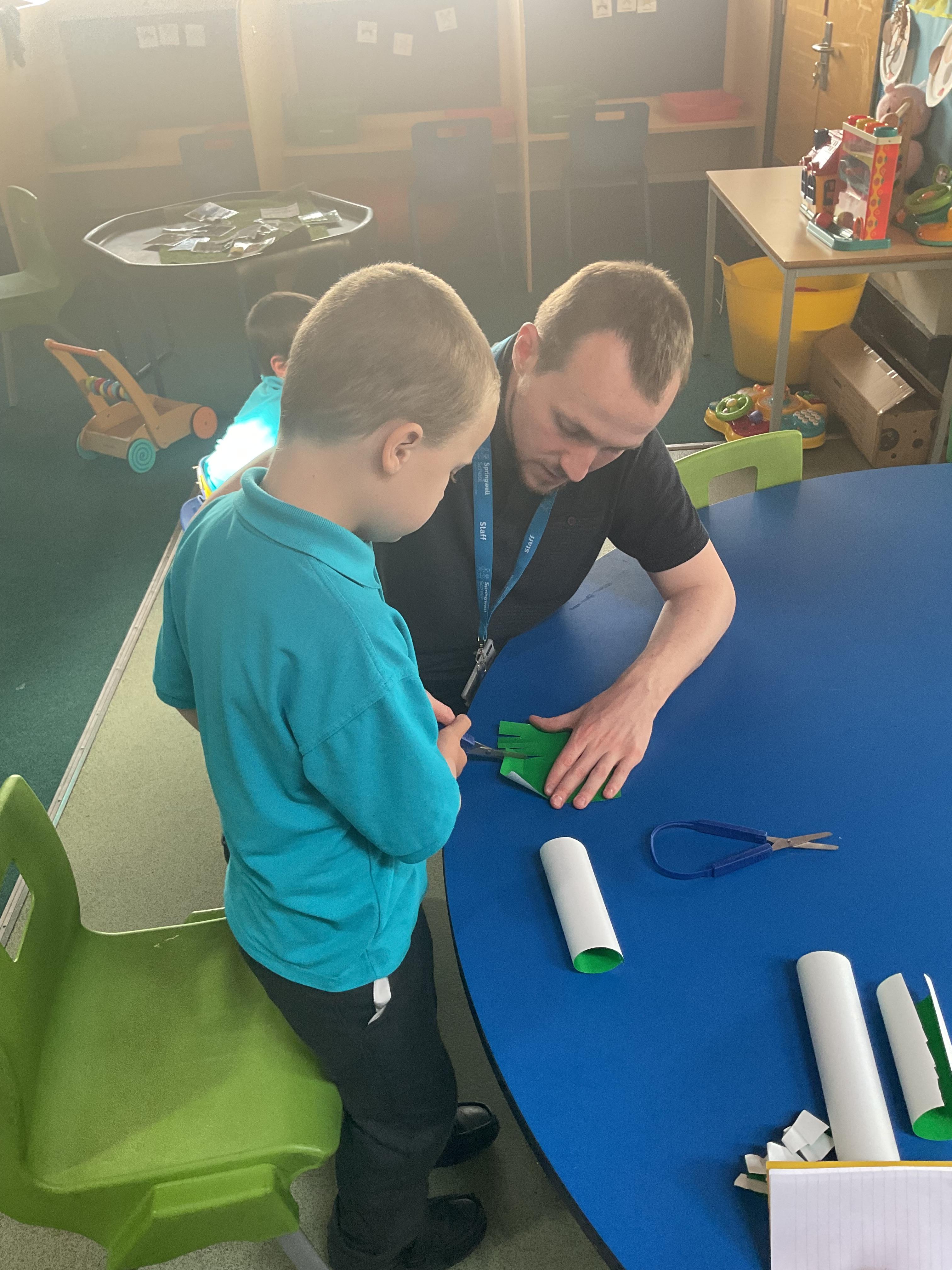 30.4.25 - Welcome back Toucans! Our class story this week is We're Going on a Bear Hunt! Children listened to the story and then made some long swishy-swashy grass using some training scissors. Well done Toucans! Great cutting skills!