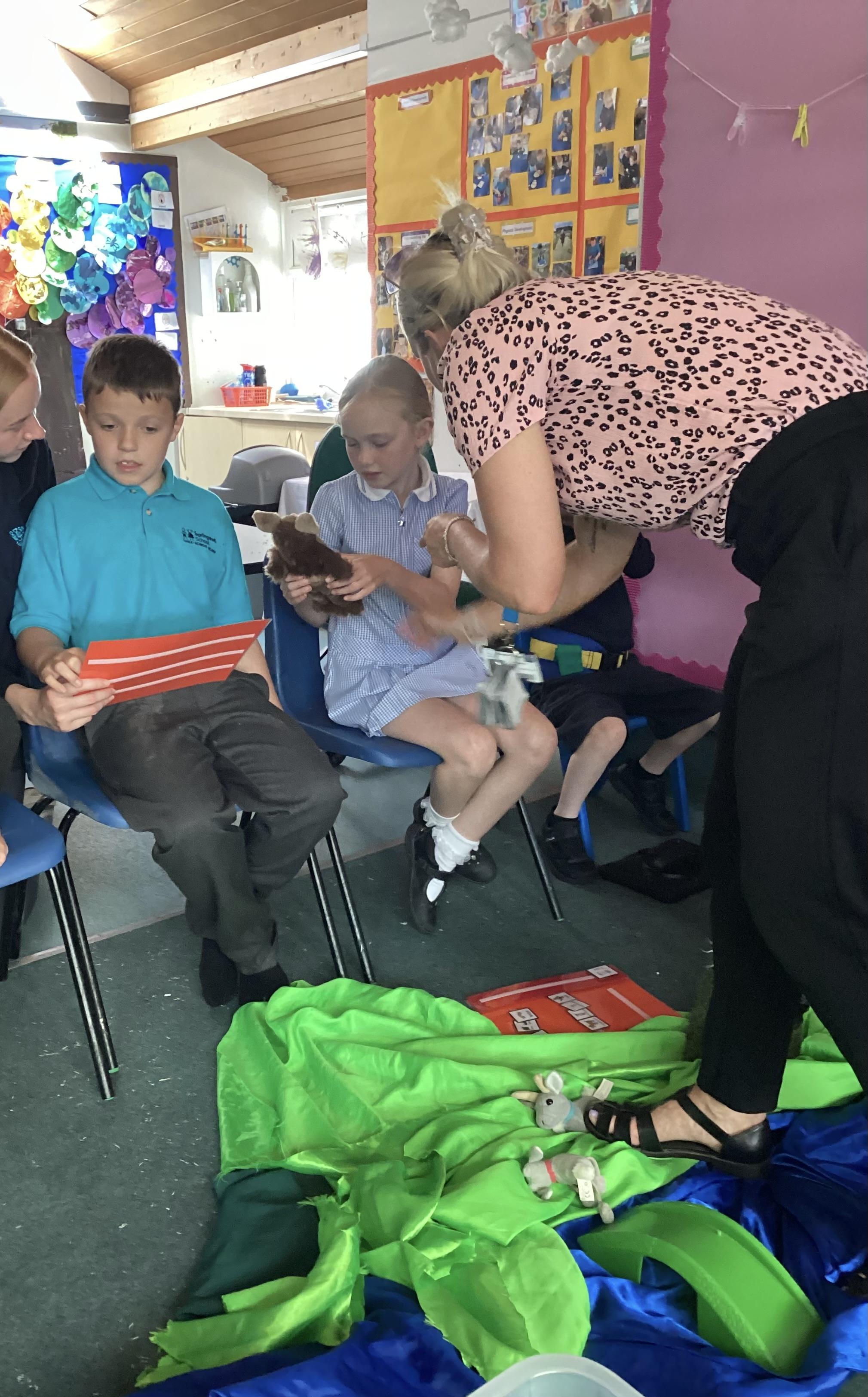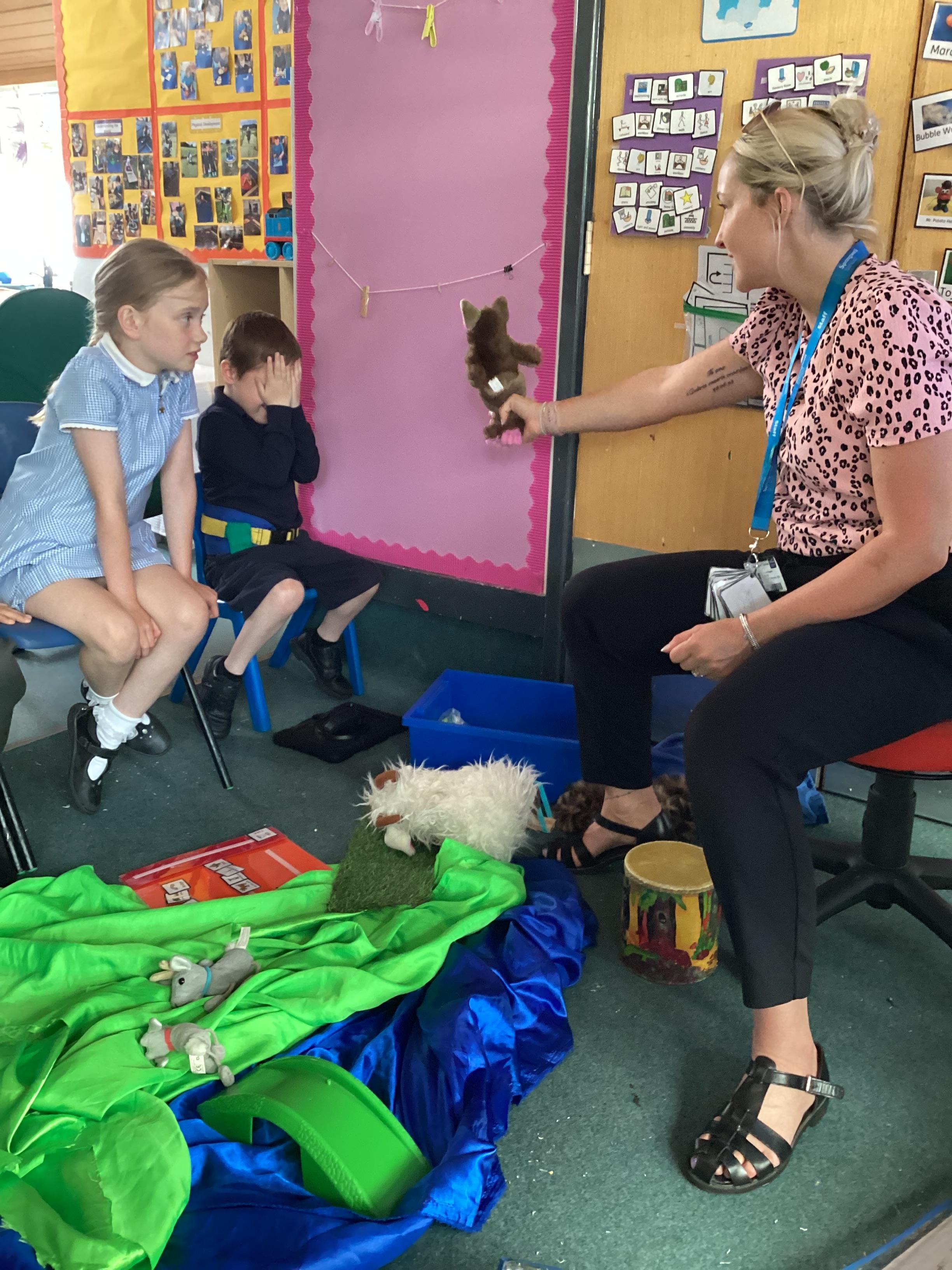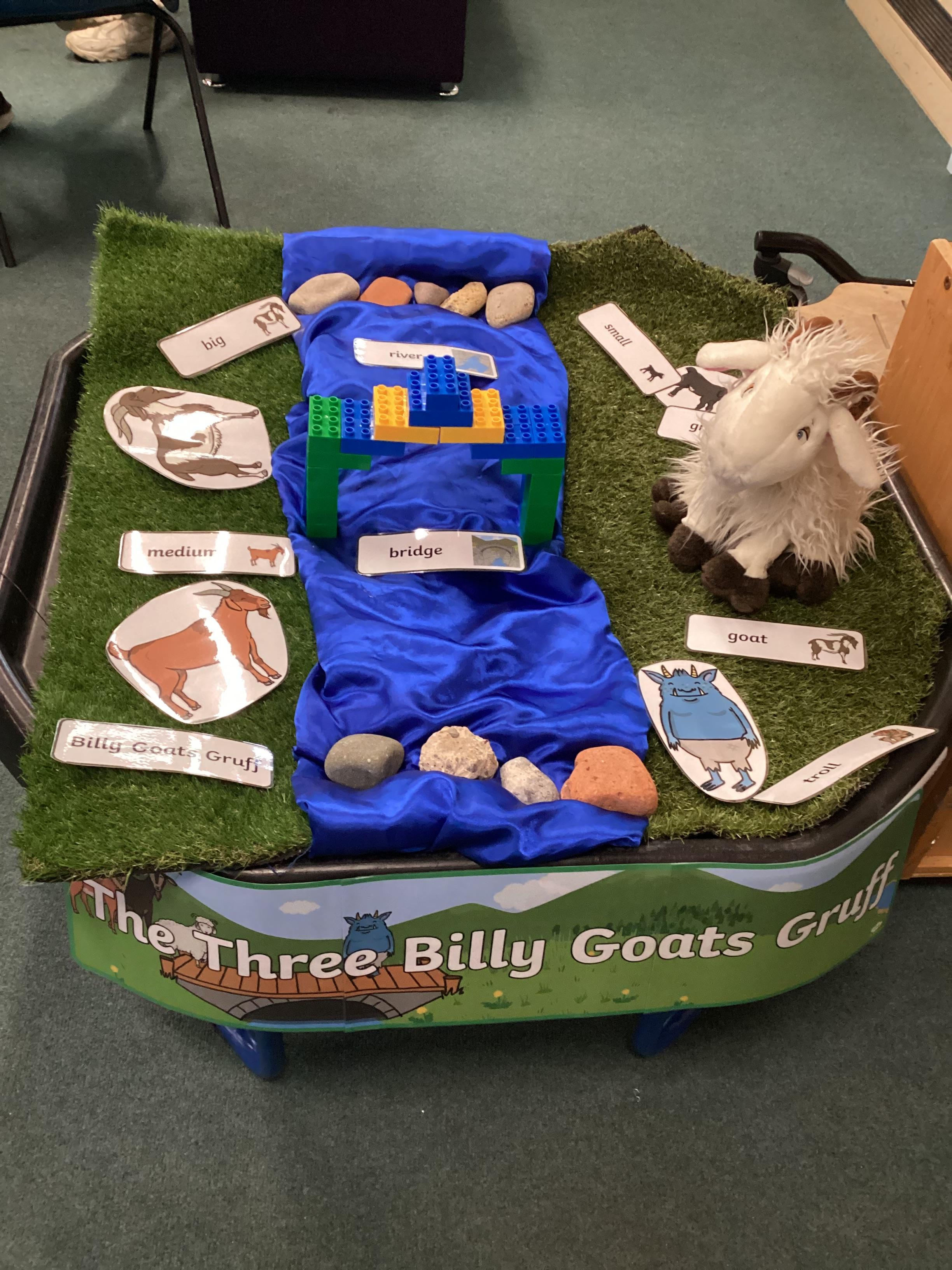 3.7.25- Communication & Interaction- Llamas enjoyed listening to and exploring the sensory props for our story 'The Three Billy Goats Gruff'