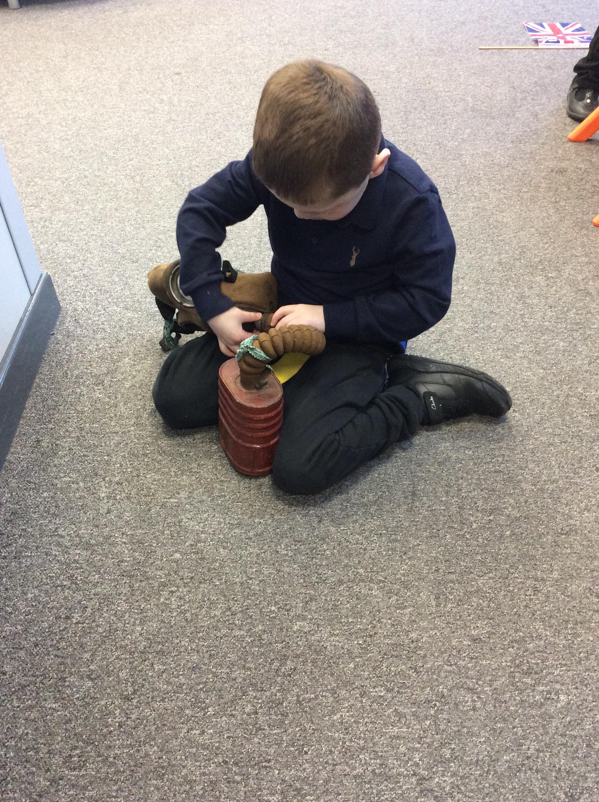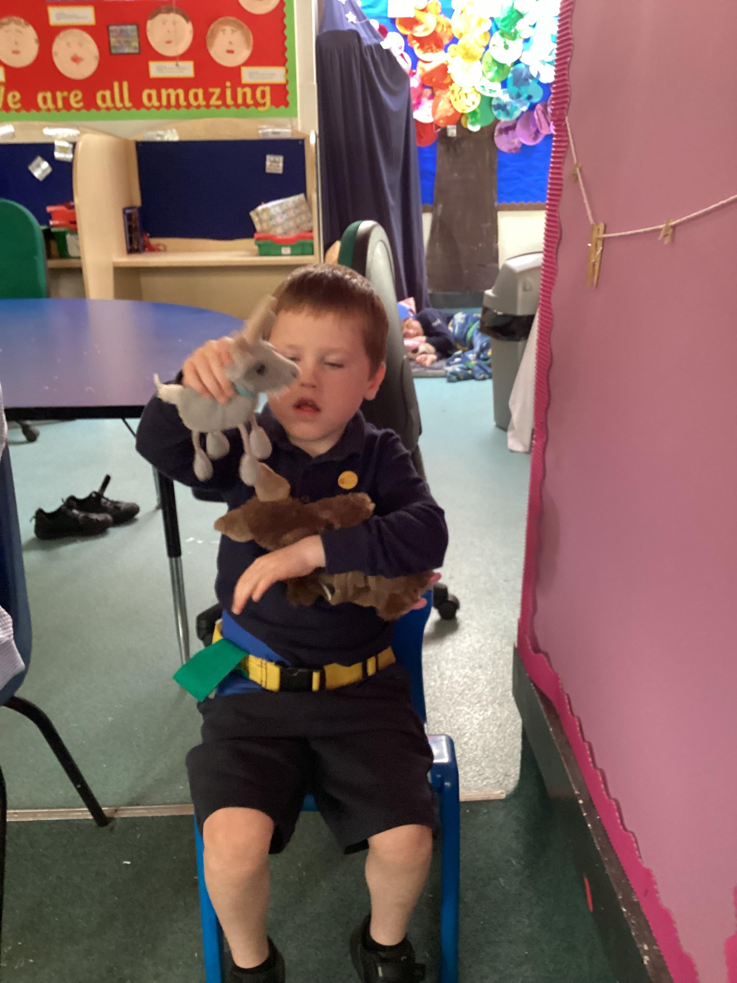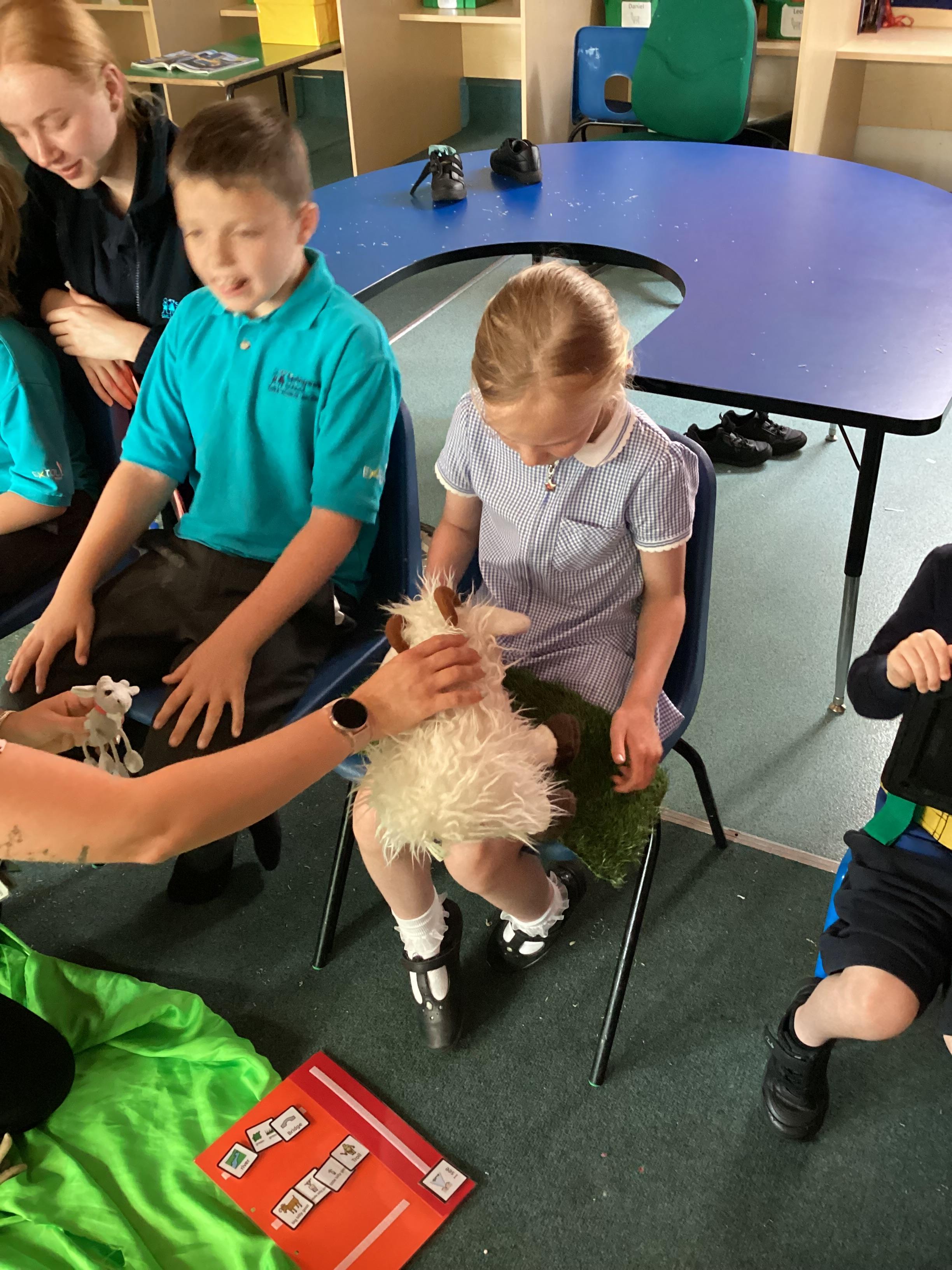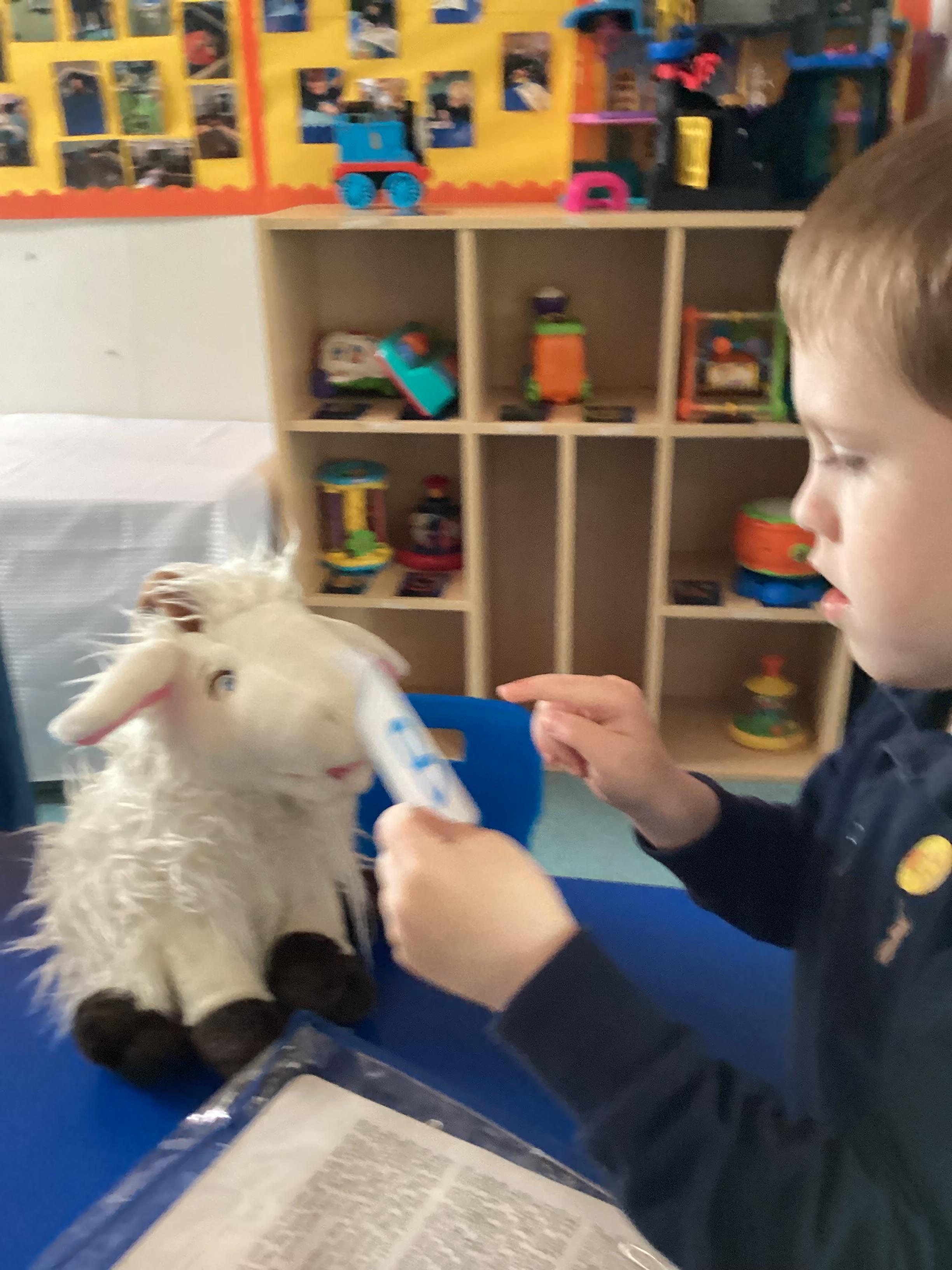 3.7.25- Communication & Interaction- Llamas enjoyed listening to and exploring the sensory props for our story 'The Three Billy Goats Gruff'