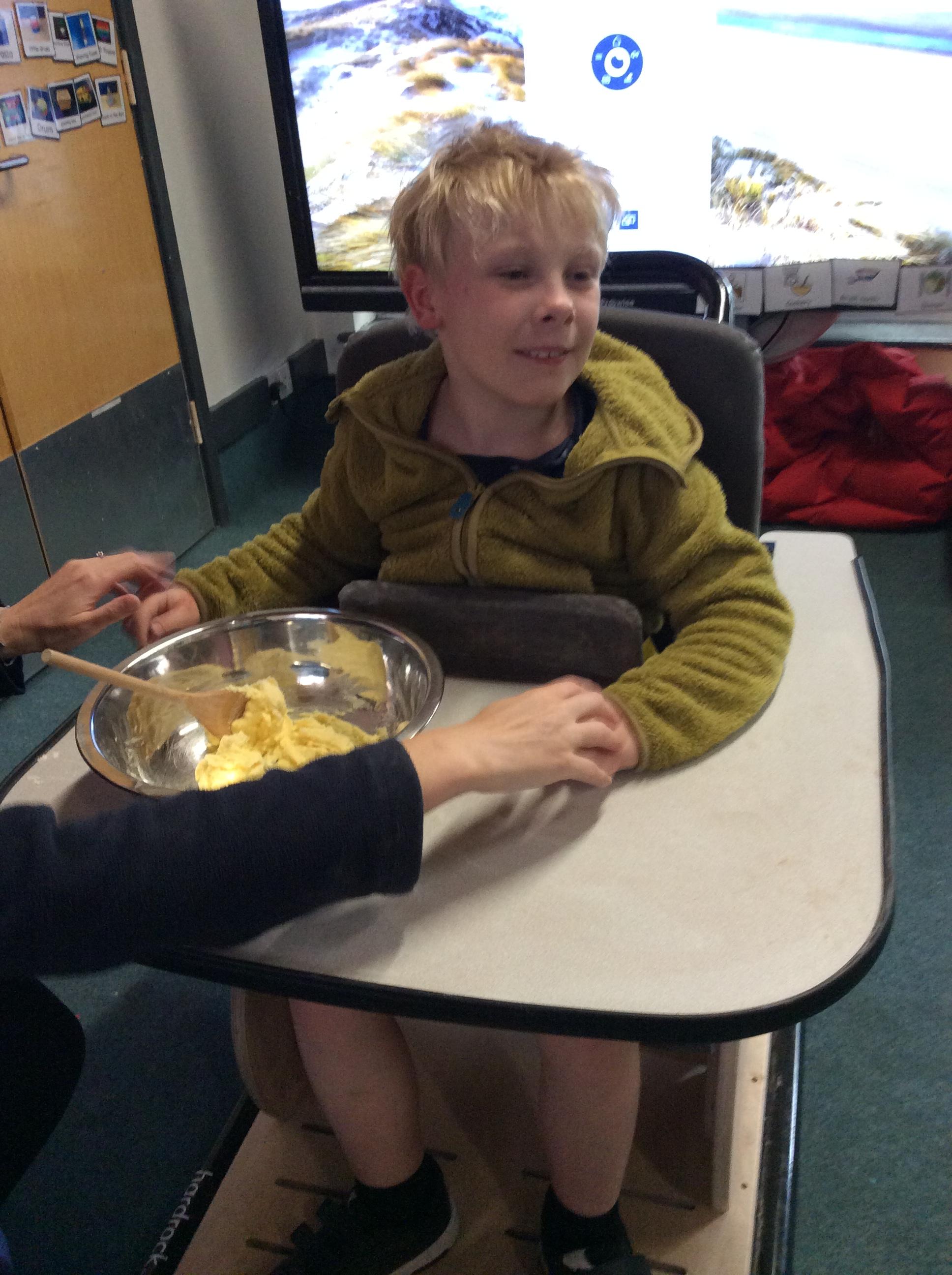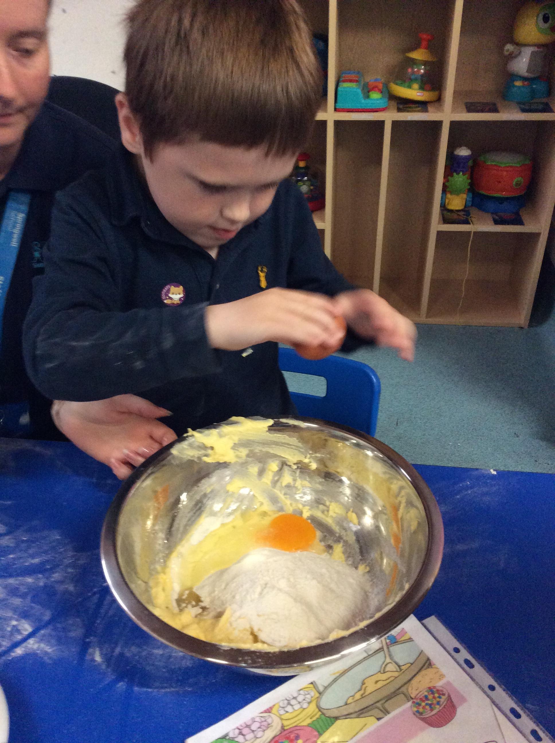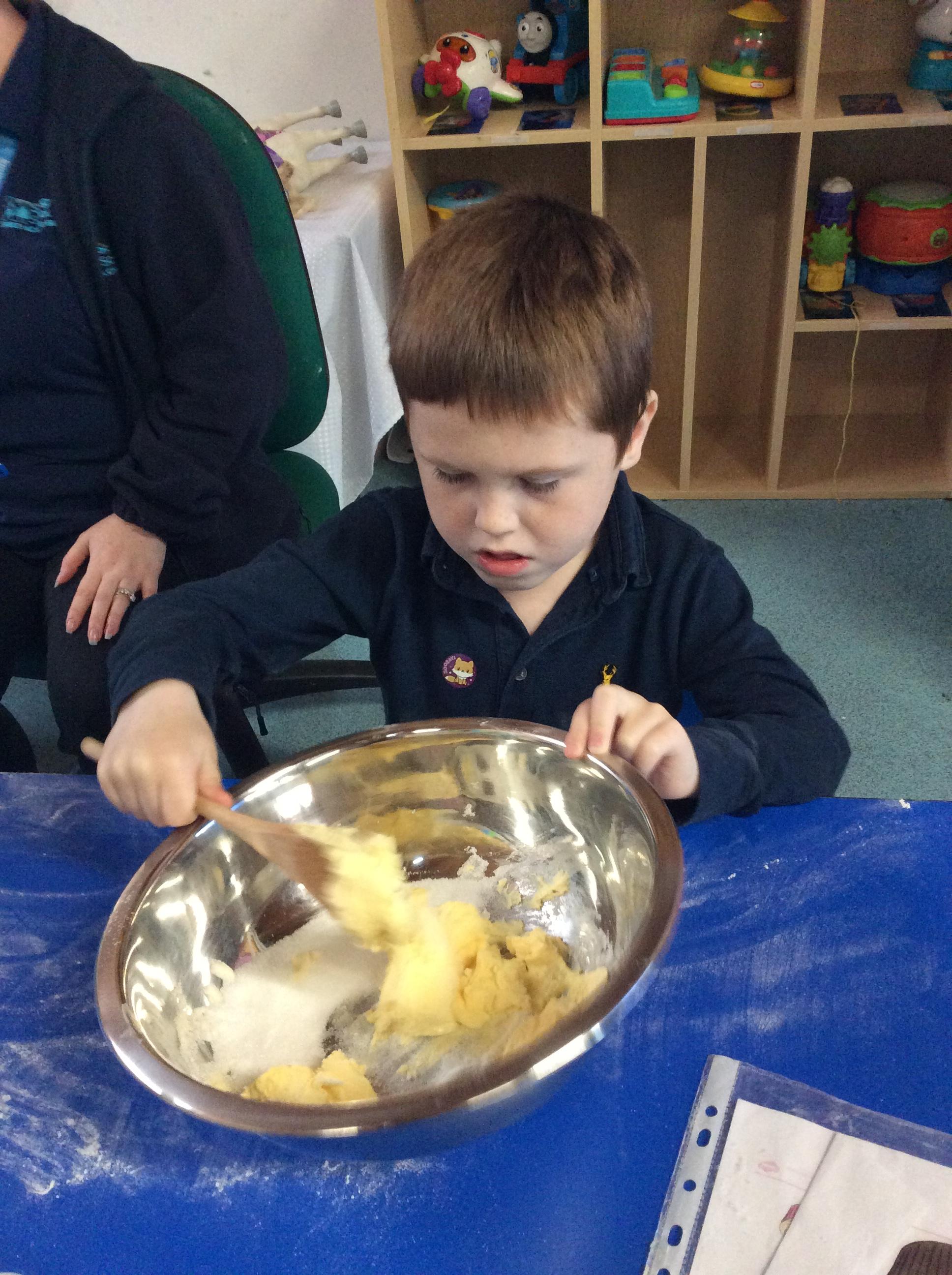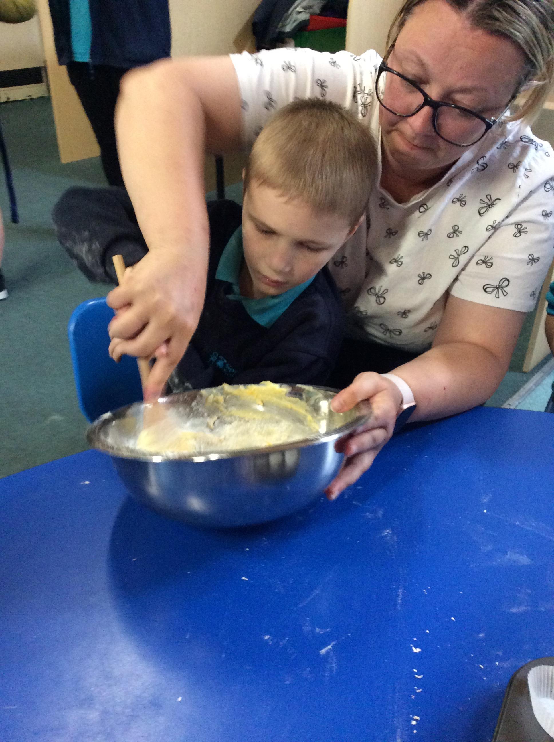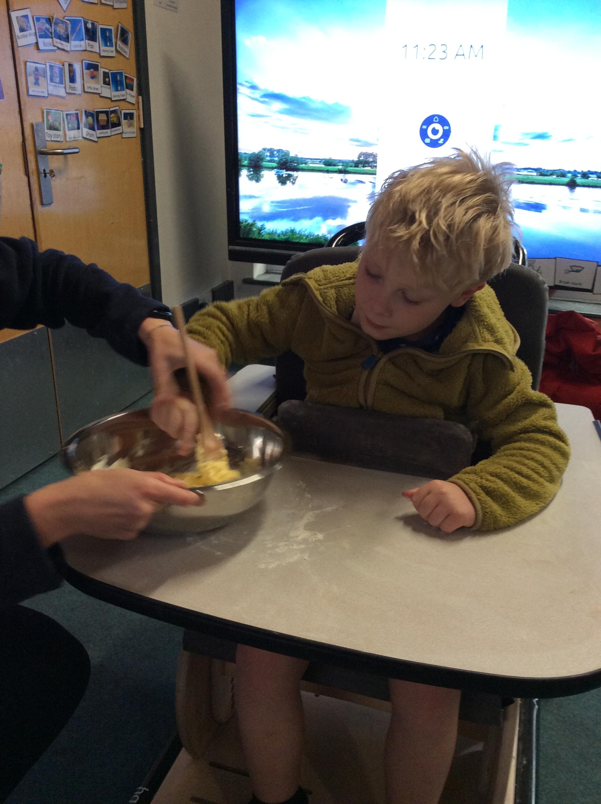 7.7.25- Cookery- Today we made fairy cakes. We practised our turn taking skills and waited our turn to mix the ingredients.