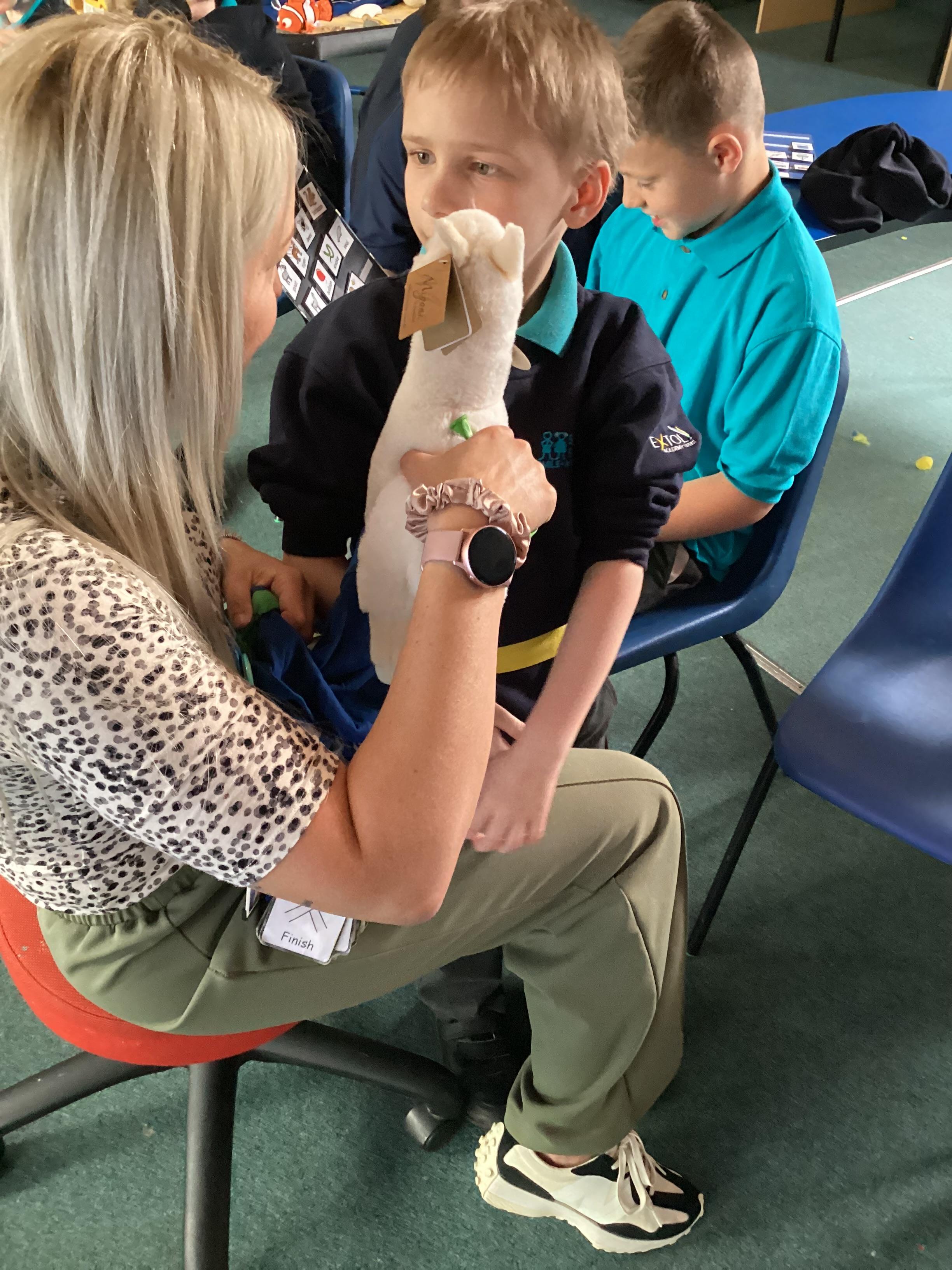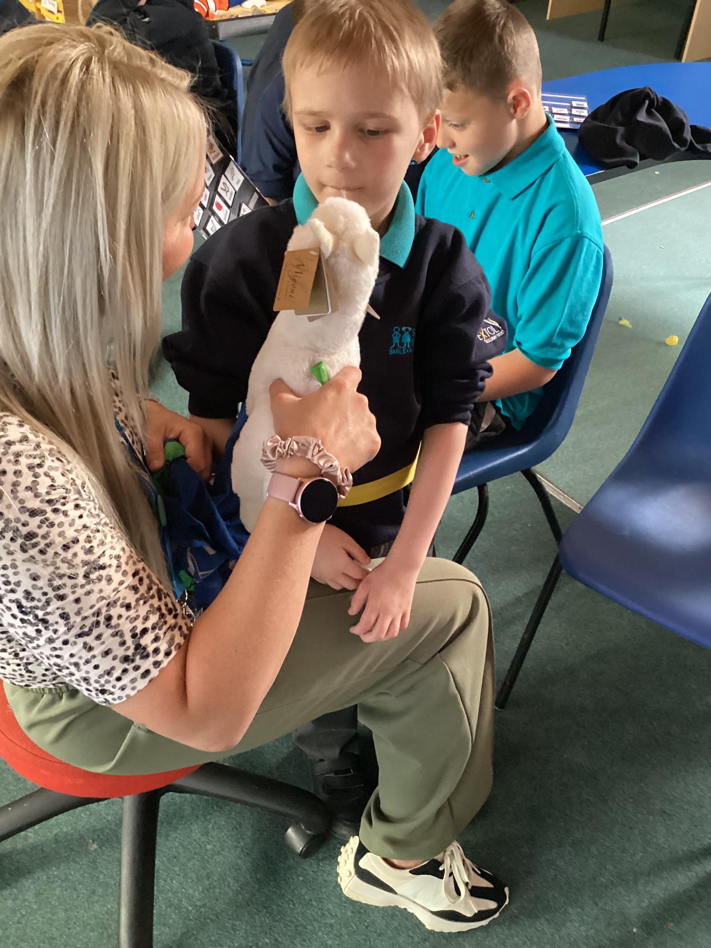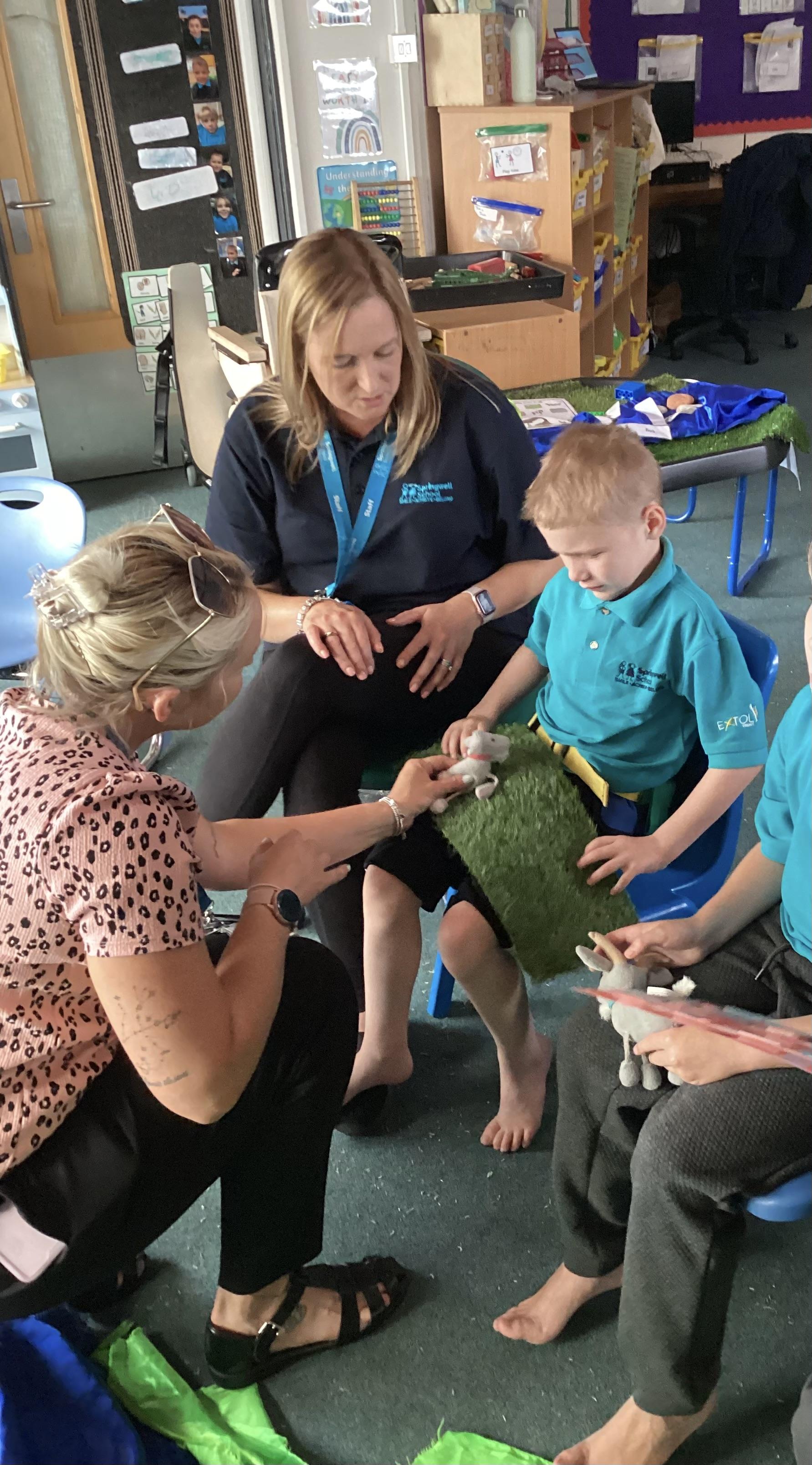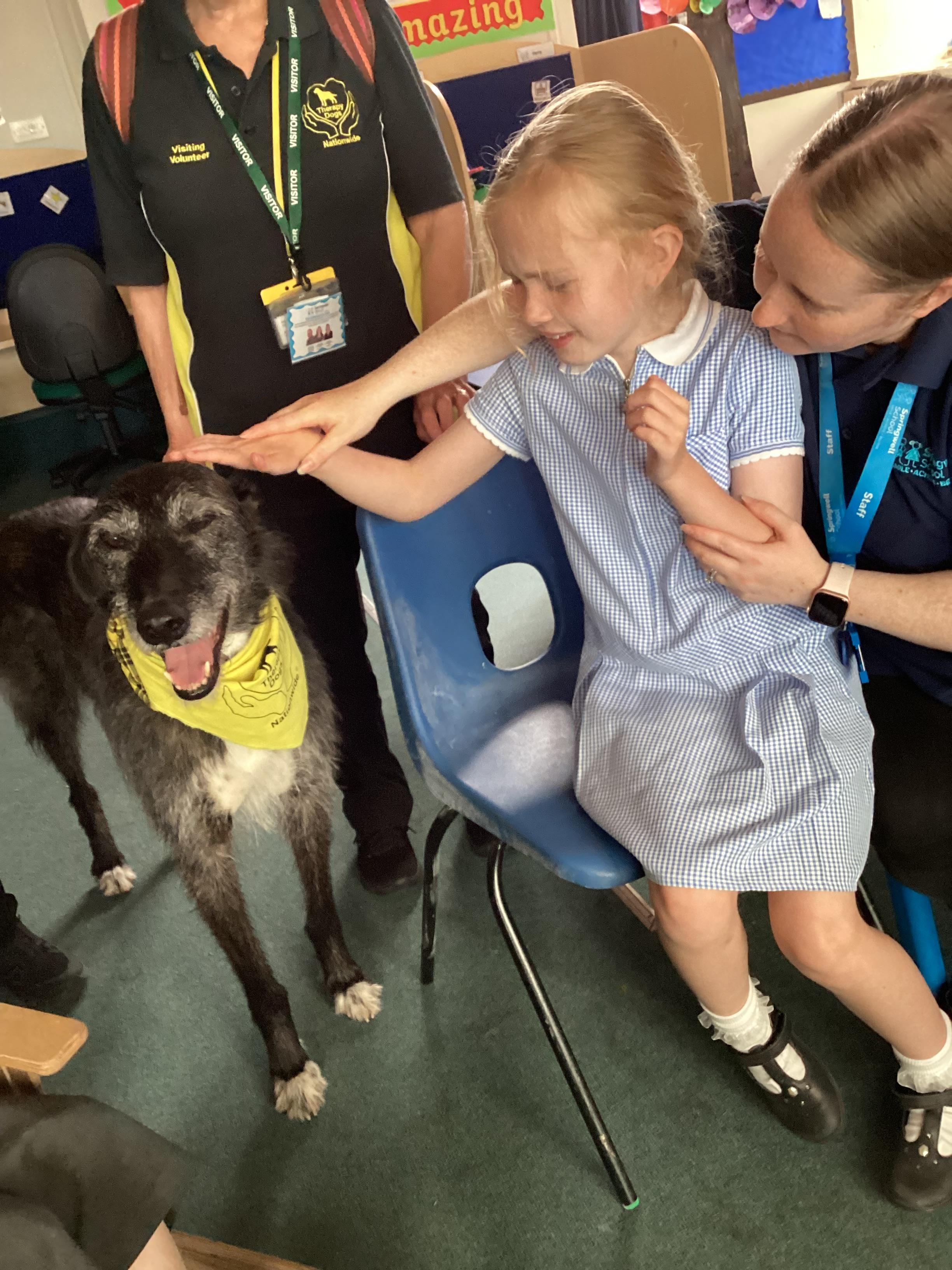 2.7.25- PSHRE- Today we had a visit from Ronnie our 'Pets at Therapy' dog. Llamas enjoyed this social experience and interacting with the dog, stroking and patting him.