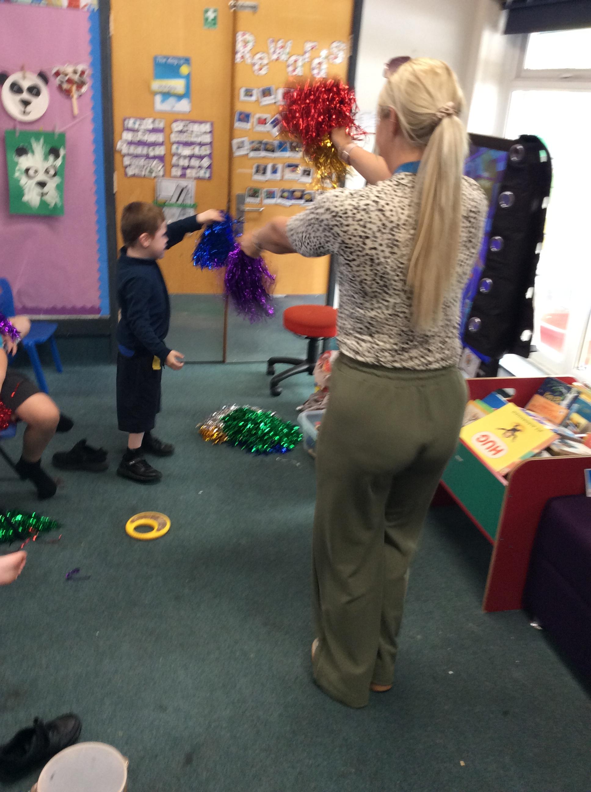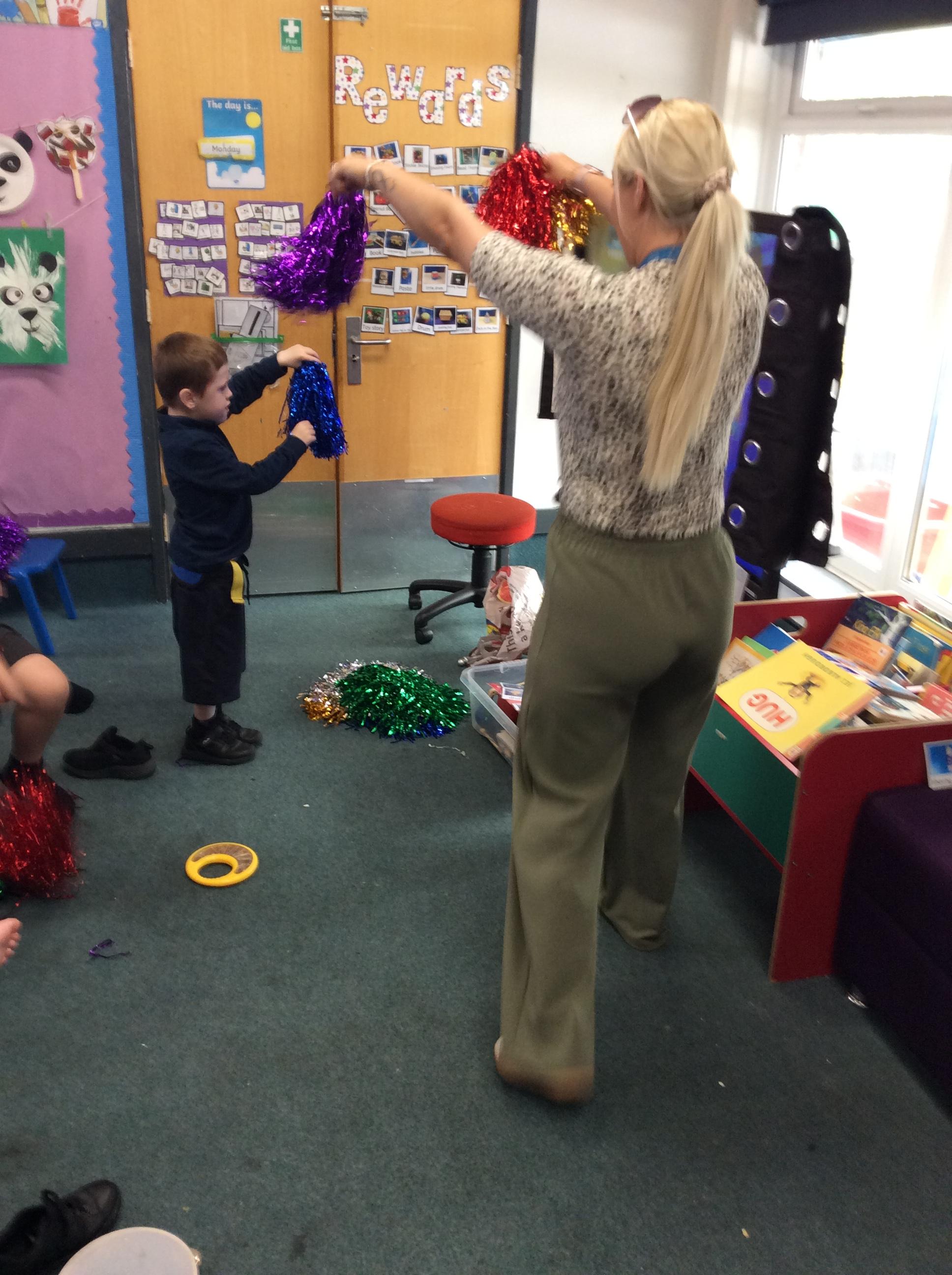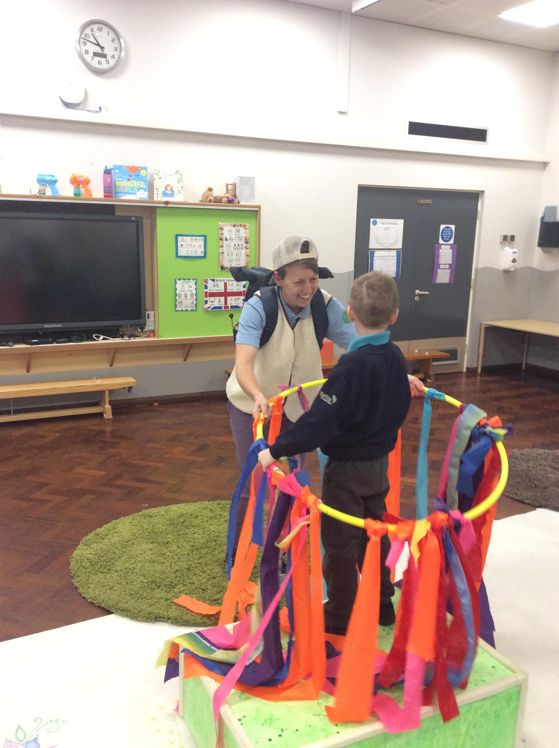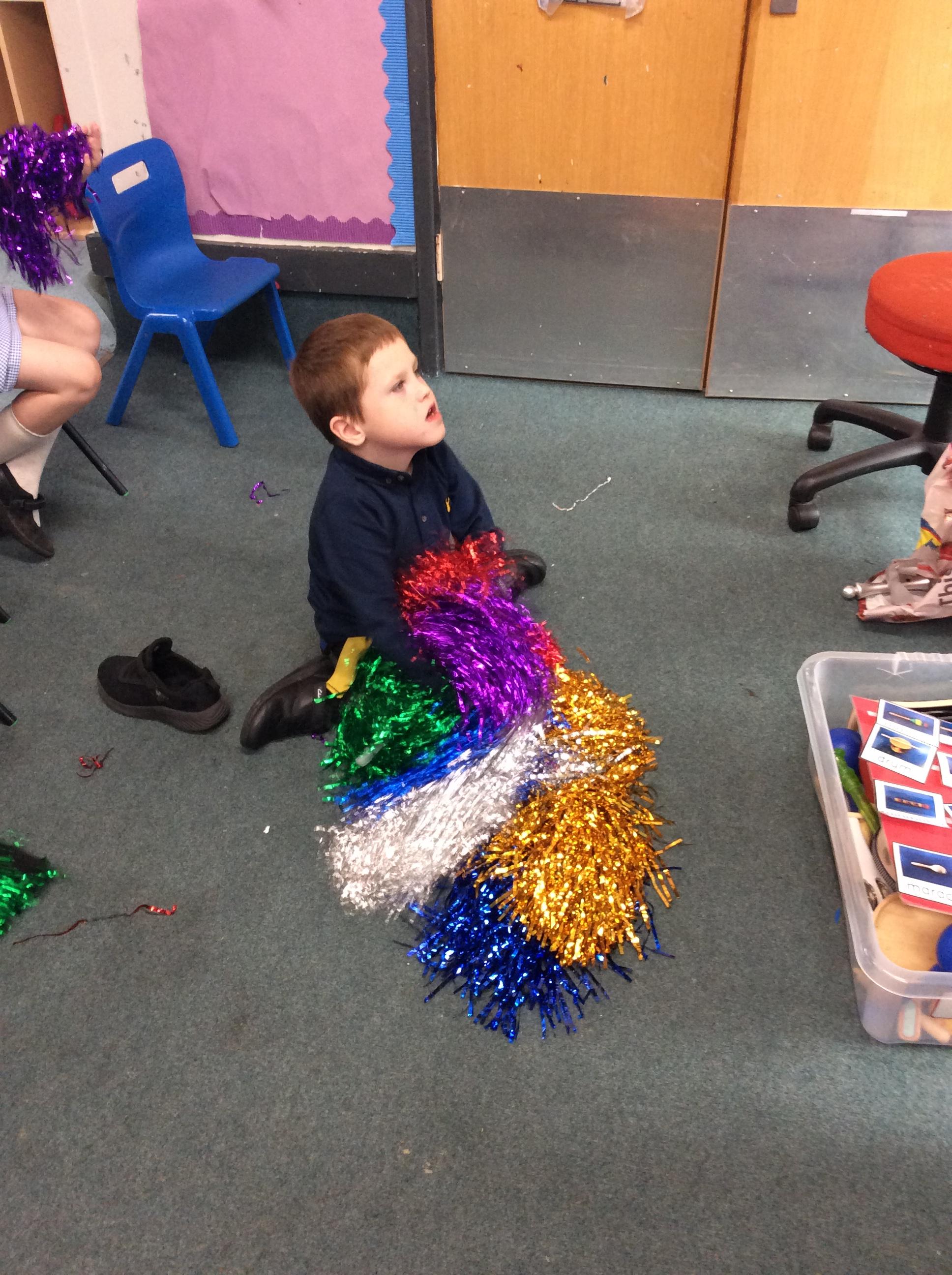 8.5.25- Communication & Language/PSHRE- Today we engaged in a production from Timbadash and loved joining in with the different sensory elements, songs and interacting with the props and eachother.
