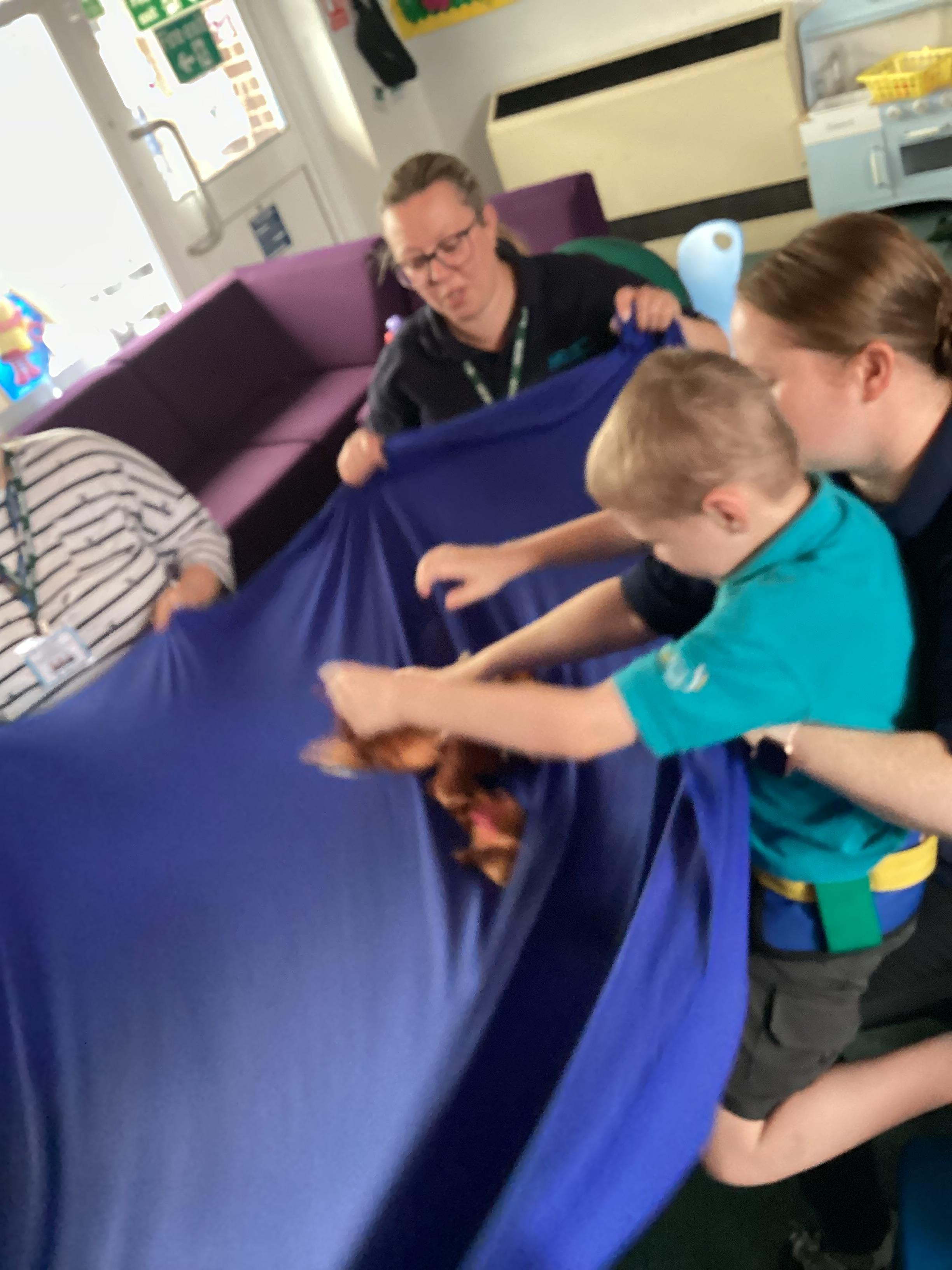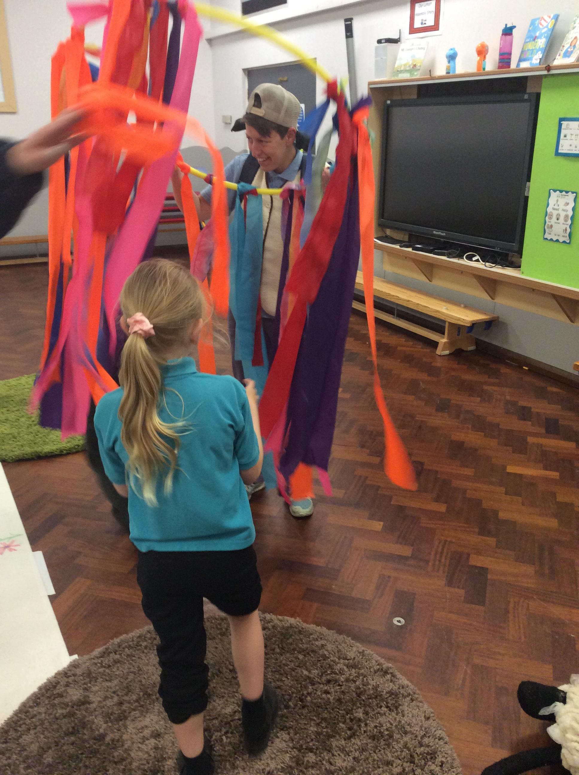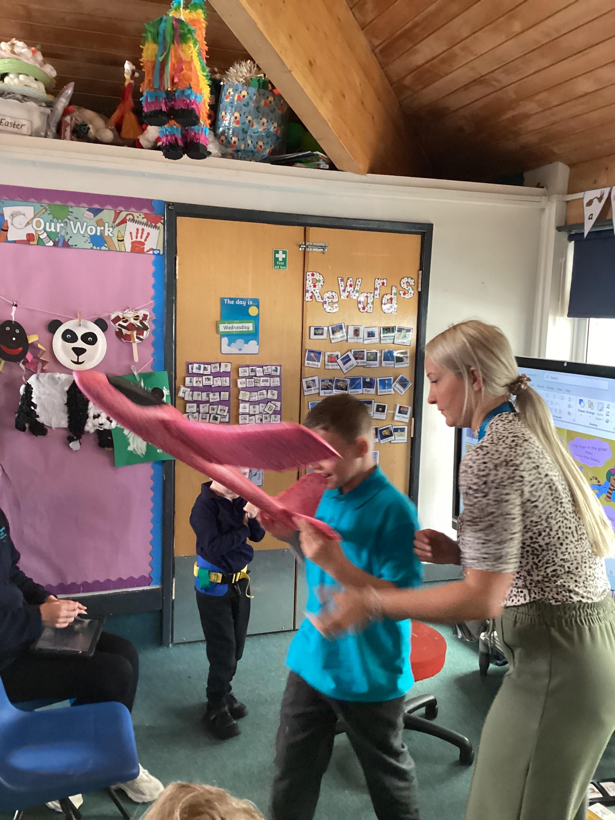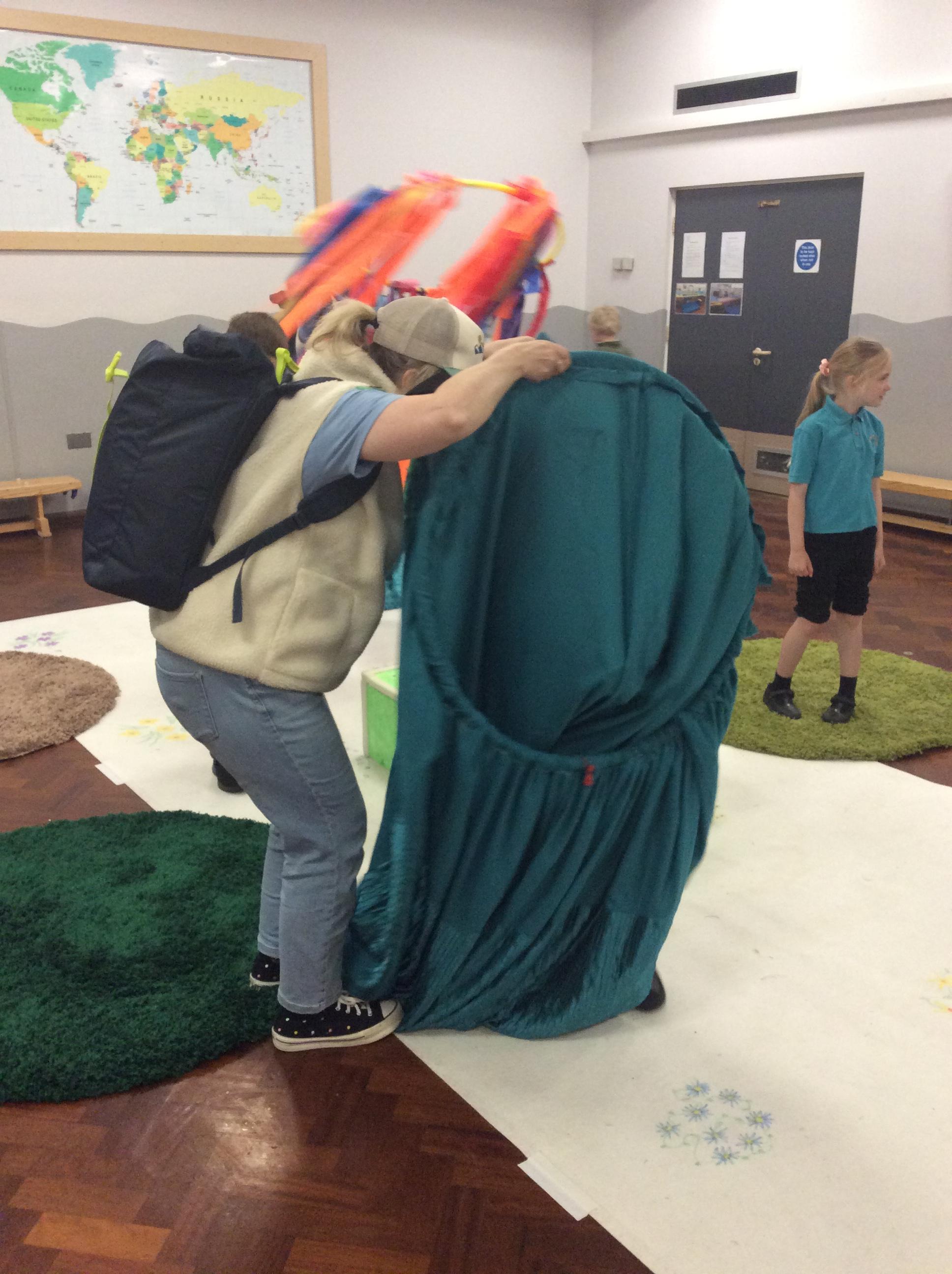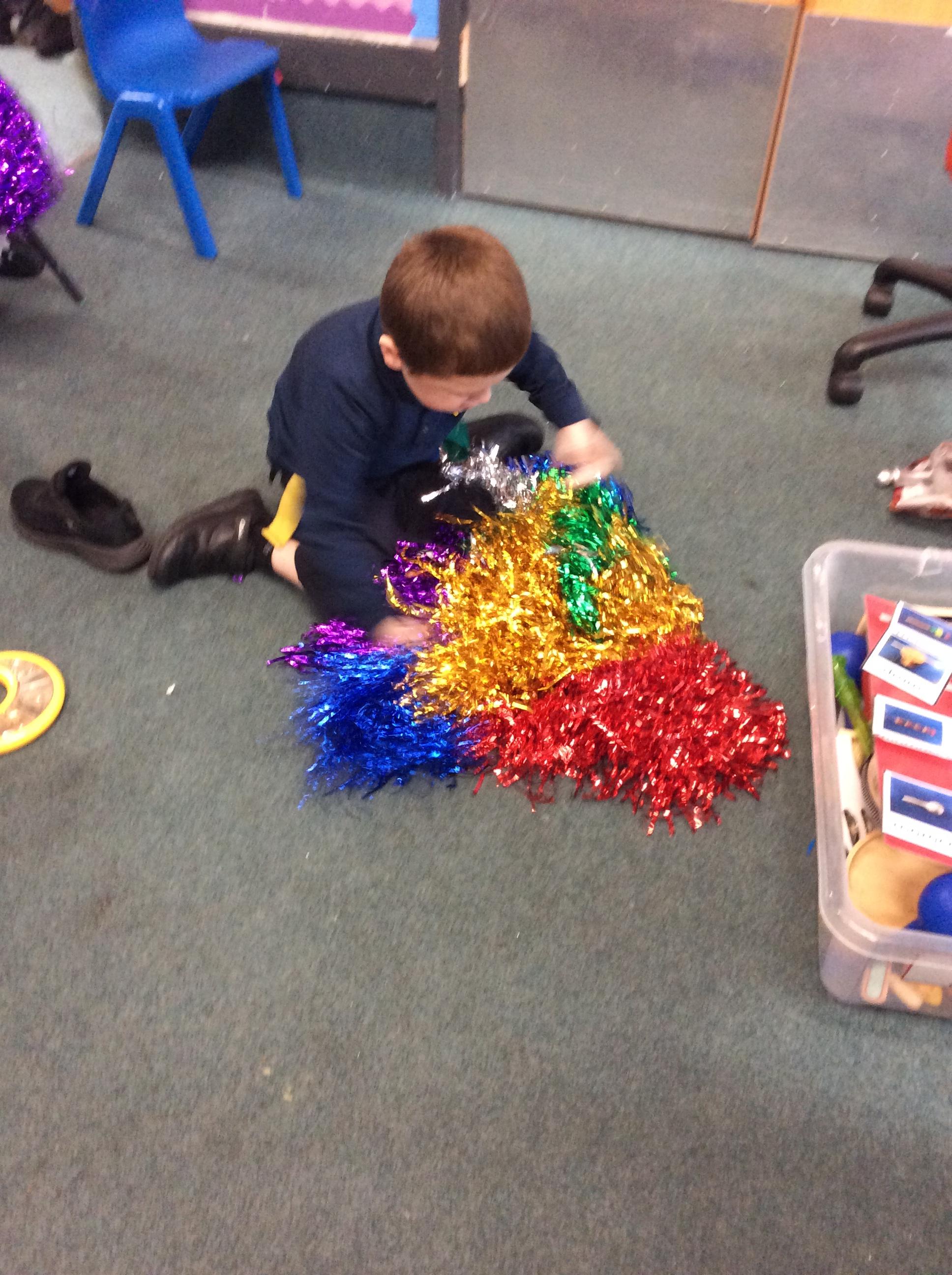 8.5.25- Communication & Language/PSHRE- Today we engaged in a production from Timbadash and loved joining in with the different sensory elements, songs and interacting with the props and eachother.