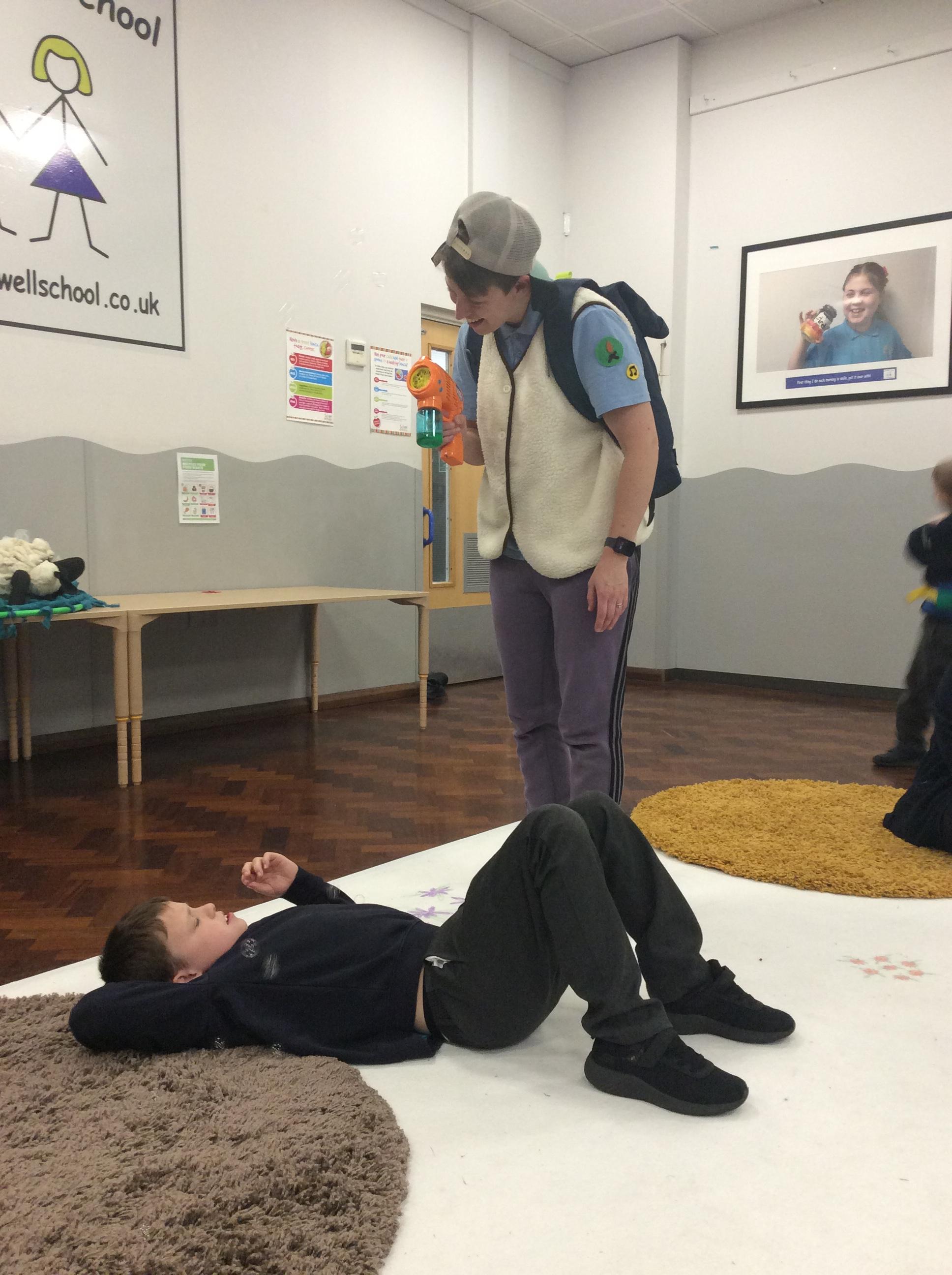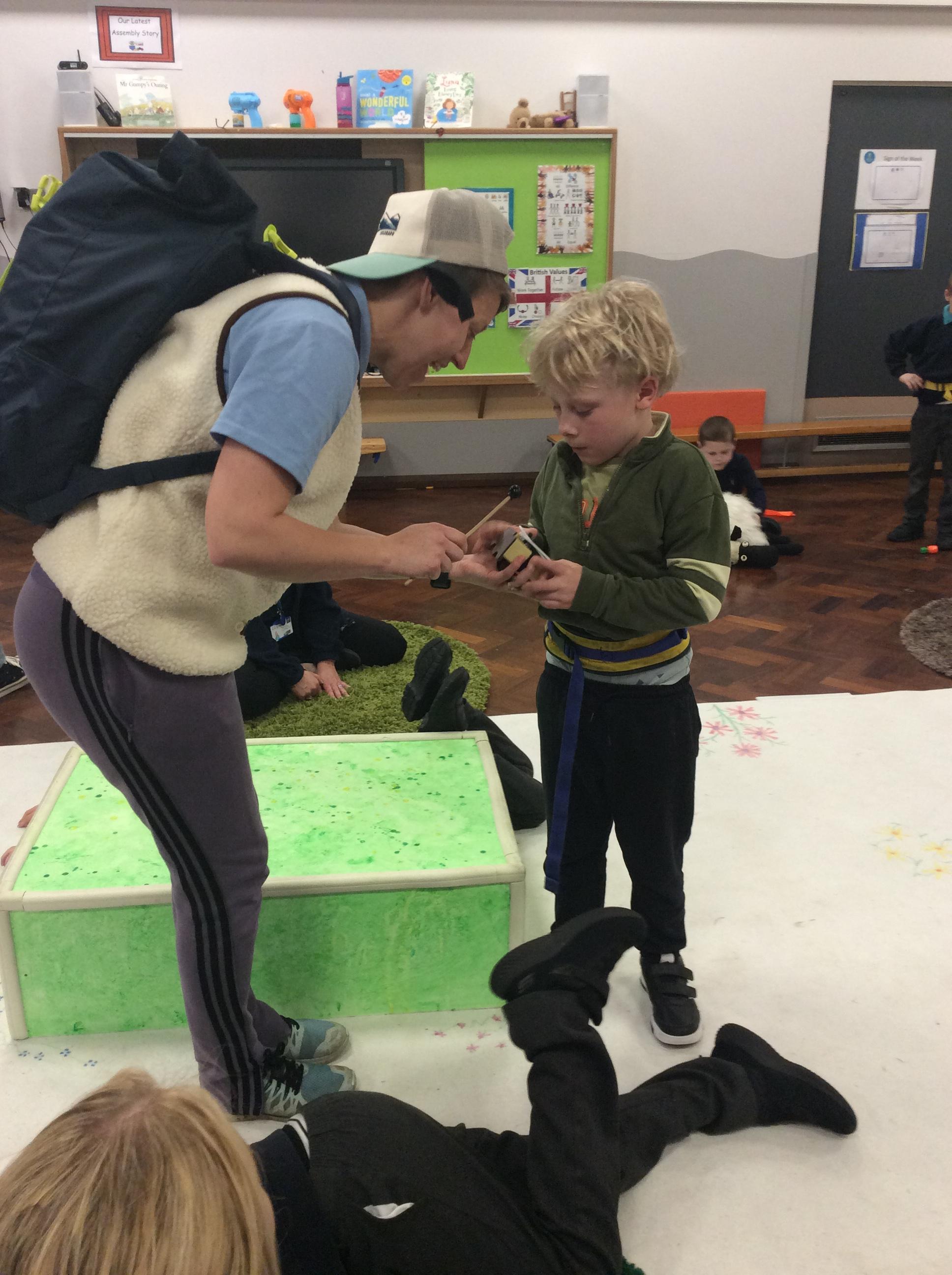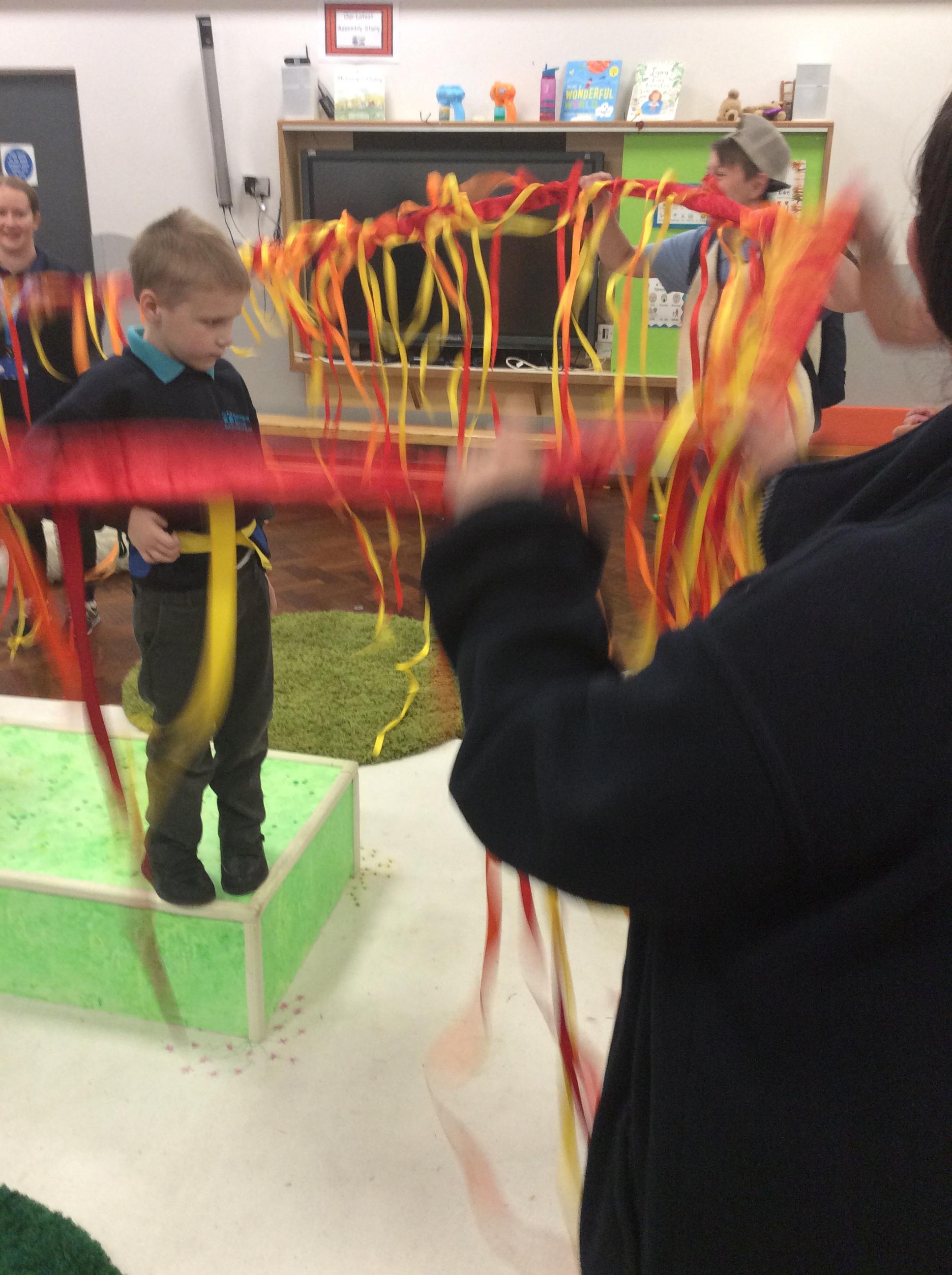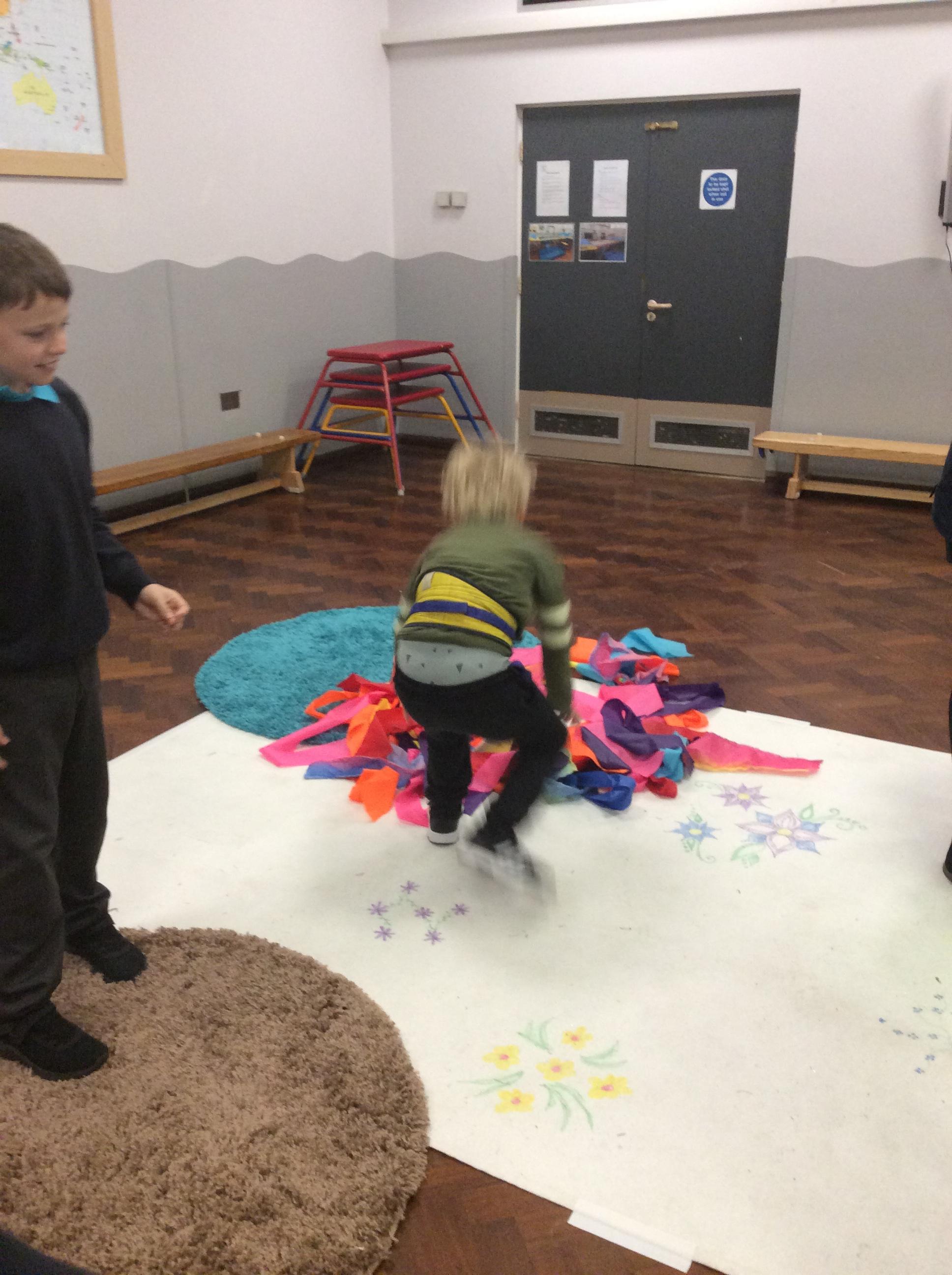 8.5.25- Communication & Language/PSHRE- Today we engaged in a production from Timbadash and loved joining in with the different sensory elements, songs and interacting with the props and eachother.