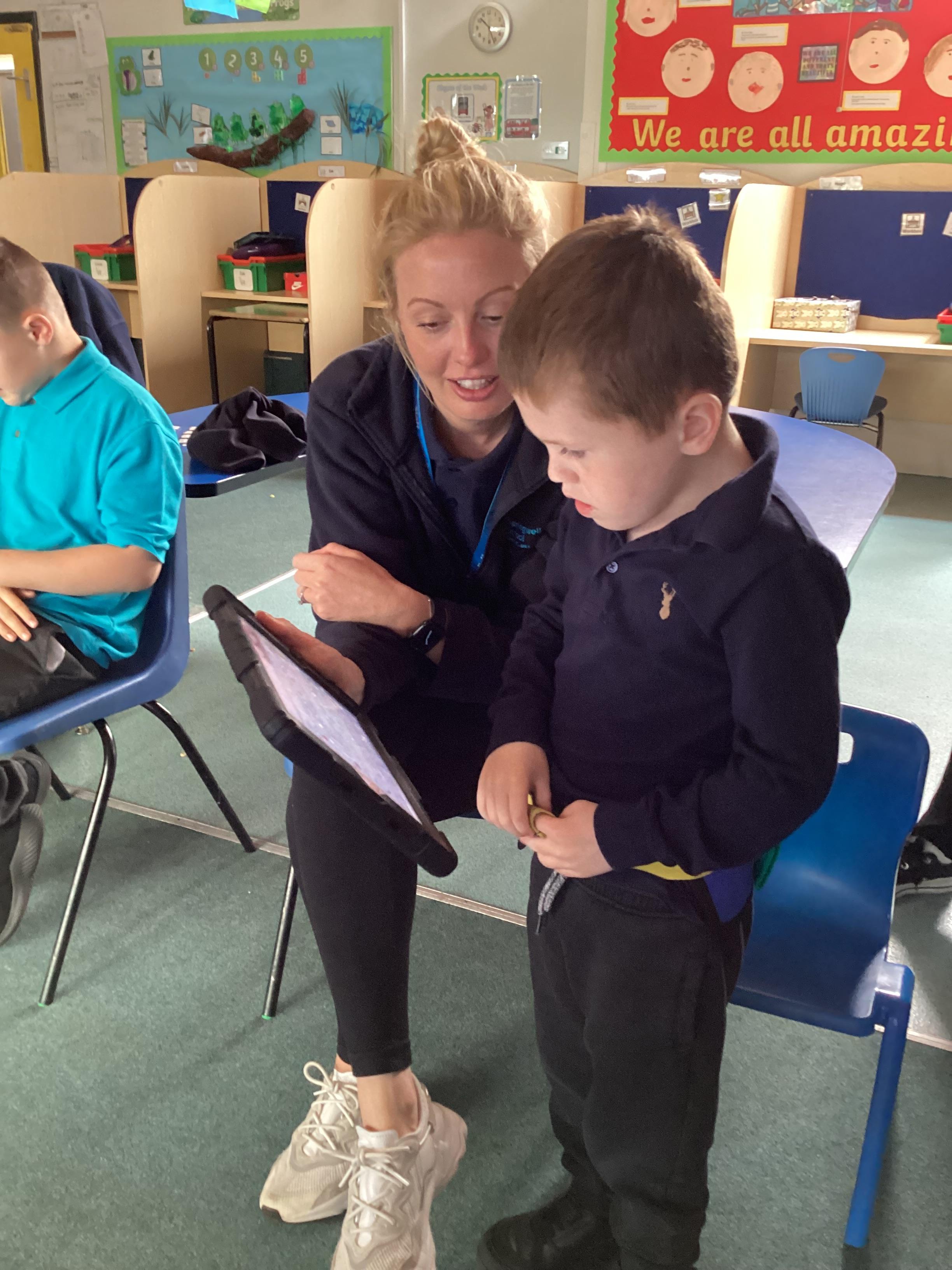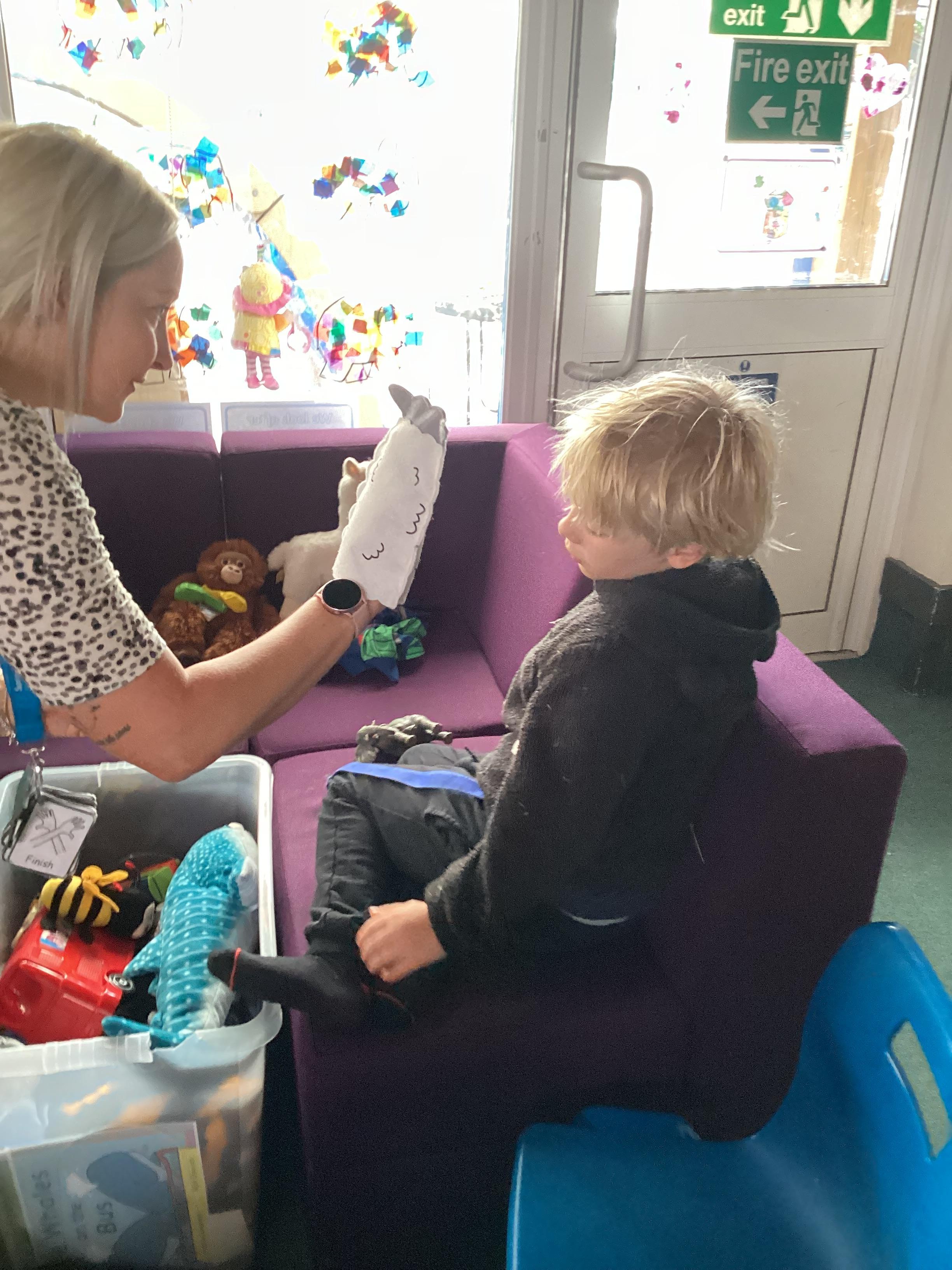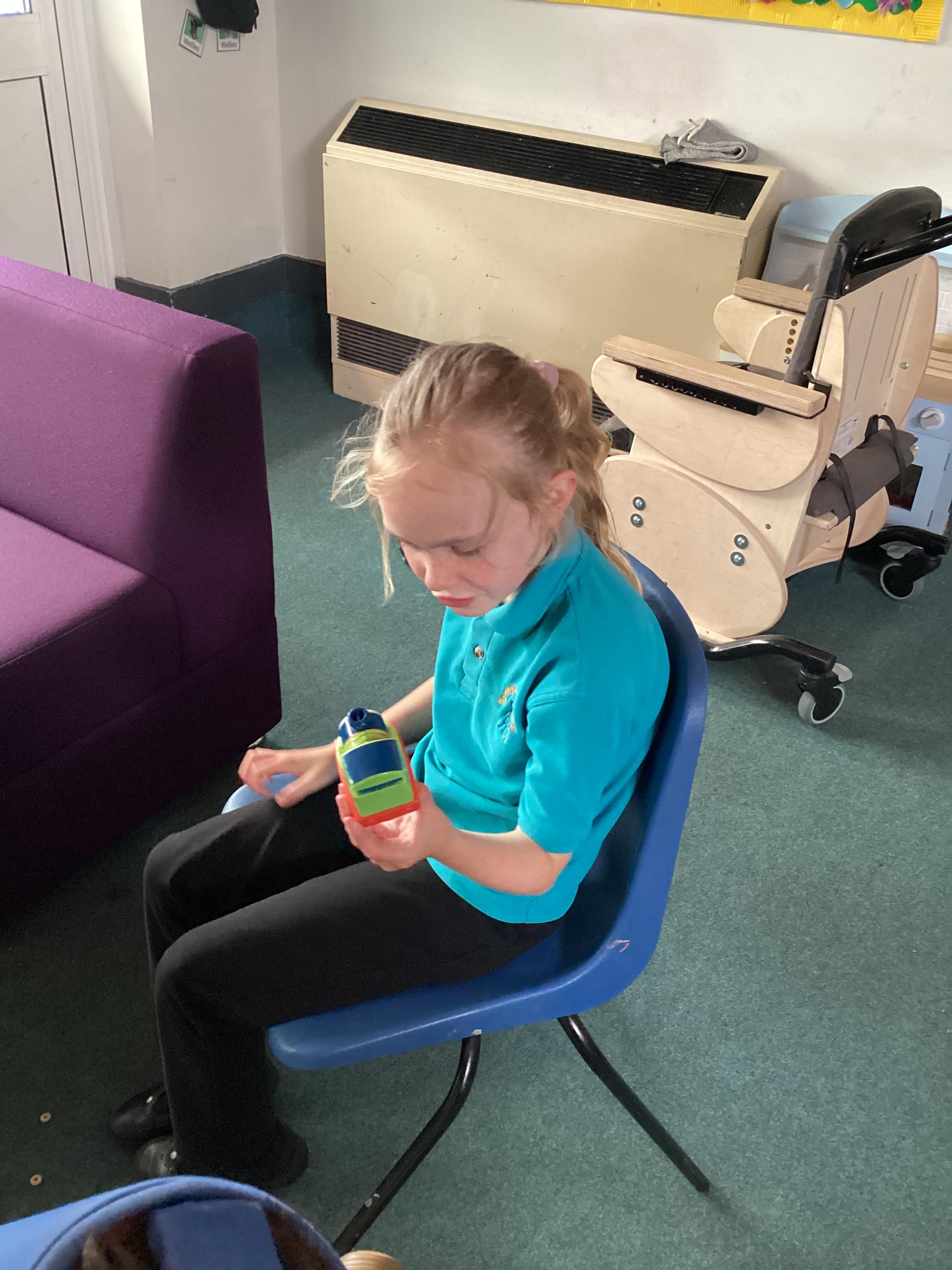 5.6.25- Communication and Interaction- The children loved our 'Whales on the Bus' story and exploring the new props. They used PECS boards, sound buttons and VOCA to communicate throughout the story.