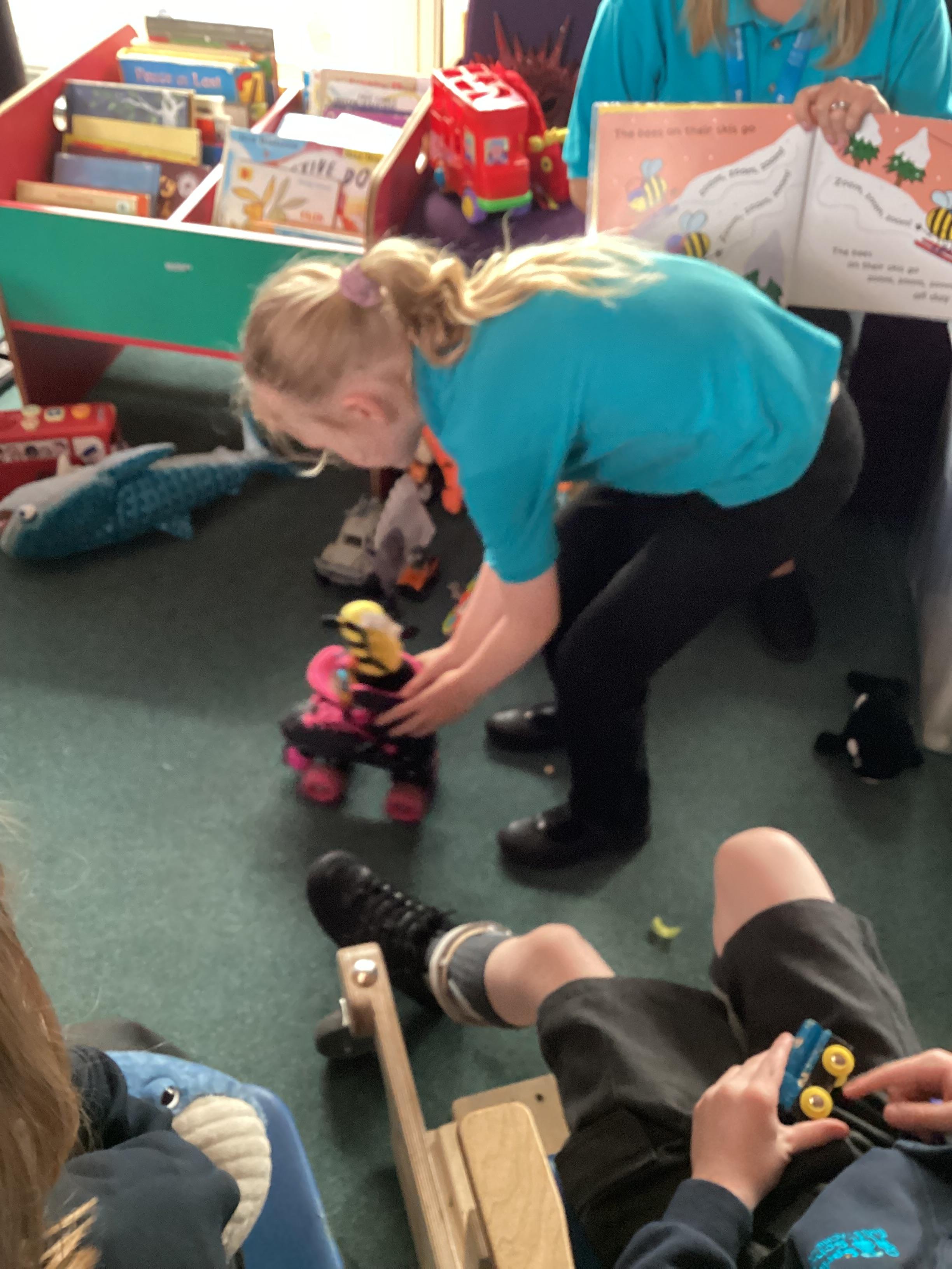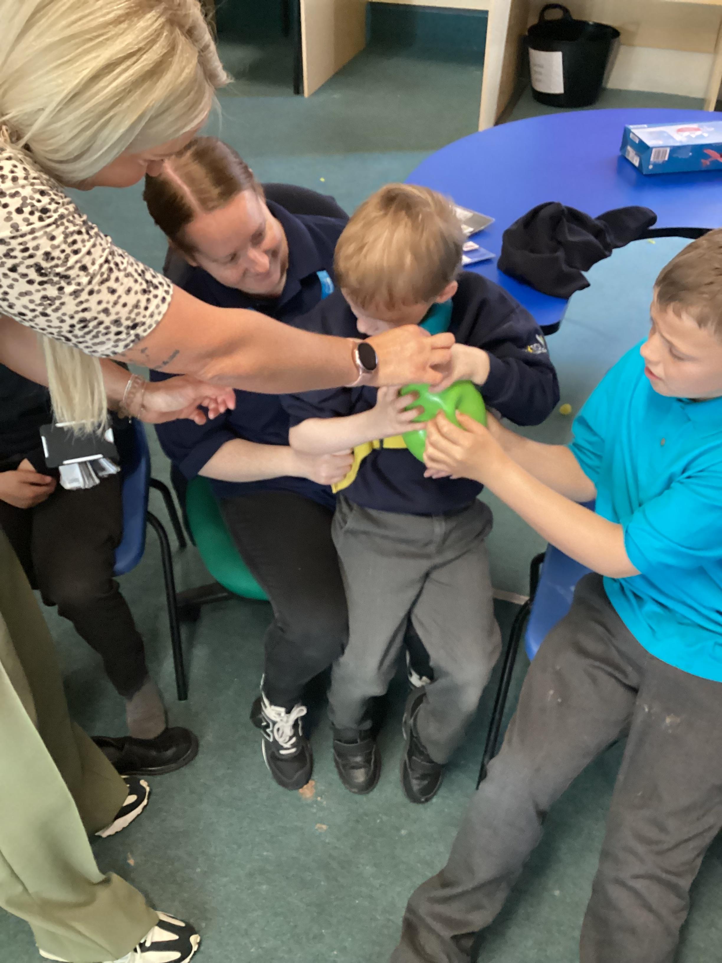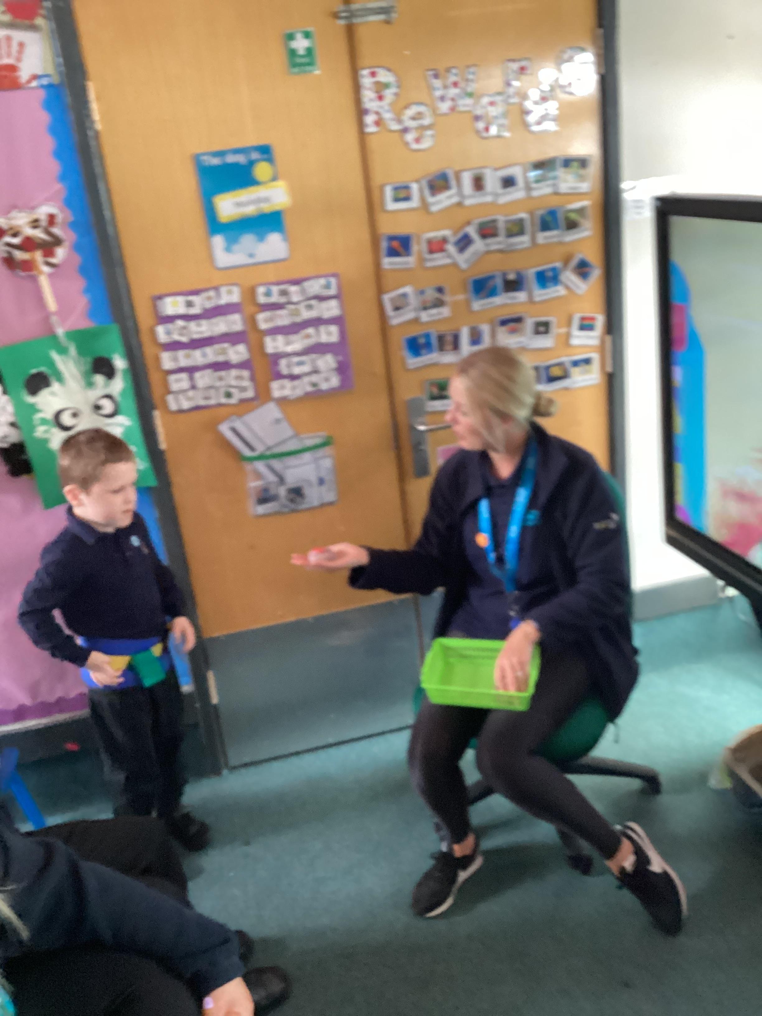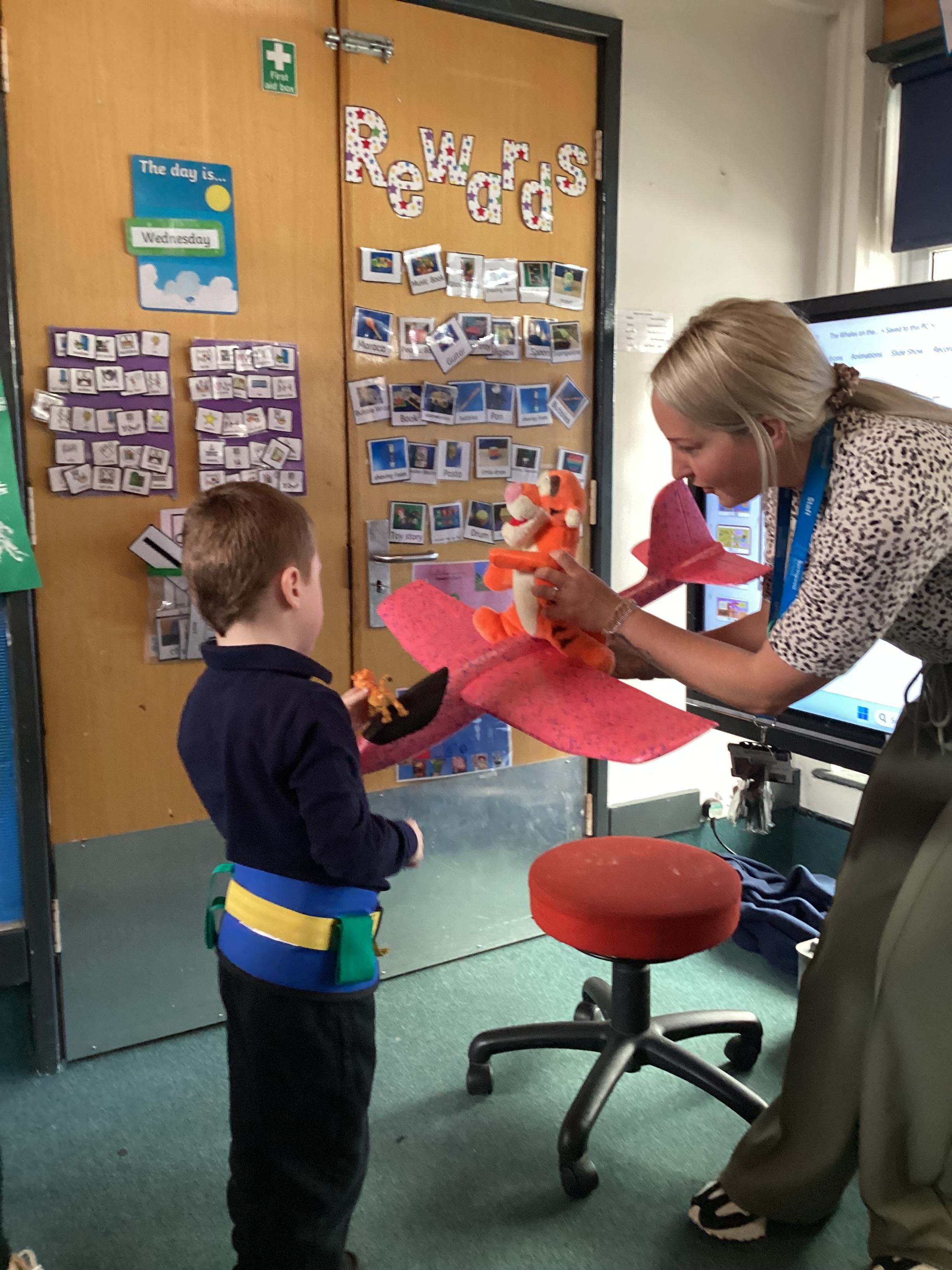 5.6.25- Communication and Interaction- The children loved our 'Whales on the Bus' story and exploring the new props. They used PECS boards, sound buttons and VOCA to communicate throughout the story.