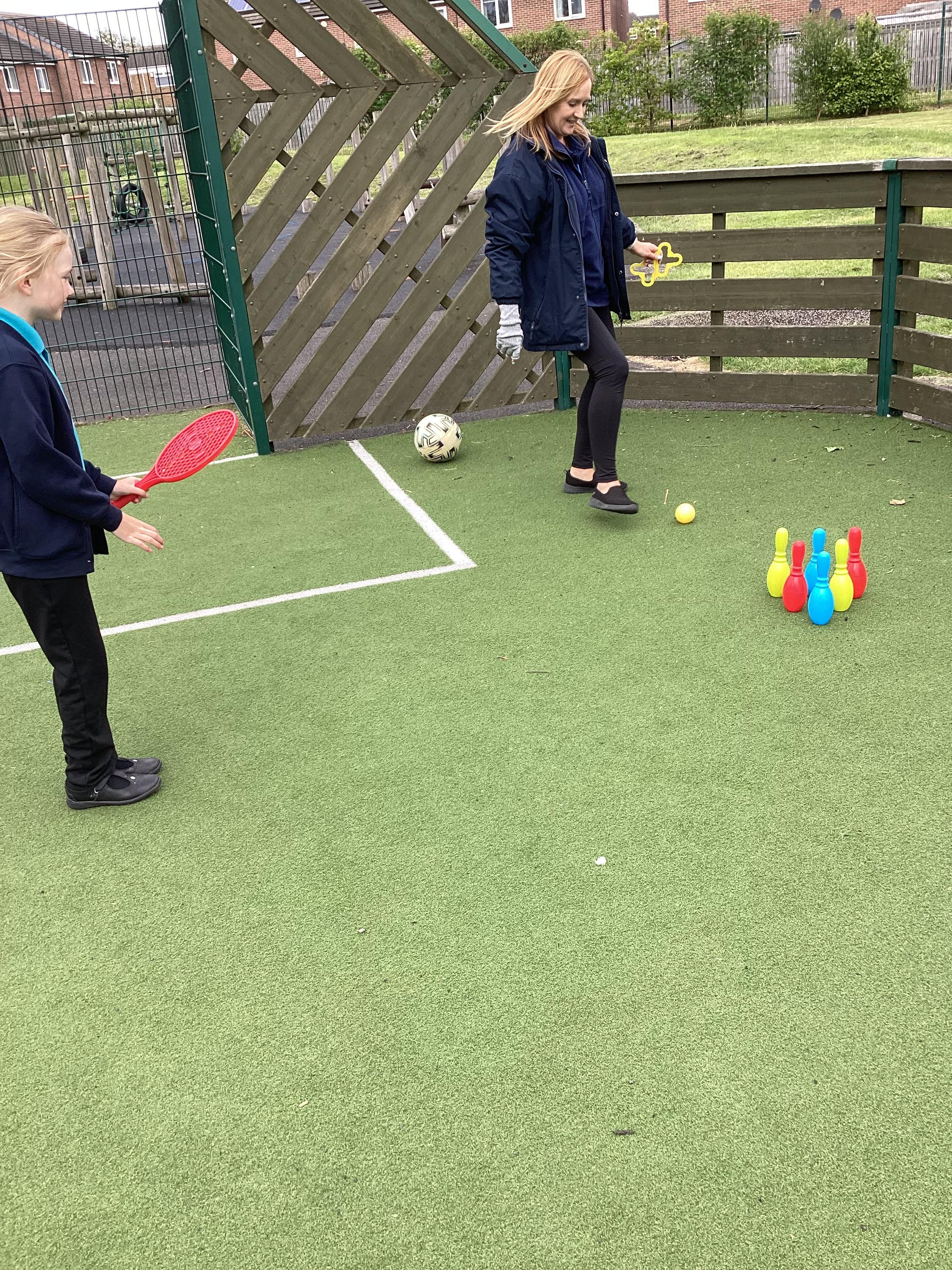 14.5.25- Physical Development- Llamas had fun taking part in outdoor physical activities. We completed the daily mile and then enjoyed turn taking games with the bats and balls.