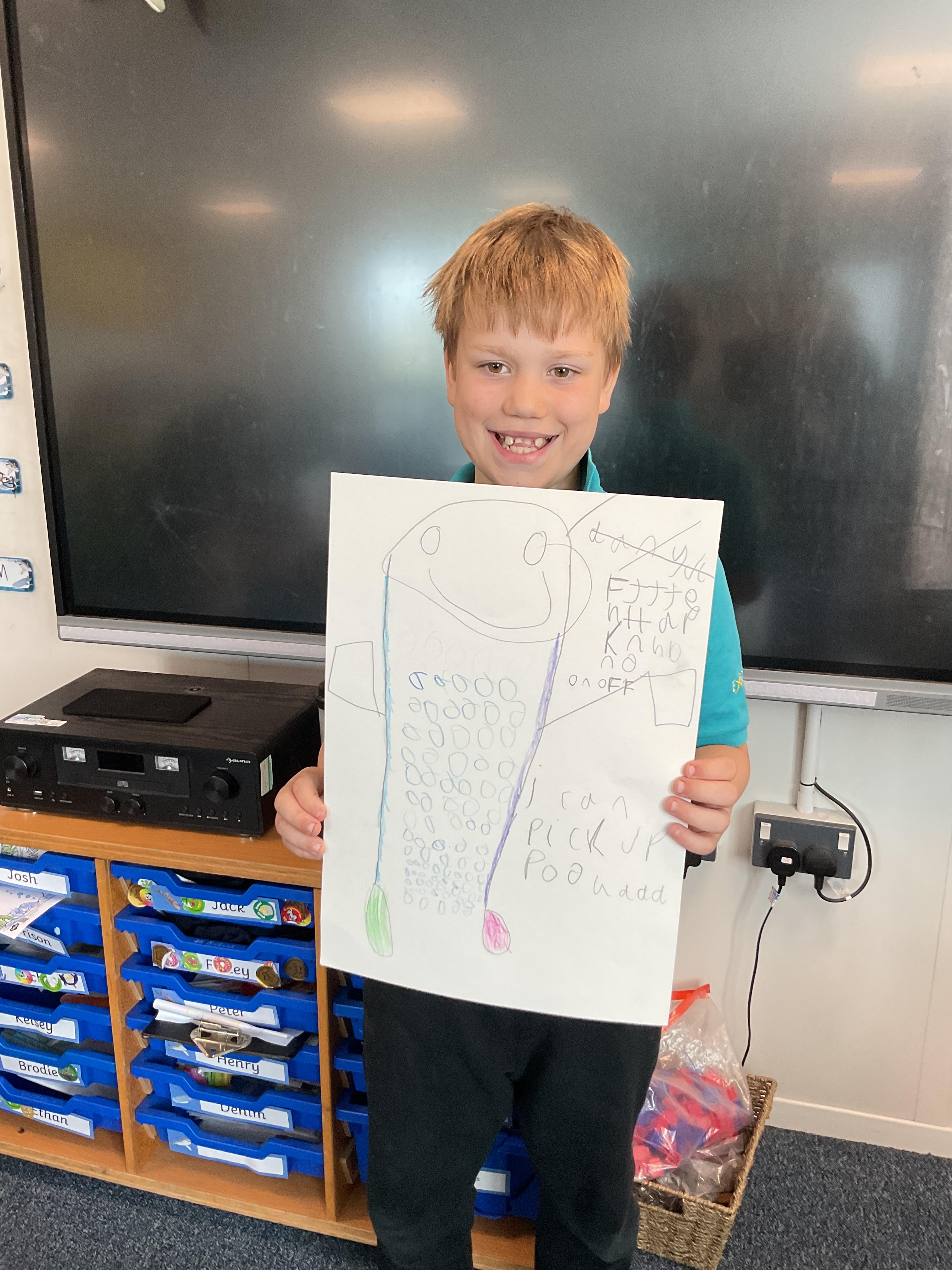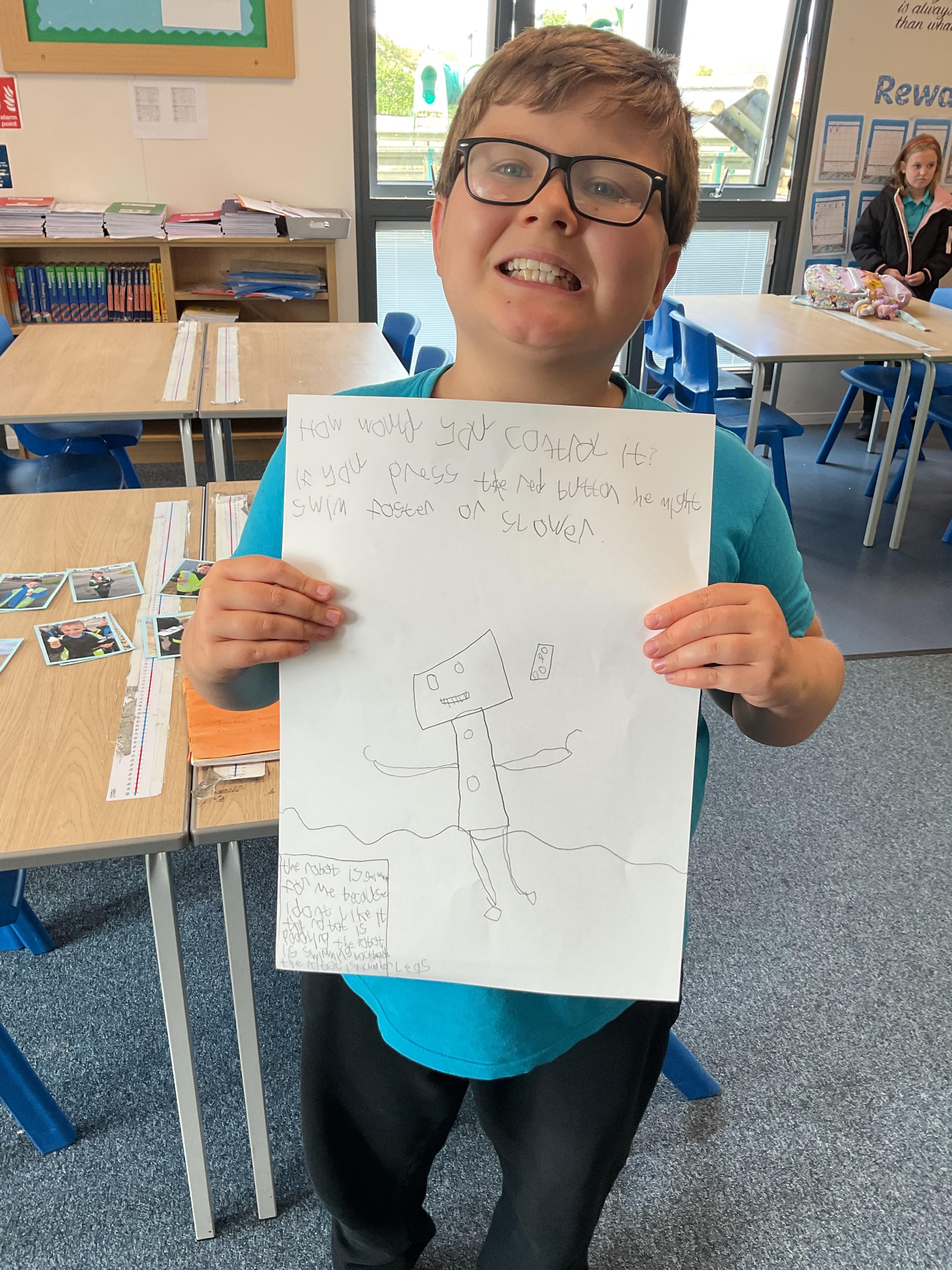 Shark Class had to think about different skills and jobs their robot could perform and talk about it in front of the class.