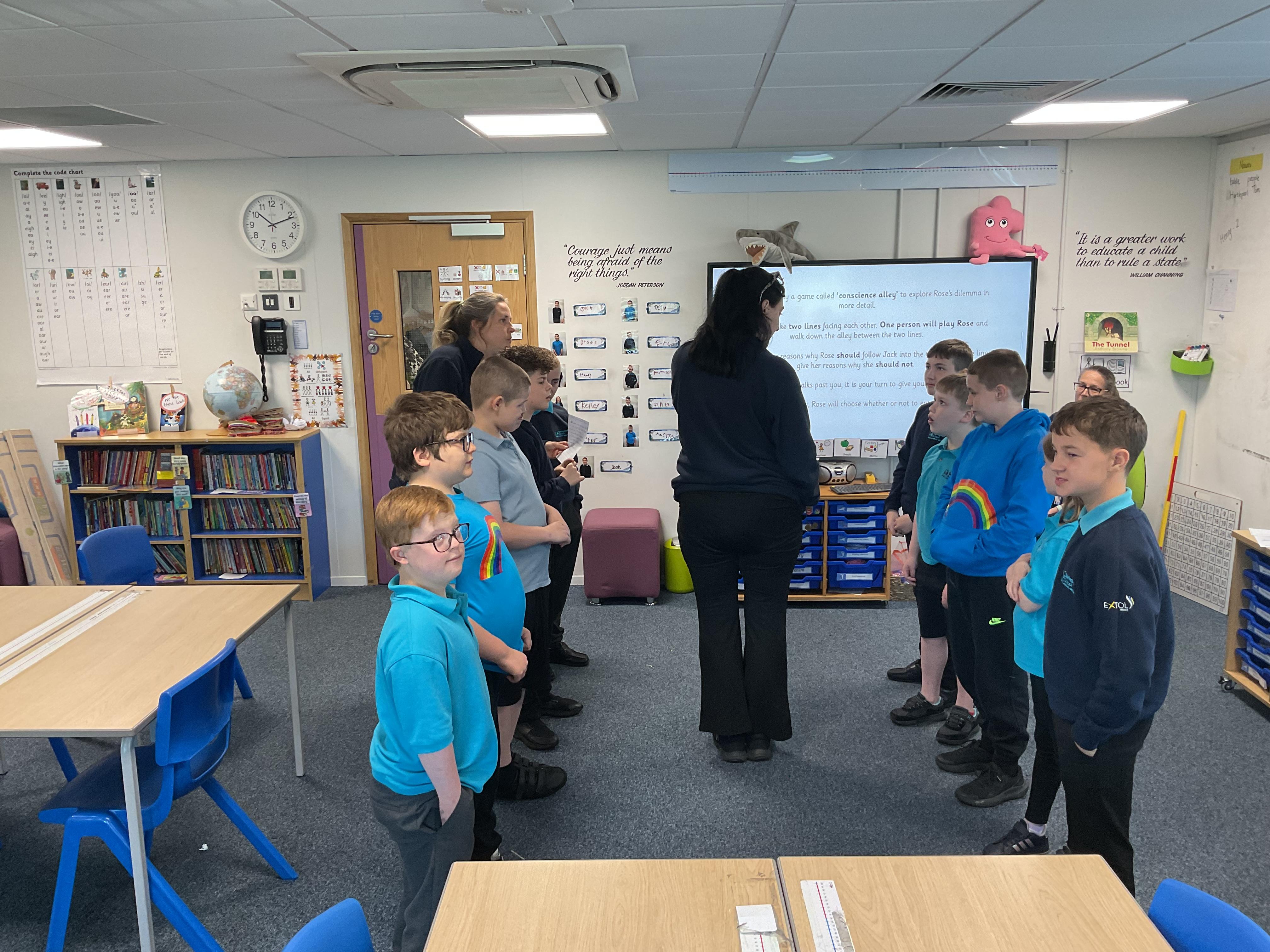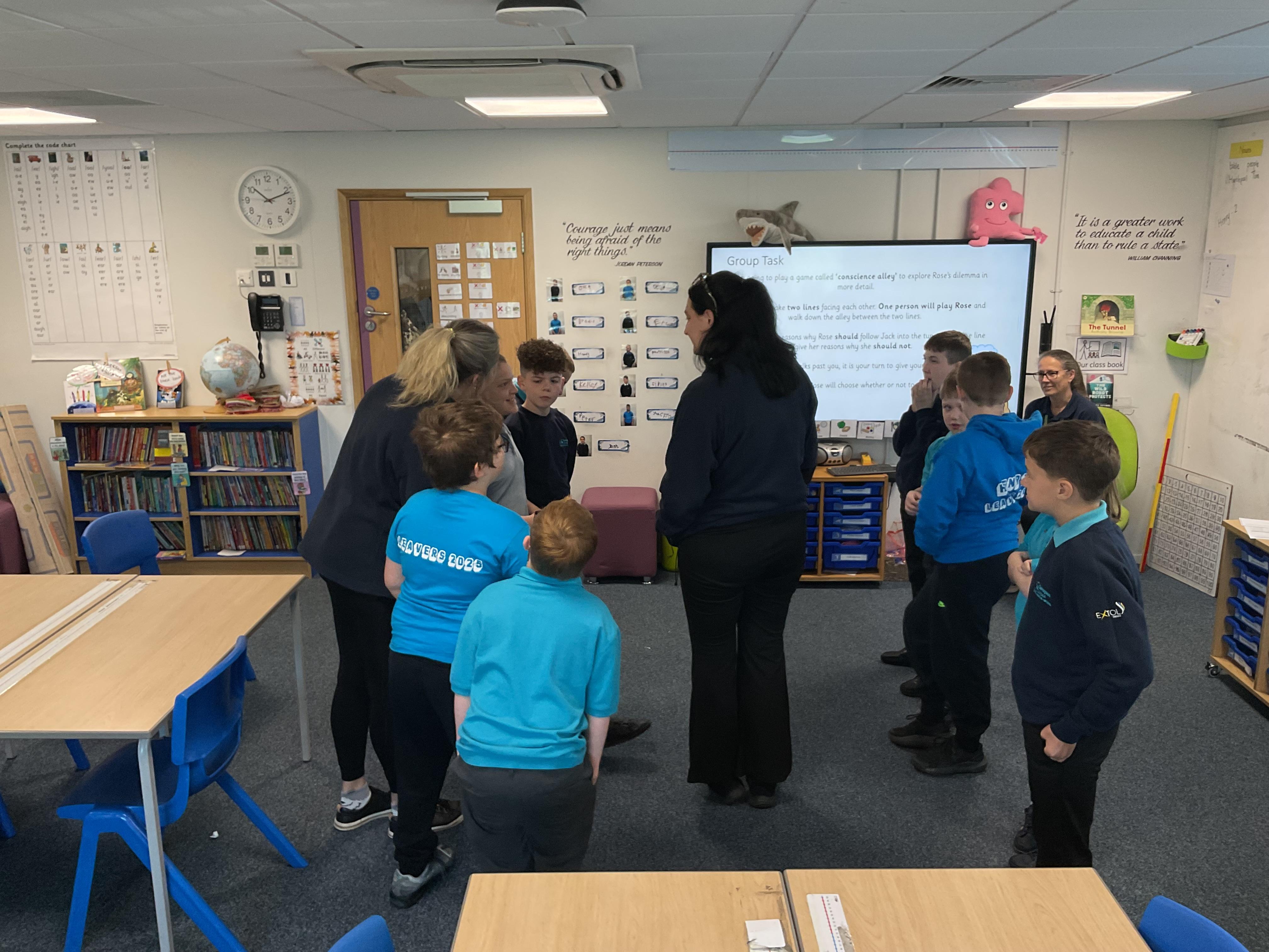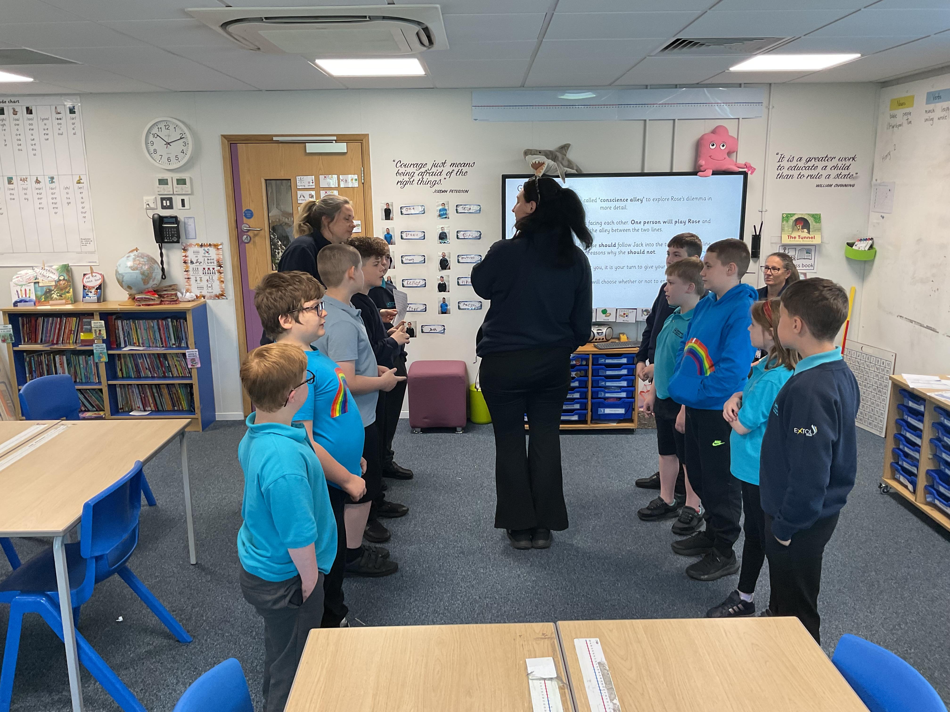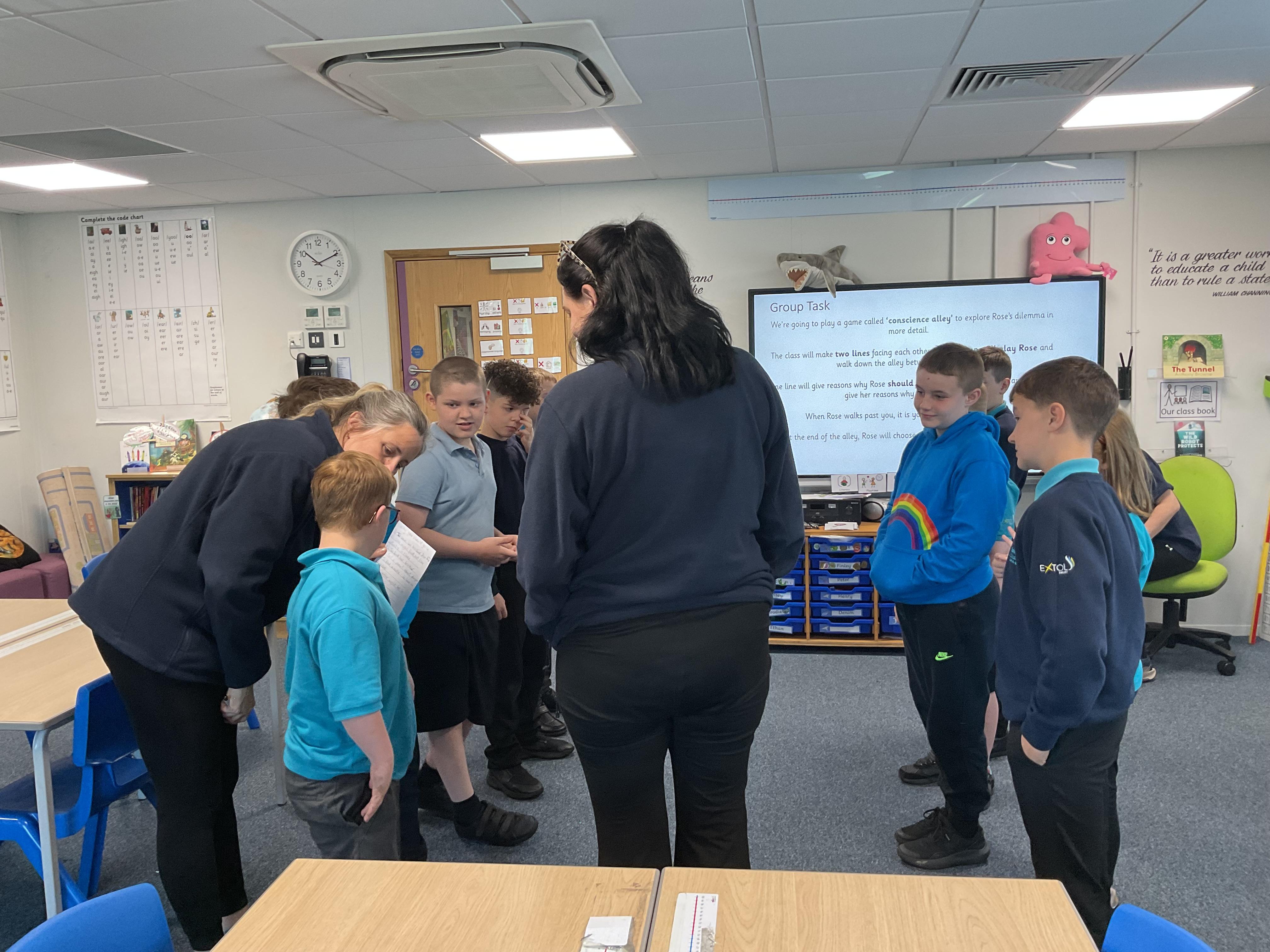 Children took part in a group task as a part of their English lesson and played a game called "Conscience Alley". Their discussions were based on the story called "The Tunnel" by Anthony Browne and children had to share their ideas as to why Rose (the main character) would or would not have to follow her brother into the tunnel and why!?