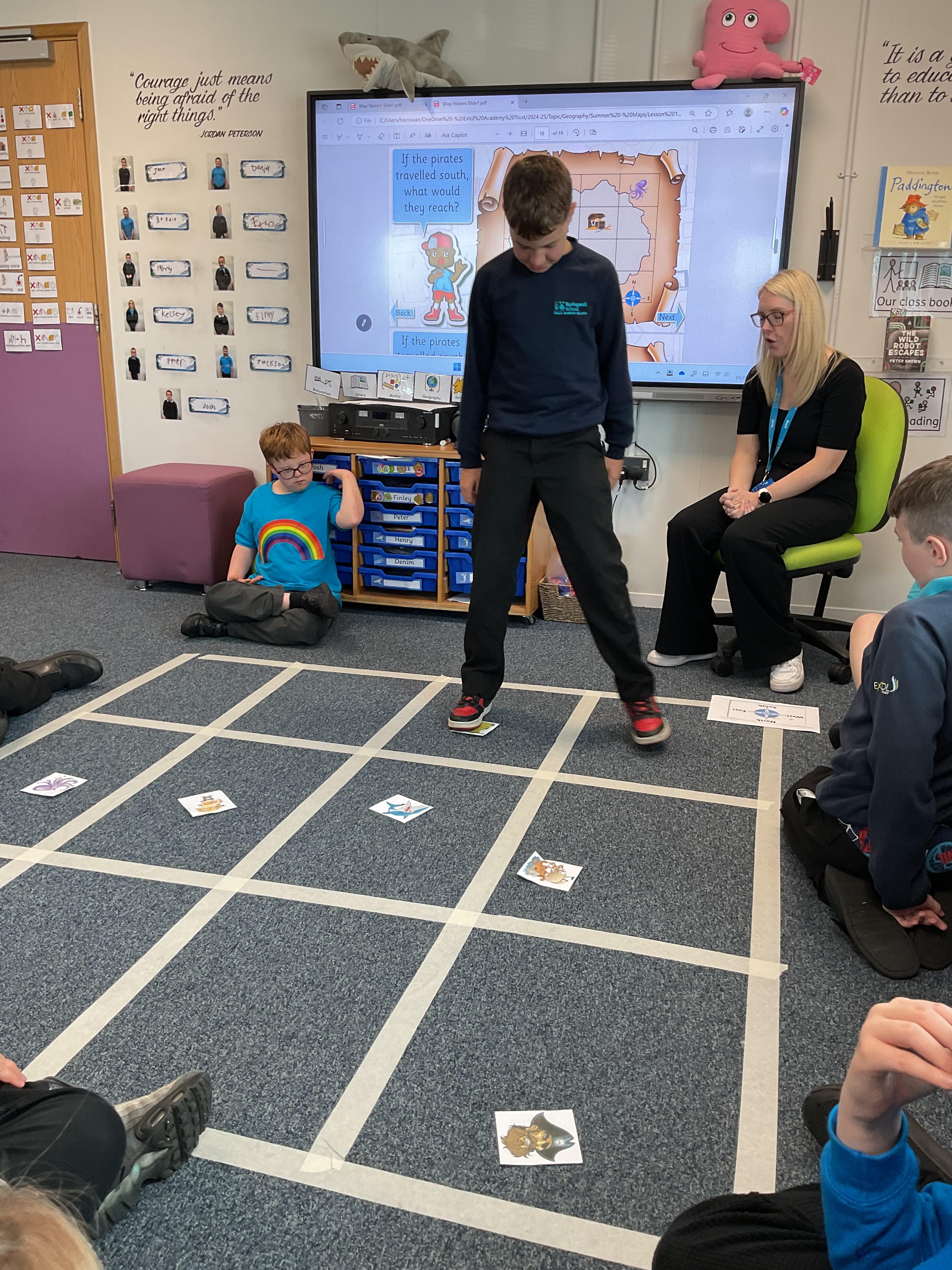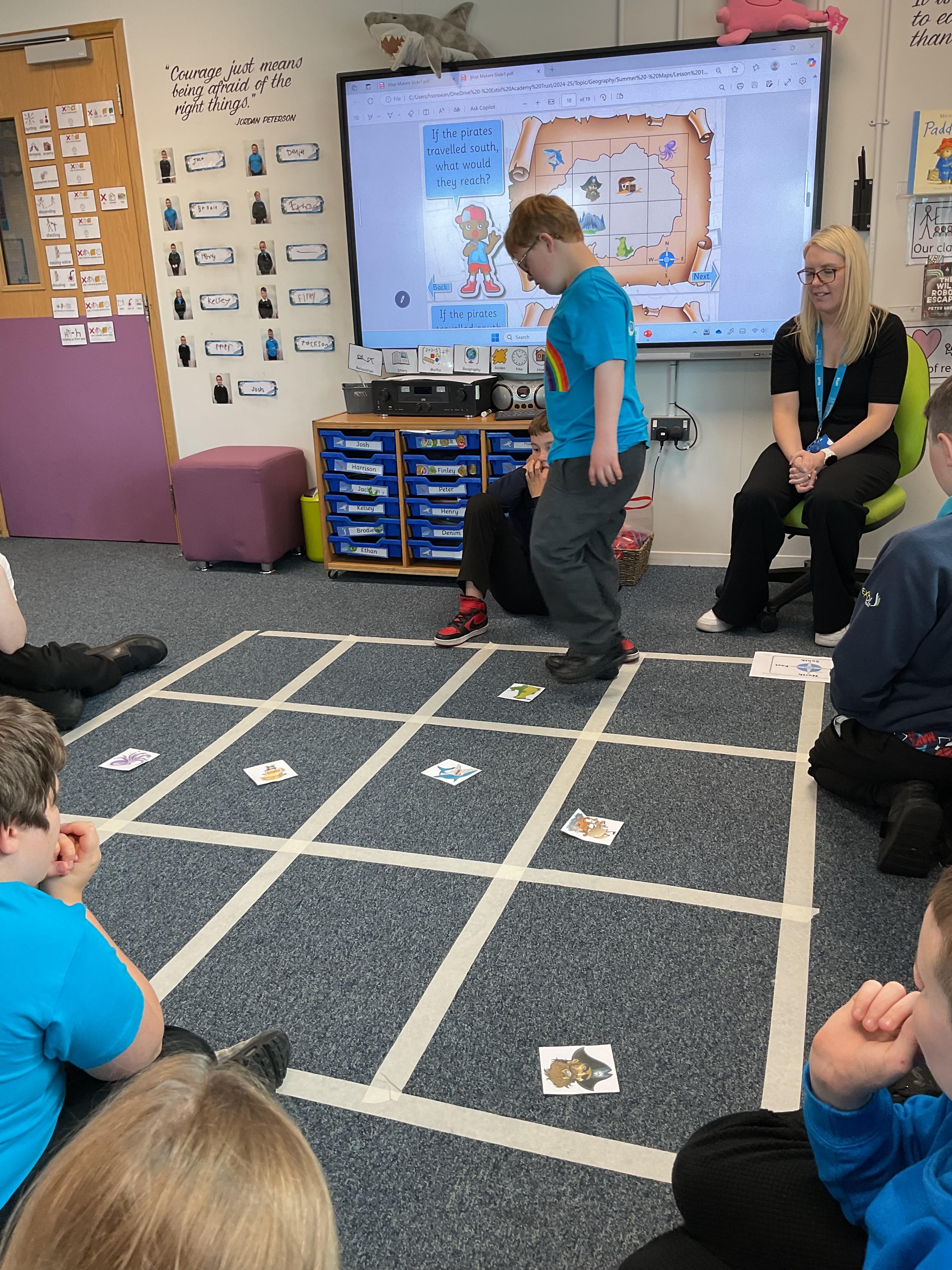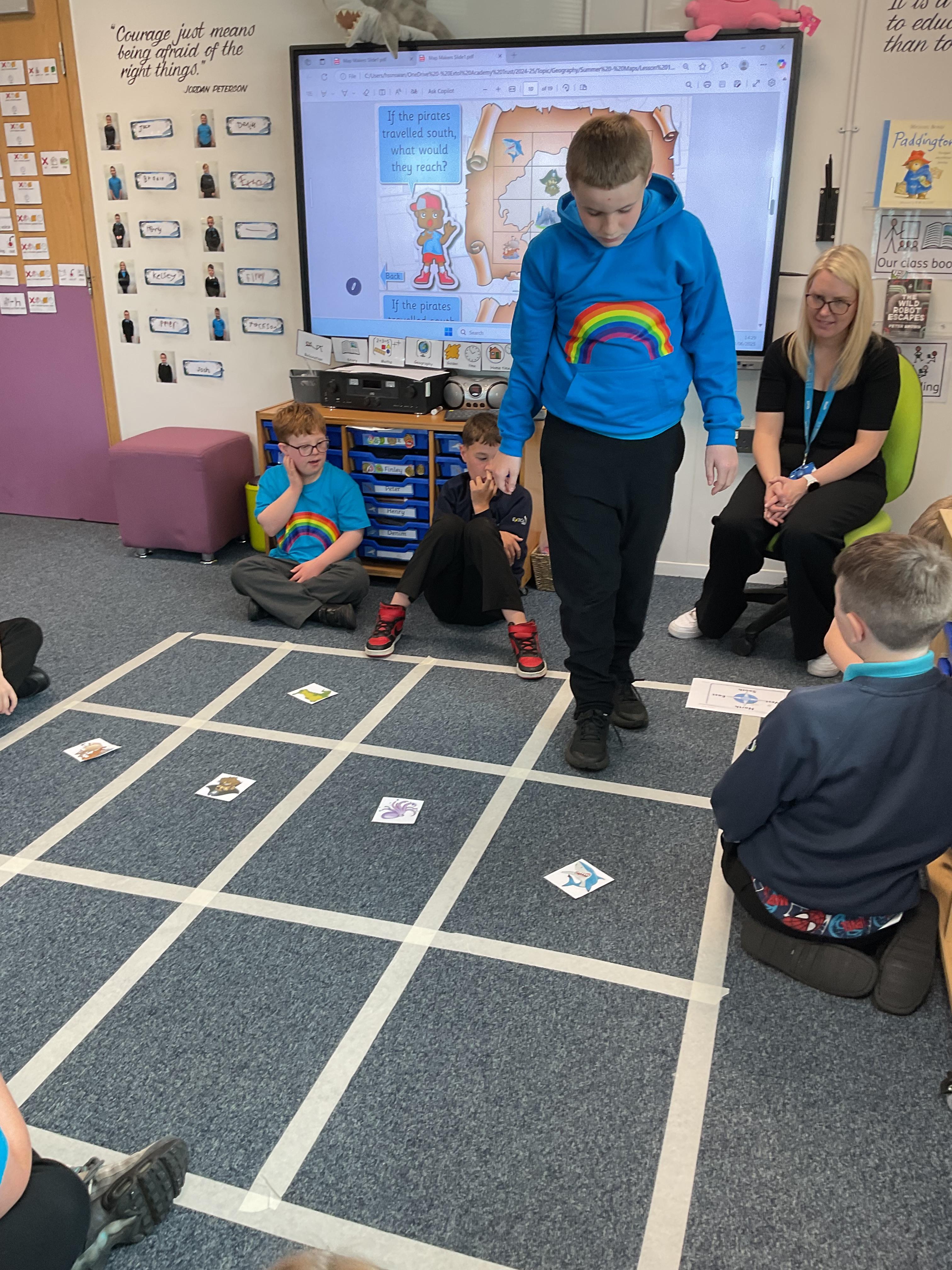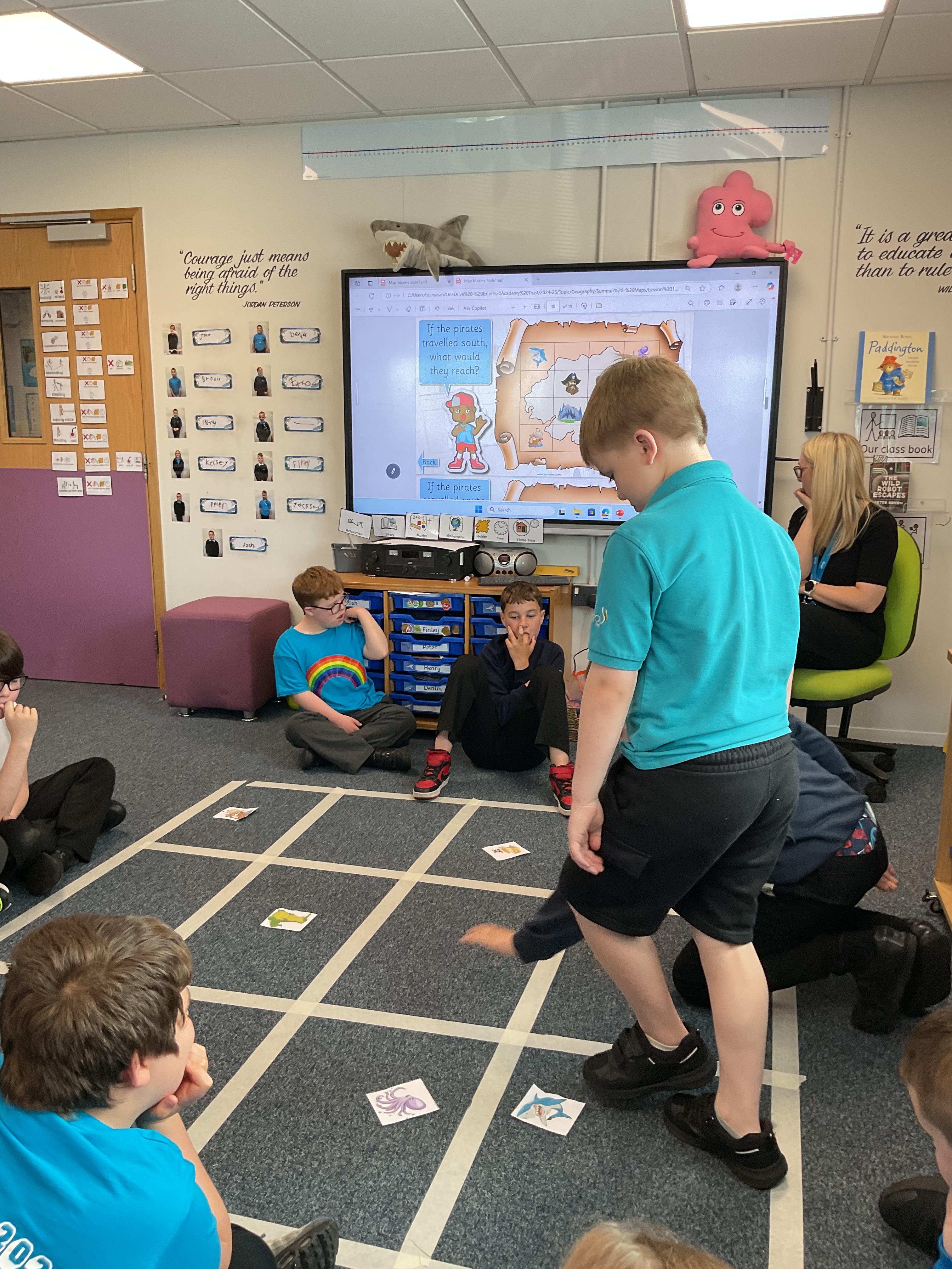 Shark Class then took part in a practical task where they had to move around the grid using compass directions given them by their peers!