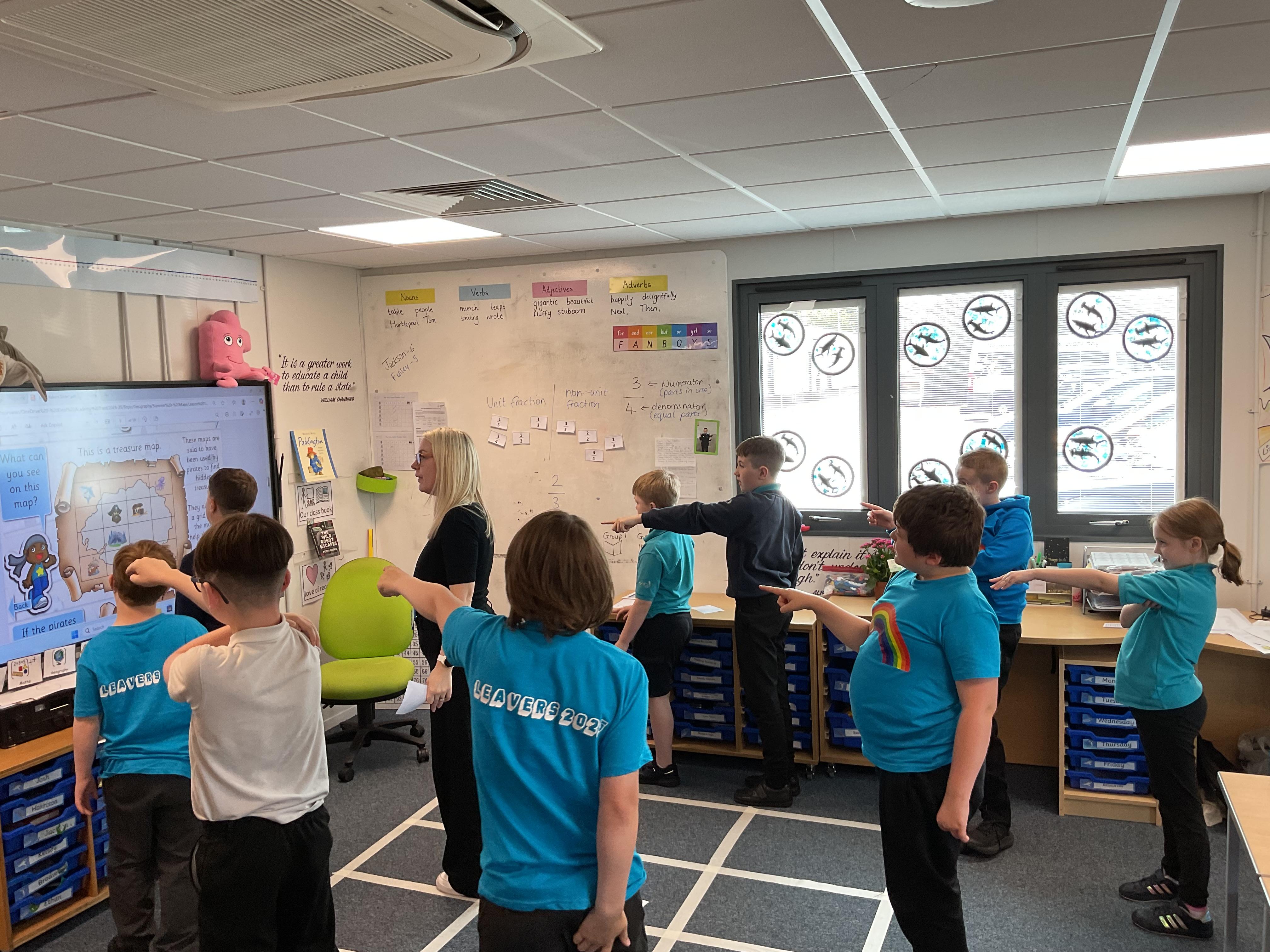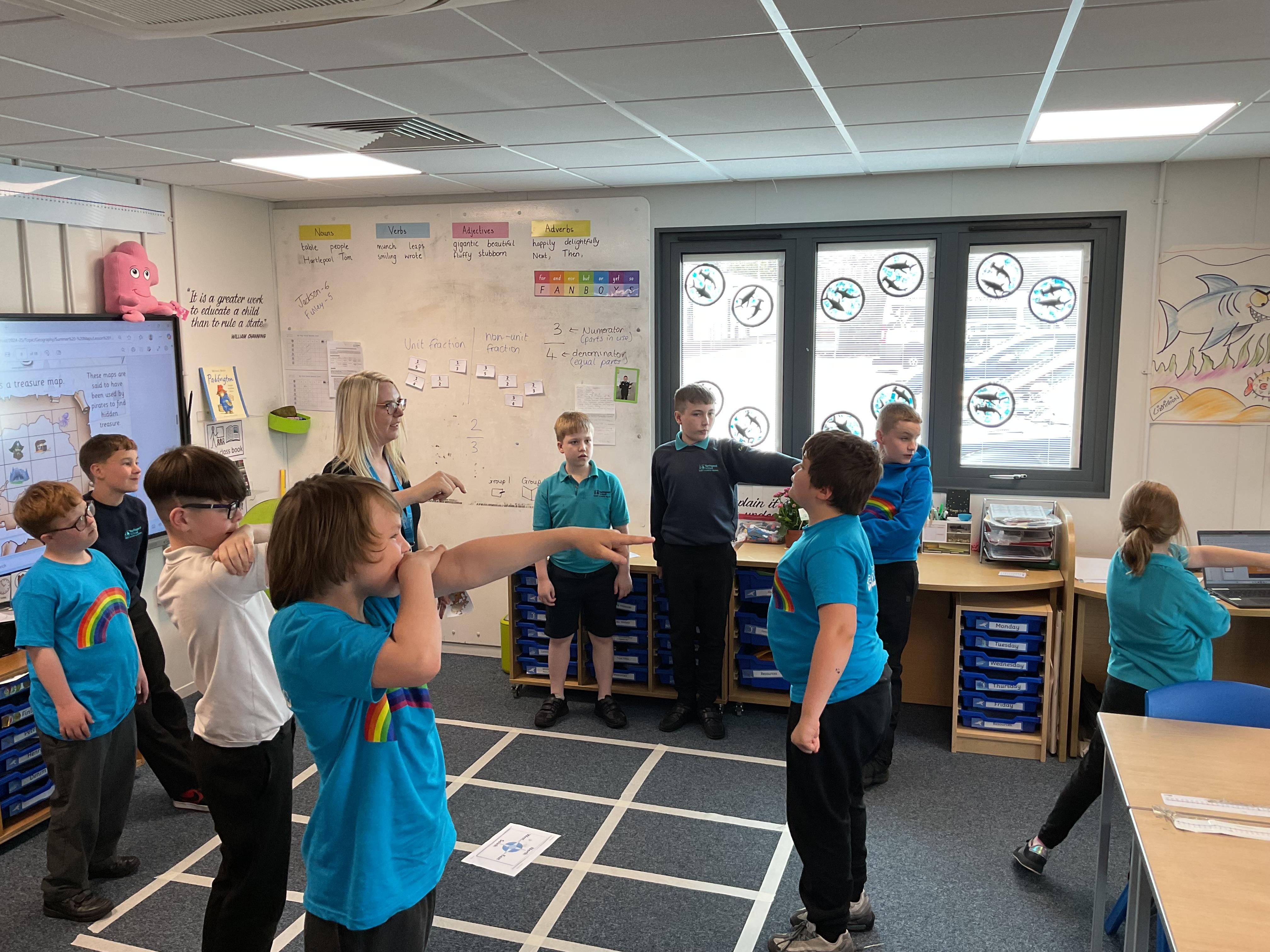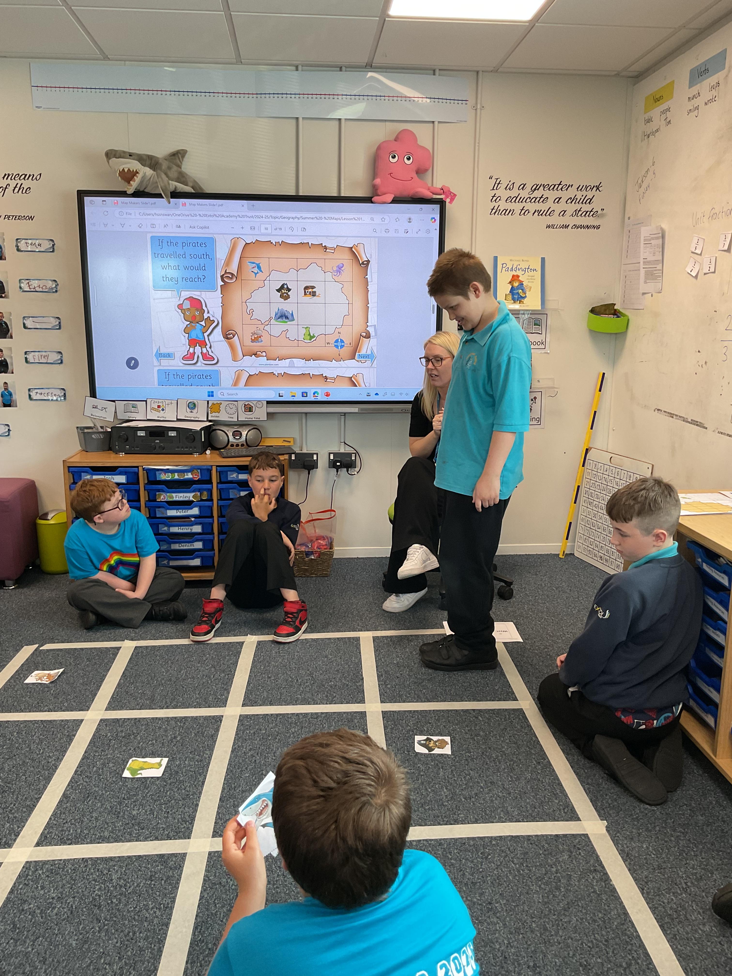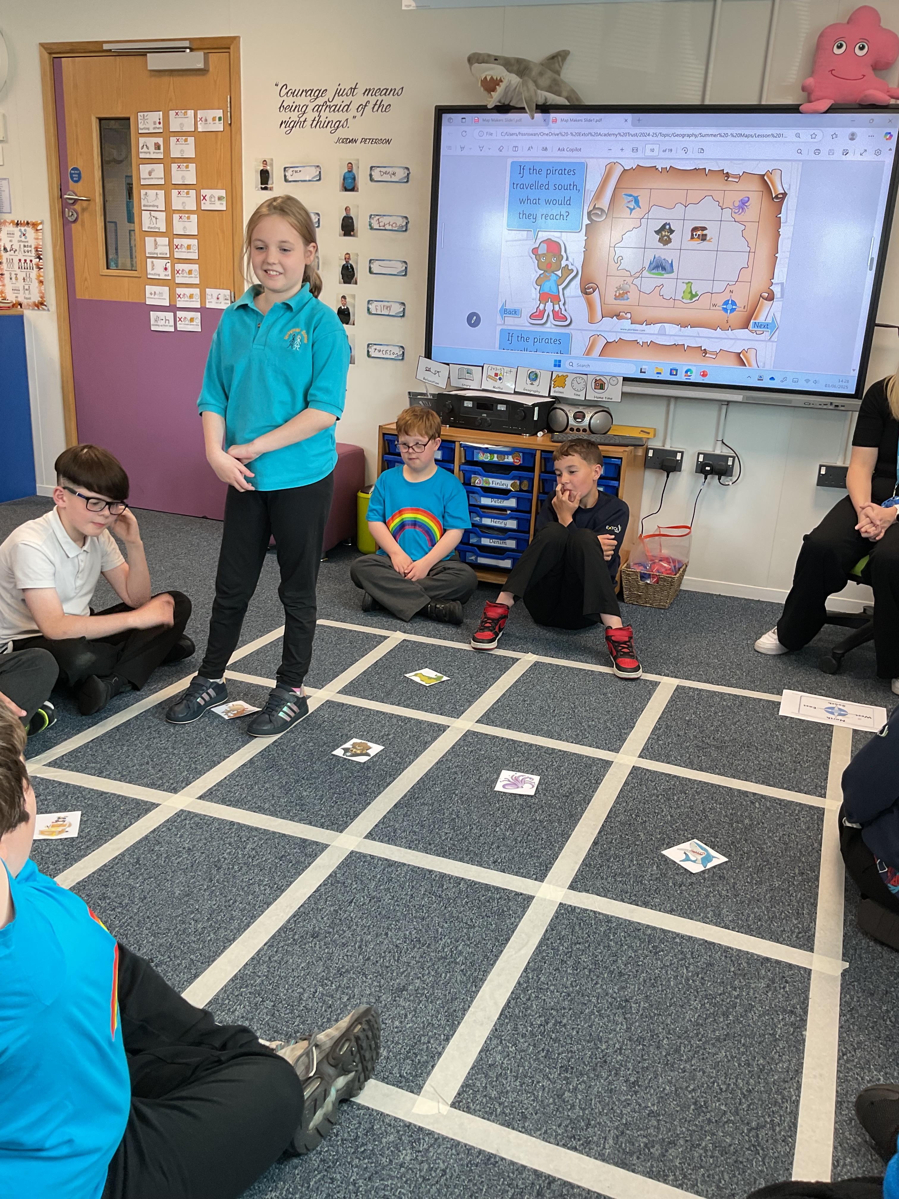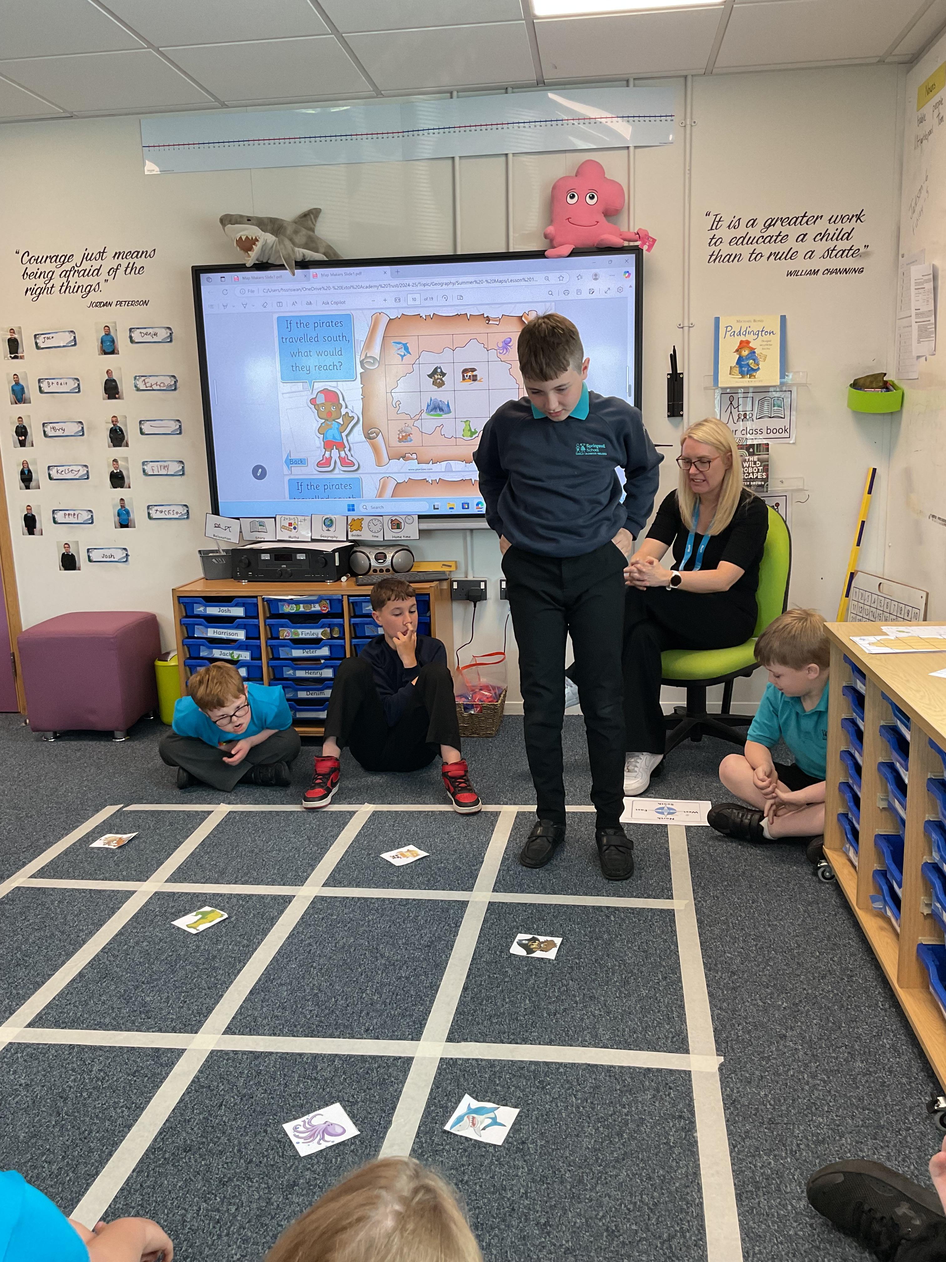 Shark Class then took part in a practical task where they had to move around the grid using compass directions given them by their peers!