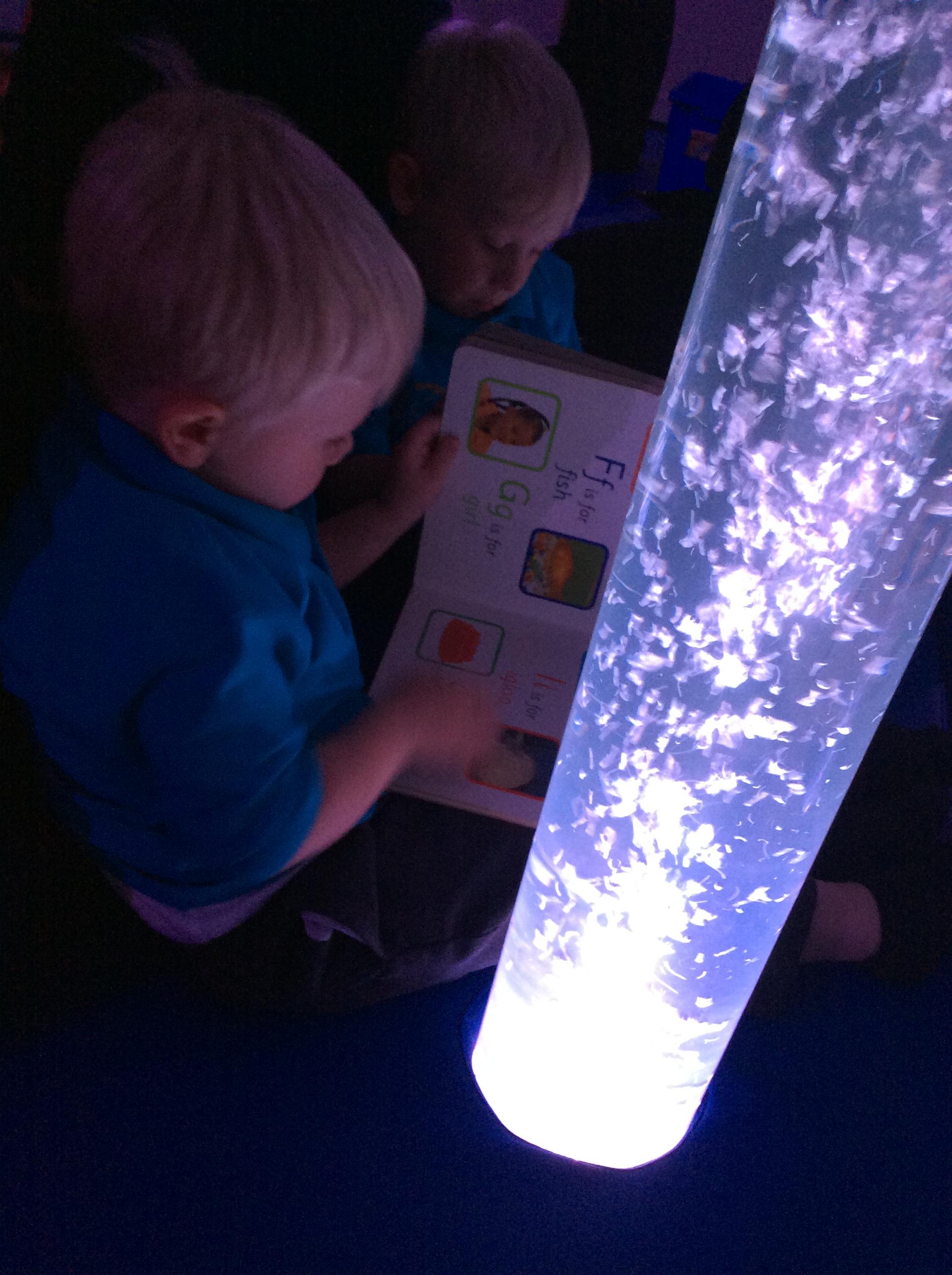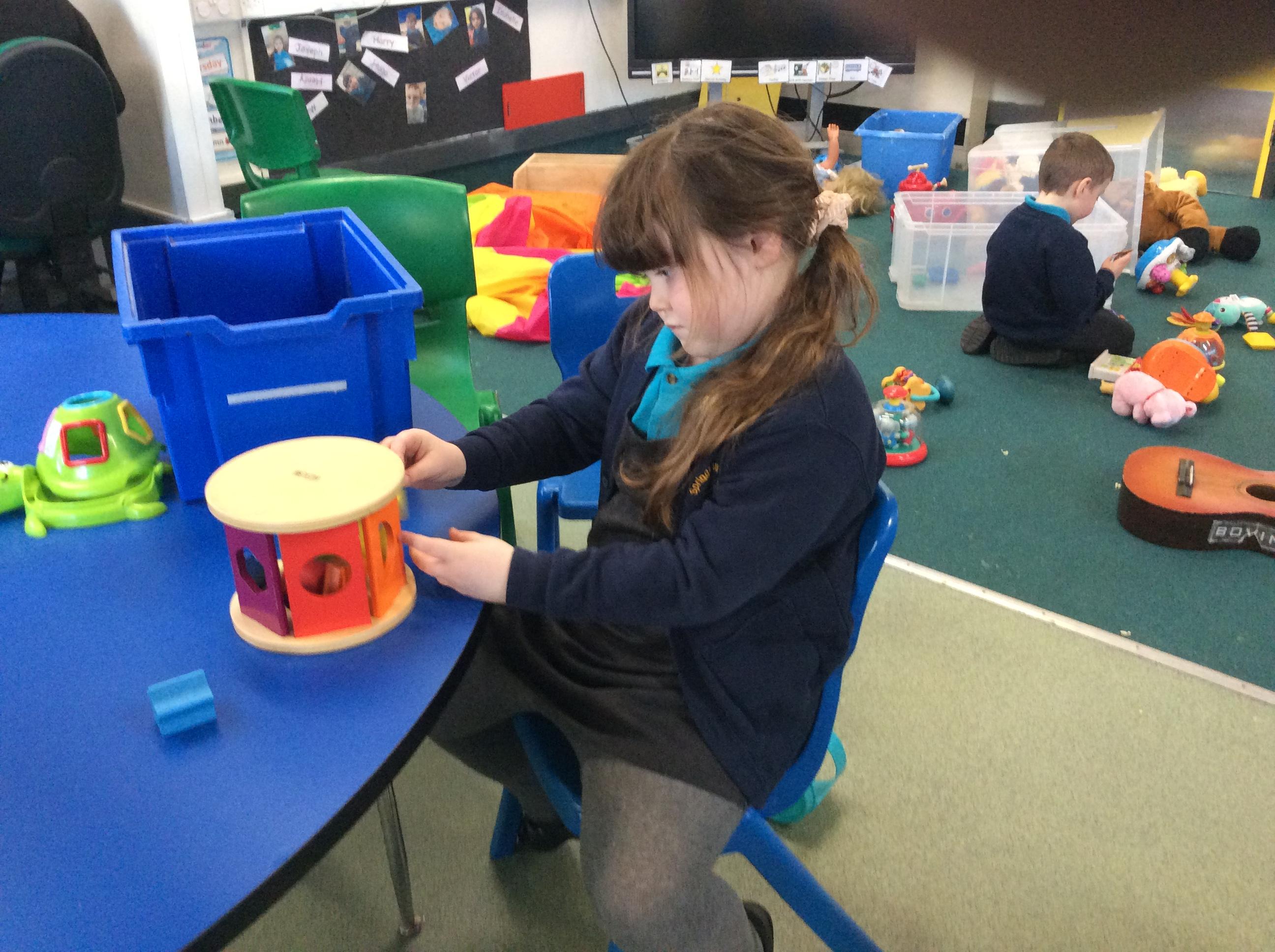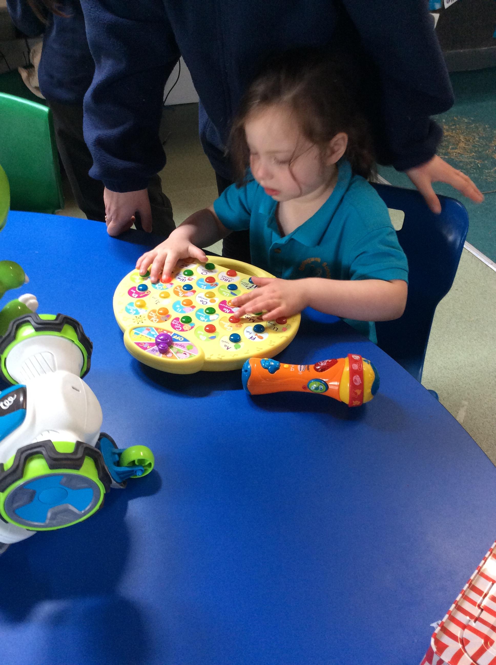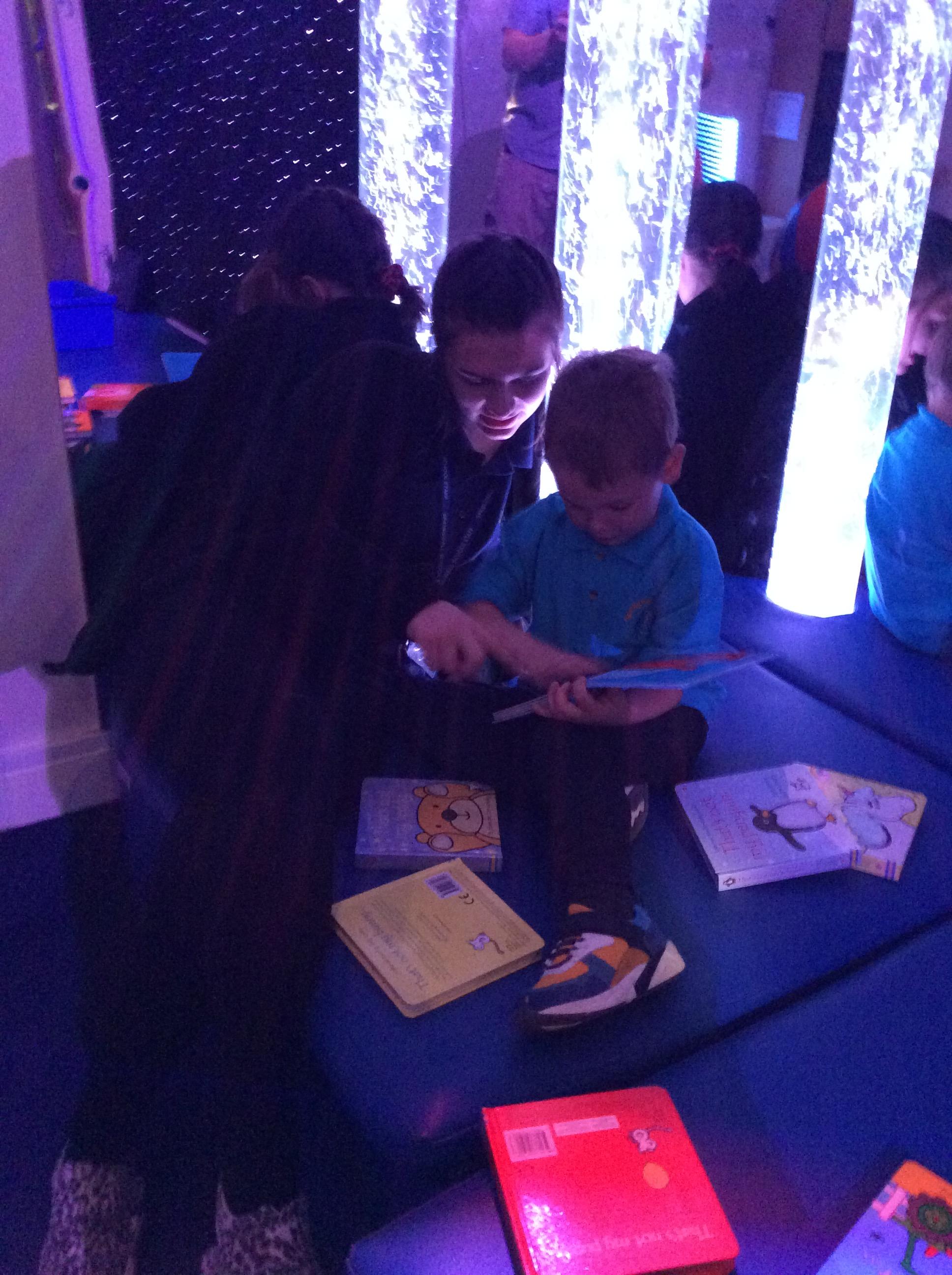 They follow a highly sensory, play based curriculum that provides them with targeted work to develop their independence, exploration, communication and interaction. The curriculum they follow includes (but is not exclusive to) Sensory Stories, TAC-PAC, Symbol Exchange, Attention Autism, Intensive interaction, Rebound, Soft Play, Swimming/Hydrotherapy, work-box, and local library and community visits. These complement our exploratory EYFS based activities both in class, and in our outside area.