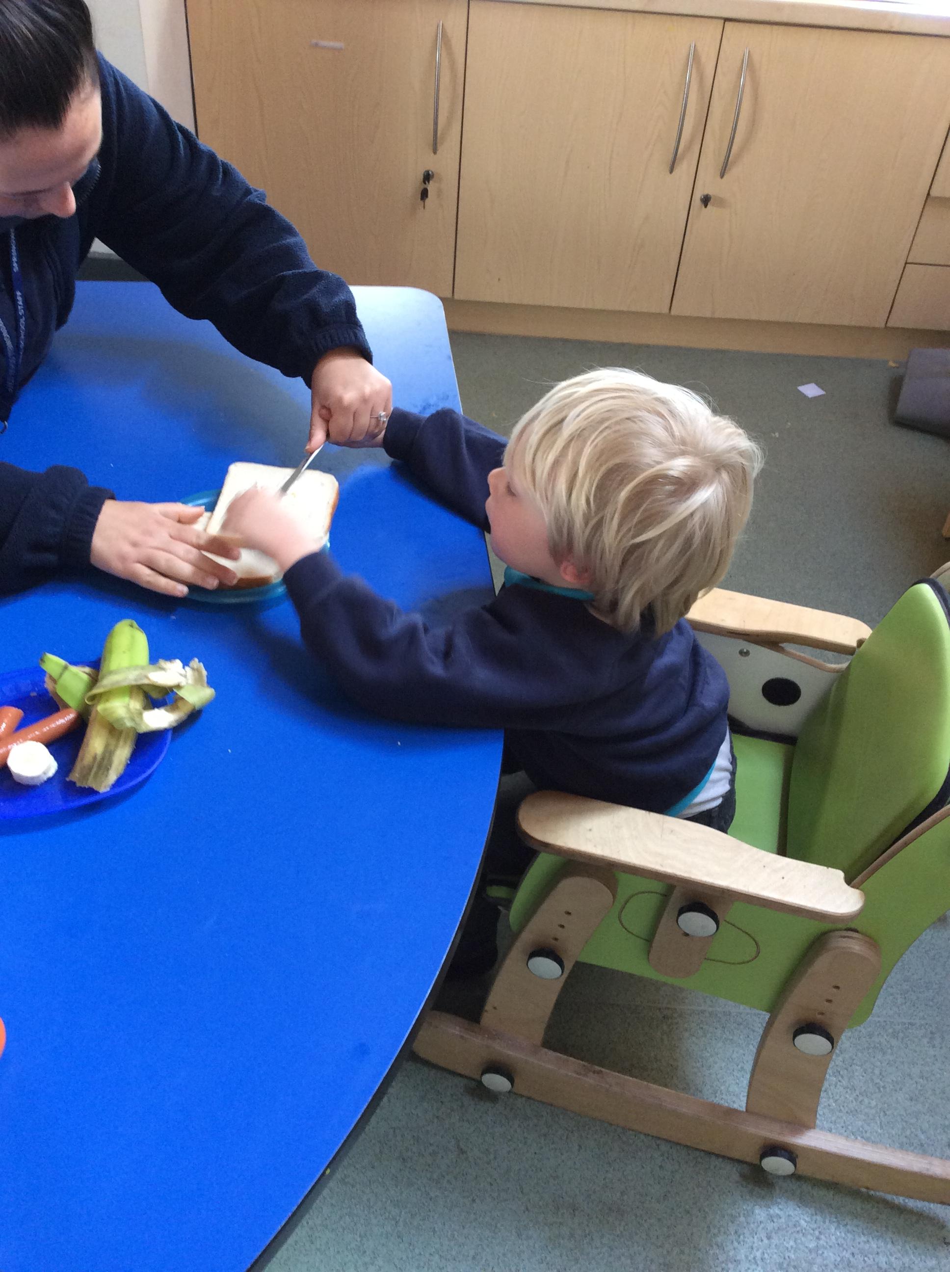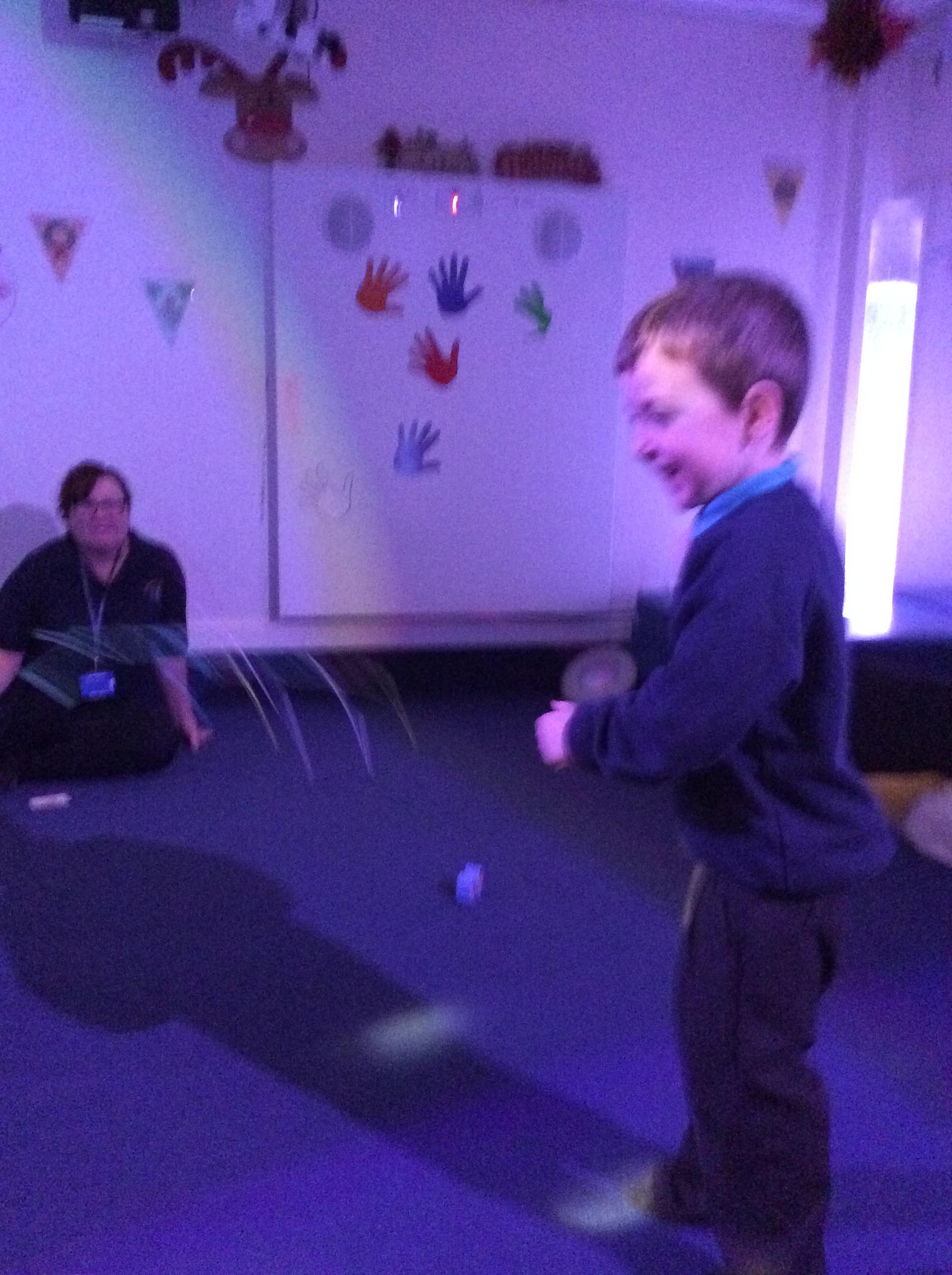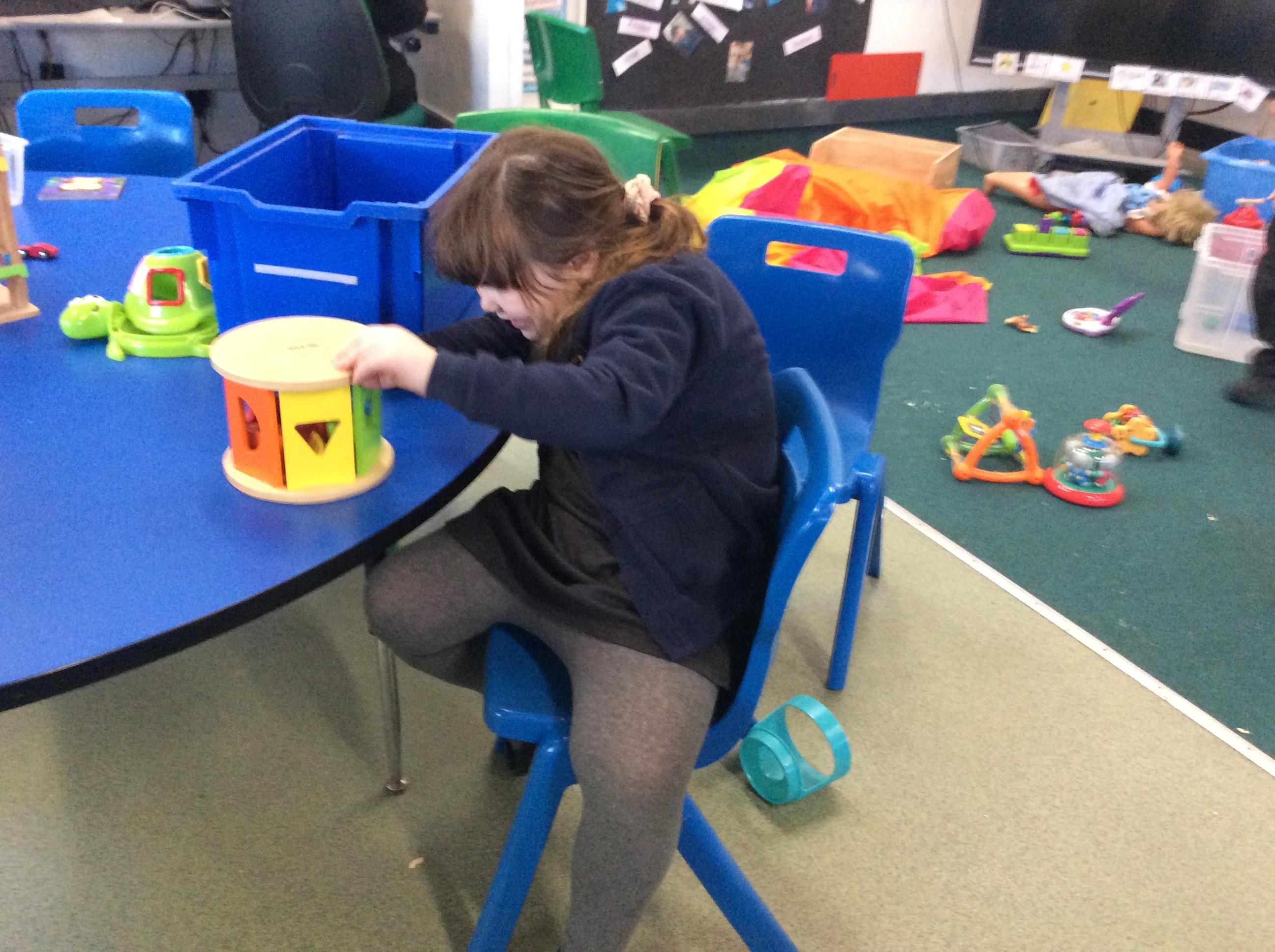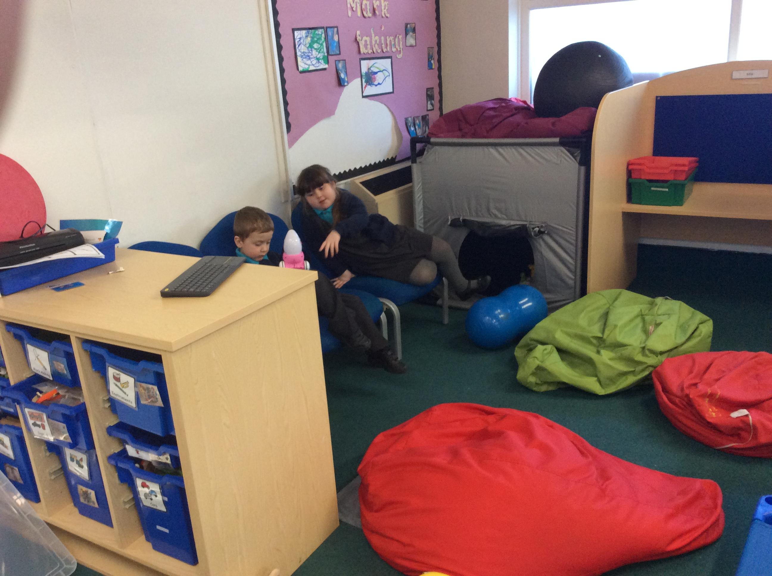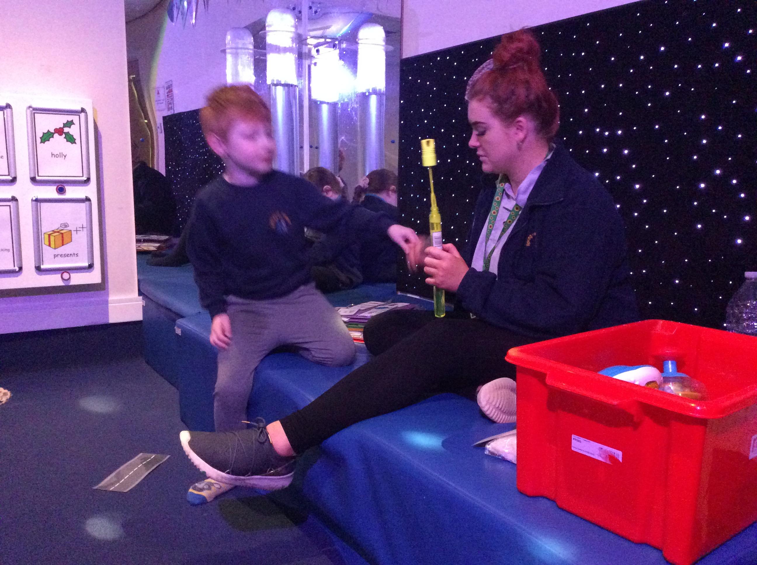 They follow a highly sensory, play based curriculum that provides them with targeted work to develop their independence, exploration, communication and interaction. The curriculum they follow includes (but is not exclusive to) Sensory Stories, TAC-PAC, Symbol Exchange, Attention Autism, Intensive interaction, Rebound, Soft Play, Swimming/Hydrotherapy, work-box, and local library and community visits. These complement our exploratory EYFS based activities both in class, and in our outside area.