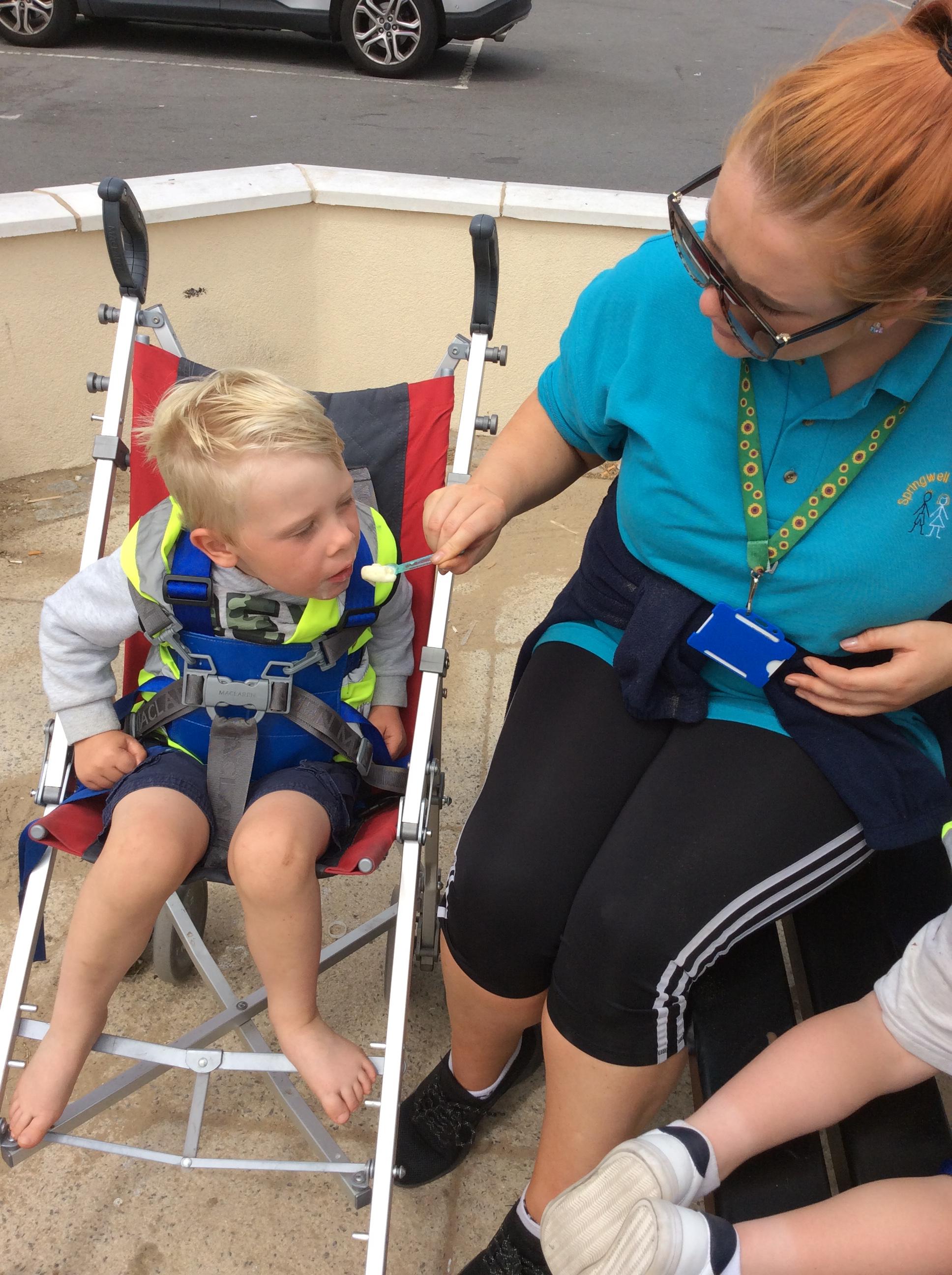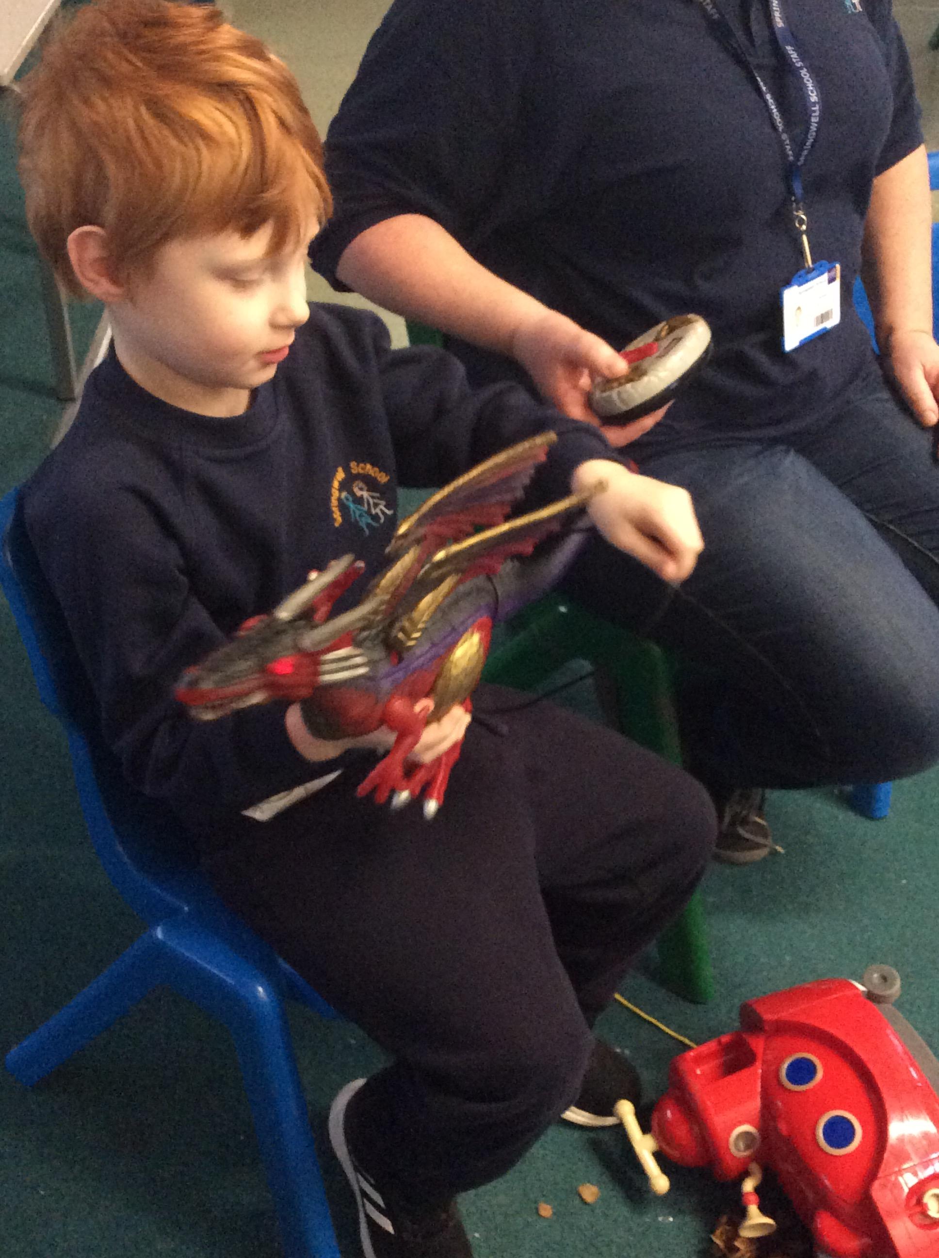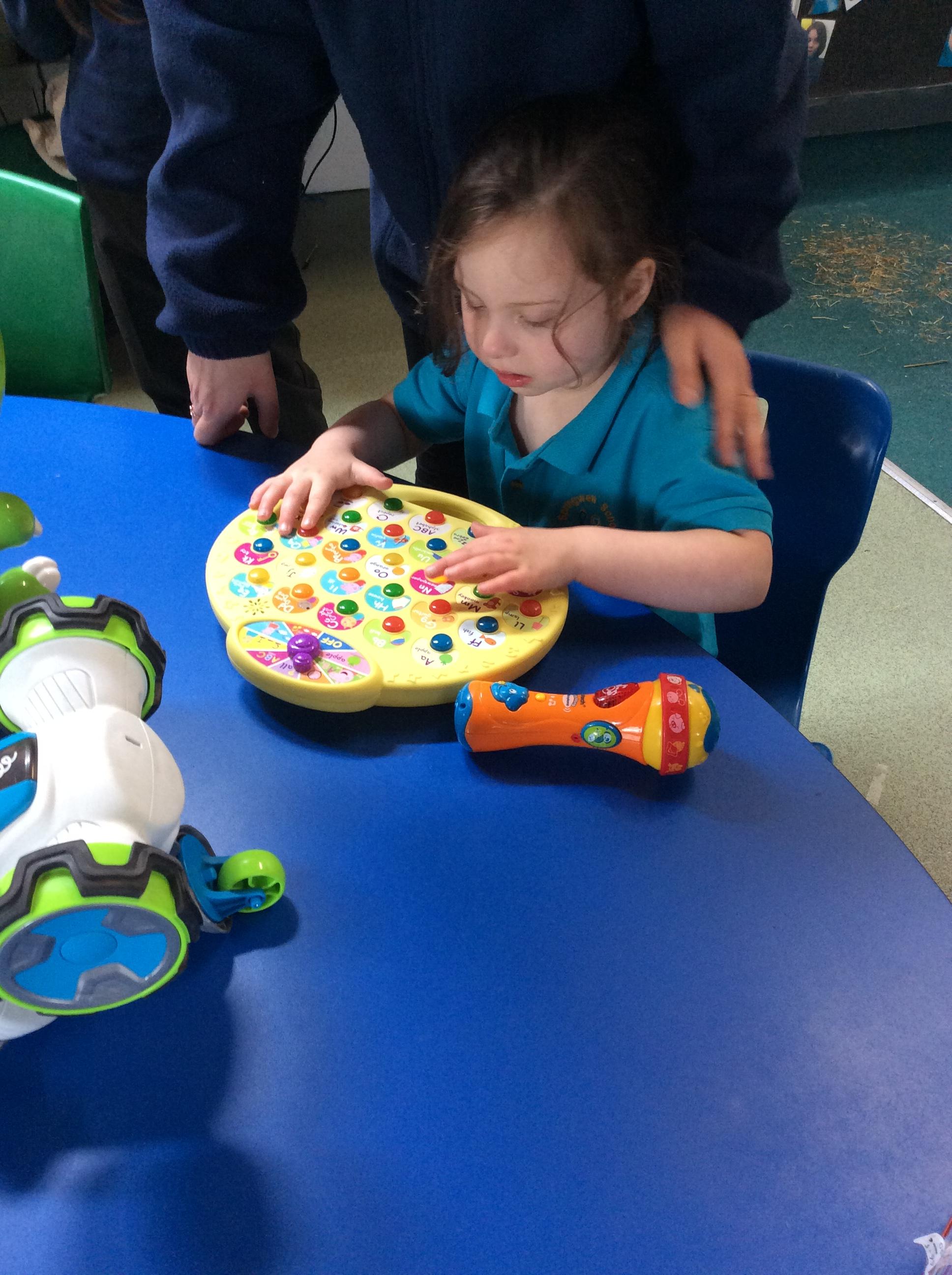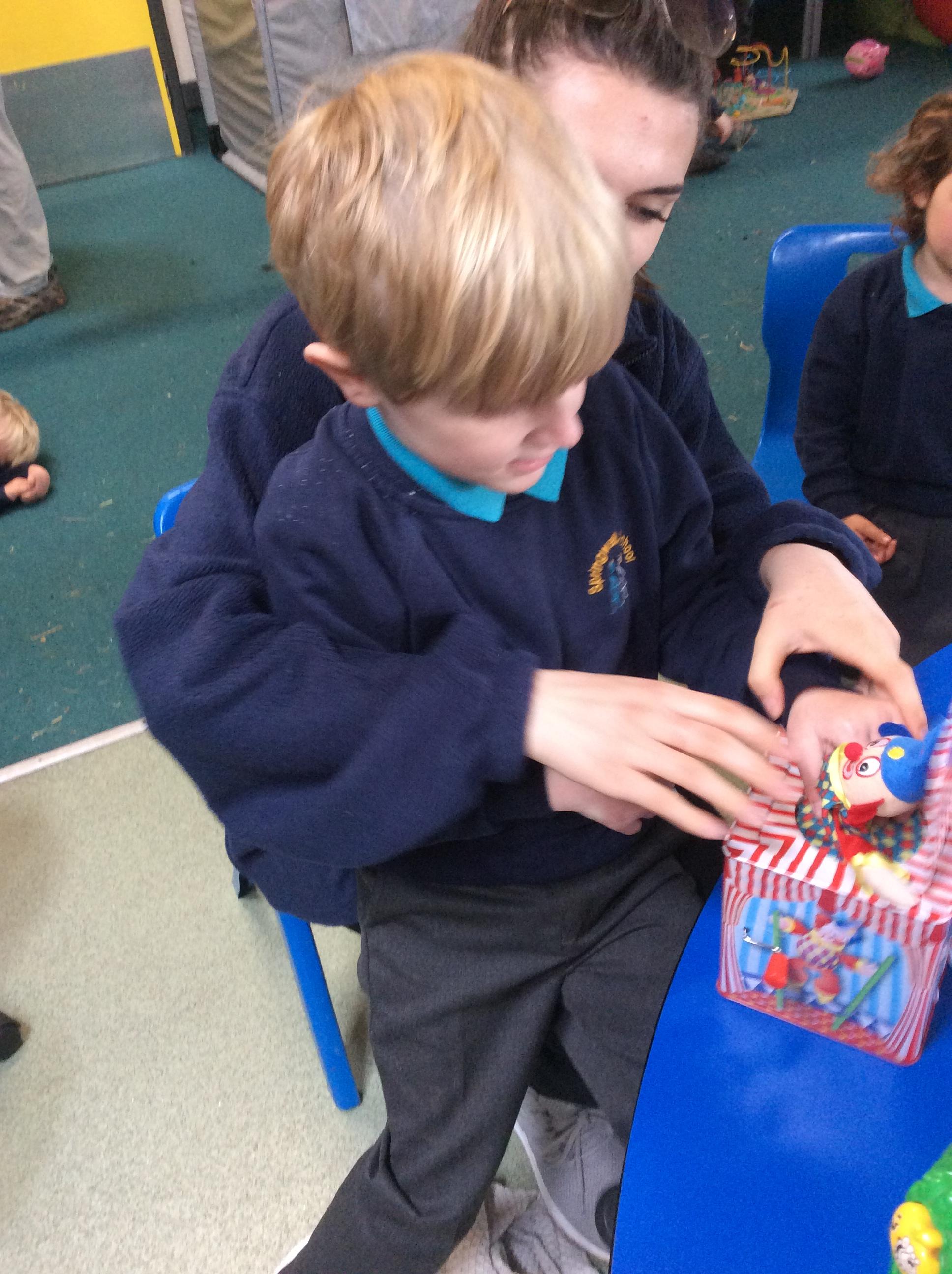 They follow a highly sensory, play based curriculum that provides them with targeted work to develop their independence, exploration, communication and interaction. The curriculum they follow includes (but is not exclusive to) Sensory Stories, TAC-PAC, Symbol Exchange, Attention Autism, Intensive interaction, Rebound, Soft Play, Swimming/Hydrotherapy, work-box, and local library and community visits. These complement our exploratory EYFS based activities both in class, and in our outside area.