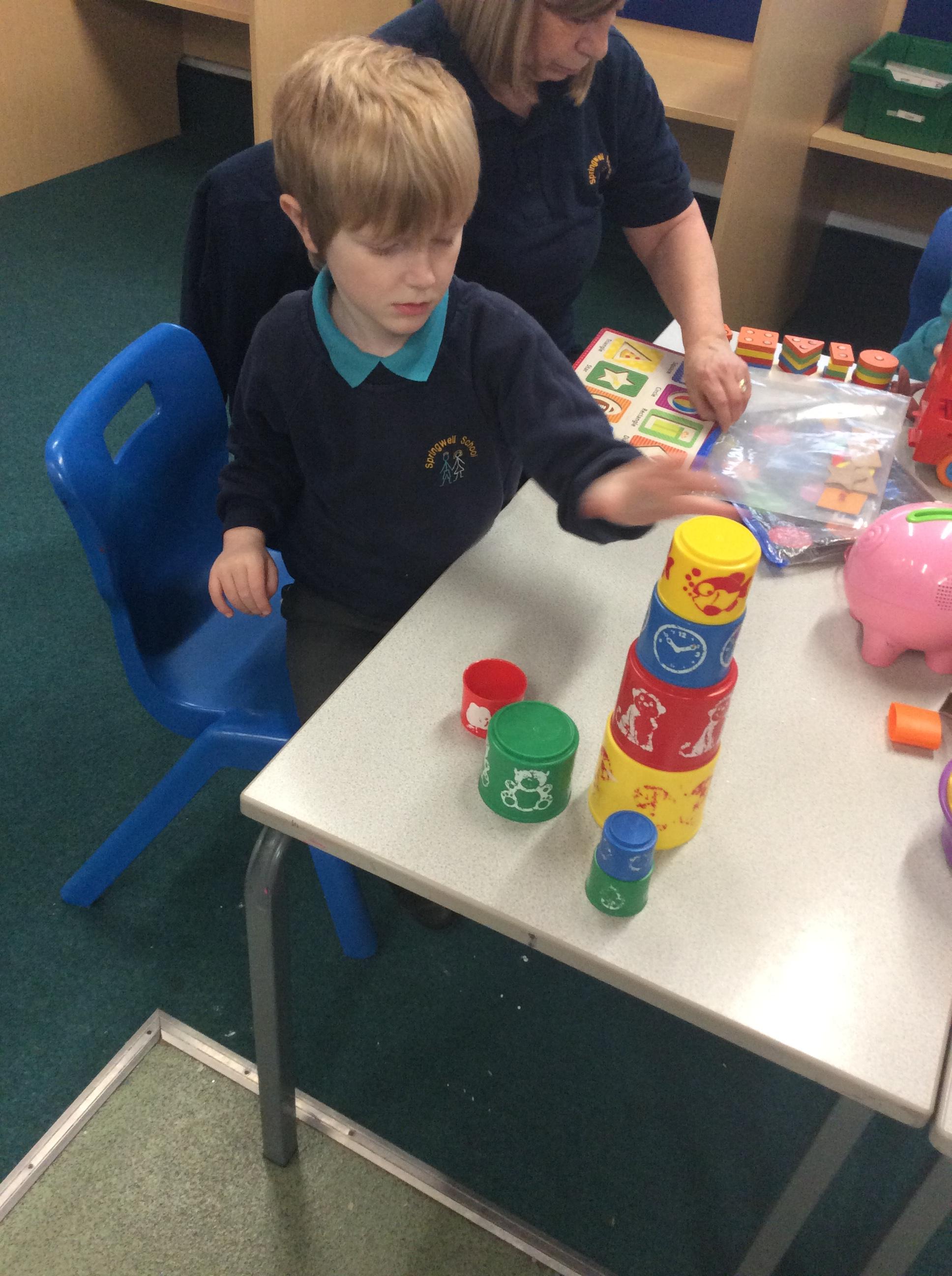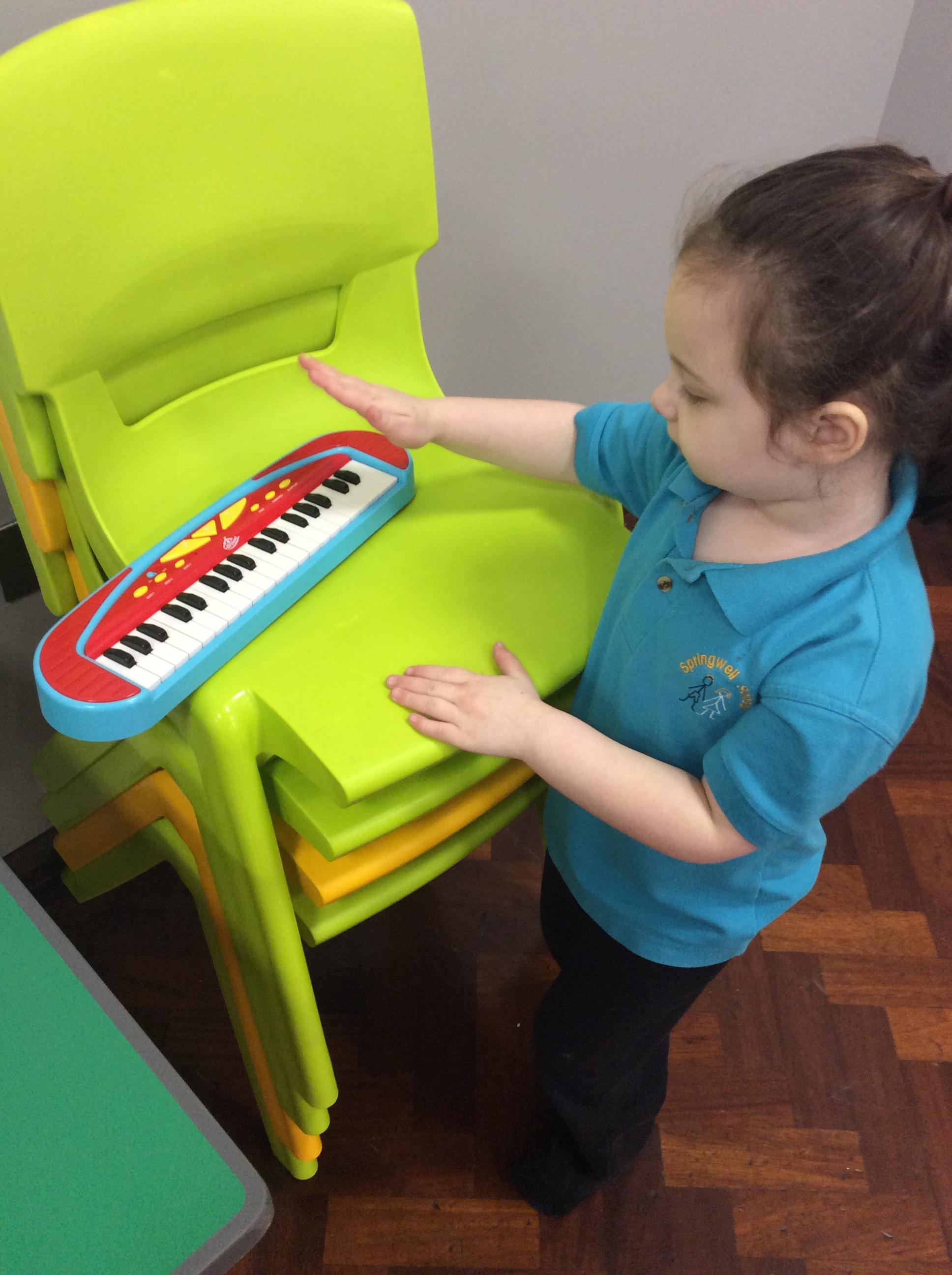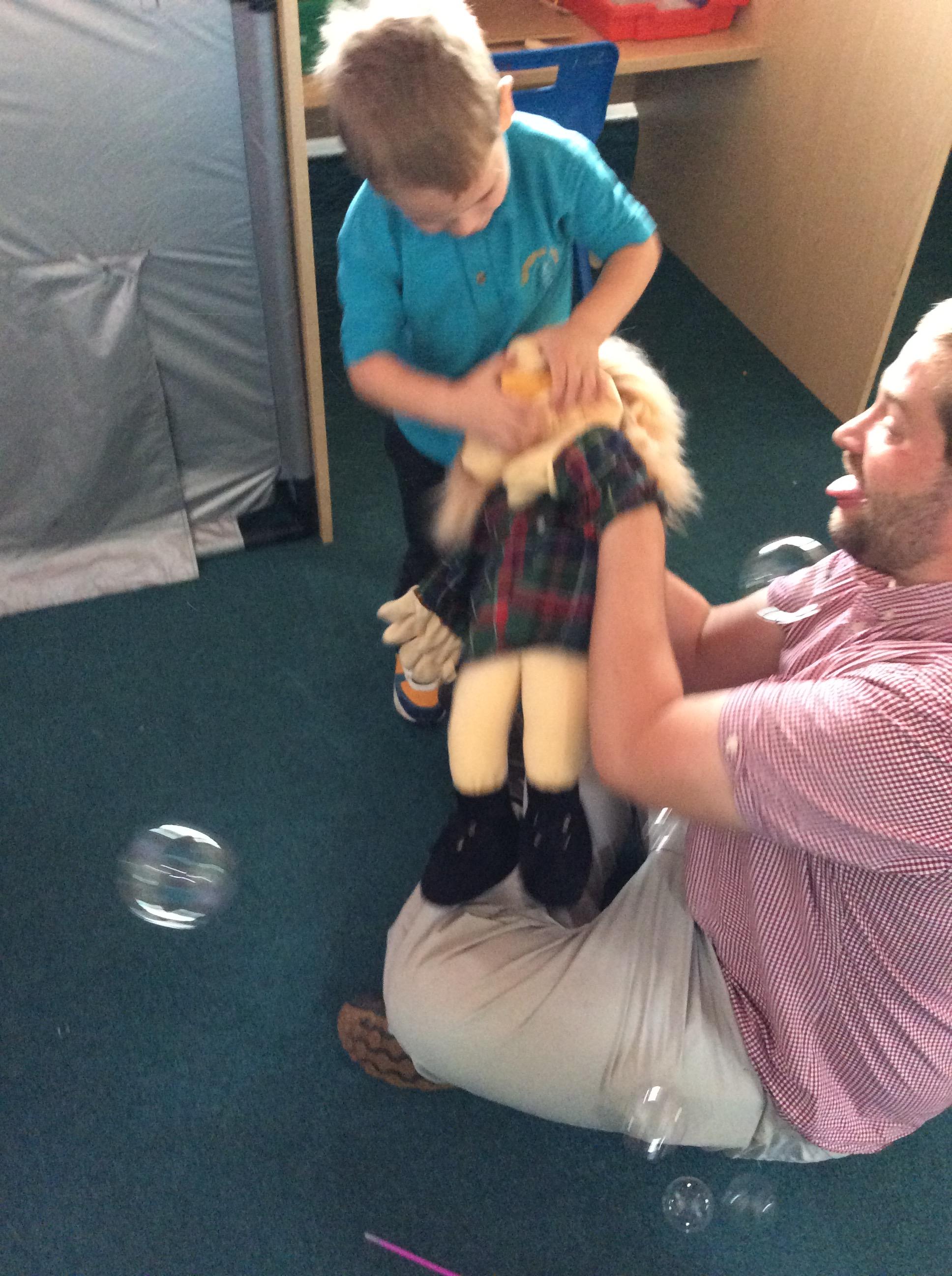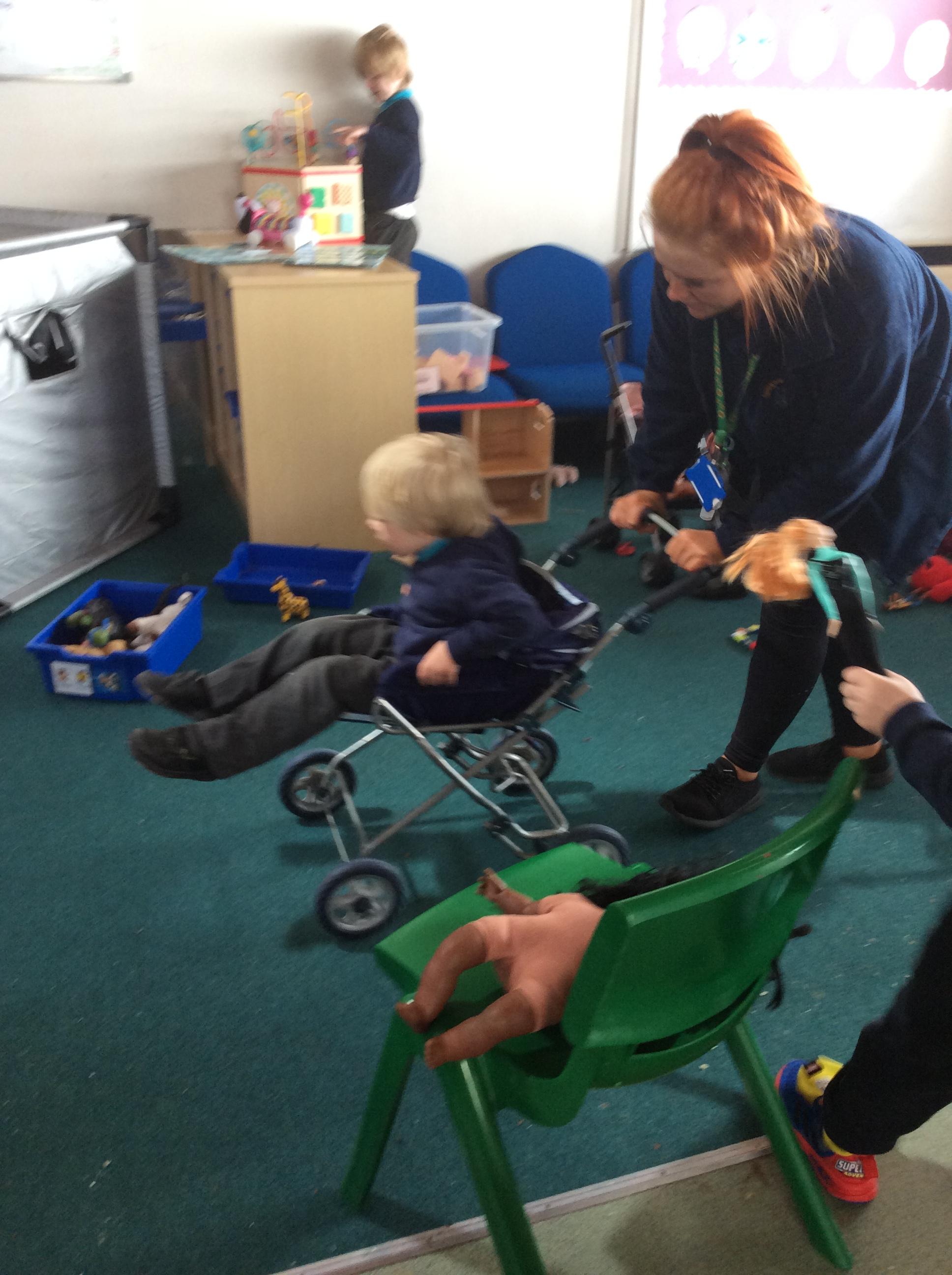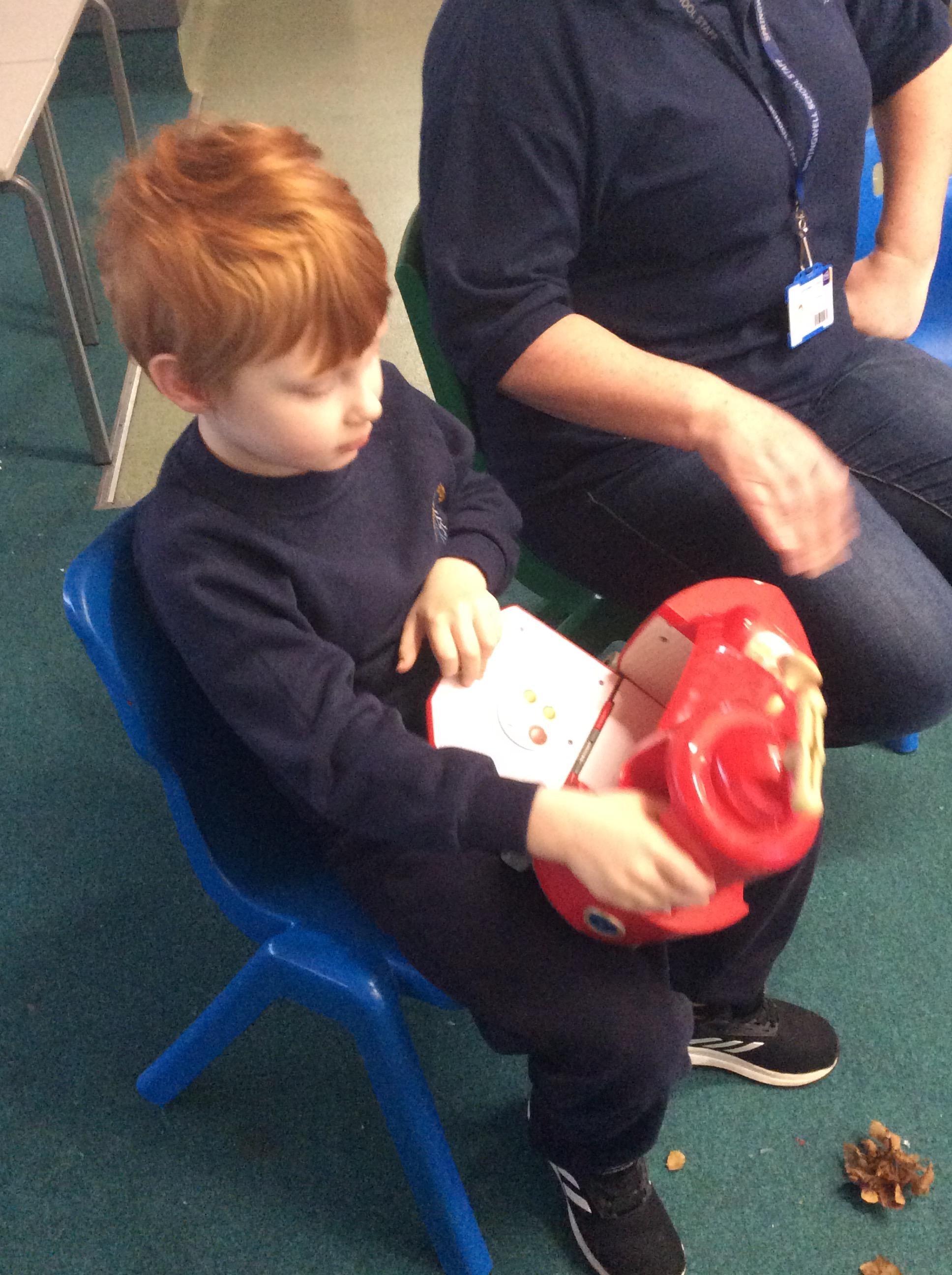 They follow a highly sensory, play based curriculum that provides them with targeted work to develop their independence, exploration, communication and interaction. The curriculum they follow includes (but is not exclusive to) Sensory Stories, TAC-PAC, Symbol Exchange, Attention Autism, Intensive interaction, Rebound, Soft Play, Swimming/Hydrotherapy, work-box, and local library and community visits. These complement our exploratory EYFS based activities both in class, and in our outside area.