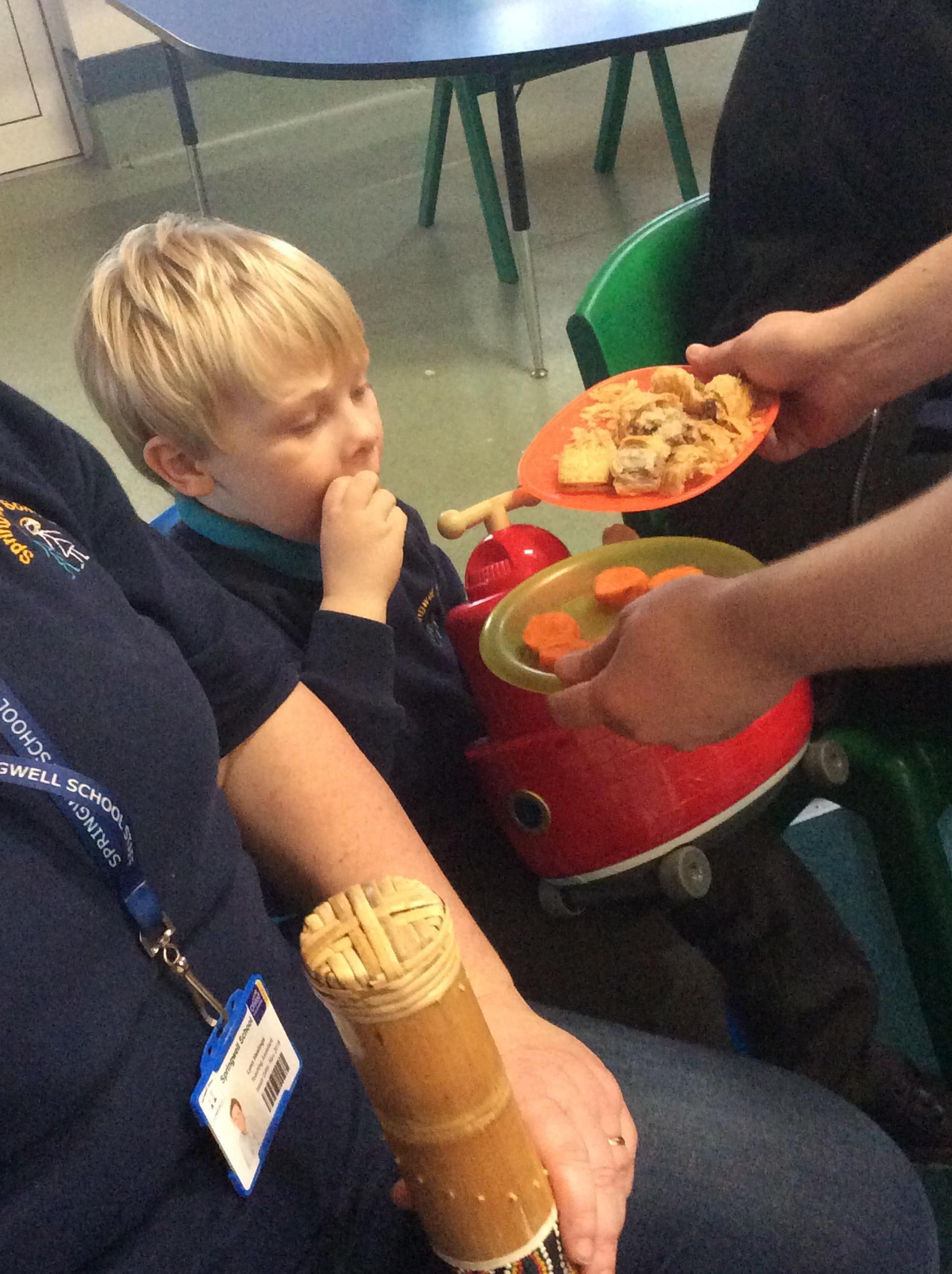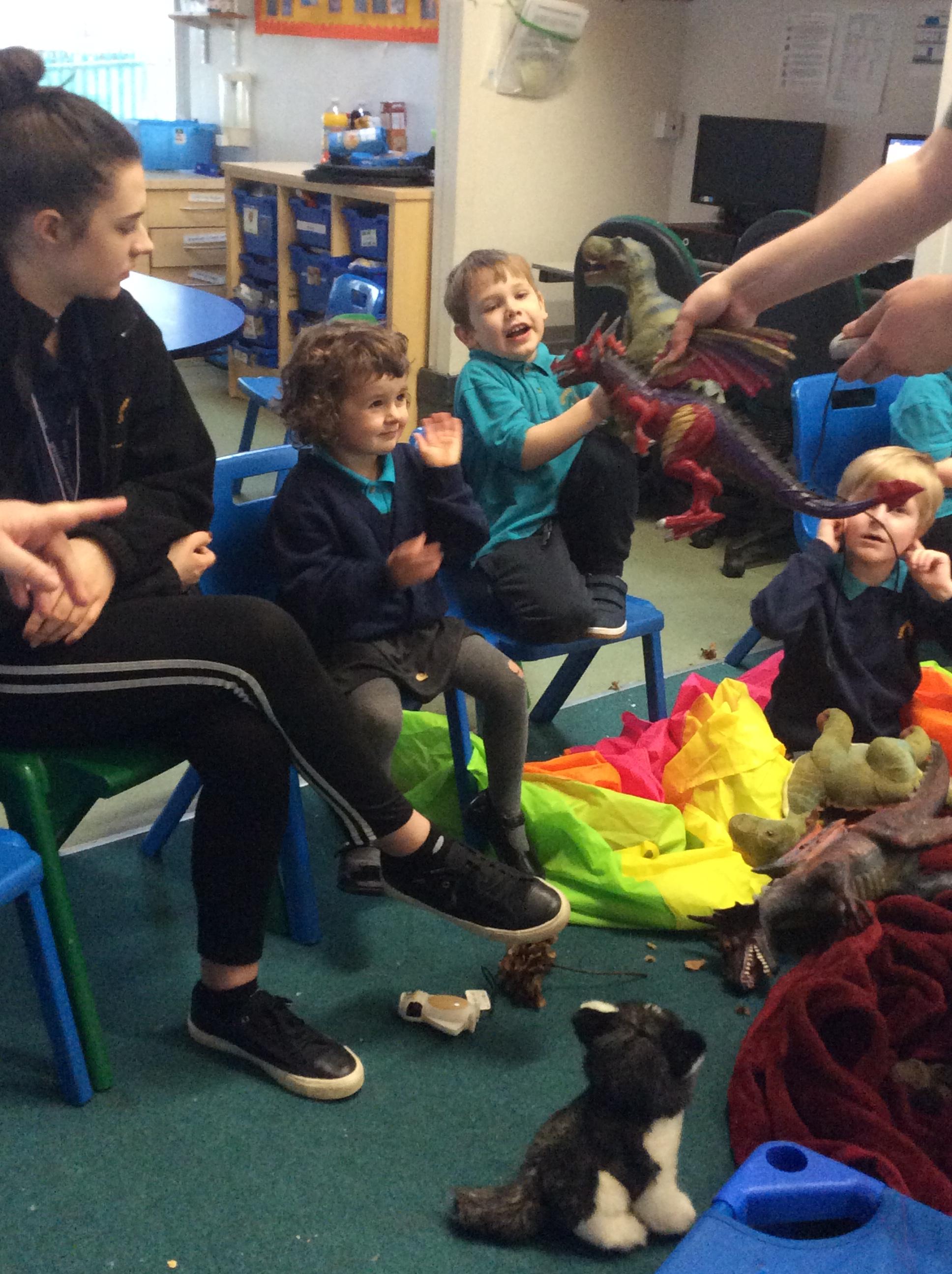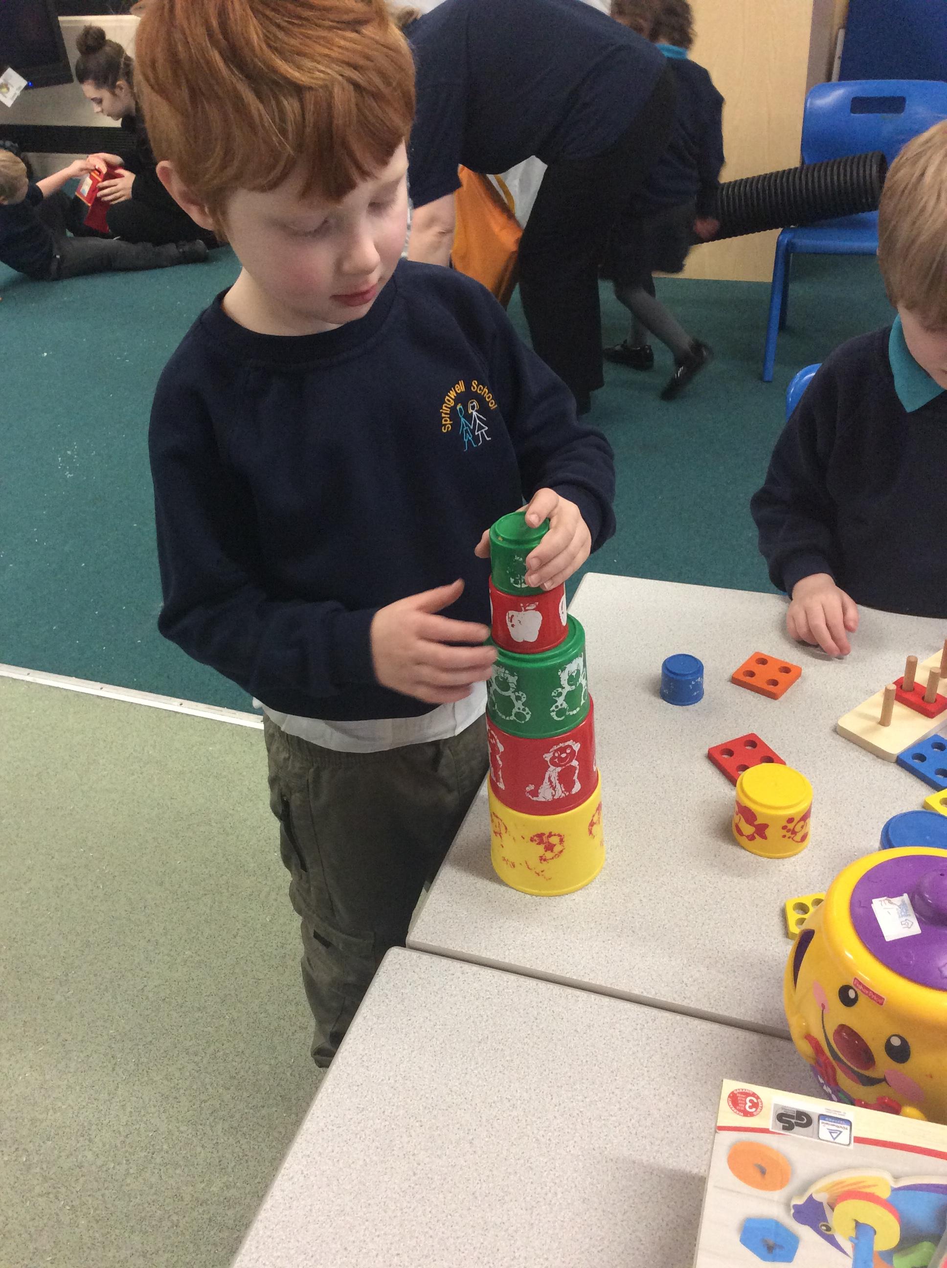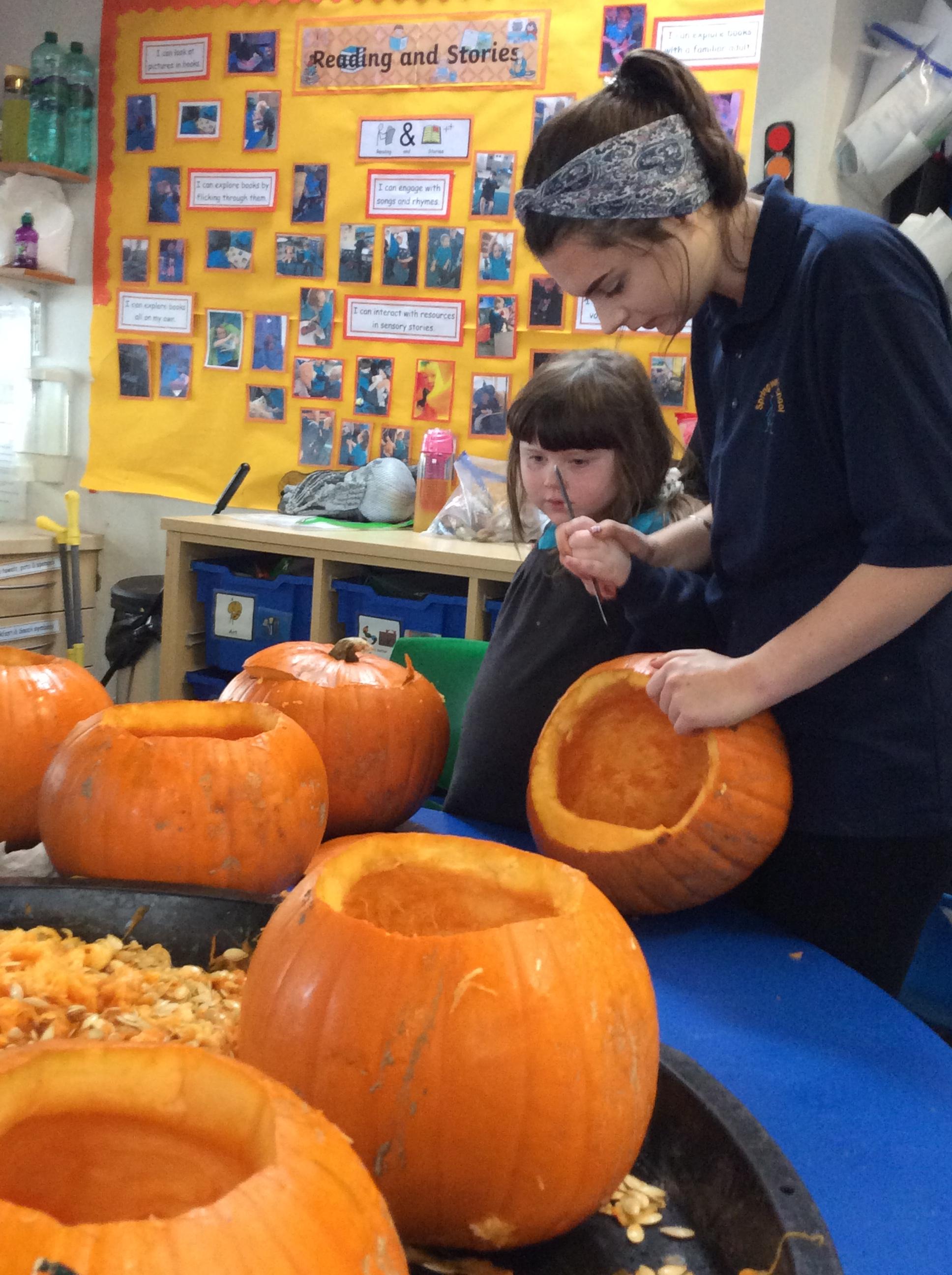 They follow a highly sensory, play based curriculum that provides them with targeted work to develop their independence, exploration, communication and interaction. The curriculum they follow includes (but is not exclusive to) Sensory Stories, TAC-PAC, Symbol Exchange, Attention Autism, Intensive interaction, Rebound, Soft Play, Swimming/Hydrotherapy, work-box, and local library and community visits. These complement our exploratory EYFS based activities both in class, and in our outside area.