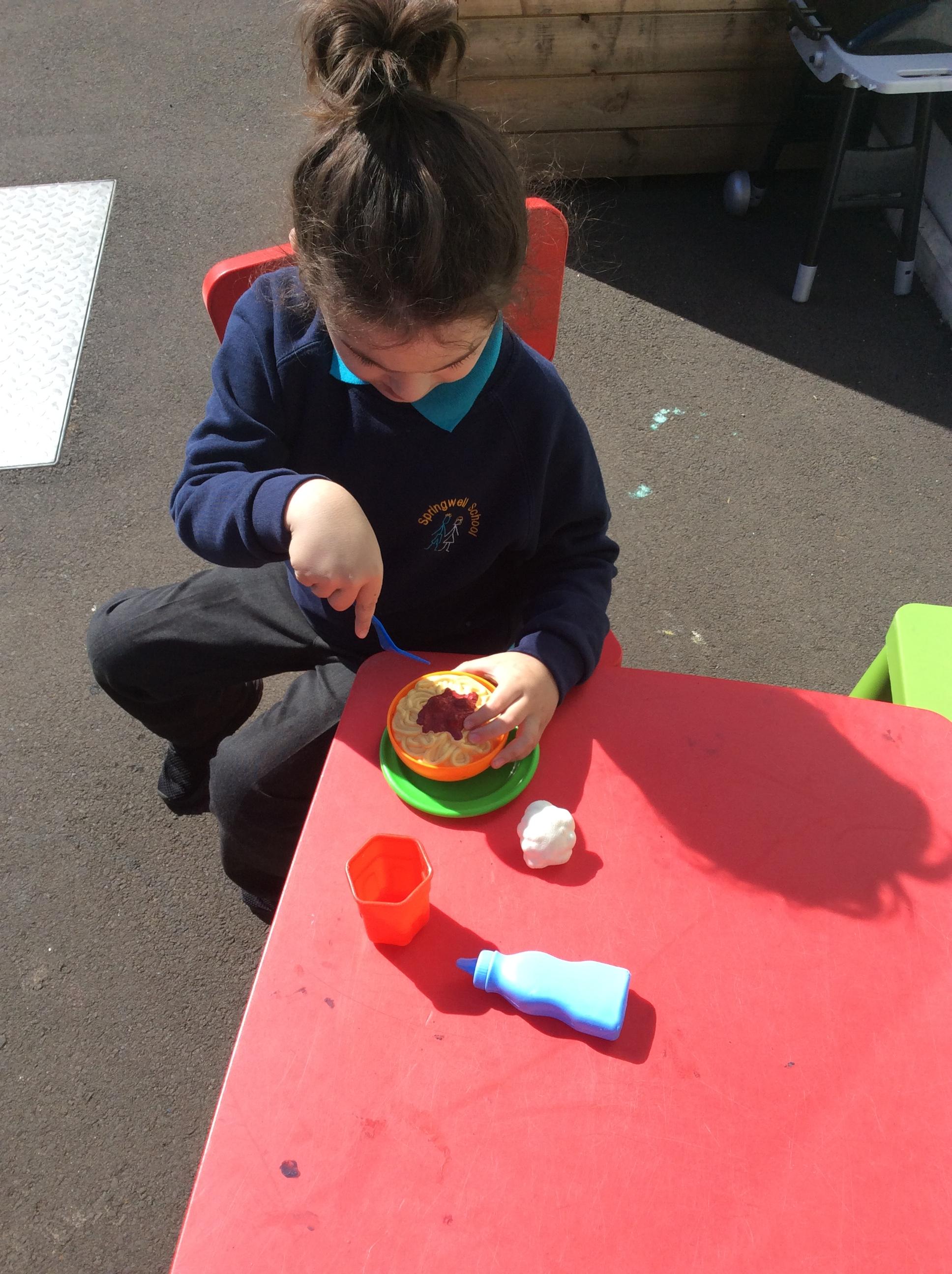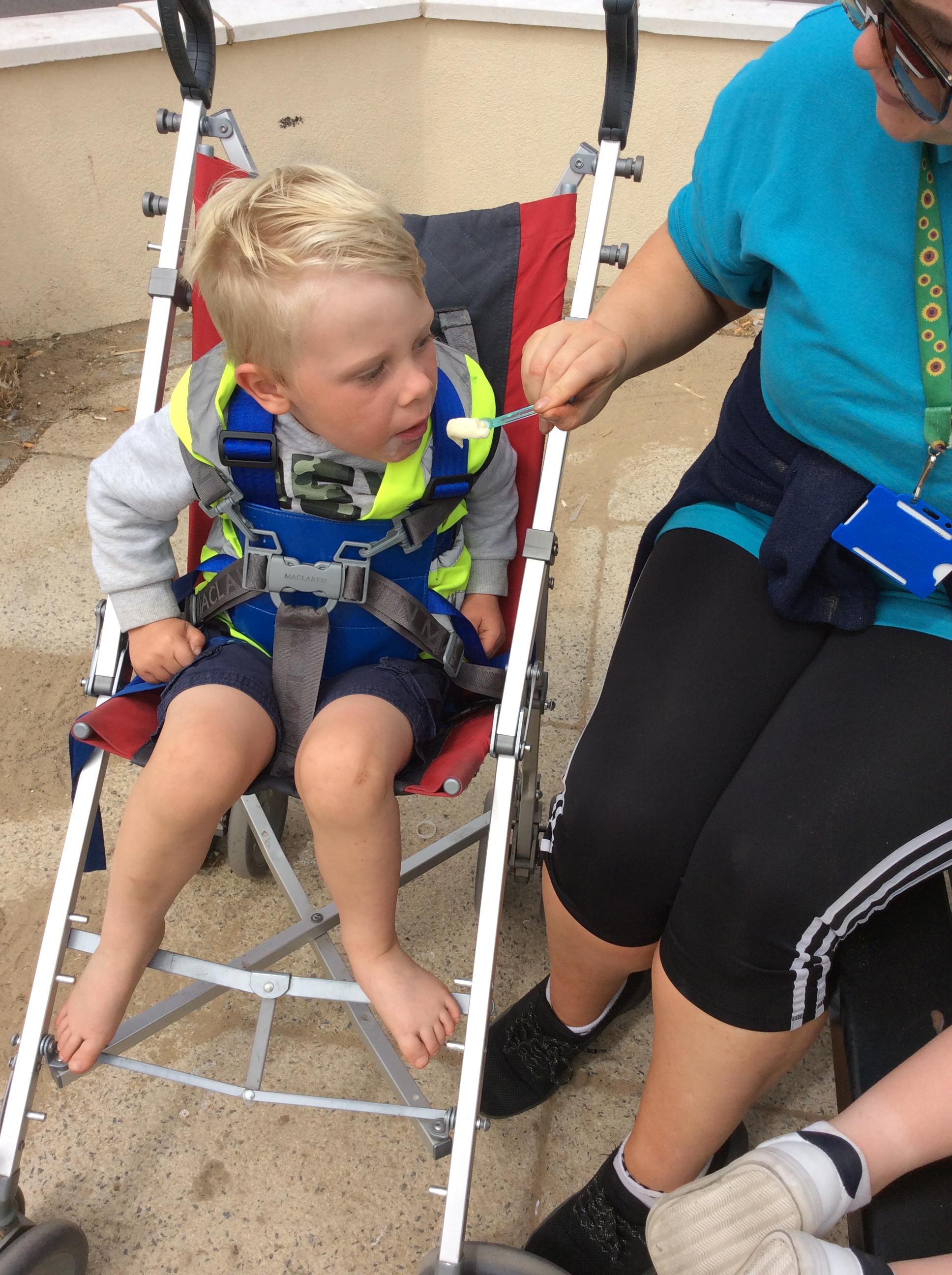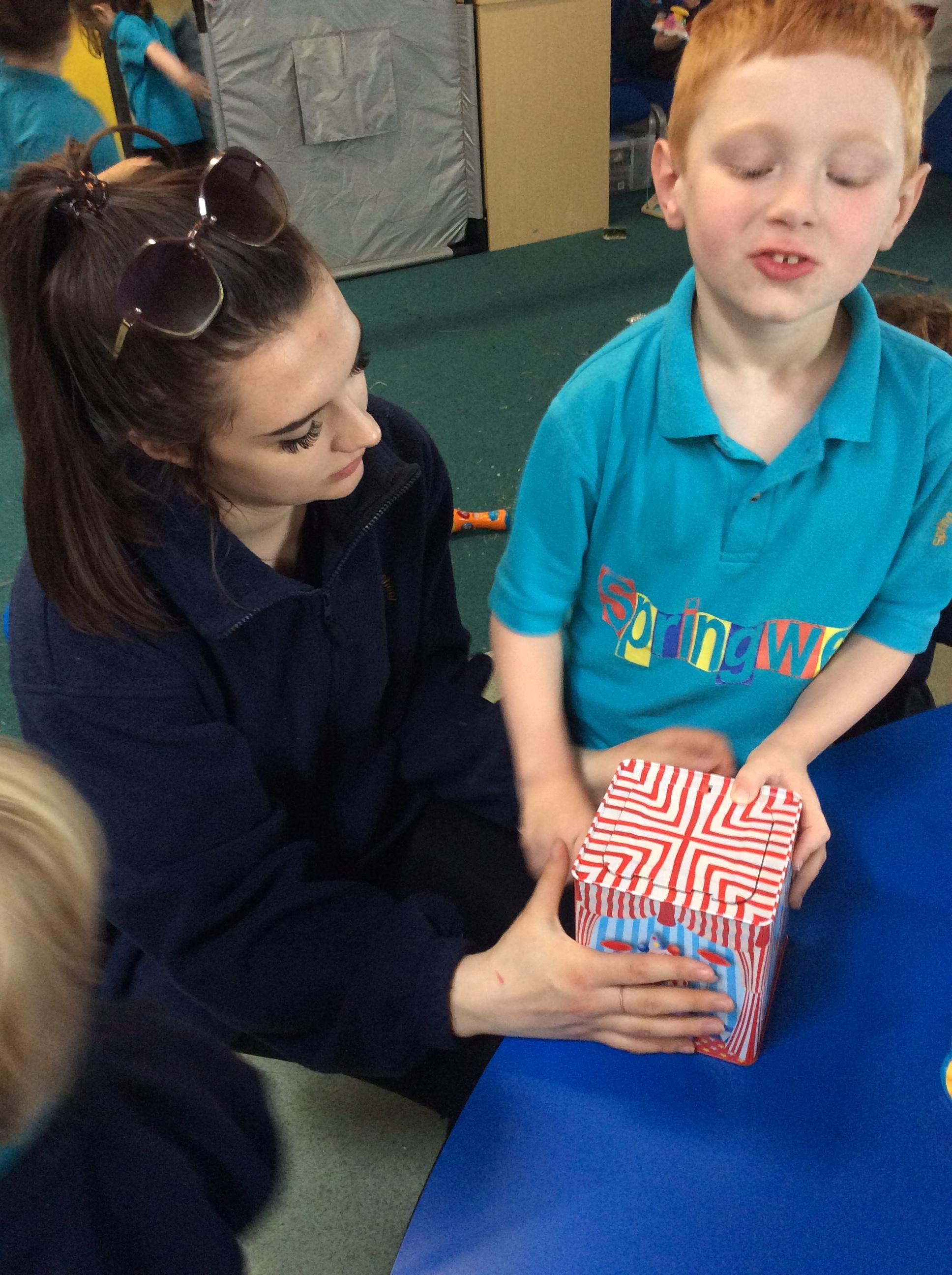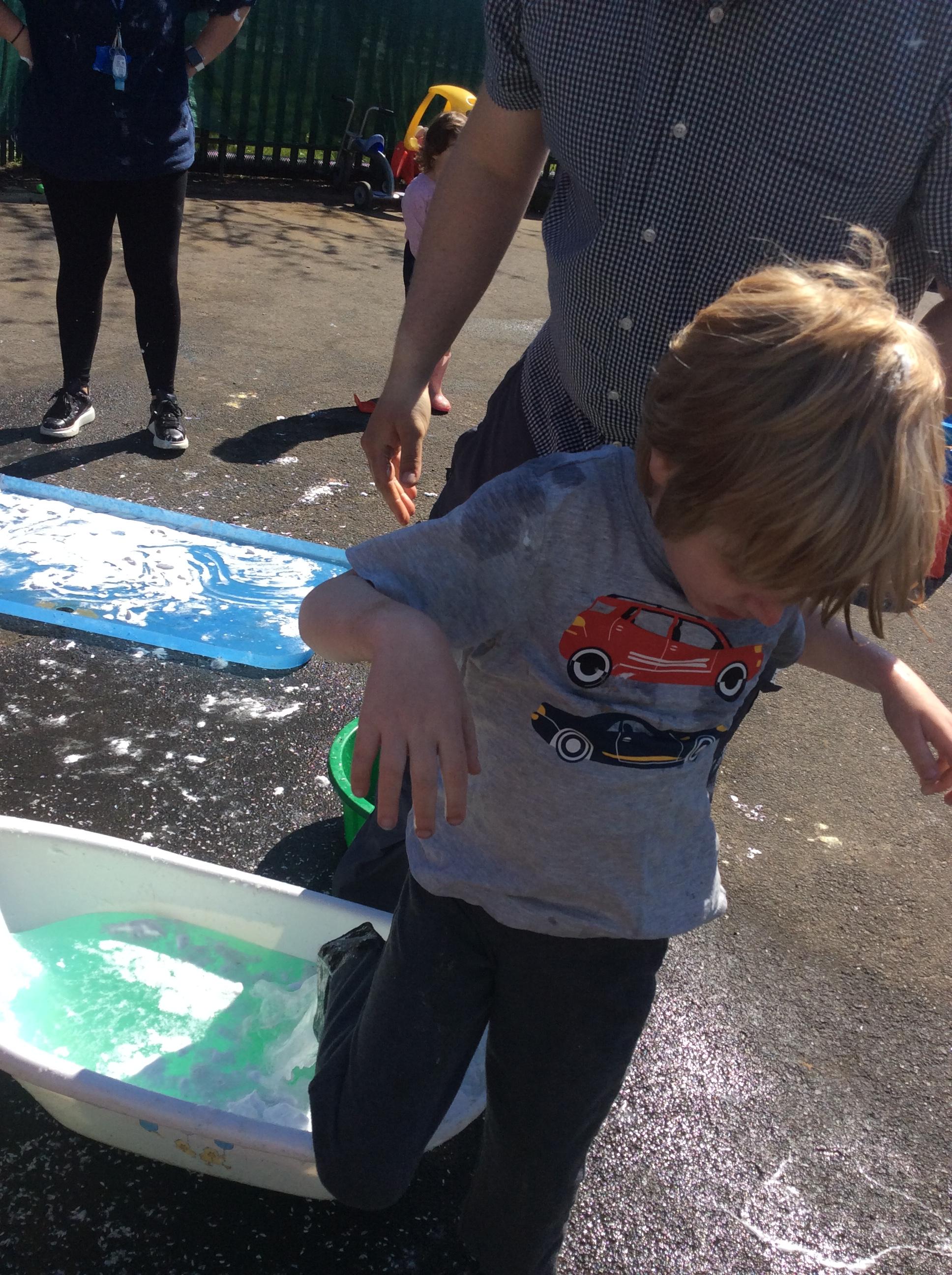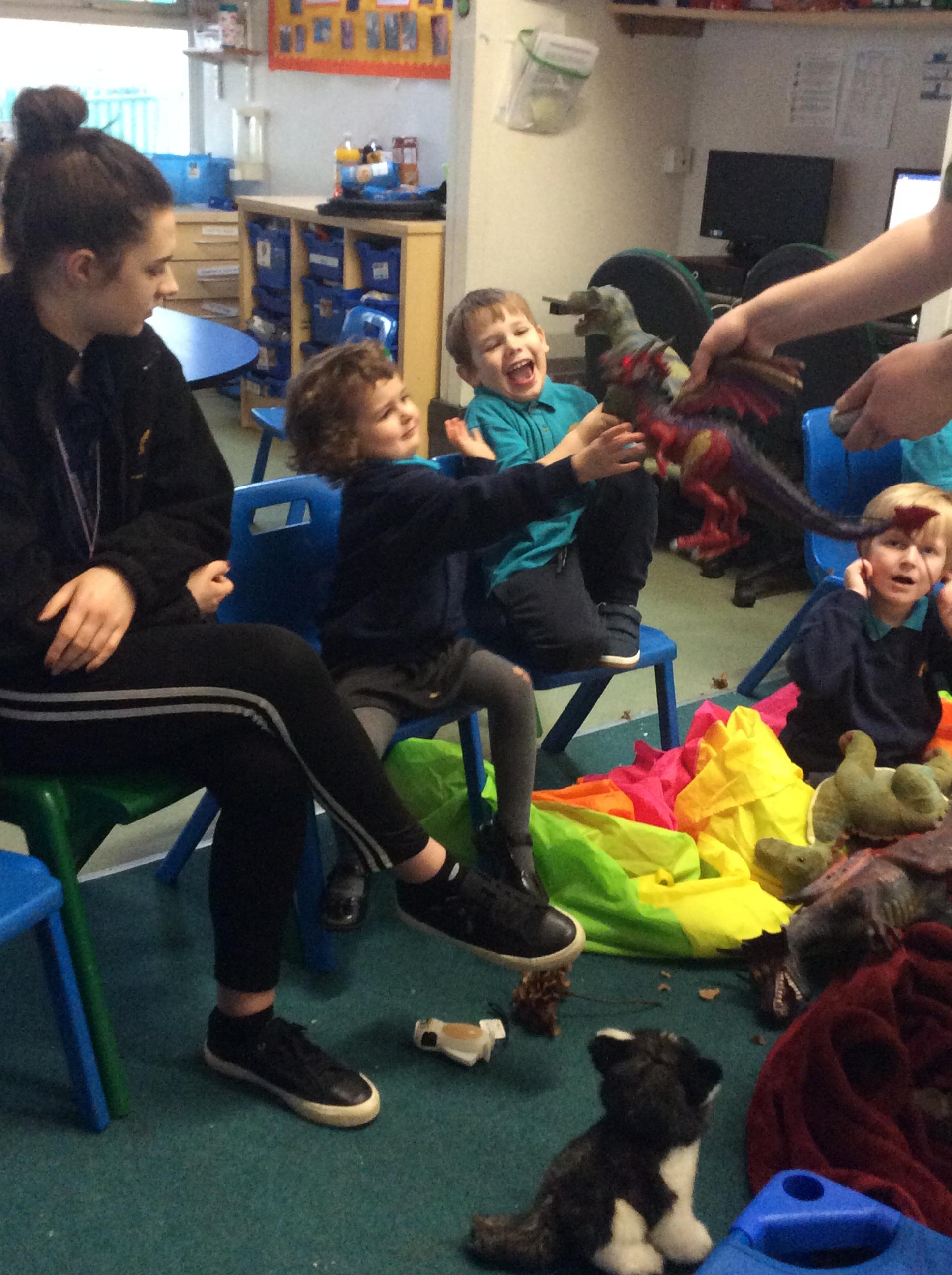 They follow a highly sensory, play based curriculum that provides them with targeted work to develop their independence, exploration, communication and interaction. The curriculum they follow includes (but is not exclusive to) Sensory Stories, TAC-PAC, Symbol Exchange, Attention Autism, Intensive interaction, Rebound, Soft Play, Swimming/Hydrotherapy, work-box, and local library and community visits. These complement our exploratory EYFS based activities both in class, and in our outside area.
