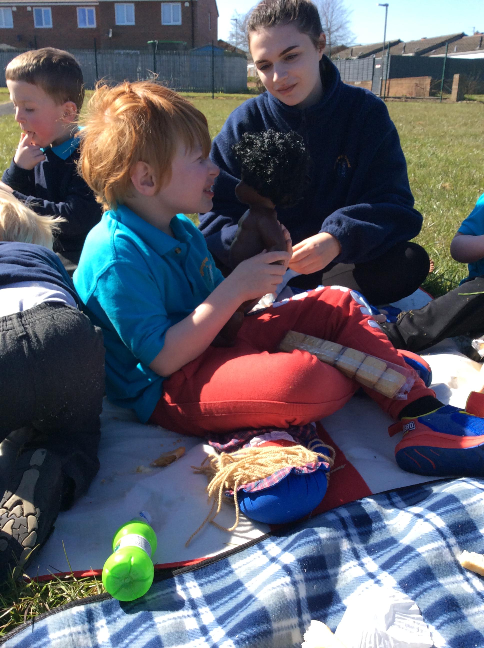 The children are supported in their learning by Sam (their teacher); Annette (their HLTA) ; Alisha, Katie, Fay and Lynn (their teaching assistants) and Caitlin (their apprentice teaching assistant)