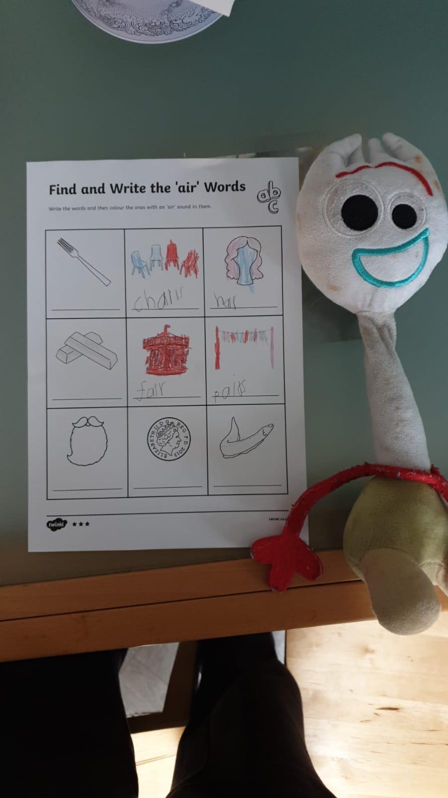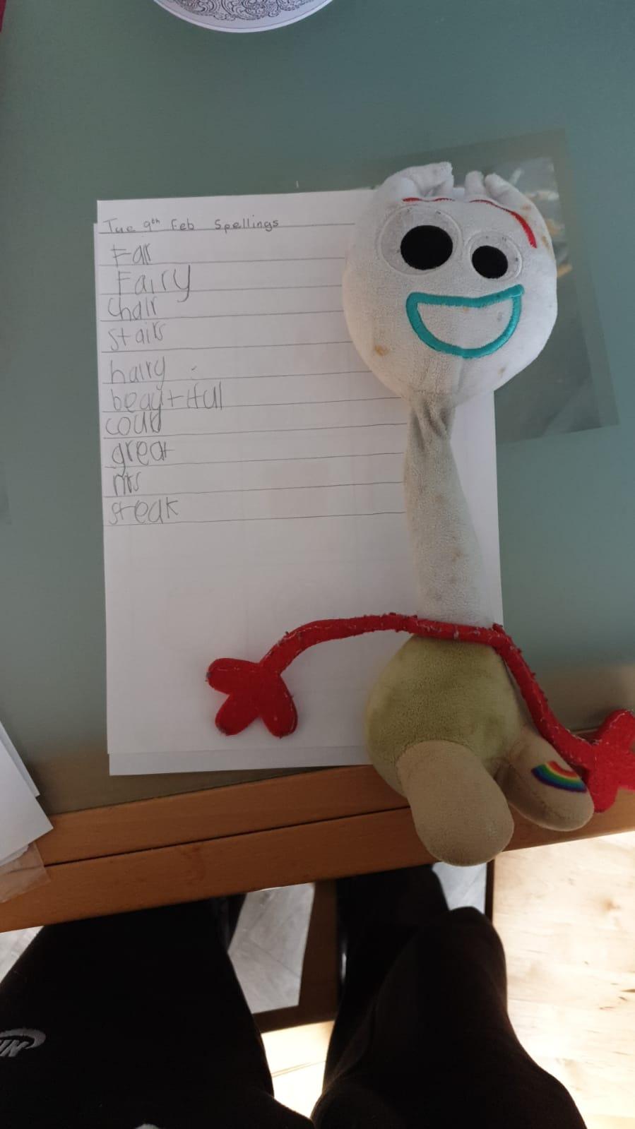 Isaac, Emily and Tyler working hard from home this week - including tying our shoe laces, looking at who keeps us safe online, letters and sounds work, maths work and spelling practice. Oh and don't forget having fun in the snow!