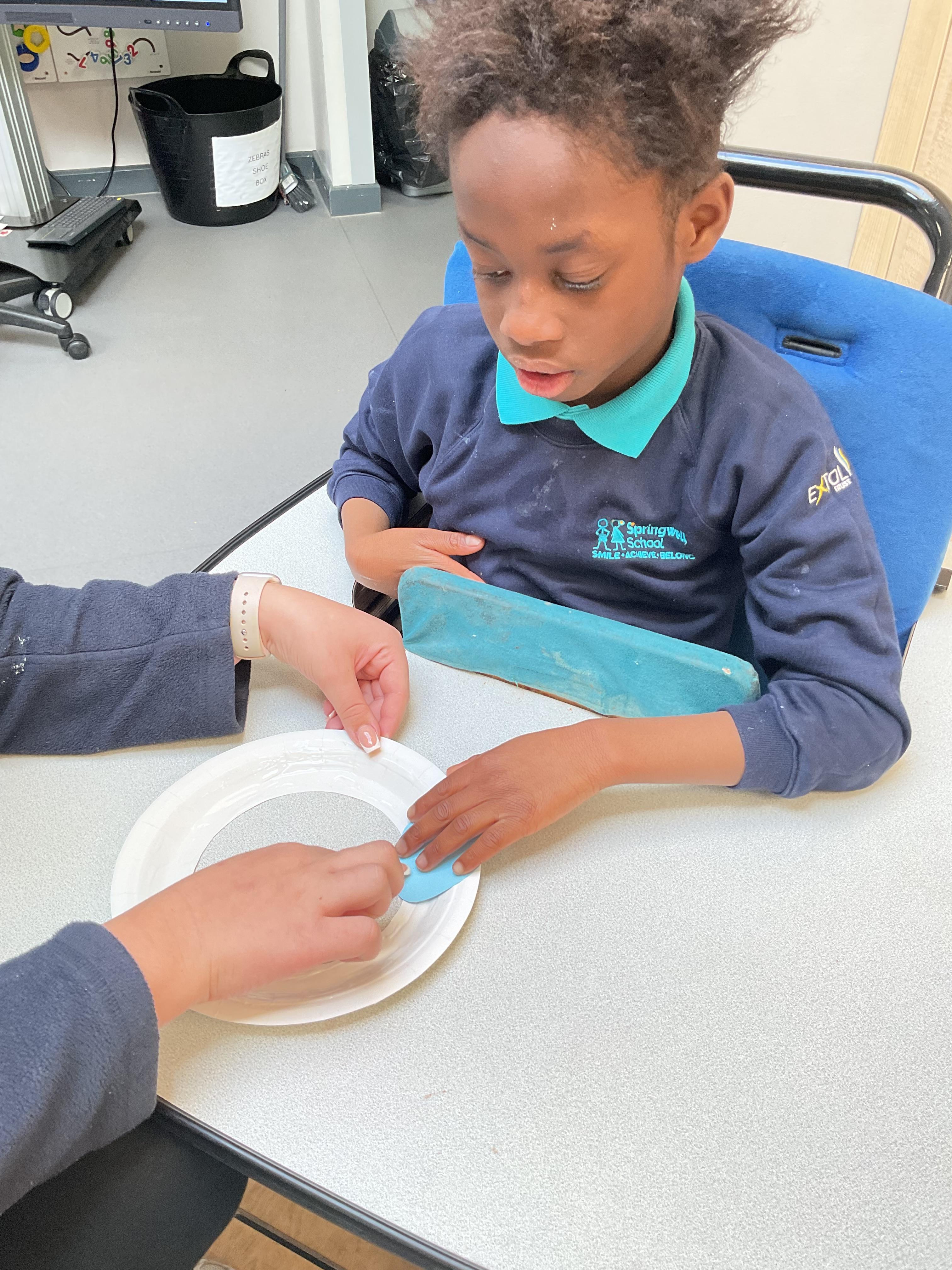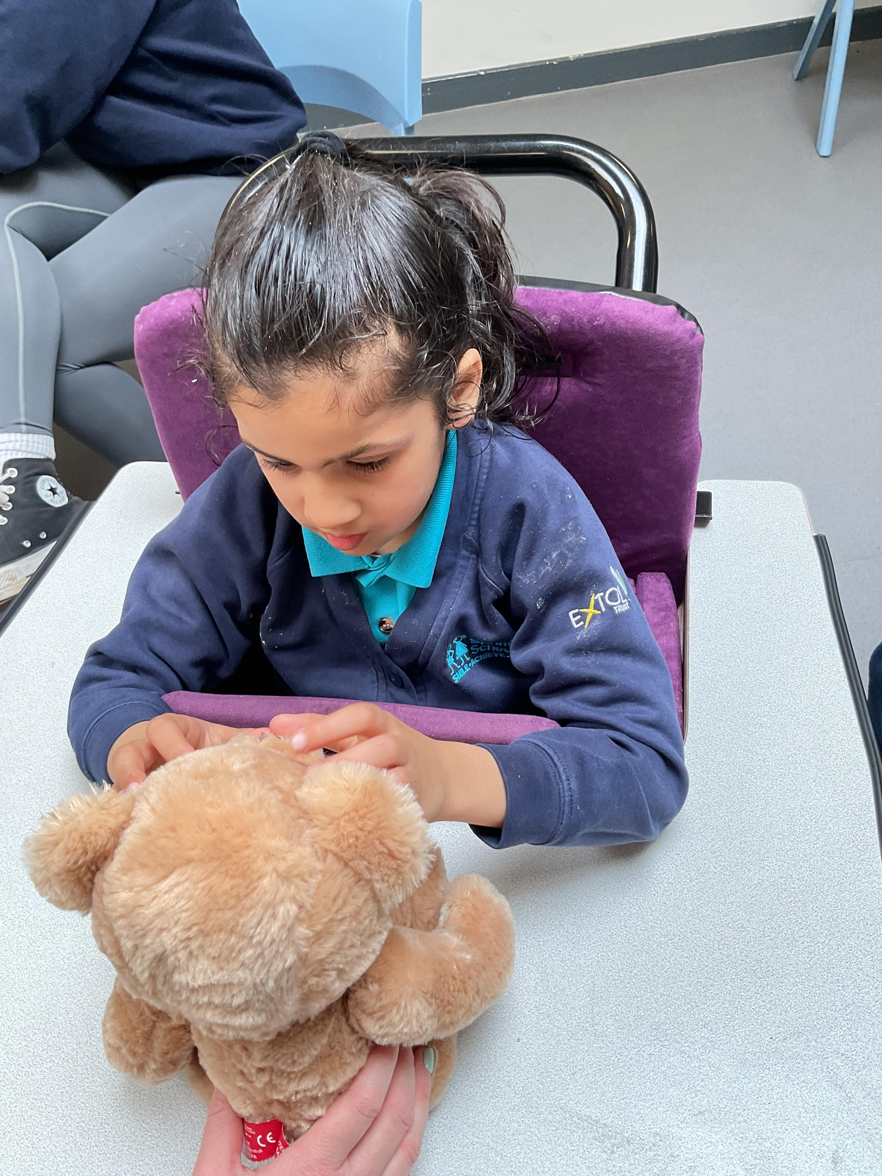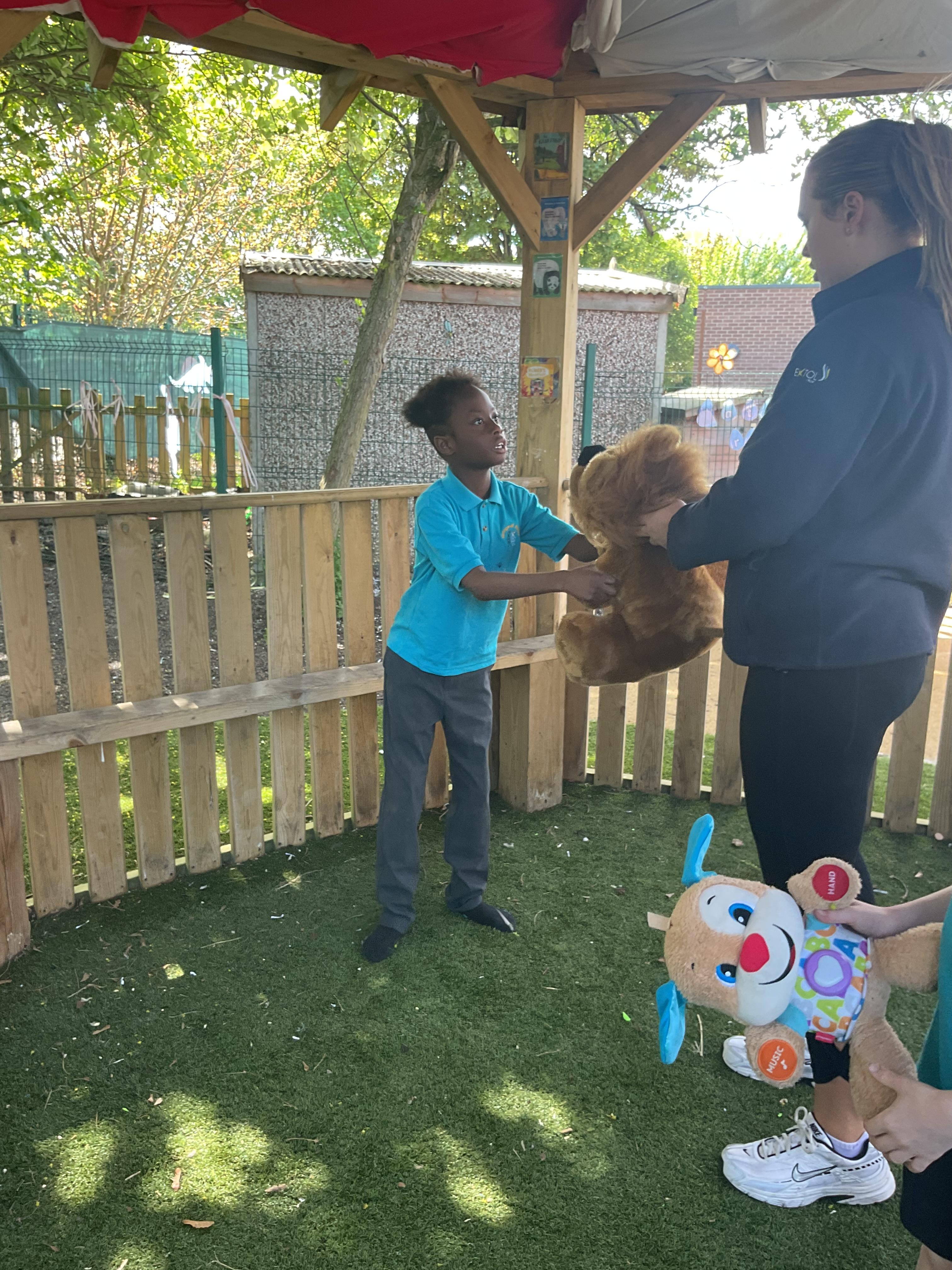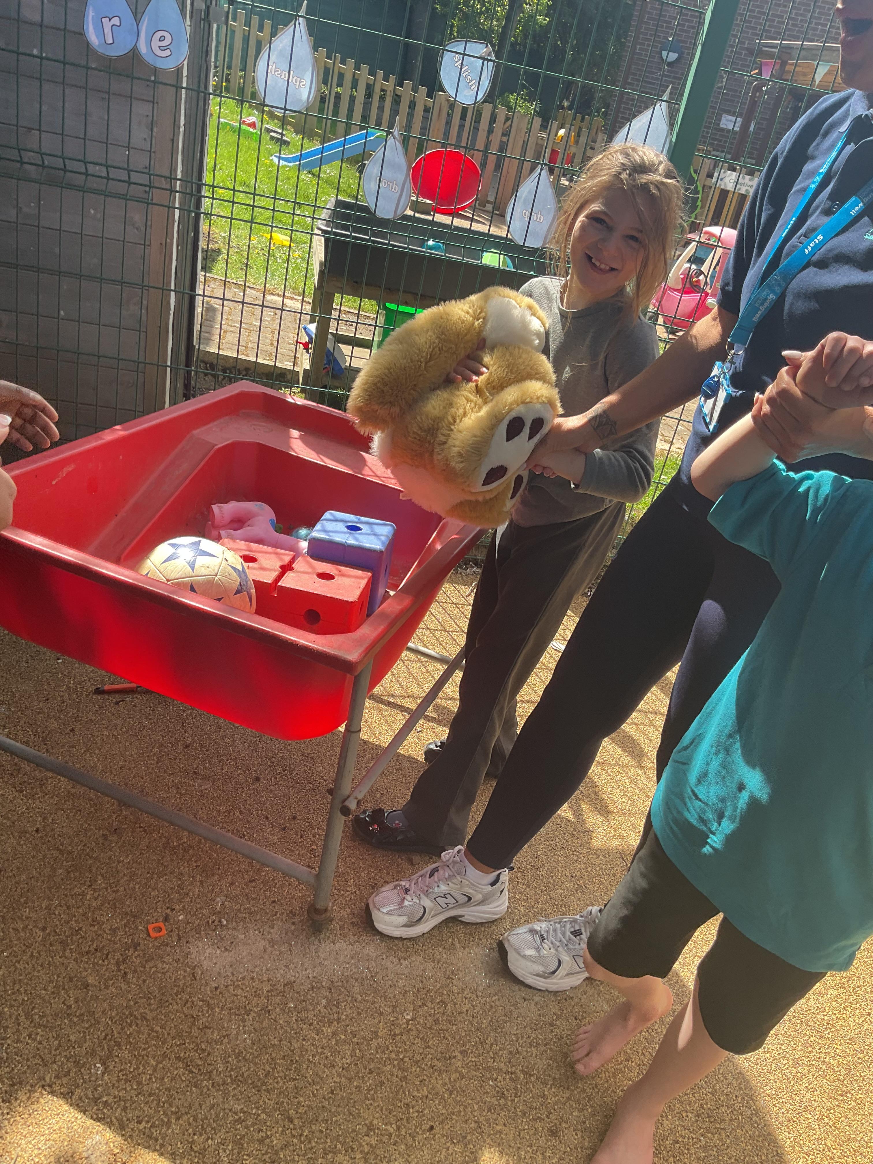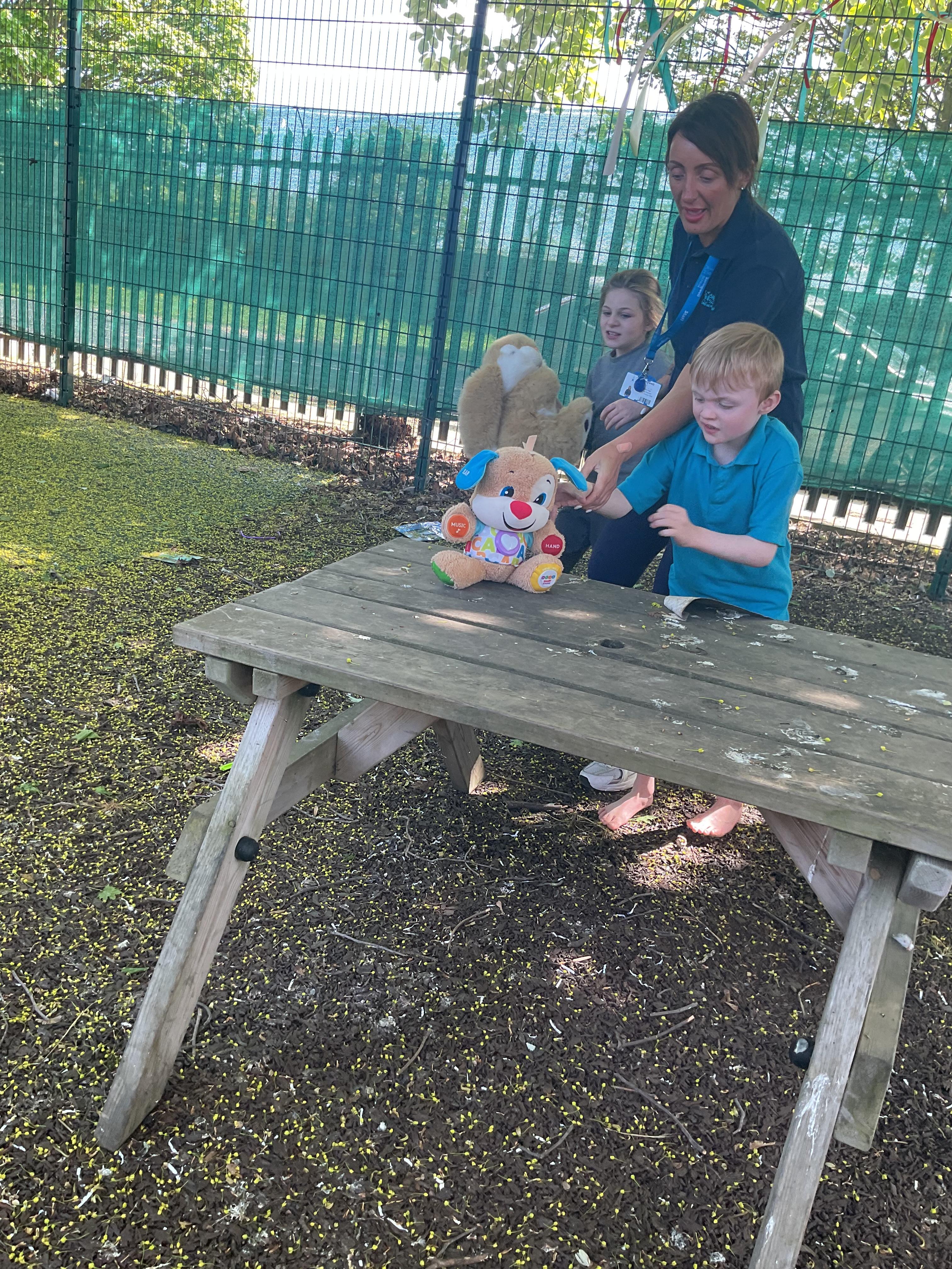 What an amazing and settled week back at school! We have all enjoyed being back with our friends and participating in our familiar routines. We started the week with a relaxing TACPAC session, which uses sensory communication through touch and music. In art, we decorated colourful paper plates with various materials we found around school. Our focused story this week is “We’re Going on a Bear Hunt,” which is one of our favourites! All our hard work this week has been linked to our focused story. In cookery, we made bear biscuits using digestive biscuits, icing and chocolate buttons. We tried very hard with our adults to ice the biscuits, but we definitely didn’t need any help eating them! In literacy, we went out into the community and read our story in the sunshine. We visited Ward Jackson Park, where we joined in on our own little bear hunt, just like in the story. We had lots of fun searching for the bears hidden in the woods. When we returned to school, we found bears hidden in our outdoor area. During swimming this week, we worked on our individual targets in the pool by communicating in the water for toys and floating without adult support. In PSHRE, we practiced our cutting skills trying very hard. We also enjoyed exploring our new play equipment in the school yard with our friends, taking turns while playing. We want to say a massive thank you to PlayDale for working hard over the two week break to make our playtime so fun!