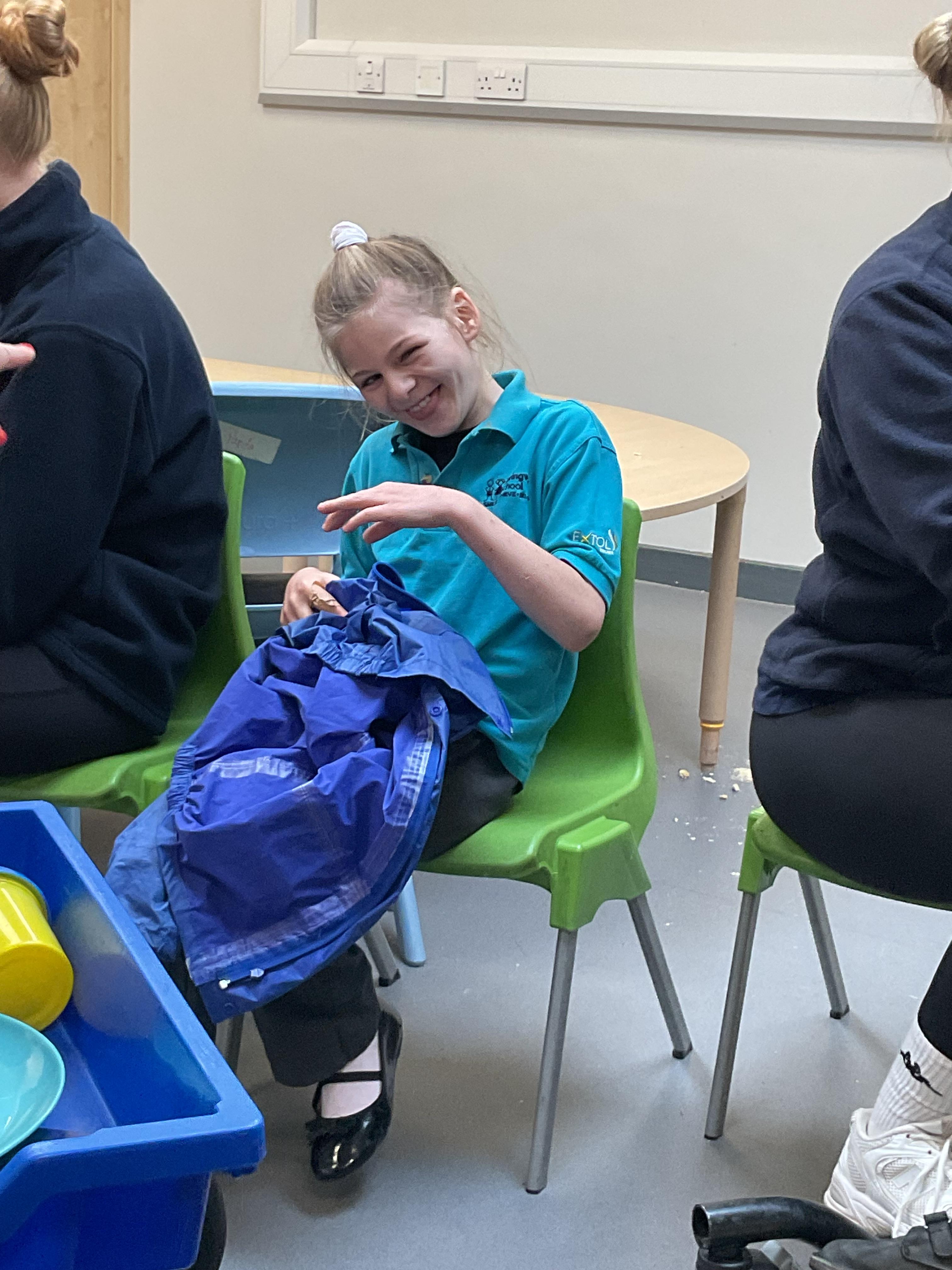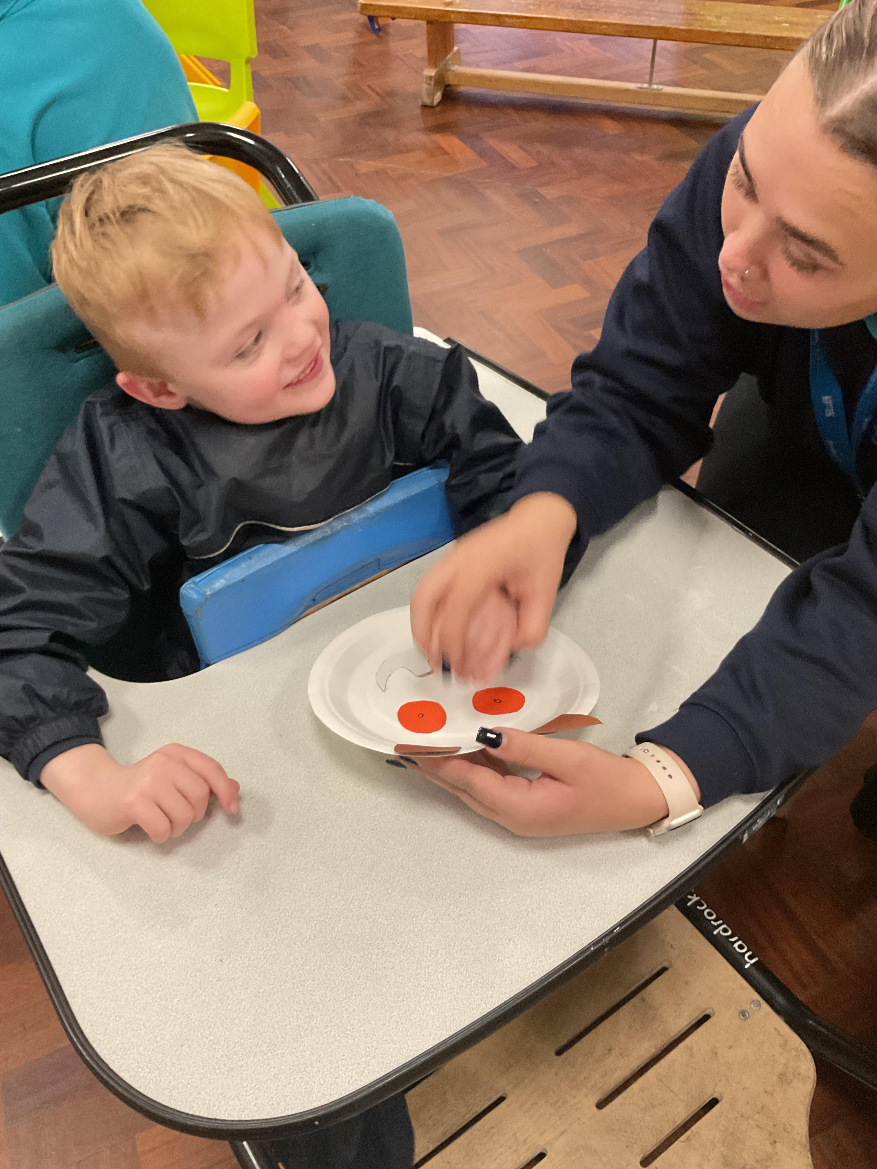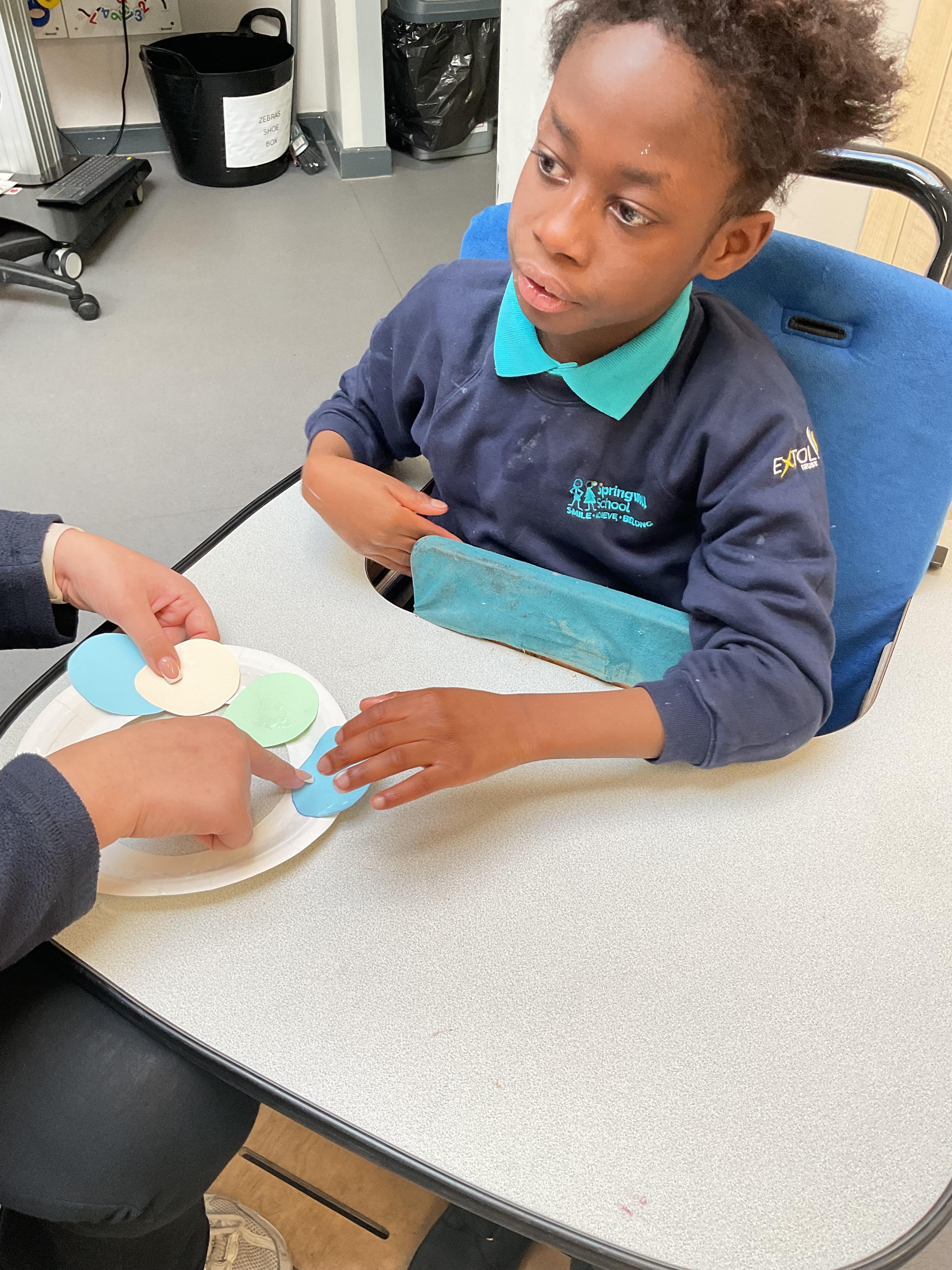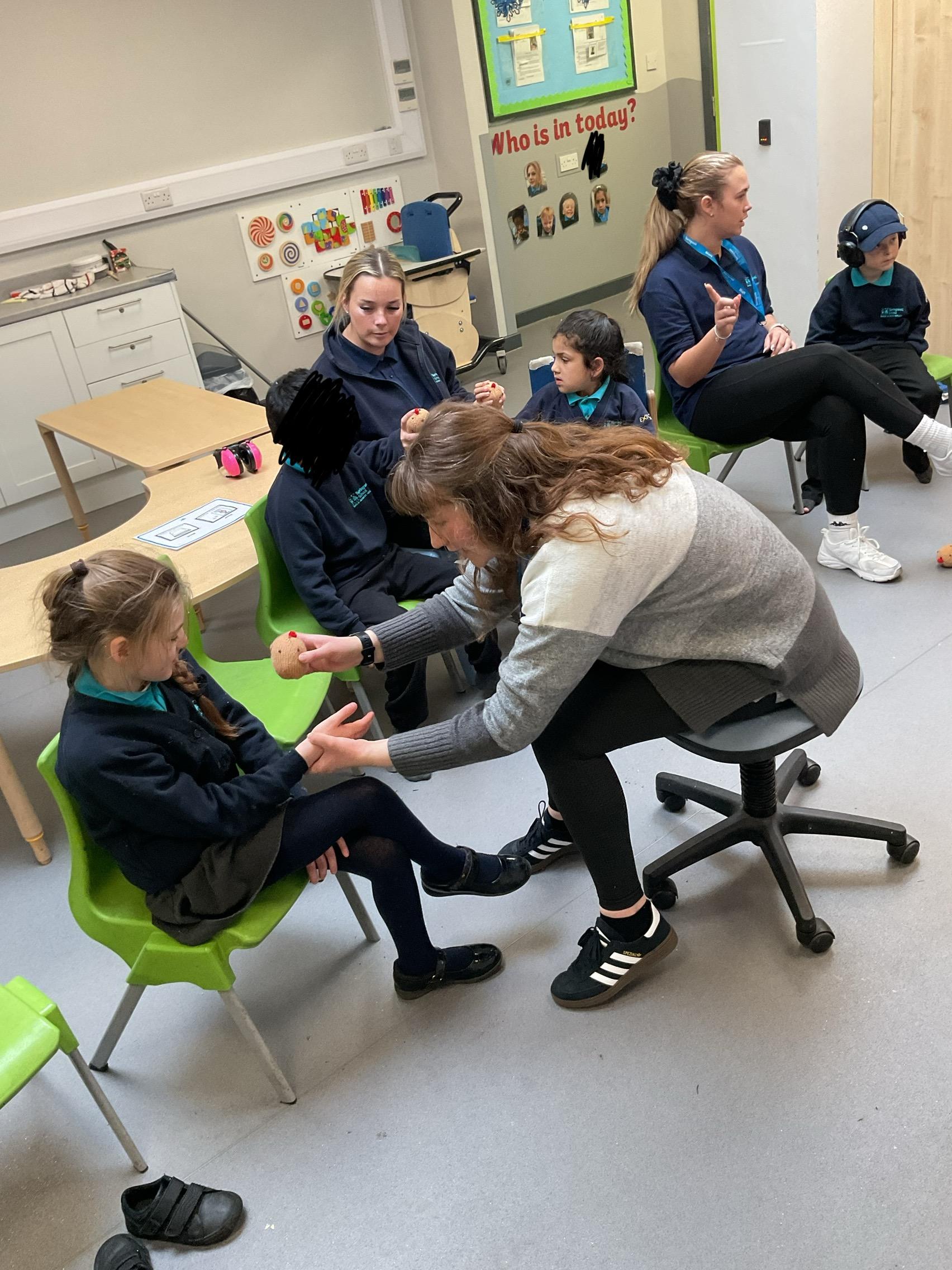 What an amazing and settled week back at school! We have all enjoyed being back with our friends and participating in our familiar routines. We started the week with a relaxing TACPAC session, which uses sensory communication through touch and music. In art, we decorated colourful paper plates with various materials we found around school. Our focused story this week is “We’re Going on a Bear Hunt,” which is one of our favourites! All our hard work this week has been linked to our focused story. In cookery, we made bear biscuits using digestive biscuits, icing and chocolate buttons. We tried very hard with our adults to ice the biscuits, but we definitely didn’t need any help eating them! In literacy, we went out into the community and read our story in the sunshine. We visited Ward Jackson Park, where we joined in on our own little bear hunt, just like in the story. We had lots of fun searching for the bears hidden in the woods. When we returned to school, we found bears hidden in our outdoor area. During swimming this week, we worked on our individual targets in the pool by communicating in the water for toys and floating without adult support. In PSHRE, we practiced our cutting skills trying very hard. We also enjoyed exploring our new play equipment in the school yard with our friends, taking turns while playing. We want to say a massive thank you to PlayDale for working hard over the two week break to make our playtime so fun!