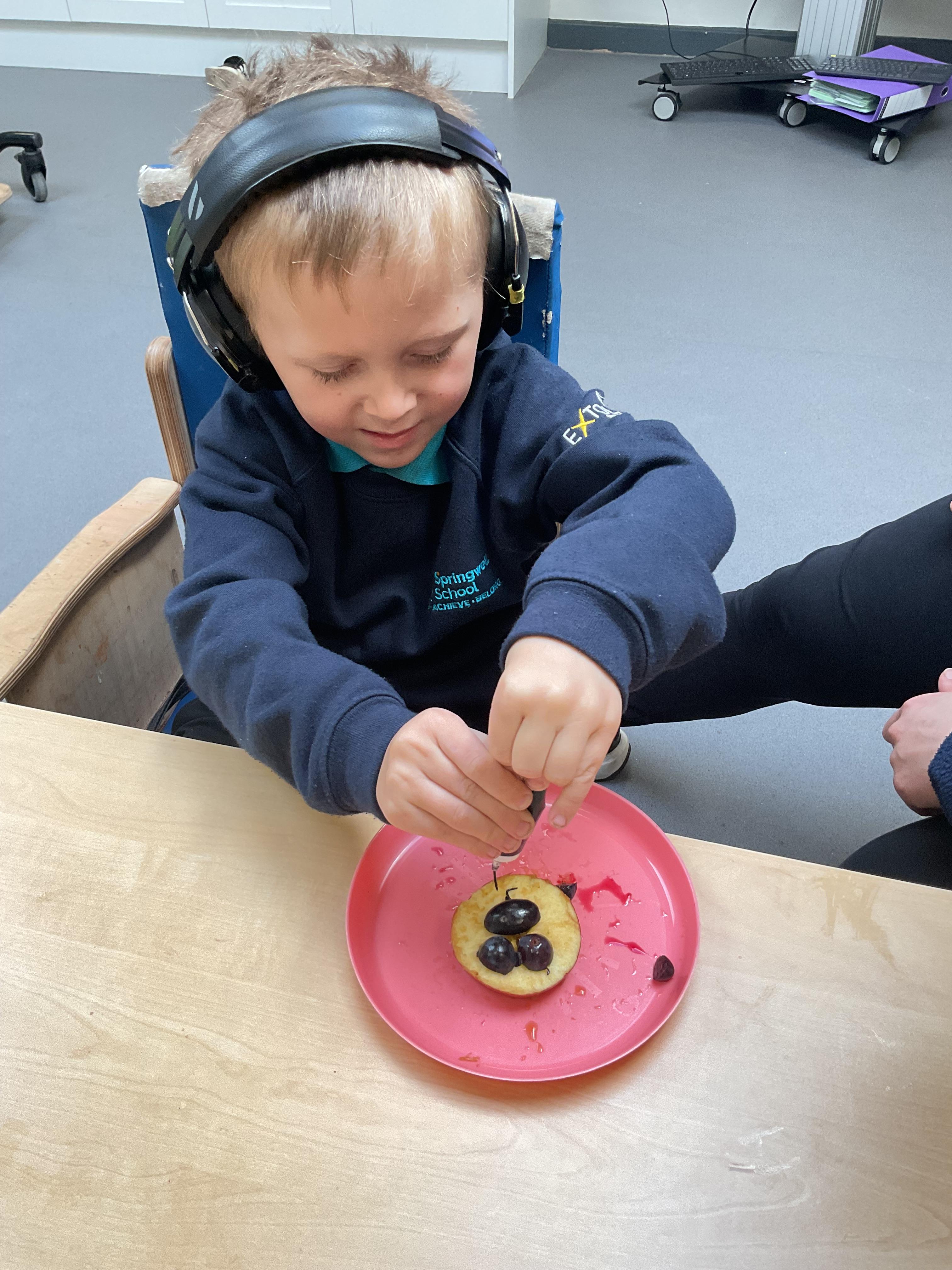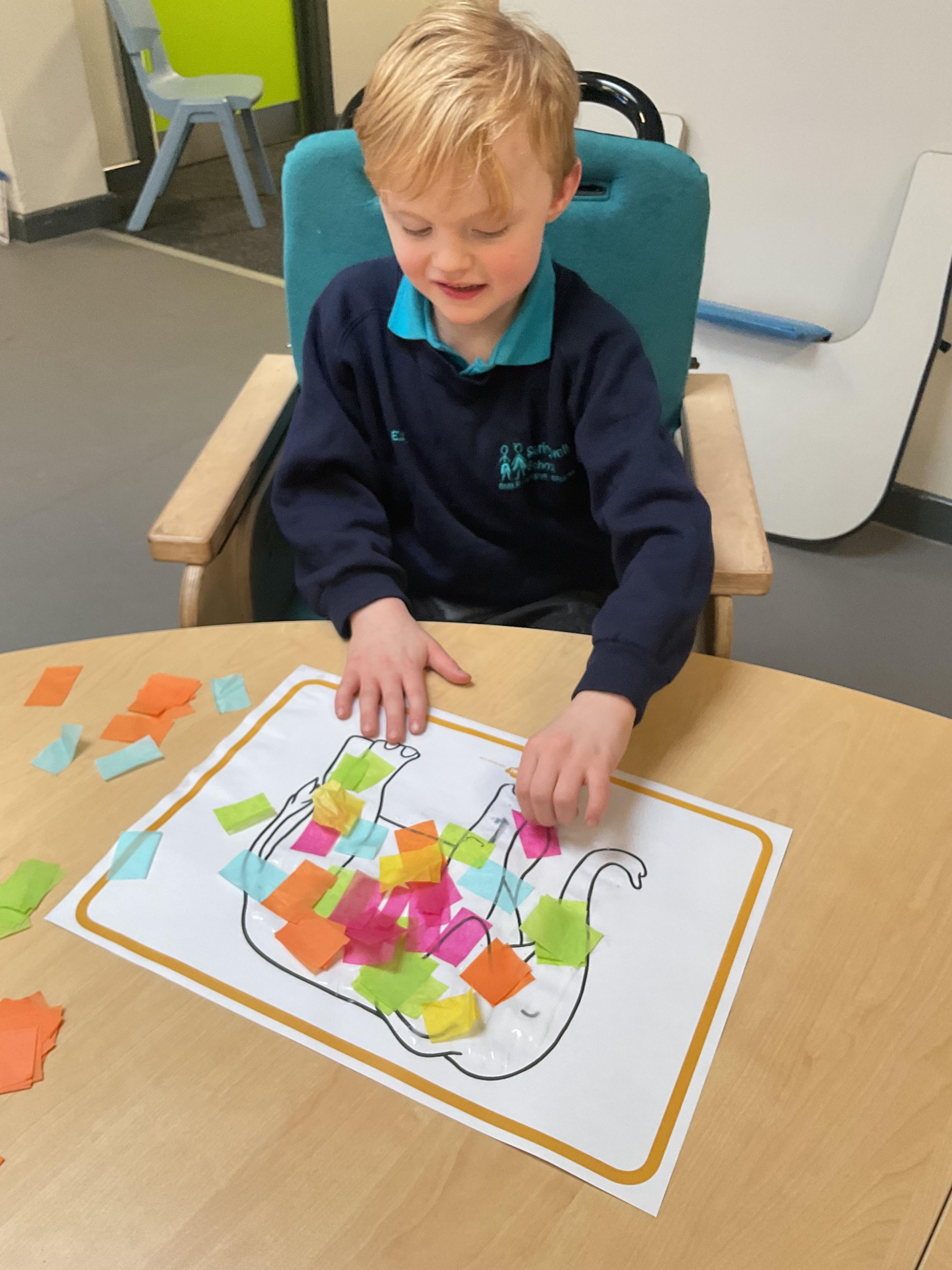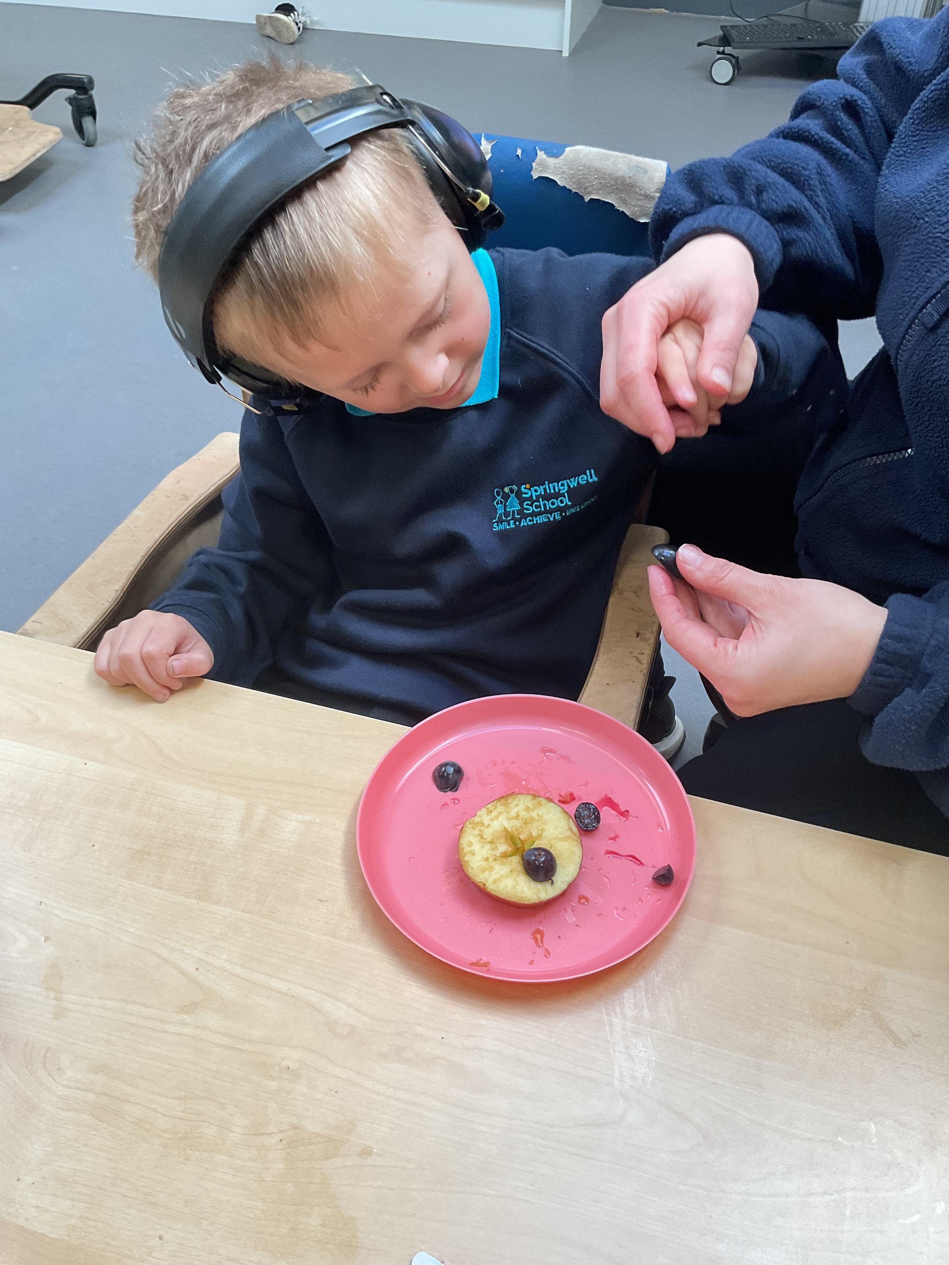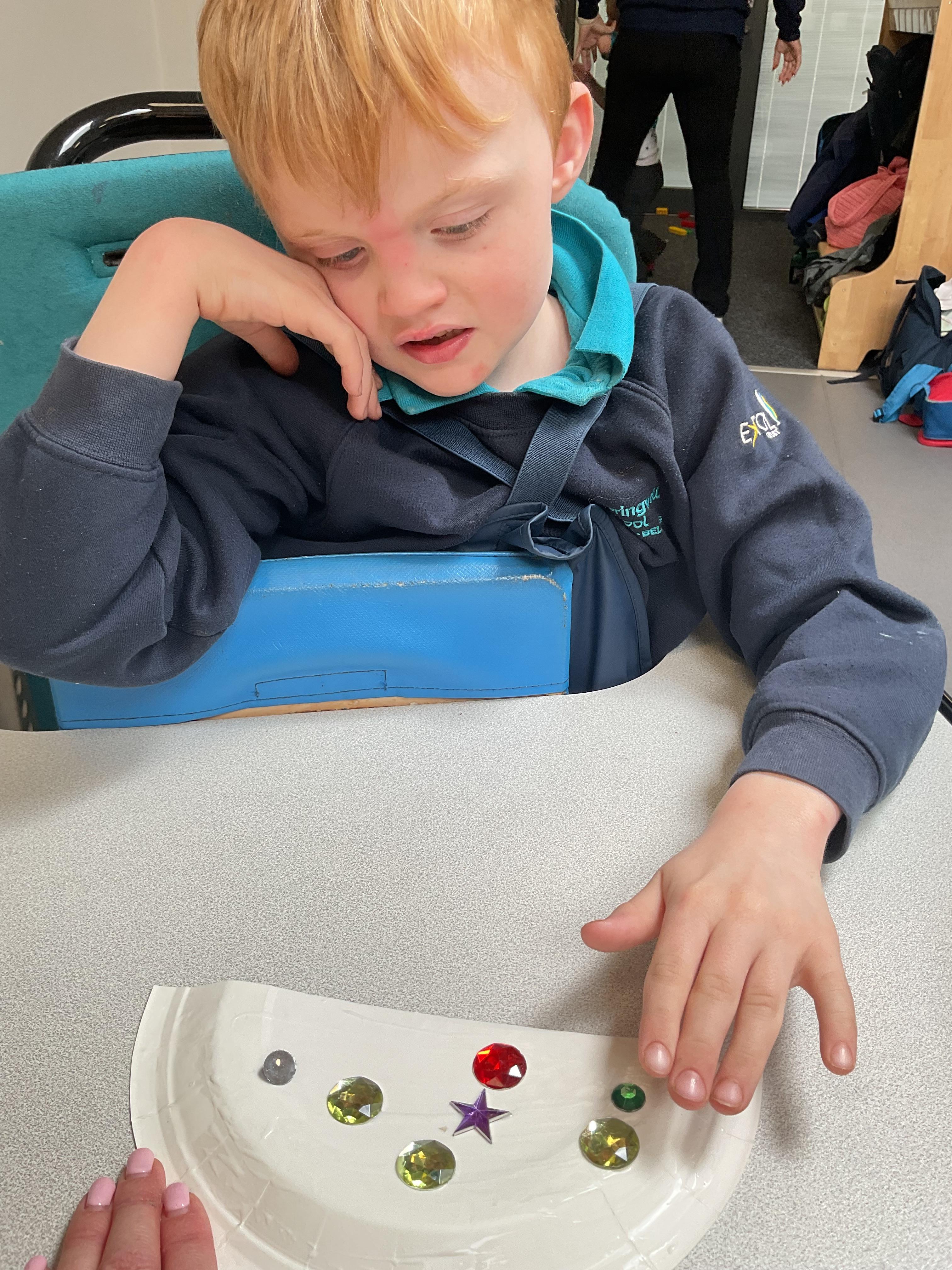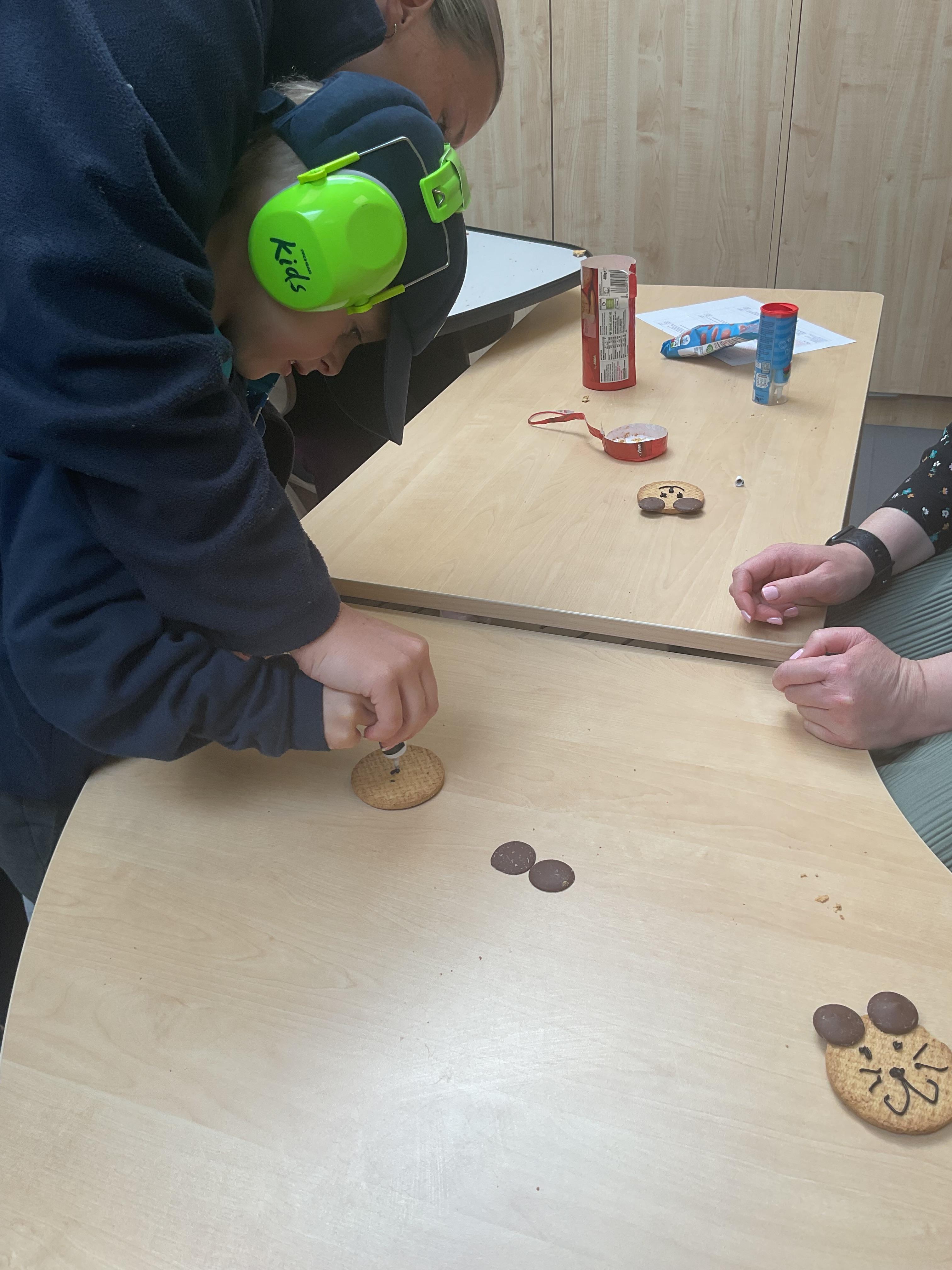 What an amazing and settled week back at school! We have all enjoyed being back with our friends and participating in our familiar routines. We started the week with a relaxing TACPAC session, which uses sensory communication through touch and music. In art, we decorated colourful paper plates with various materials we found around school. Our focused story this week is “We’re Going on a Bear Hunt,” which is one of our favourites! All our hard work this week has been linked to our focused story. In cookery, we made bear biscuits using digestive biscuits, icing and chocolate buttons. We tried very hard with our adults to ice the biscuits, but we definitely didn’t need any help eating them! In literacy, we went out into the community and read our story in the sunshine. We visited Ward Jackson Park, where we joined in on our own little bear hunt, just like in the story. We had lots of fun searching for the bears hidden in the woods. When we returned to school, we found bears hidden in our outdoor area. During swimming this week, we worked on our individual targets in the pool by communicating in the water for toys and floating without adult support. In PSHRE, we practiced our cutting skills trying very hard. We also enjoyed exploring our new play equipment in the school yard with our friends, taking turns while playing. We want to say a massive thank you to PlayDale for working hard over the two week break to make our playtime so fun!
