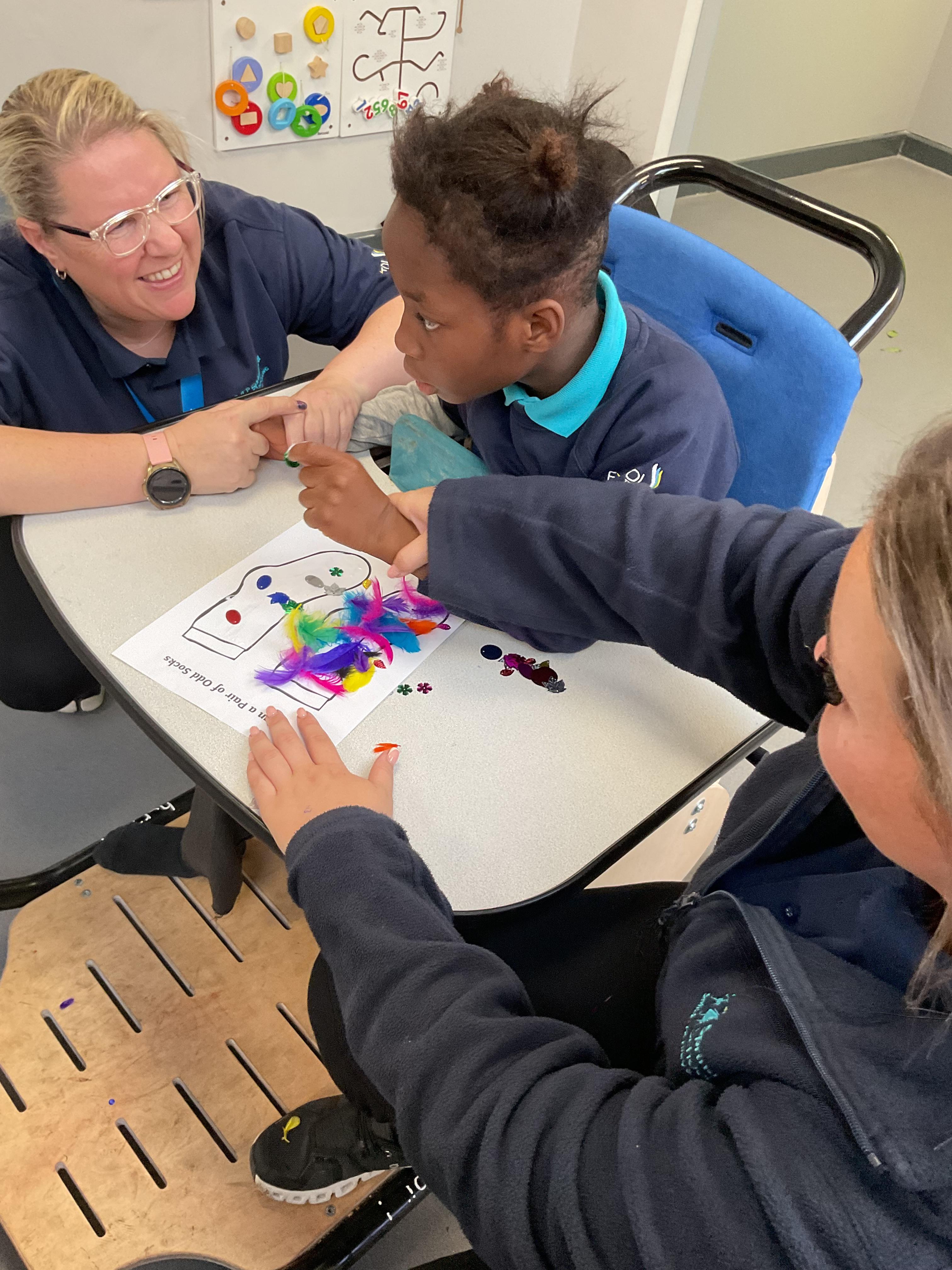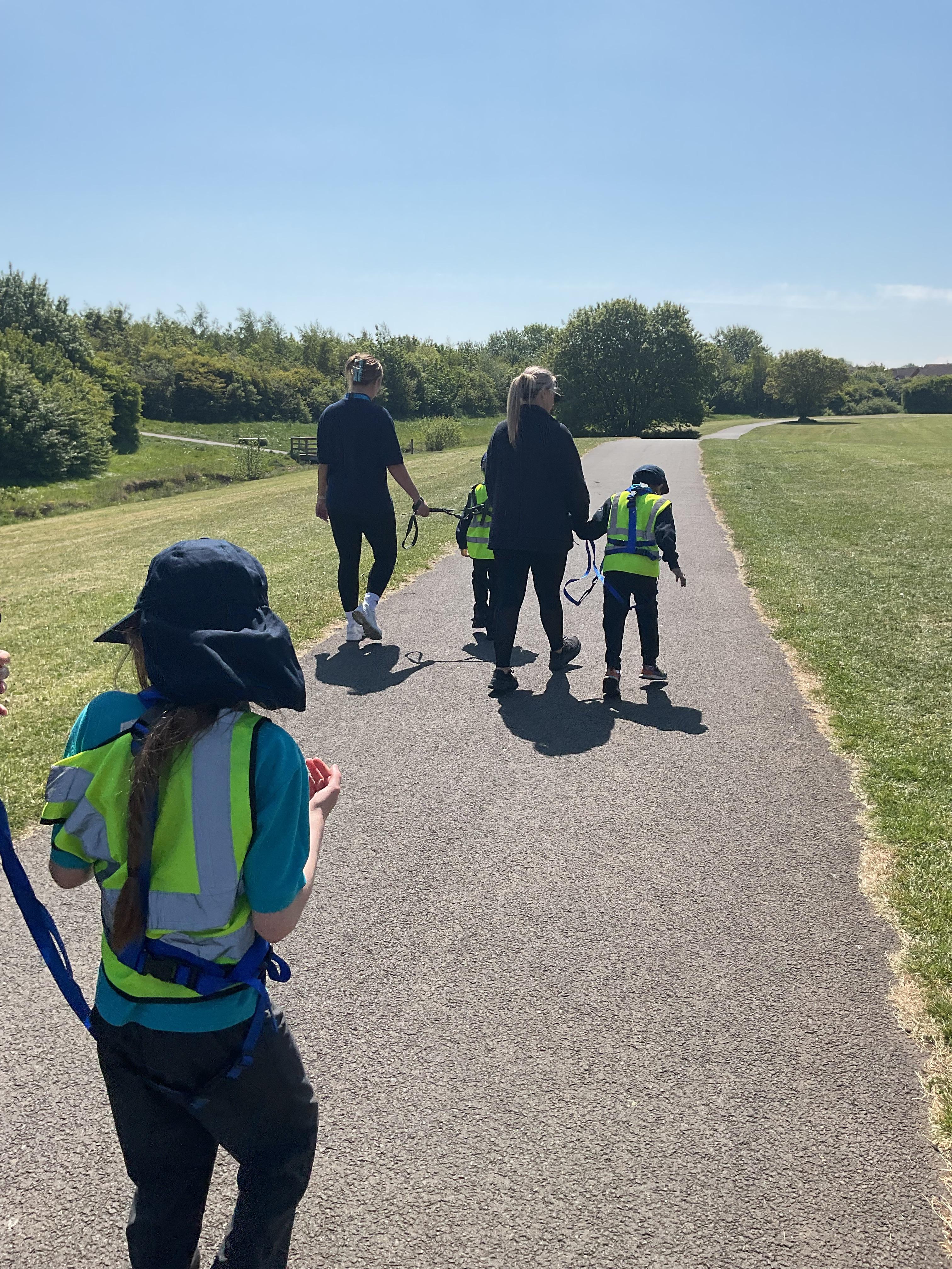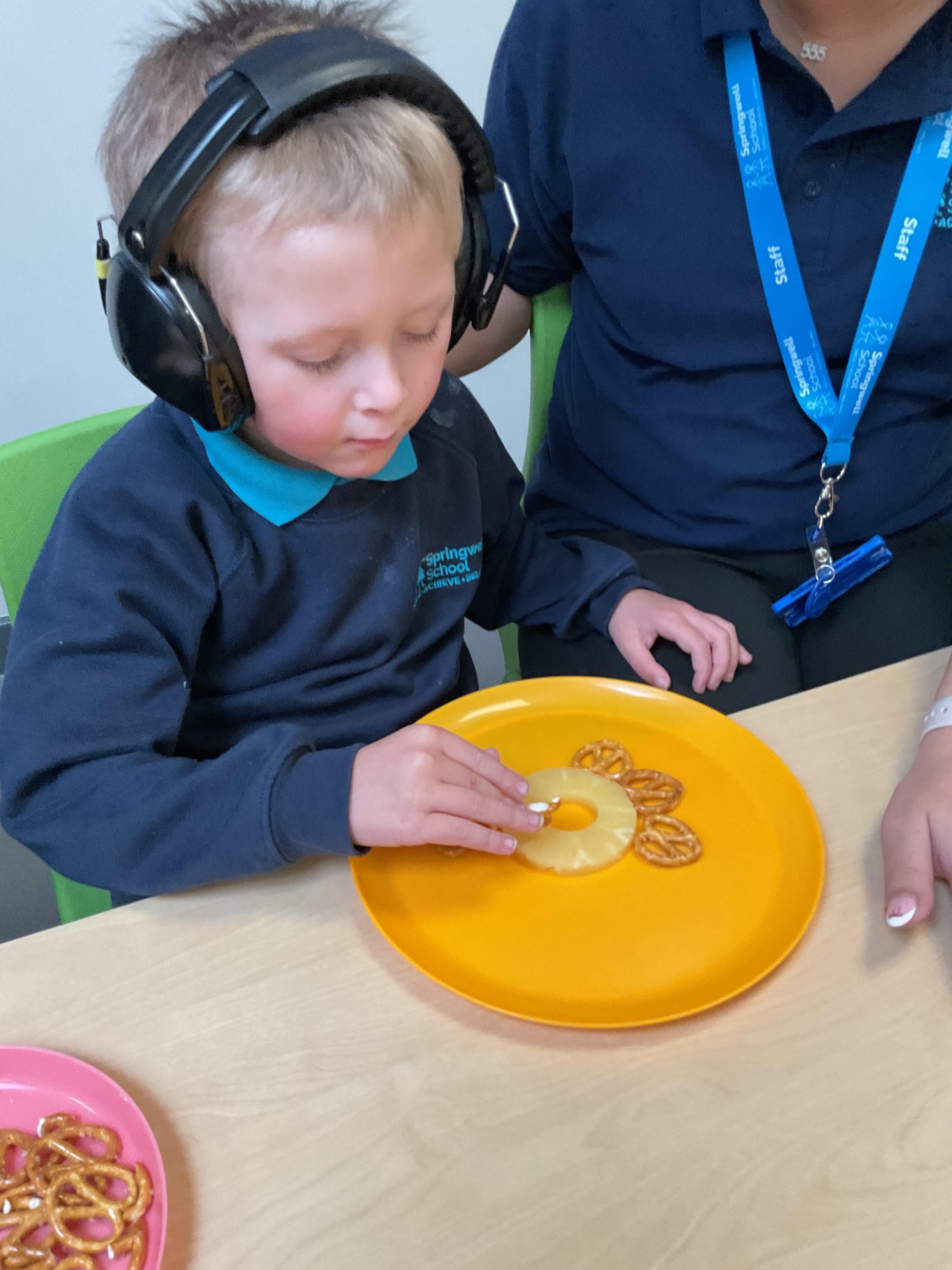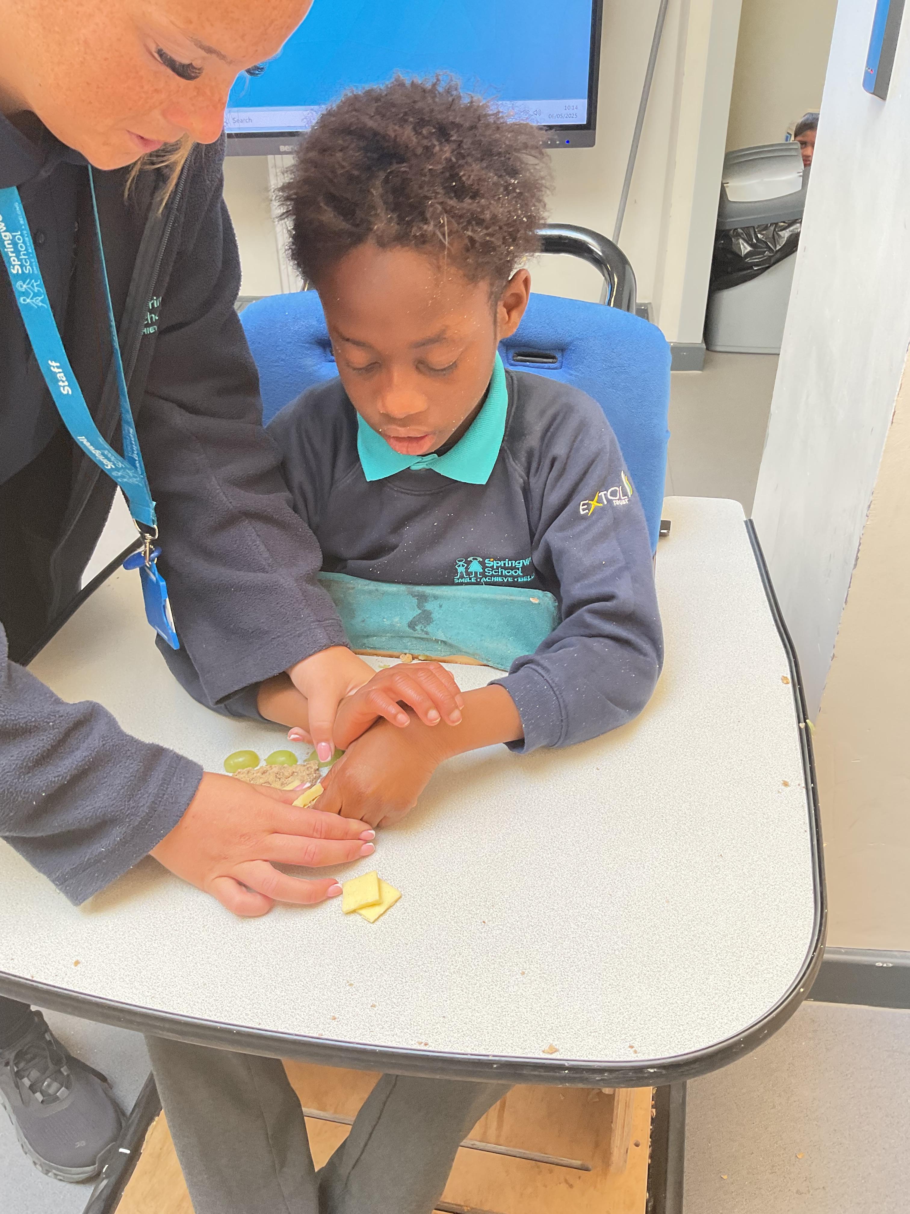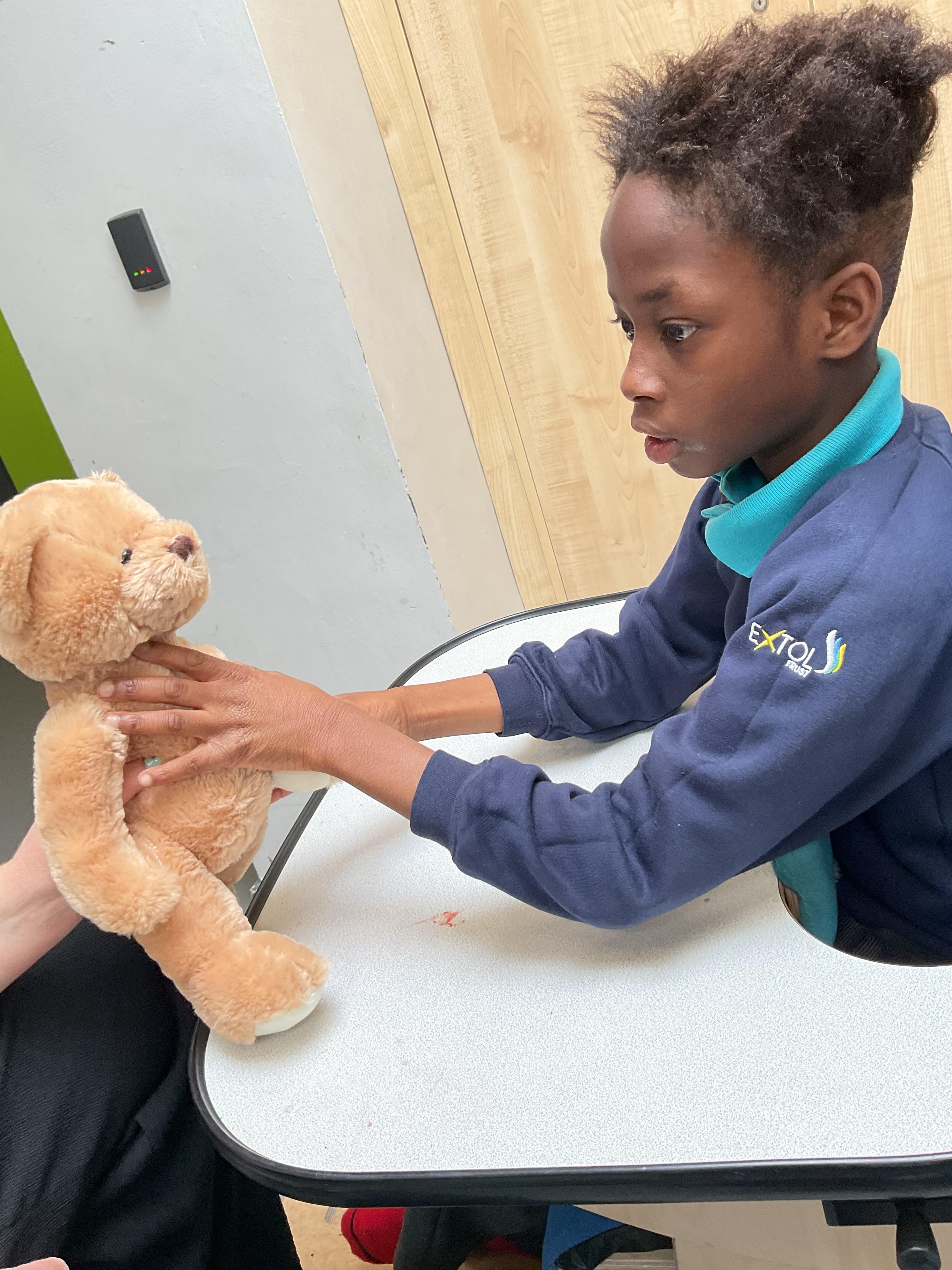 What an amazing and settled week back at school! We have all enjoyed being back with our friends and participating in our familiar routines. We started the week with a relaxing TACPAC session, which uses sensory communication through touch and music. In art, we decorated colourful paper plates with various materials we found around school. Our focused story this week is “We’re Going on a Bear Hunt,” which is one of our favourites! All our hard work this week has been linked to our focused story. In cookery, we made bear biscuits using digestive biscuits, icing and chocolate buttons. We tried very hard with our adults to ice the biscuits, but we definitely didn’t need any help eating them! In literacy, we went out into the community and read our story in the sunshine. We visited Ward Jackson Park, where we joined in on our own little bear hunt, just like in the story. We had lots of fun searching for the bears hidden in the woods. When we returned to school, we found bears hidden in our outdoor area. During swimming this week, we worked on our individual targets in the pool by communicating in the water for toys and floating without adult support. In PSHRE, we practiced our cutting skills trying very hard. We also enjoyed exploring our new play equipment in the school yard with our friends, taking turns while playing. We want to say a massive thank you to PlayDale for working hard over the two week break to make our playtime so fun!