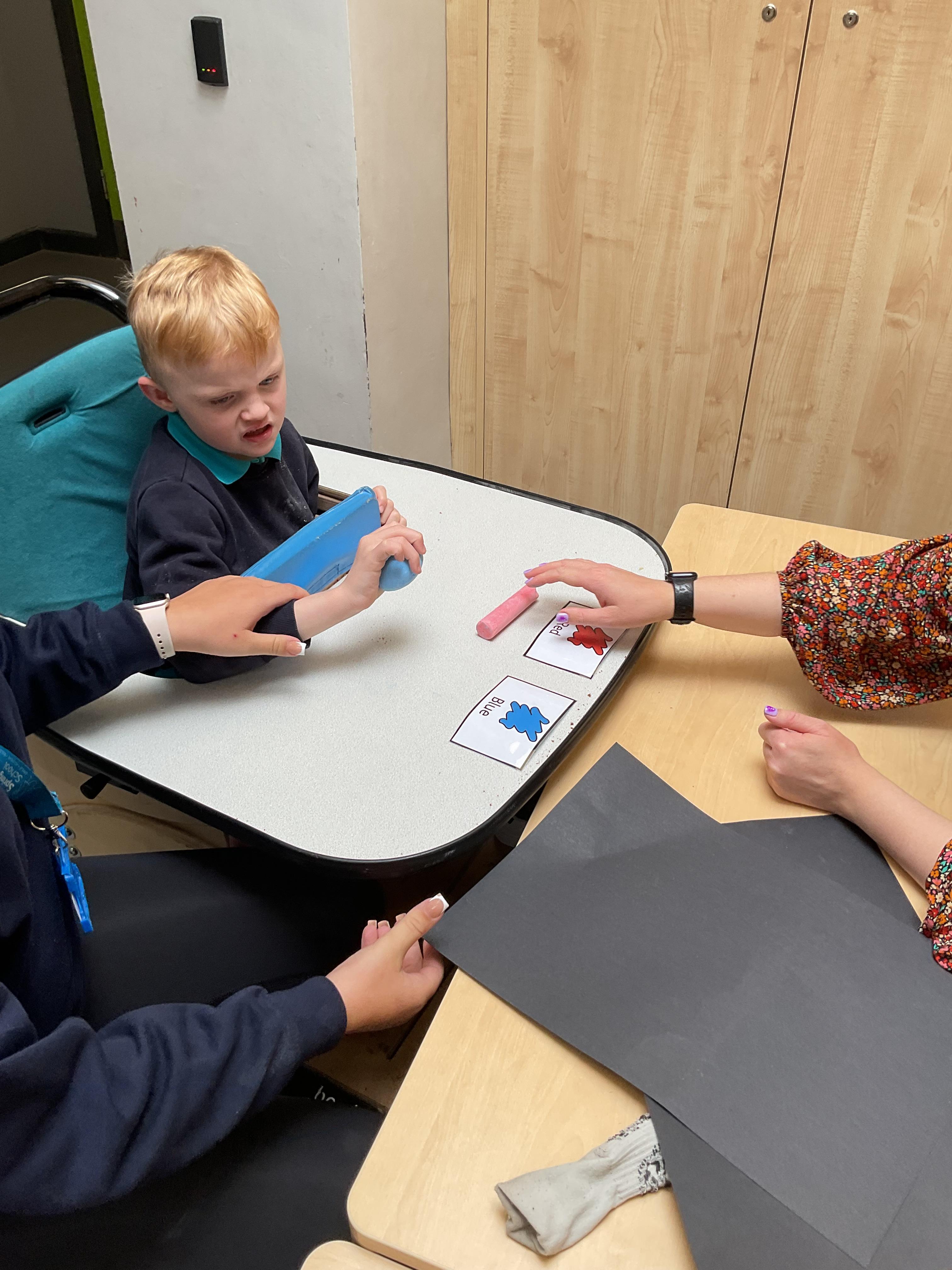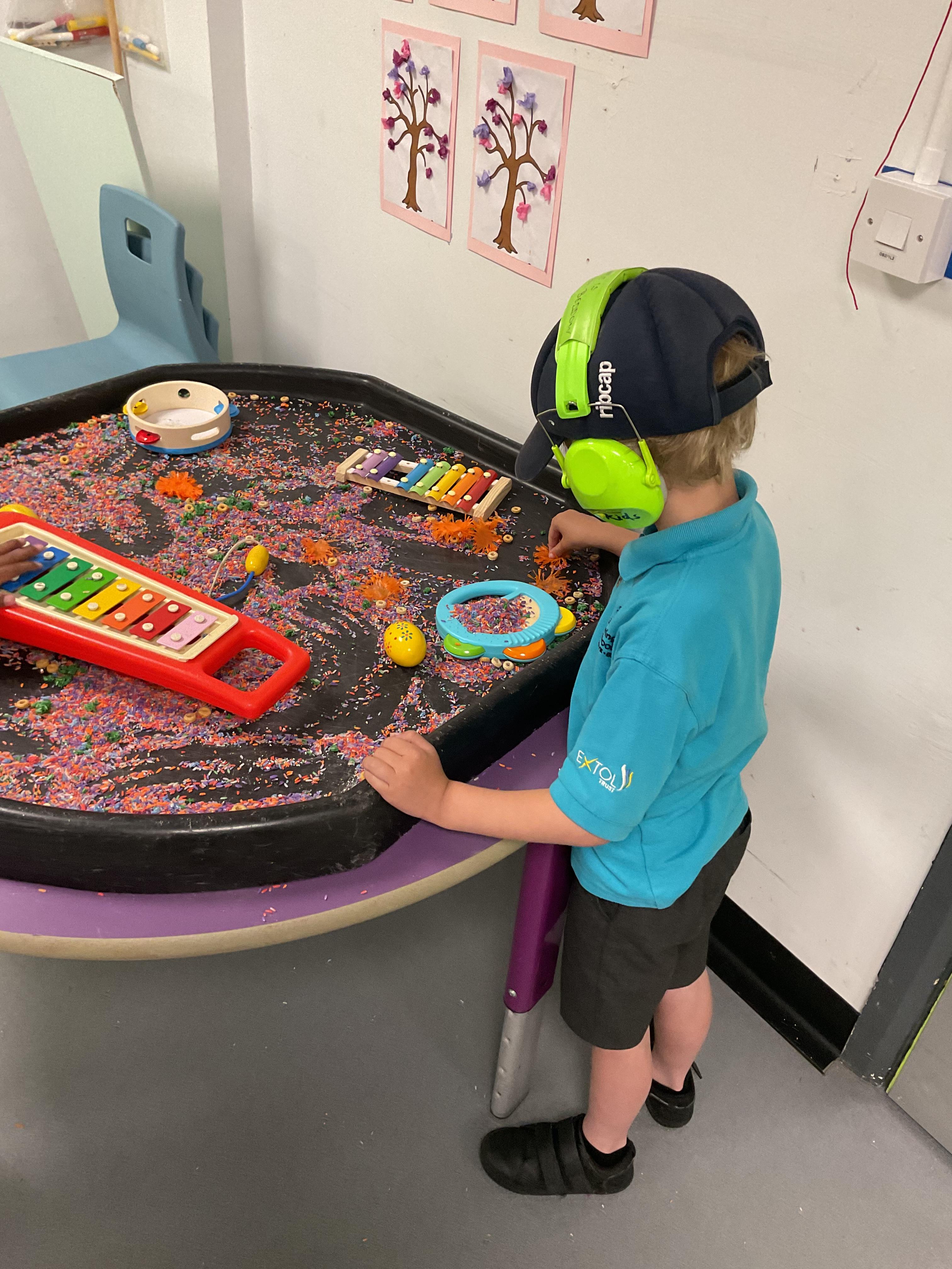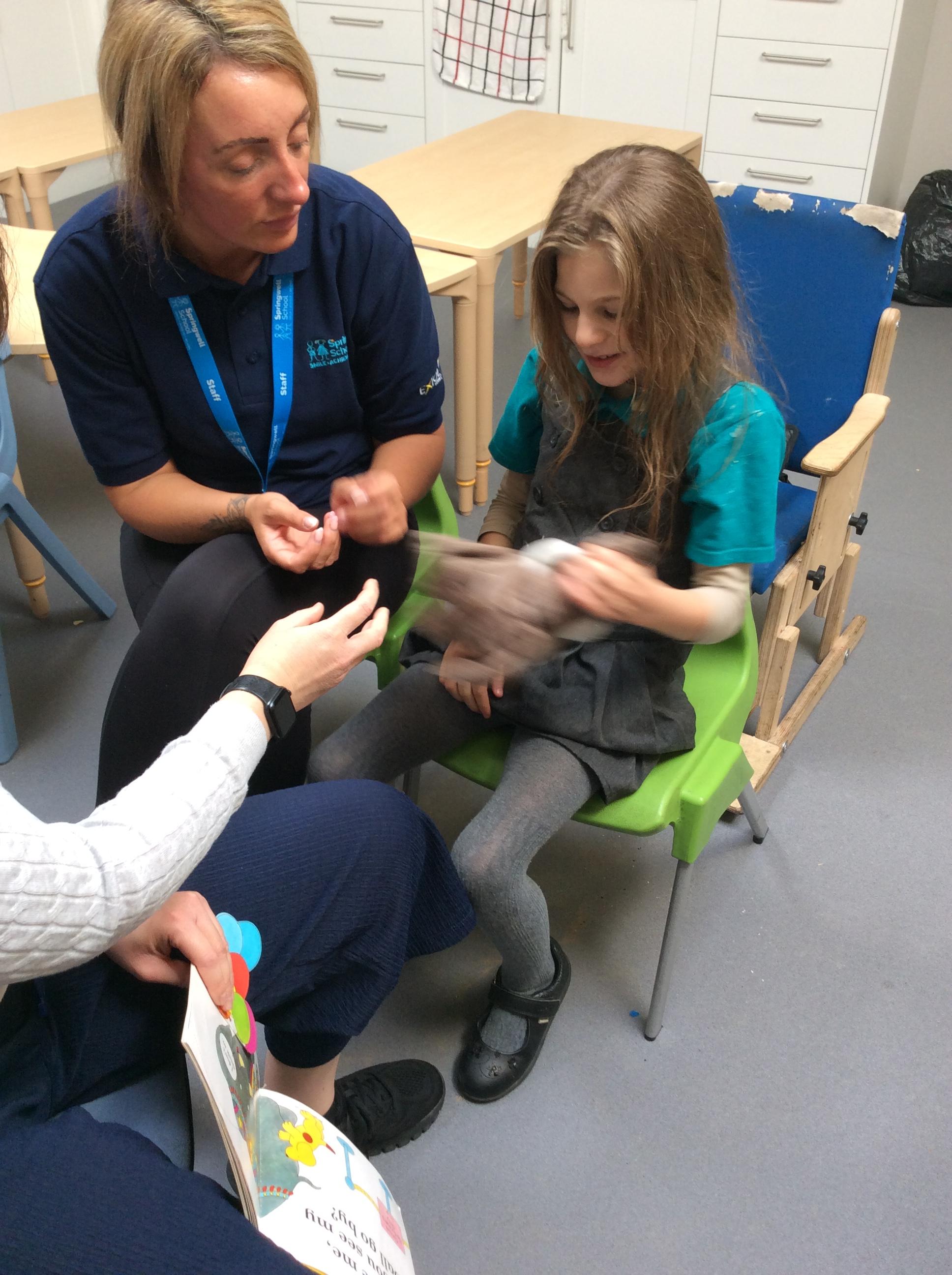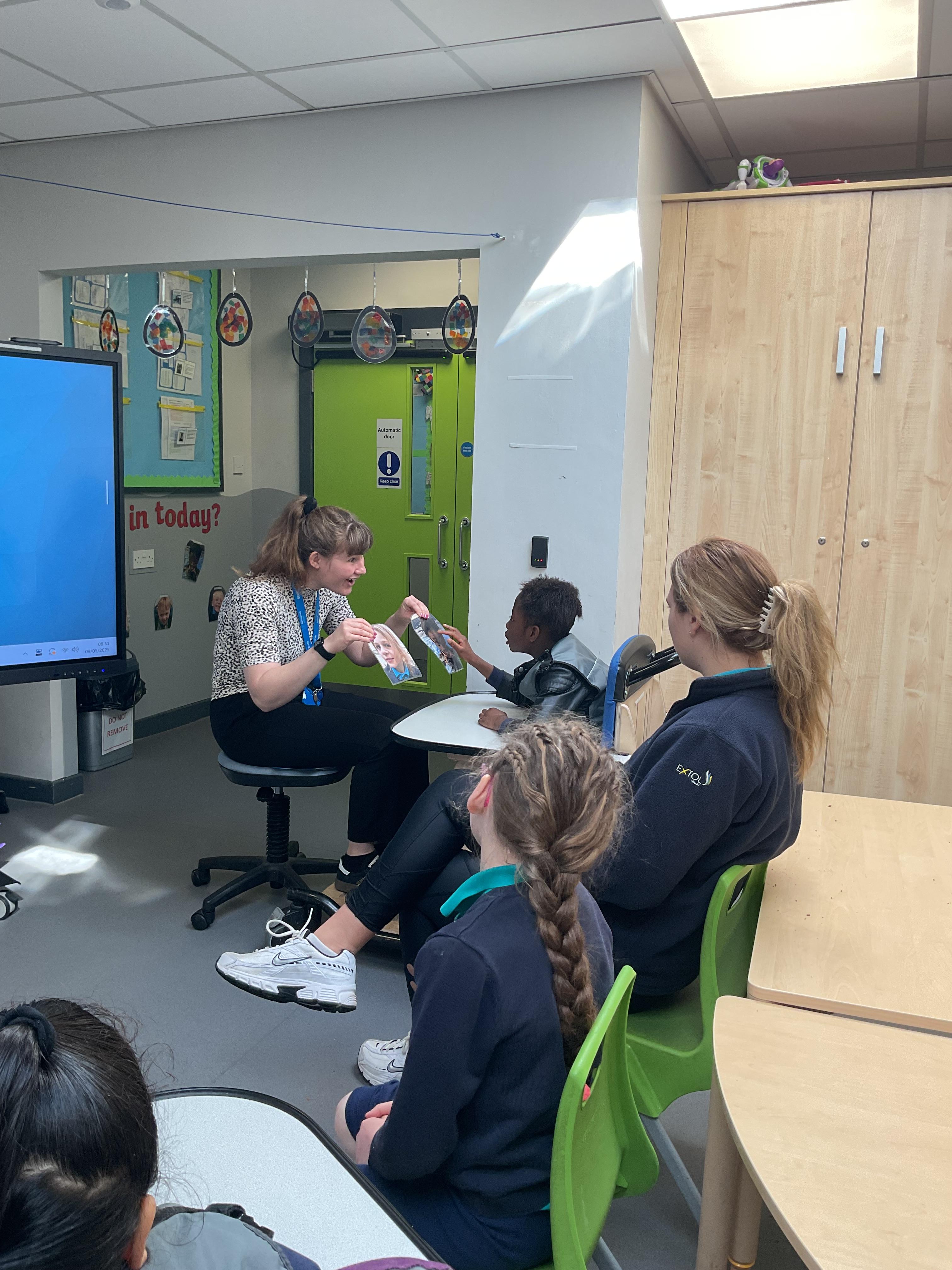 What an amazing and settled week back at school! We have all enjoyed being back with our friends and participating in our familiar routines. We started the week with a relaxing TACPAC session, which uses sensory communication through touch and music. In art, we decorated colourful paper plates with various materials we found around school. Our focused story this week is “We’re Going on a Bear Hunt,” which is one of our favourites! All our hard work this week has been linked to our focused story. In cookery, we made bear biscuits using digestive biscuits, icing and chocolate buttons. We tried very hard with our adults to ice the biscuits, but we definitely didn’t need any help eating them! In literacy, we went out into the community and read our story in the sunshine. We visited Ward Jackson Park, where we joined in on our own little bear hunt, just like in the story. We had lots of fun searching for the bears hidden in the woods. When we returned to school, we found bears hidden in our outdoor area. During swimming this week, we worked on our individual targets in the pool by communicating in the water for toys and floating without adult support. In PSHRE, we practiced our cutting skills trying very hard. We also enjoyed exploring our new play equipment in the school yard with our friends, taking turns while playing. We want to say a massive thank you to PlayDale for working hard over the two week break to make our playtime so fun!