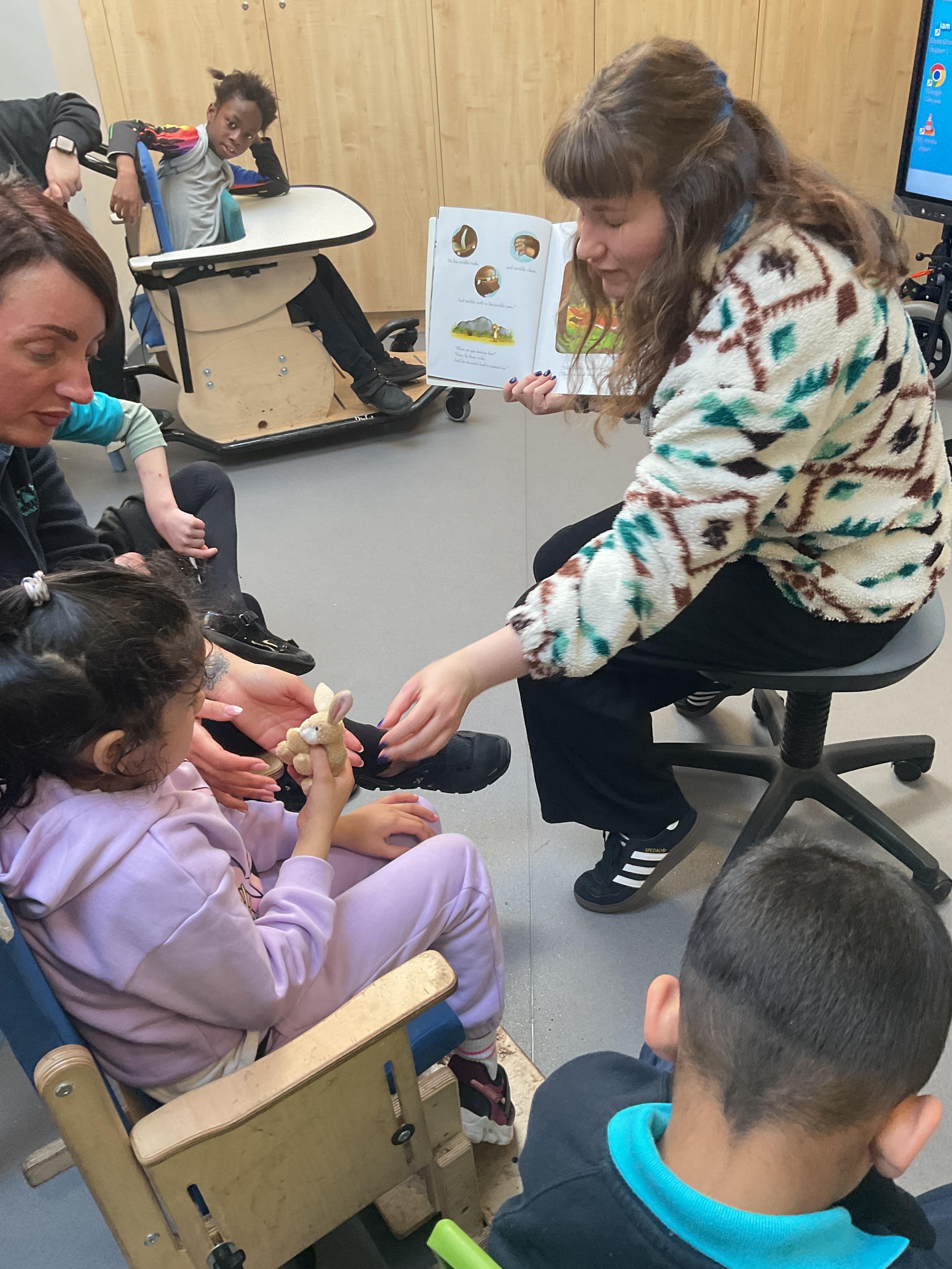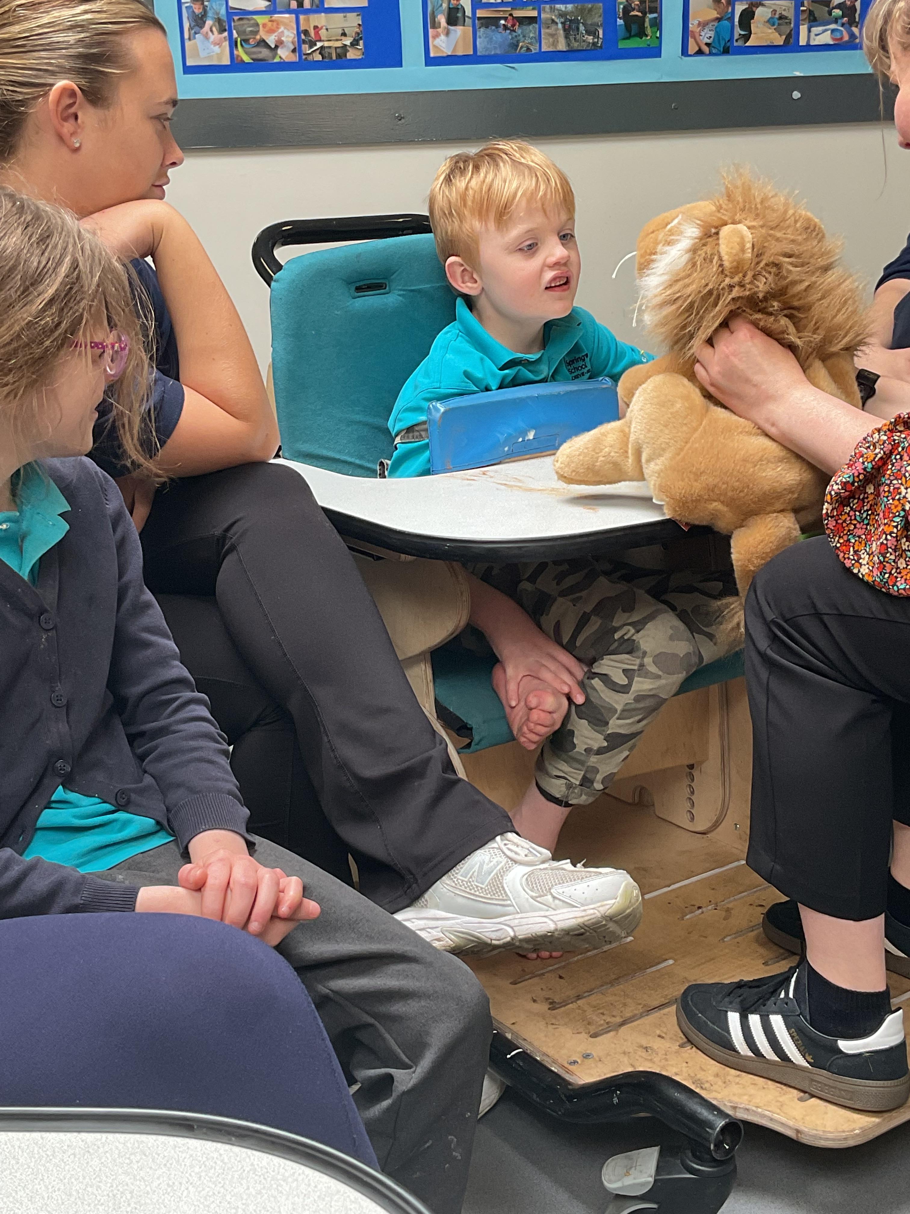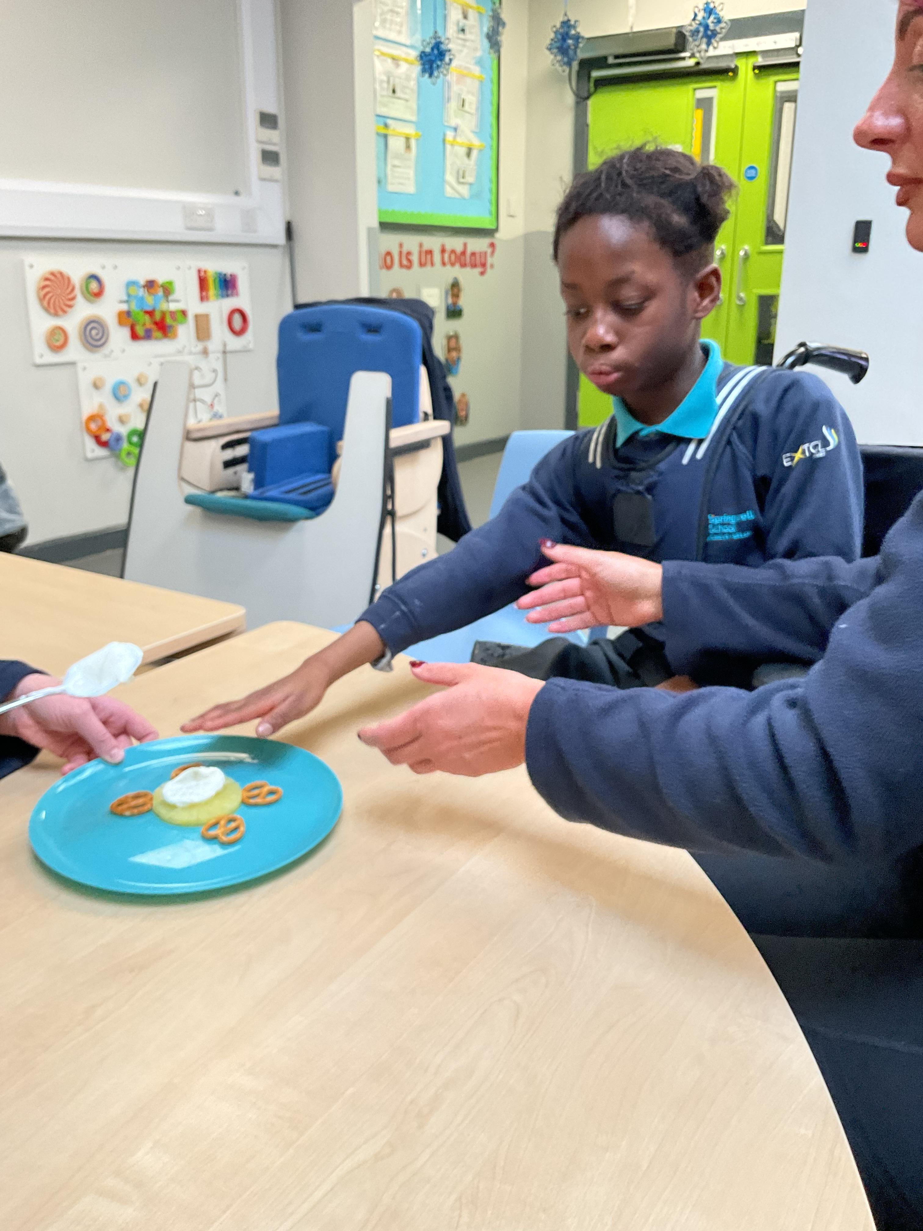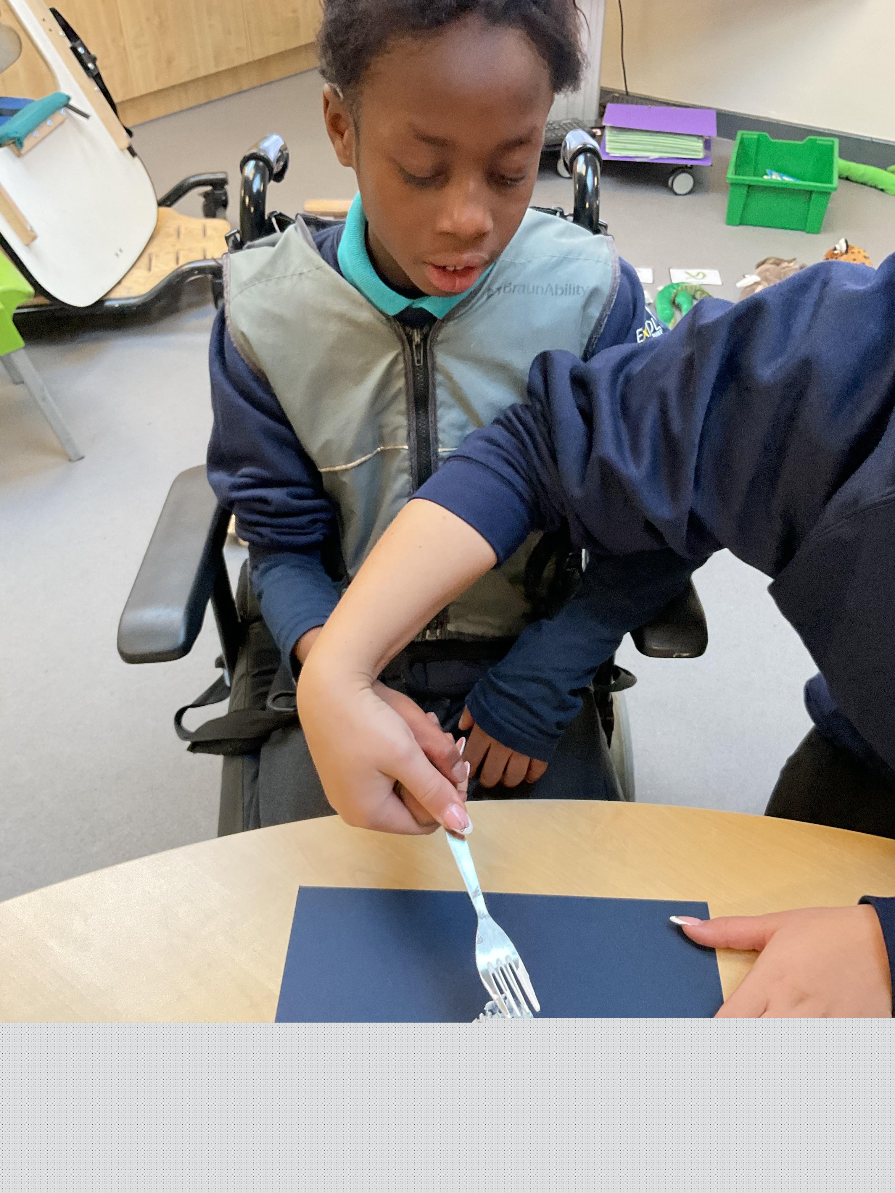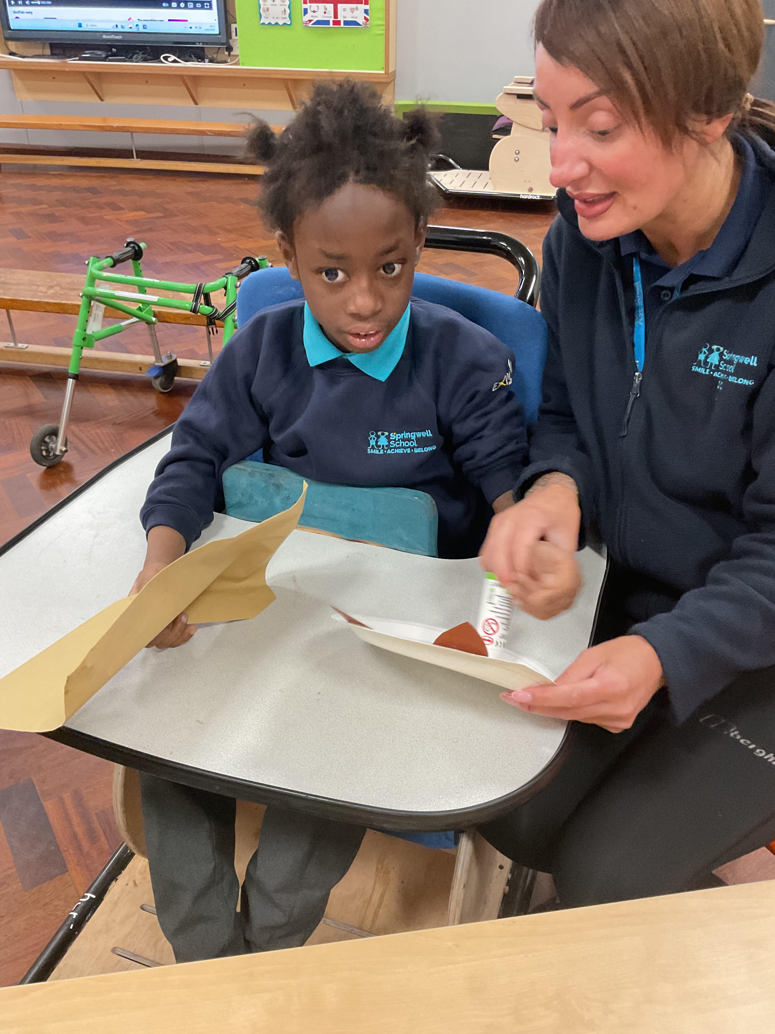 What an amazing and settled week back at school! We have all enjoyed being back with our friends and participating in our familiar routines. We started the week with a relaxing TACPAC session, which uses sensory communication through touch and music. In art, we decorated colourful paper plates with various materials we found around school. Our focused story this week is “We’re Going on a Bear Hunt,” which is one of our favourites! All our hard work this week has been linked to our focused story. In cookery, we made bear biscuits using digestive biscuits, icing and chocolate buttons. We tried very hard with our adults to ice the biscuits, but we definitely didn’t need any help eating them! In literacy, we went out into the community and read our story in the sunshine. We visited Ward Jackson Park, where we joined in on our own little bear hunt, just like in the story. We had lots of fun searching for the bears hidden in the woods. When we returned to school, we found bears hidden in our outdoor area. During swimming this week, we worked on our individual targets in the pool by communicating in the water for toys and floating without adult support. In PSHRE, we practiced our cutting skills trying very hard. We also enjoyed exploring our new play equipment in the school yard with our friends, taking turns while playing. We want to say a massive thank you to PlayDale for working hard over the two week break to make our playtime so fun!