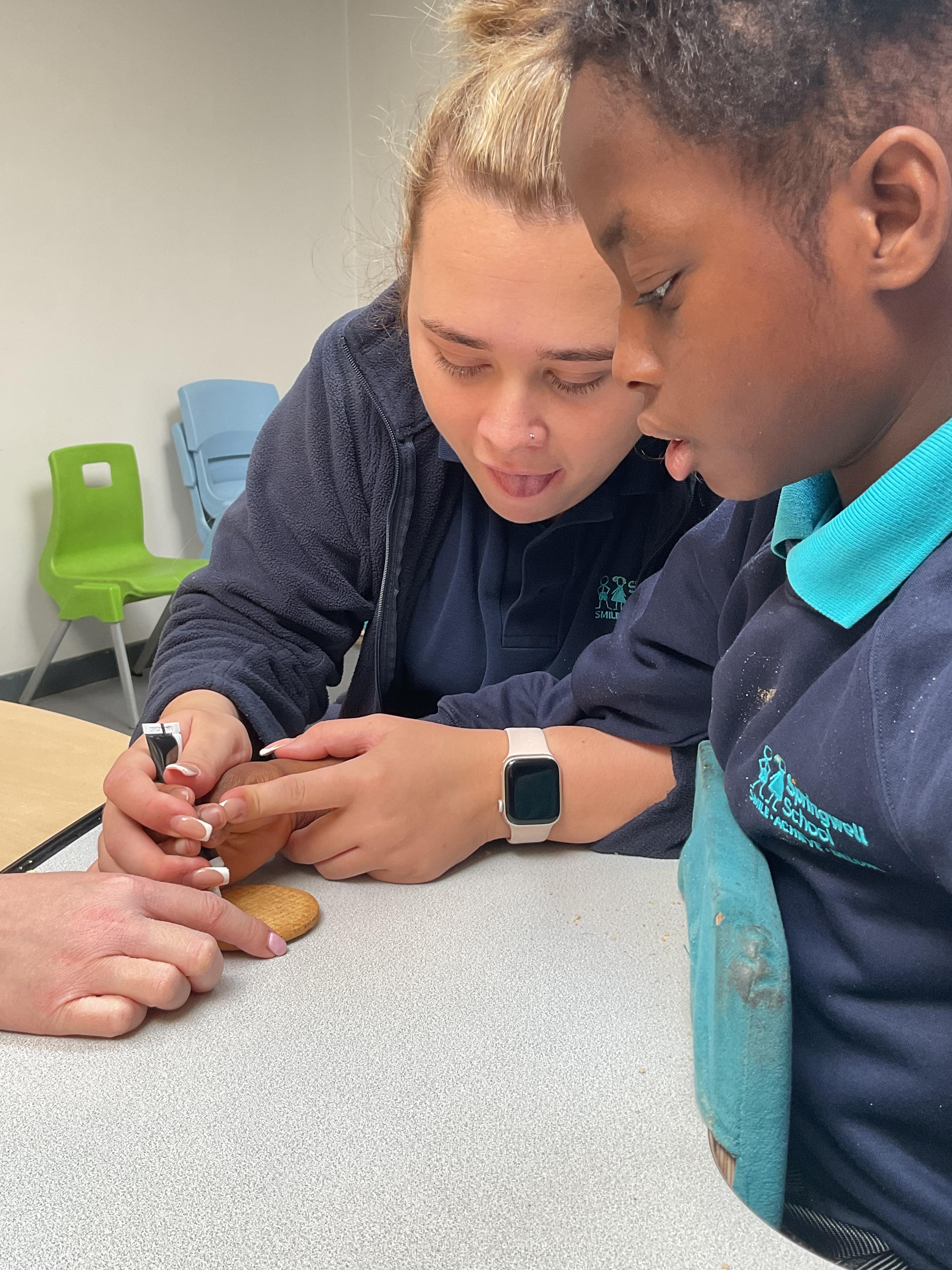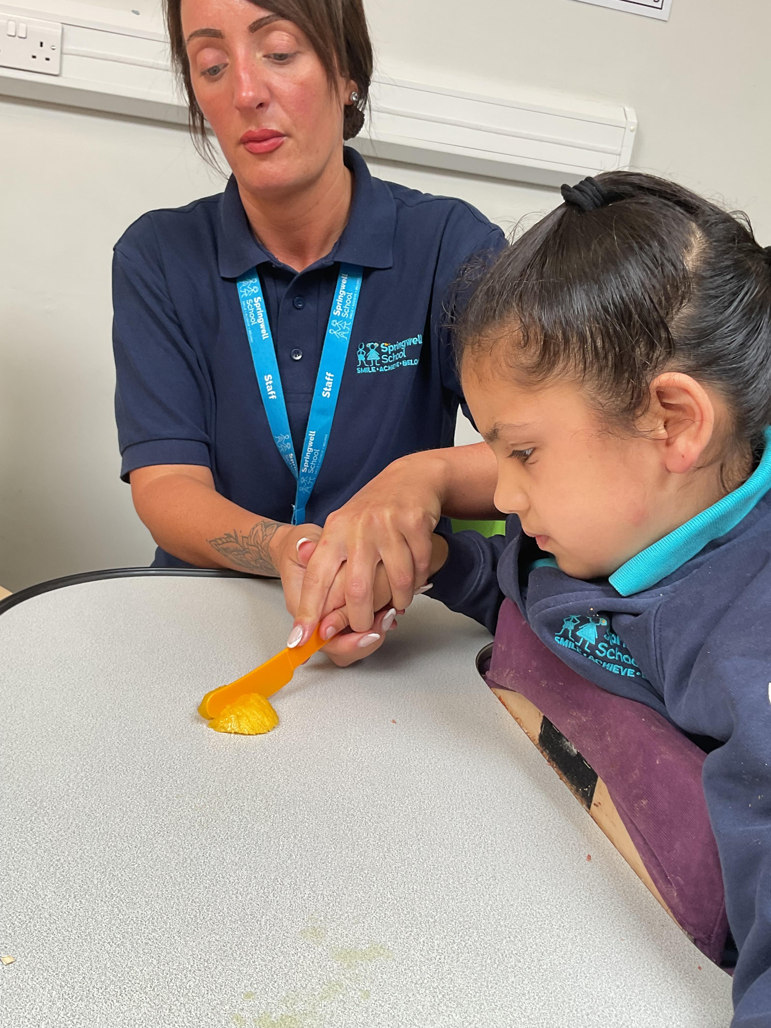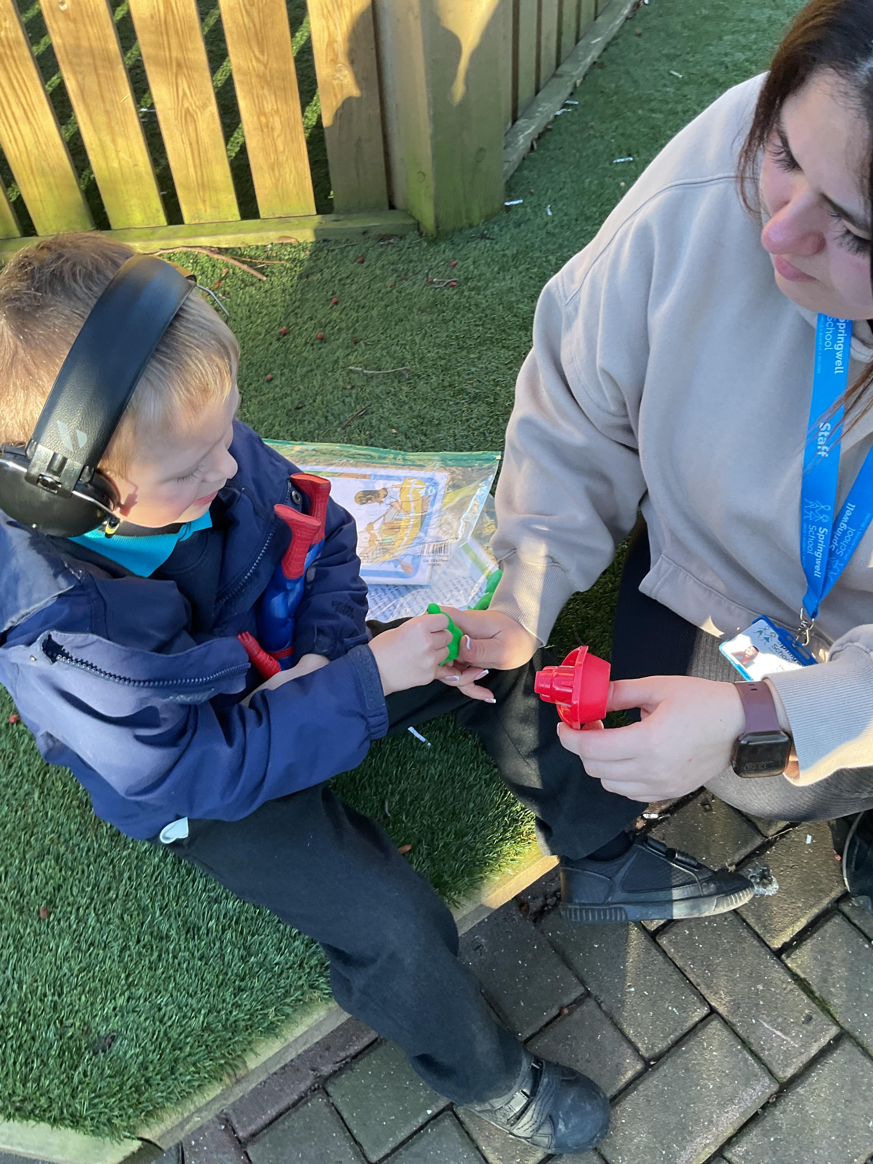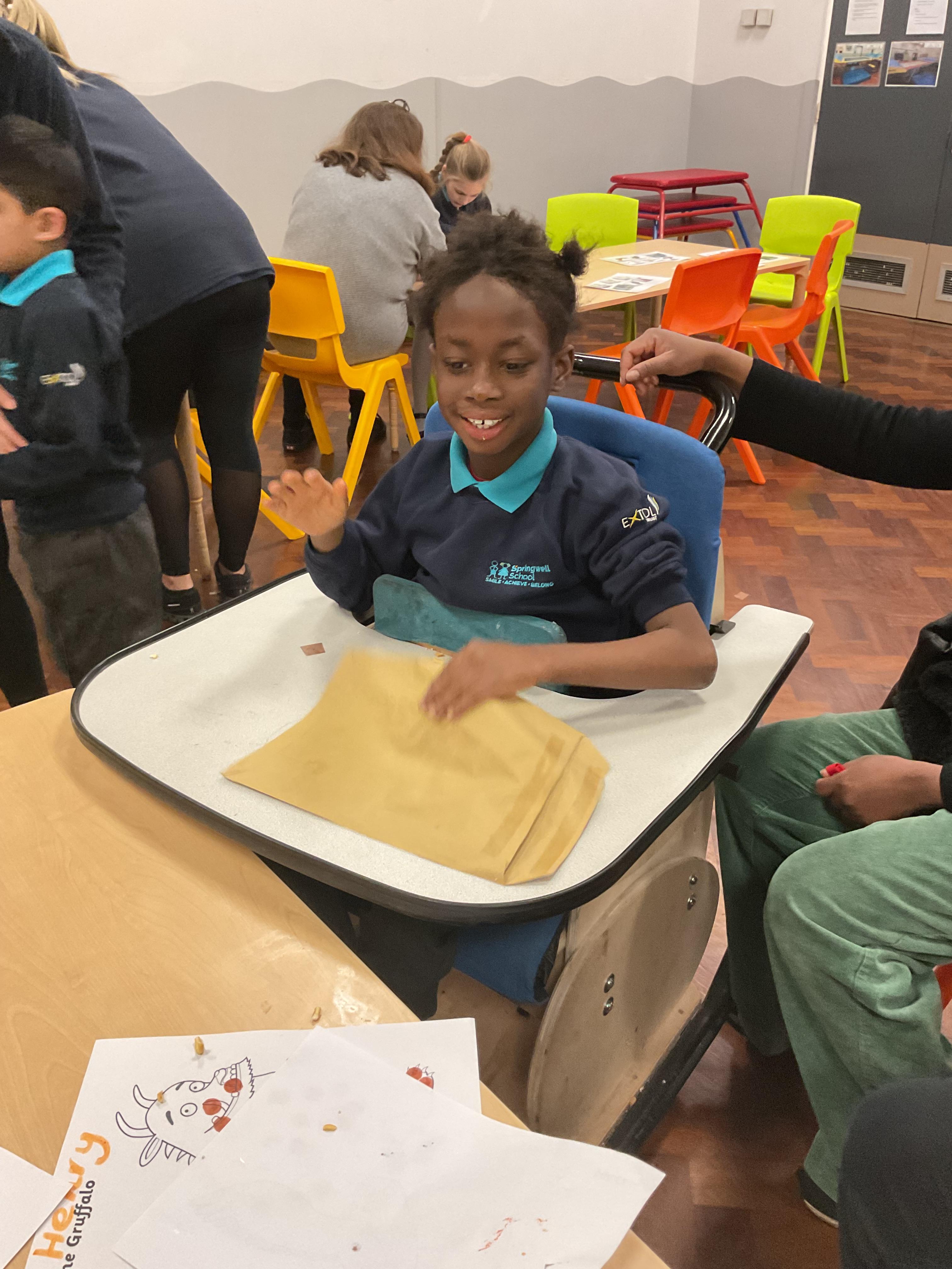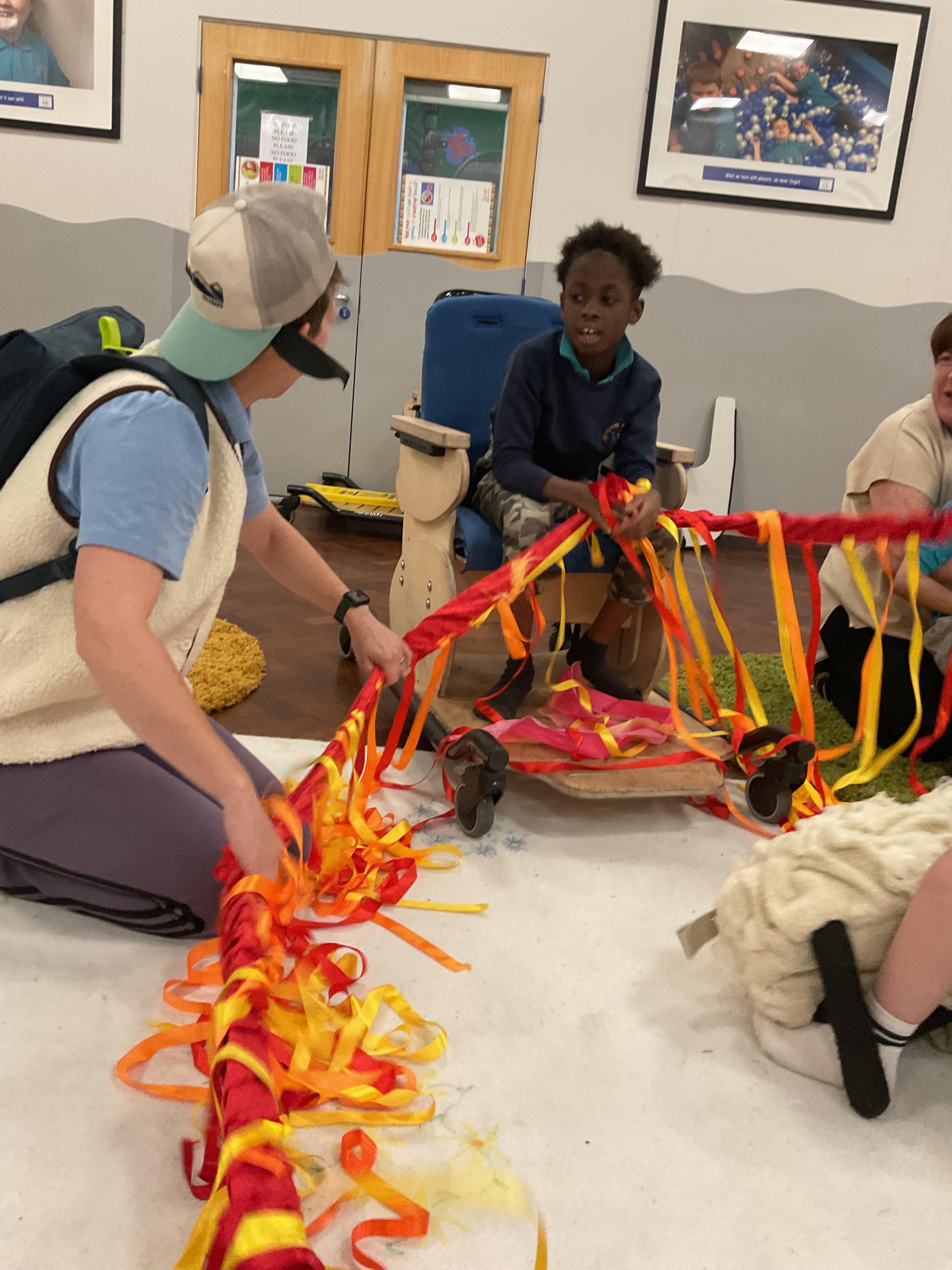 What an amazing and settled week back at school! We have all enjoyed being back with our friends and participating in our familiar routines. We started the week with a relaxing TACPAC session, which uses sensory communication through touch and music. In art, we decorated colourful paper plates with various materials we found around school. Our focused story this week is “We’re Going on a Bear Hunt,” which is one of our favourites! All our hard work this week has been linked to our focused story. In cookery, we made bear biscuits using digestive biscuits, icing and chocolate buttons. We tried very hard with our adults to ice the biscuits, but we definitely didn’t need any help eating them! In literacy, we went out into the community and read our story in the sunshine. We visited Ward Jackson Park, where we joined in on our own little bear hunt, just like in the story. We had lots of fun searching for the bears hidden in the woods. When we returned to school, we found bears hidden in our outdoor area. During swimming this week, we worked on our individual targets in the pool by communicating in the water for toys and floating without adult support. In PSHRE, we practiced our cutting skills trying very hard. We also enjoyed exploring our new play equipment in the school yard with our friends, taking turns while playing. We want to say a massive thank you to PlayDale for working hard over the two week break to make our playtime so fun!