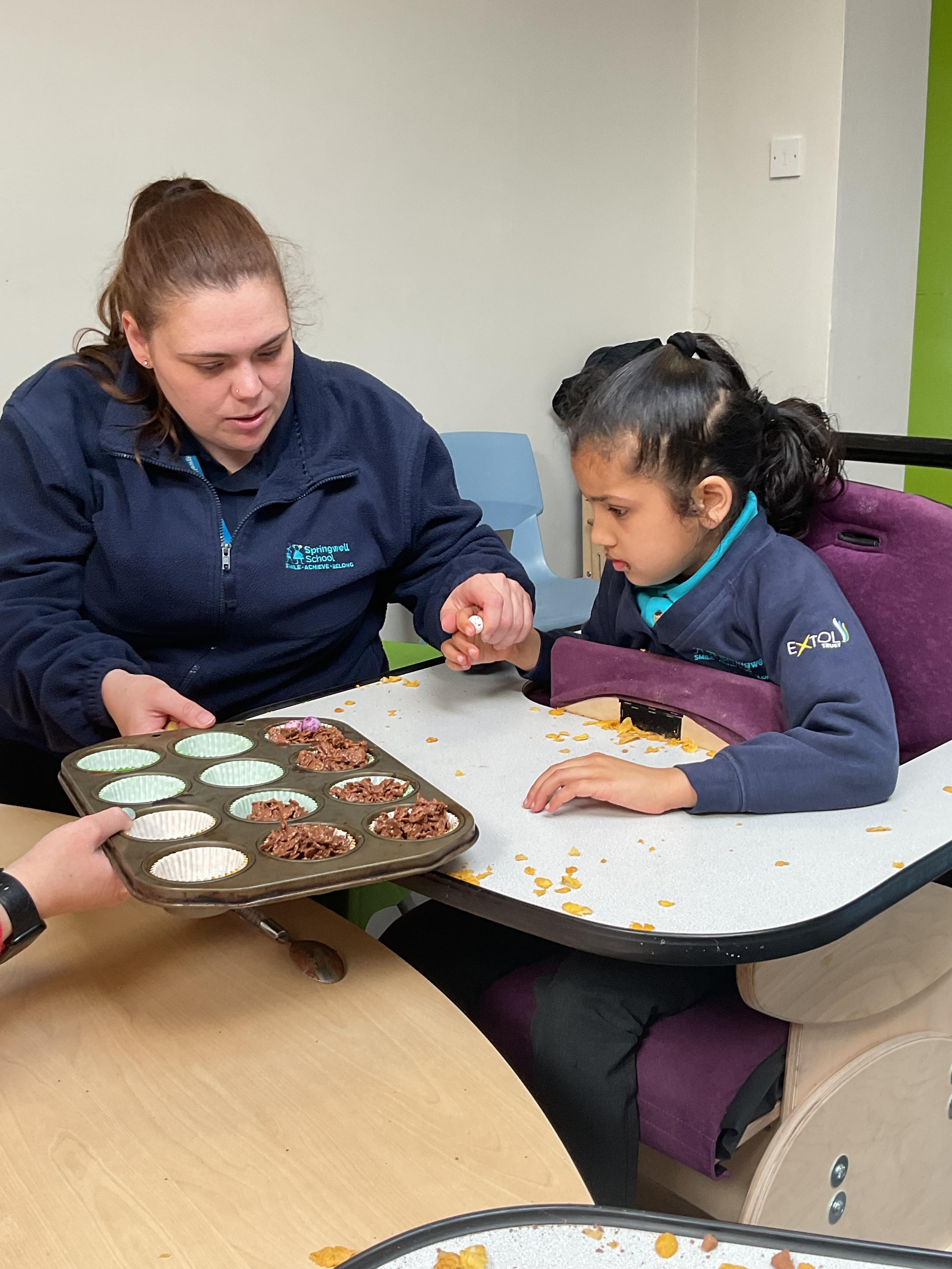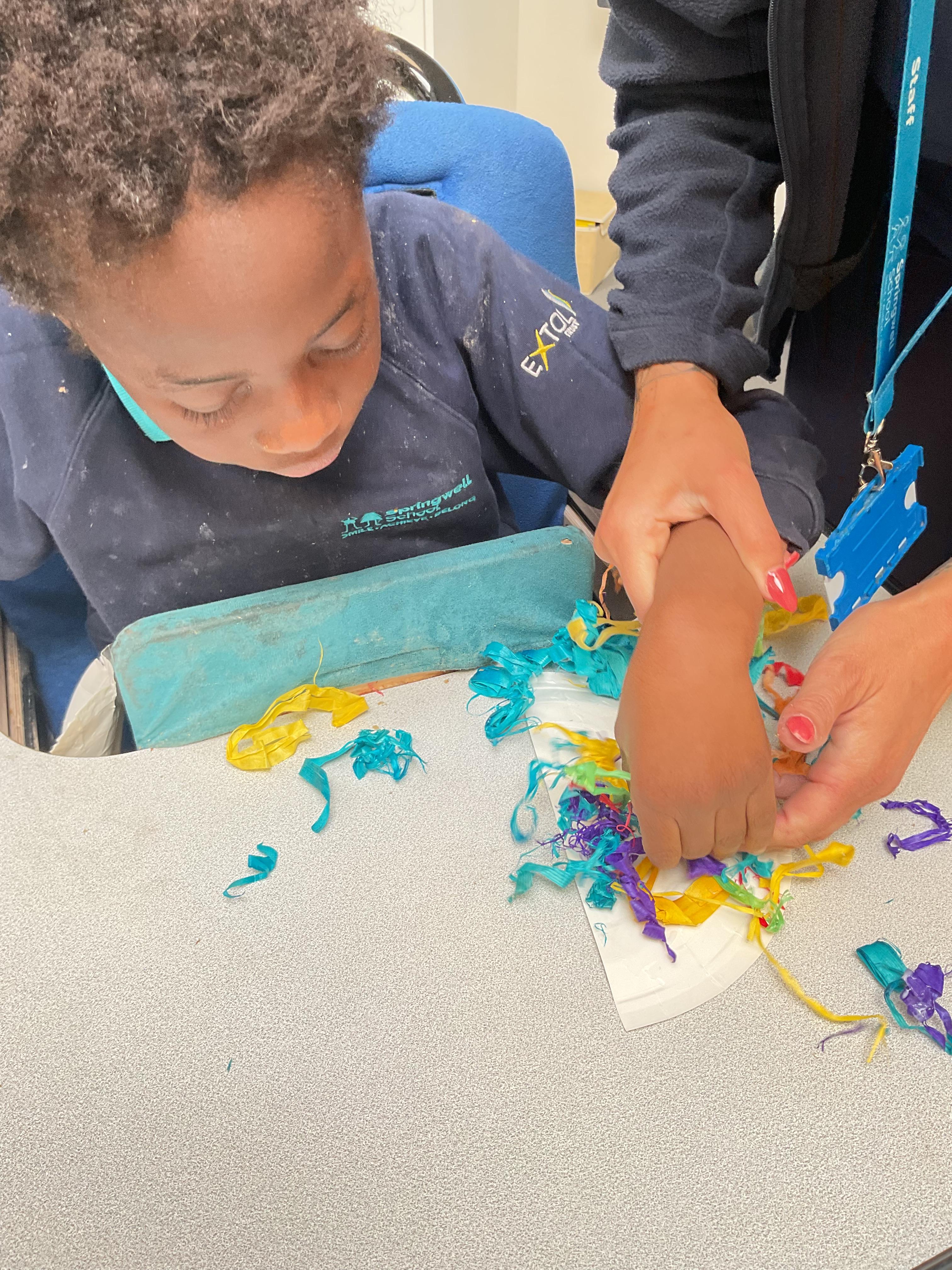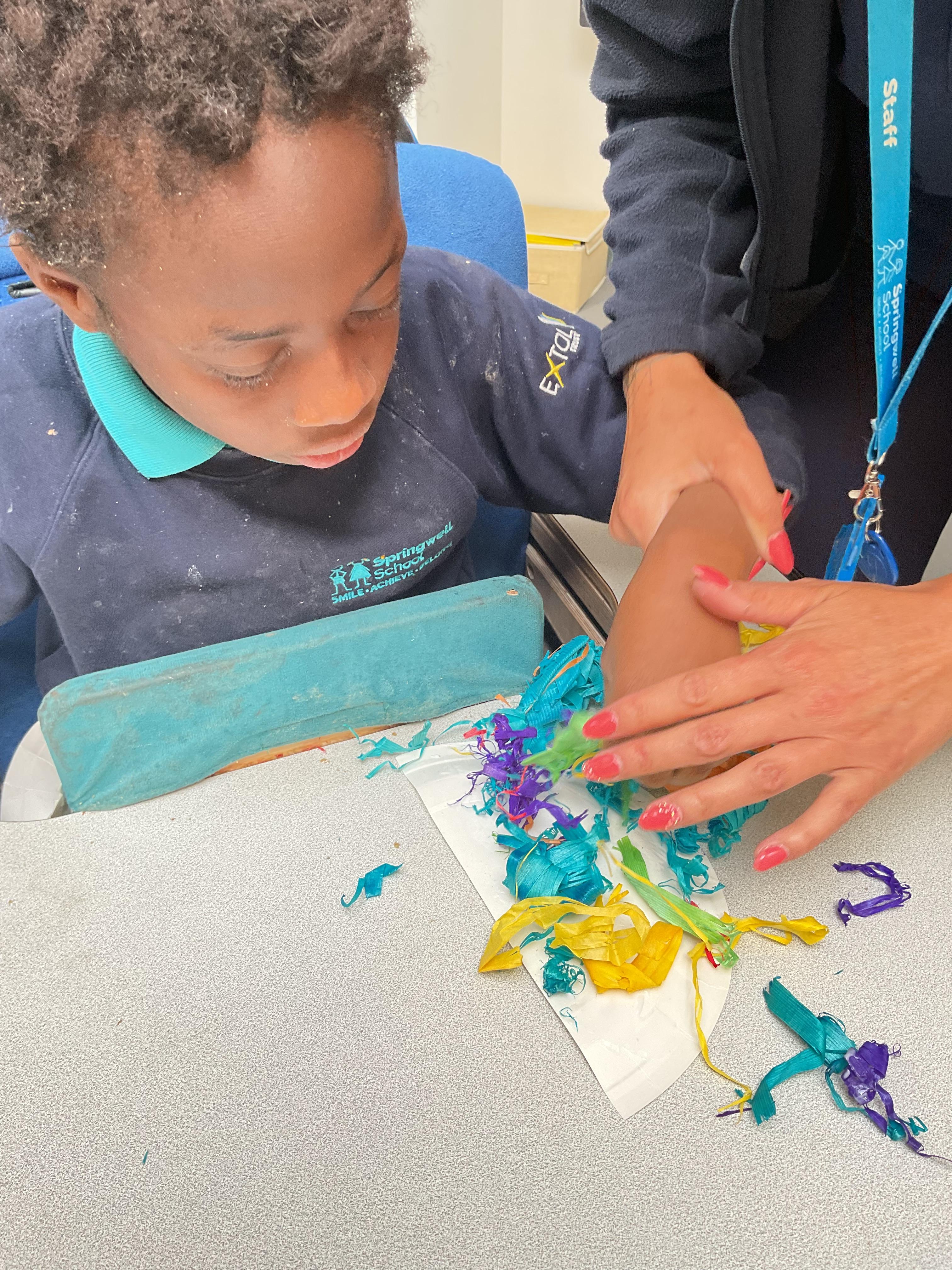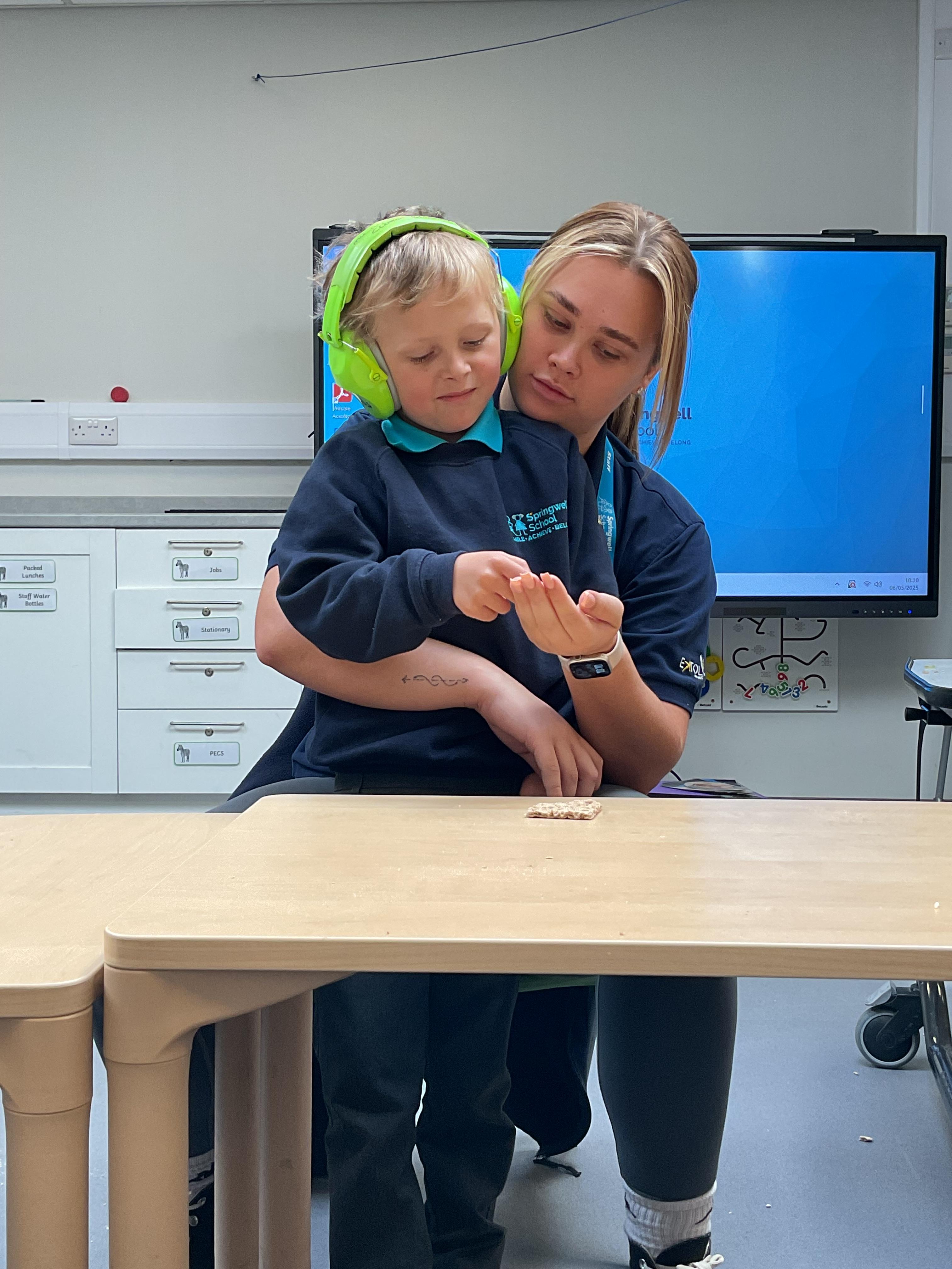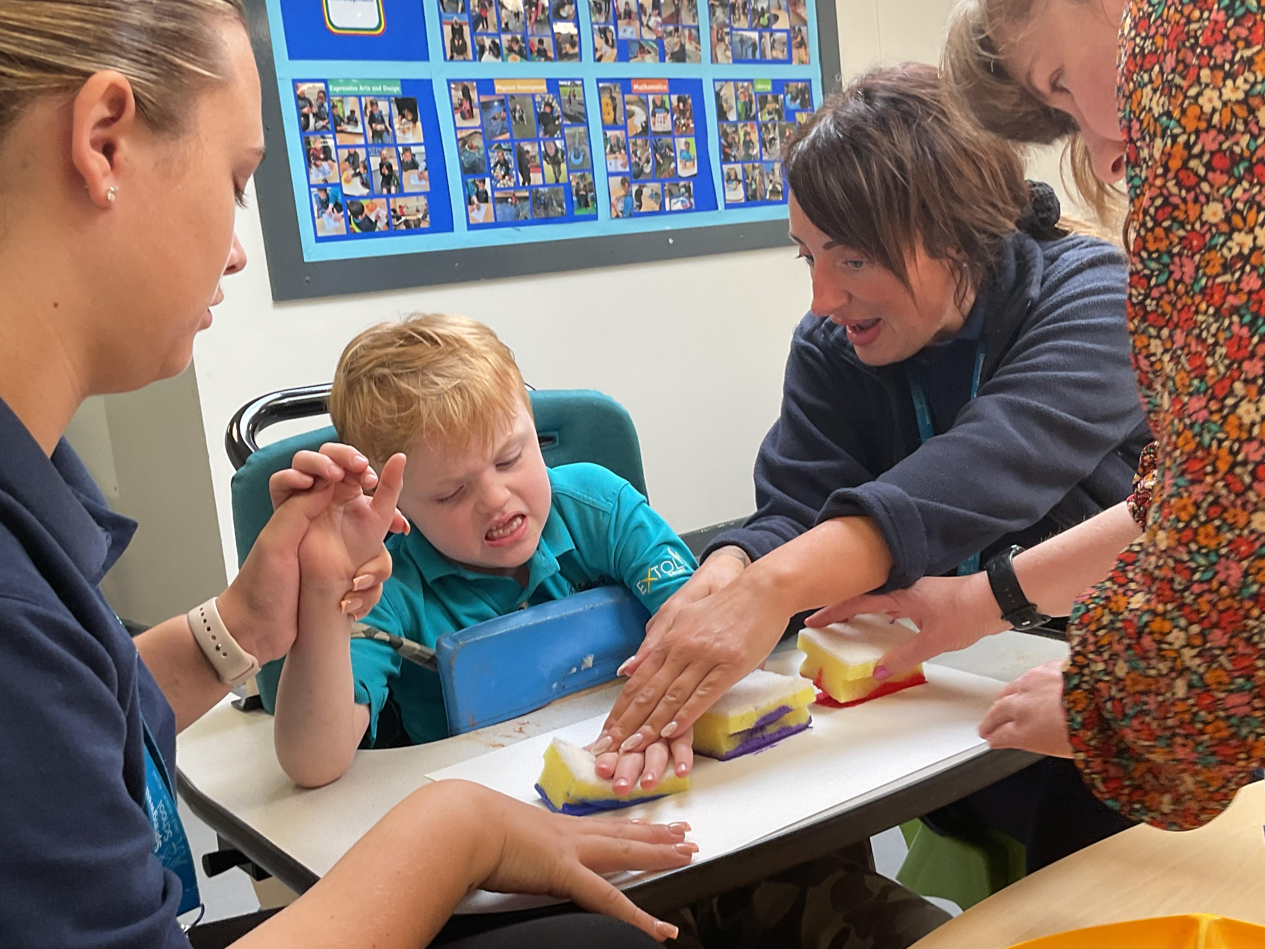 What an amazing and settled week back at school! We have all enjoyed being back with our friends and participating in our familiar routines. We started the week with a relaxing TACPAC session, which uses sensory communication through touch and music. In art, we decorated colourful paper plates with various materials we found around school. Our focused story this week is “We’re Going on a Bear Hunt,” which is one of our favourites! All our hard work this week has been linked to our focused story. In cookery, we made bear biscuits using digestive biscuits, icing and chocolate buttons. We tried very hard with our adults to ice the biscuits, but we definitely didn’t need any help eating them! In literacy, we went out into the community and read our story in the sunshine. We visited Ward Jackson Park, where we joined in on our own little bear hunt, just like in the story. We had lots of fun searching for the bears hidden in the woods. When we returned to school, we found bears hidden in our outdoor area. During swimming this week, we worked on our individual targets in the pool by communicating in the water for toys and floating without adult support. In PSHRE, we practiced our cutting skills trying very hard. We also enjoyed exploring our new play equipment in the school yard with our friends, taking turns while playing. We want to say a massive thank you to PlayDale for working hard over the two week break to make our playtime so fun!