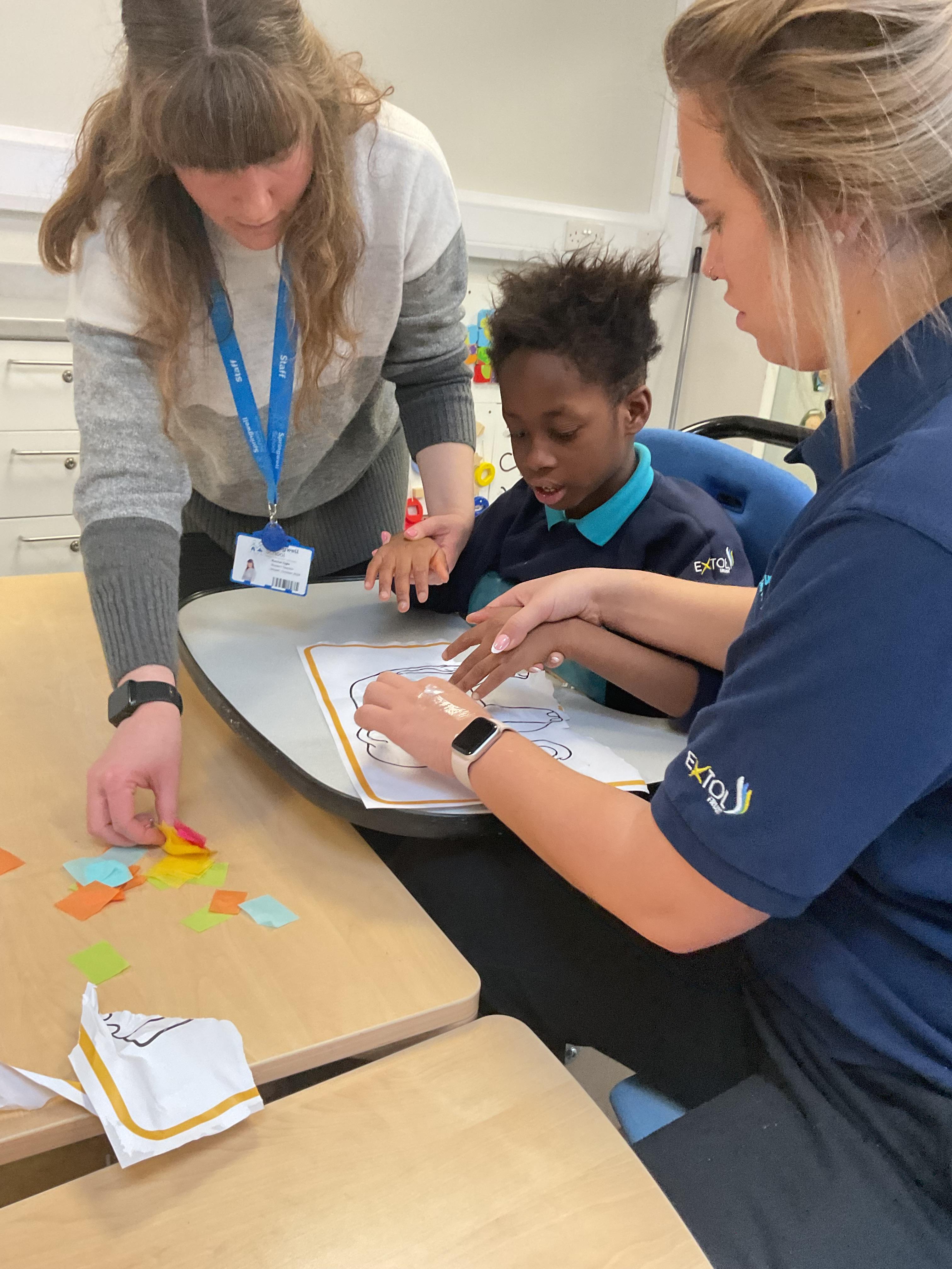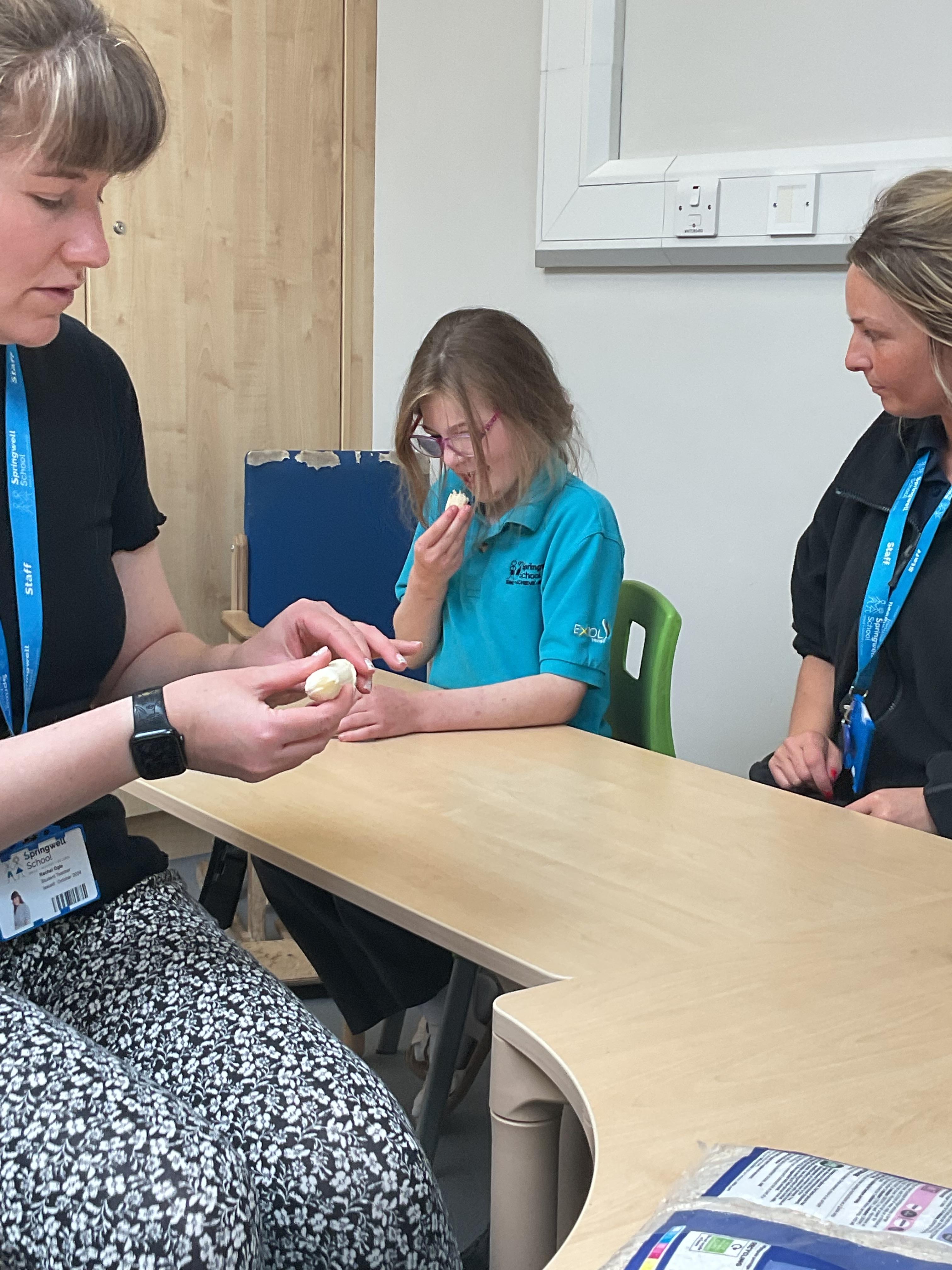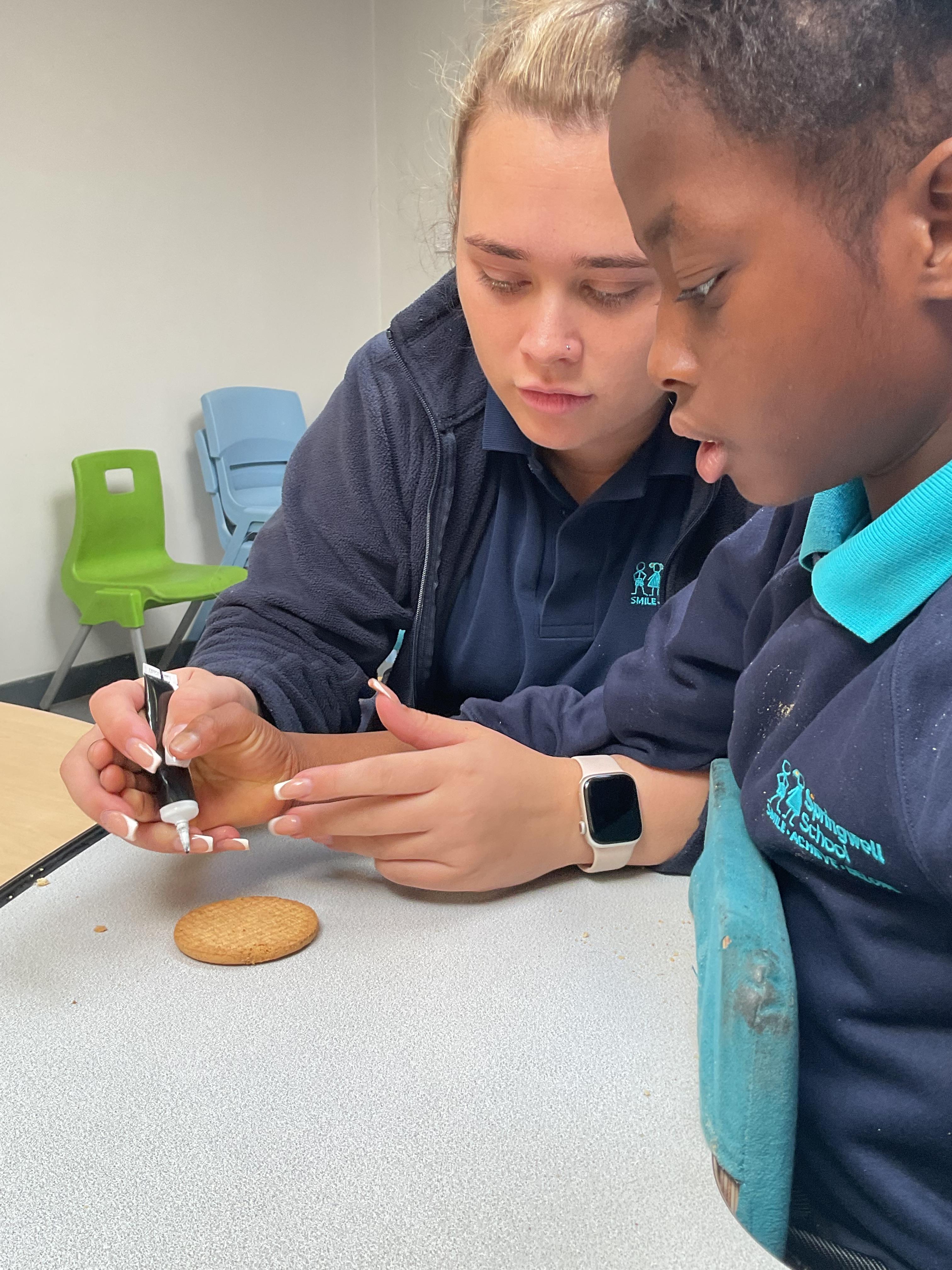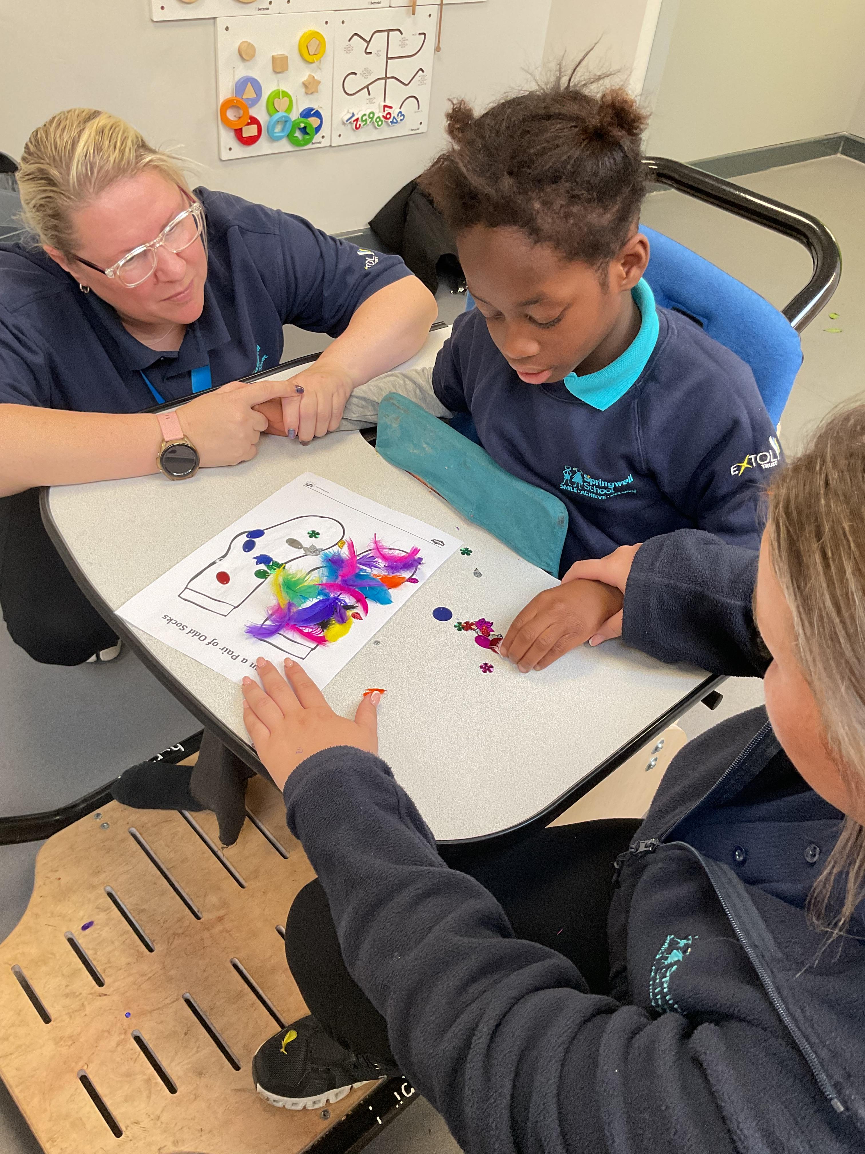 What an amazing and settled week back at school! We have all enjoyed being back with our friends and participating in our familiar routines. We started the week with a relaxing TACPAC session, which uses sensory communication through touch and music. In art, we decorated colourful paper plates with various materials we found around school. Our focused story this week is “We’re Going on a Bear Hunt,” which is one of our favourites! All our hard work this week has been linked to our focused story. In cookery, we made bear biscuits using digestive biscuits, icing and chocolate buttons. We tried very hard with our adults to ice the biscuits, but we definitely didn’t need any help eating them! In literacy, we went out into the community and read our story in the sunshine. We visited Ward Jackson Park, where we joined in on our own little bear hunt, just like in the story. We had lots of fun searching for the bears hidden in the woods. When we returned to school, we found bears hidden in our outdoor area. During swimming this week, we worked on our individual targets in the pool by communicating in the water for toys and floating without adult support. In PSHRE, we practiced our cutting skills trying very hard. We also enjoyed exploring our new play equipment in the school yard with our friends, taking turns while playing. We want to say a massive thank you to PlayDale for working hard over the two week break to make our playtime so fun!