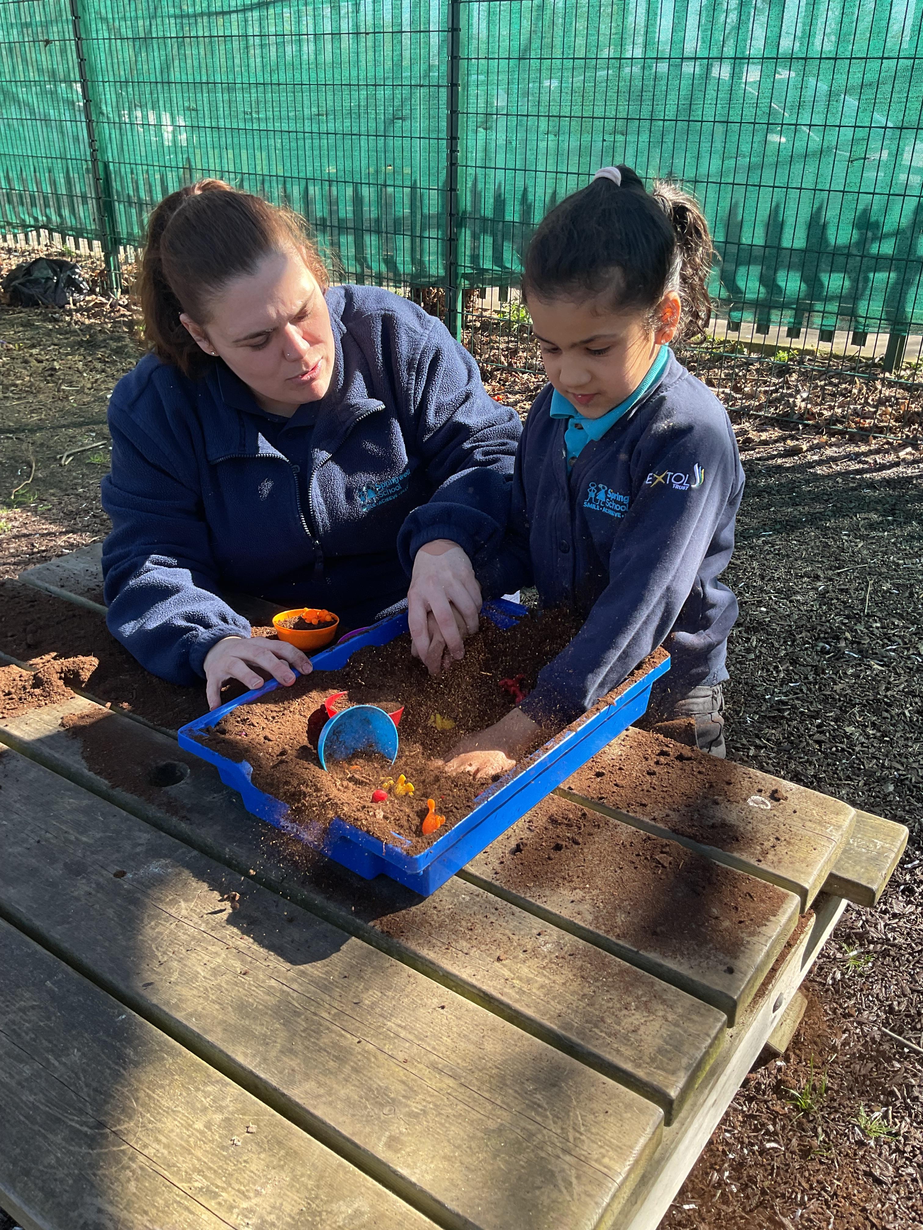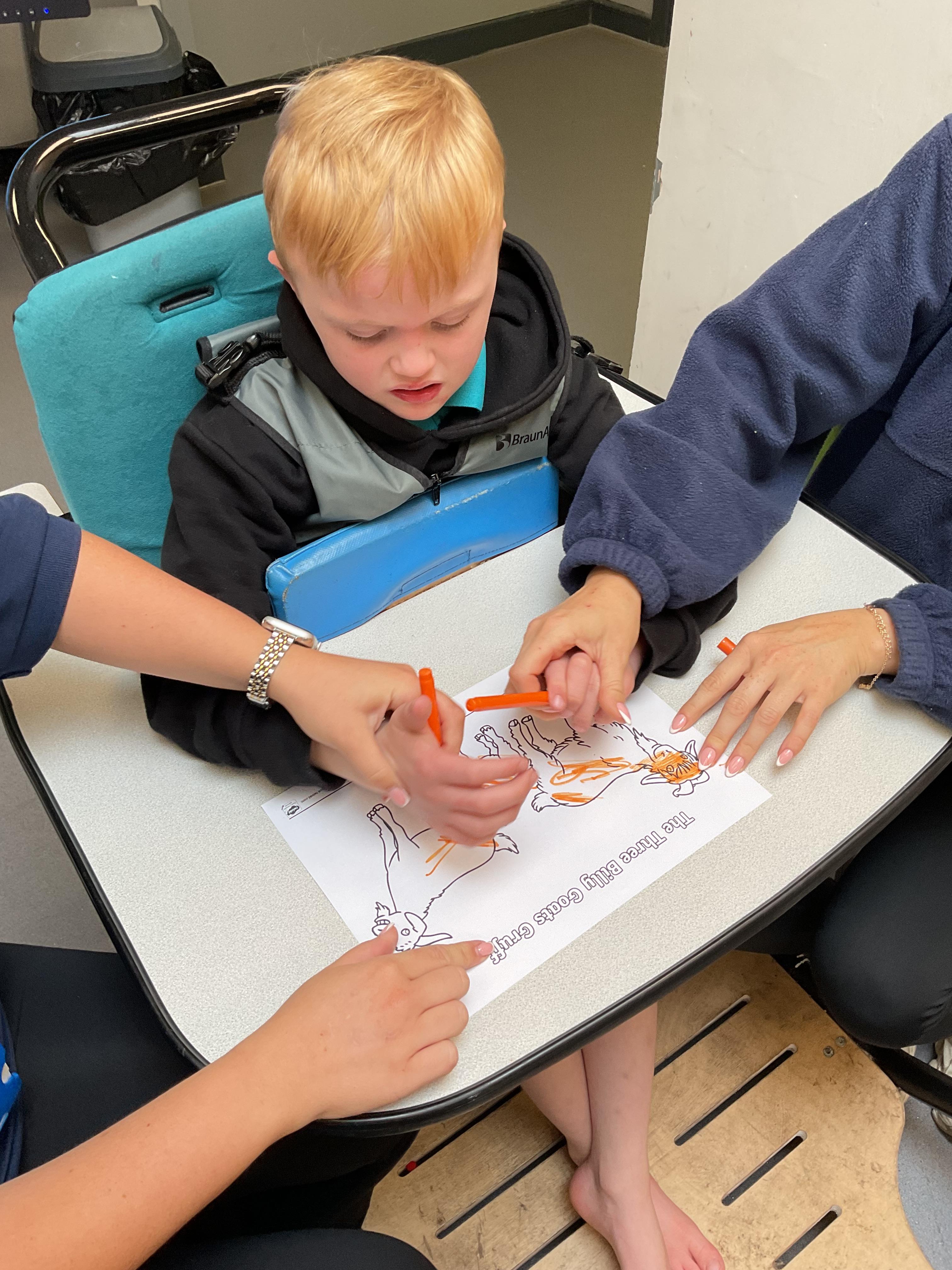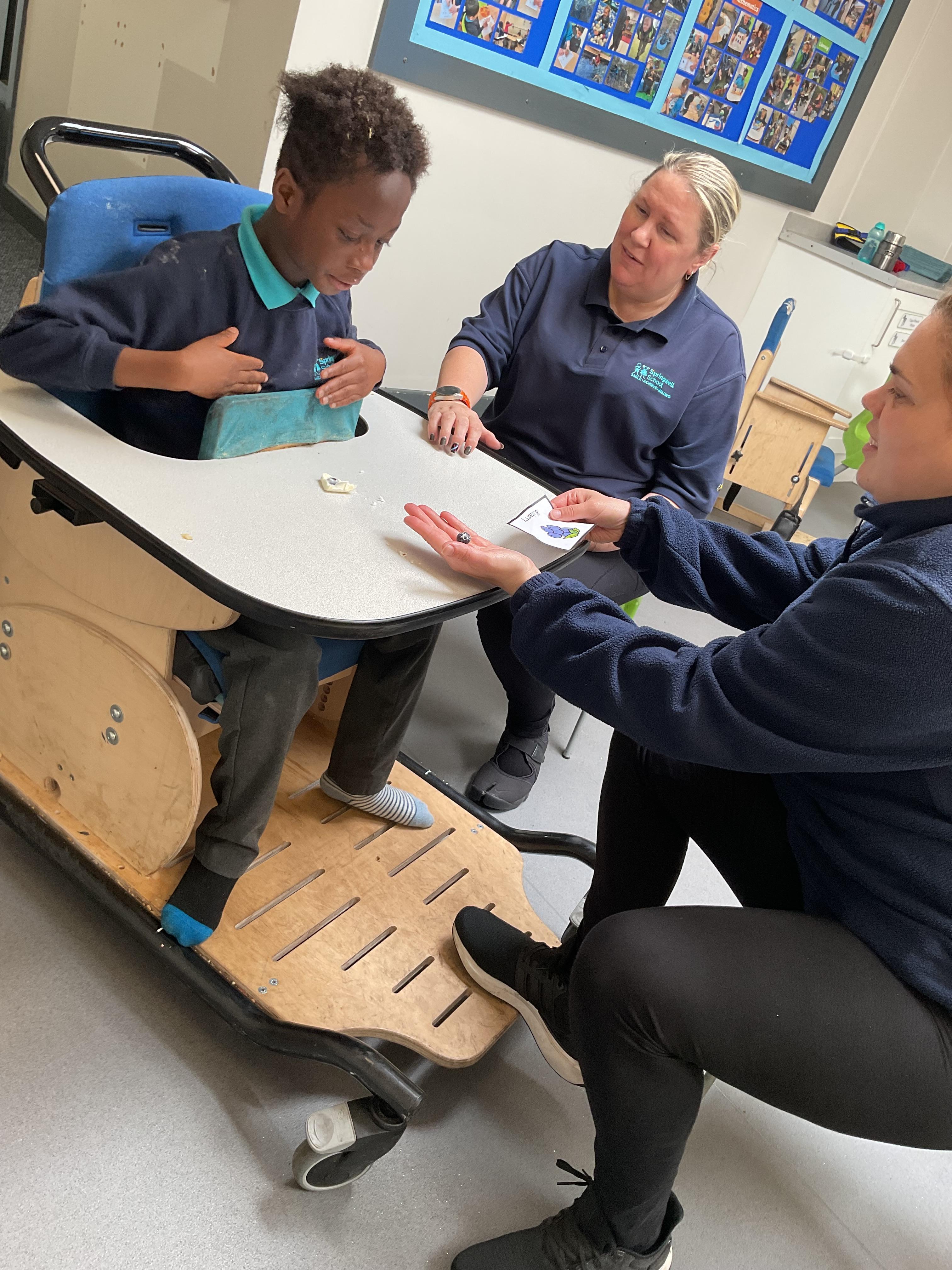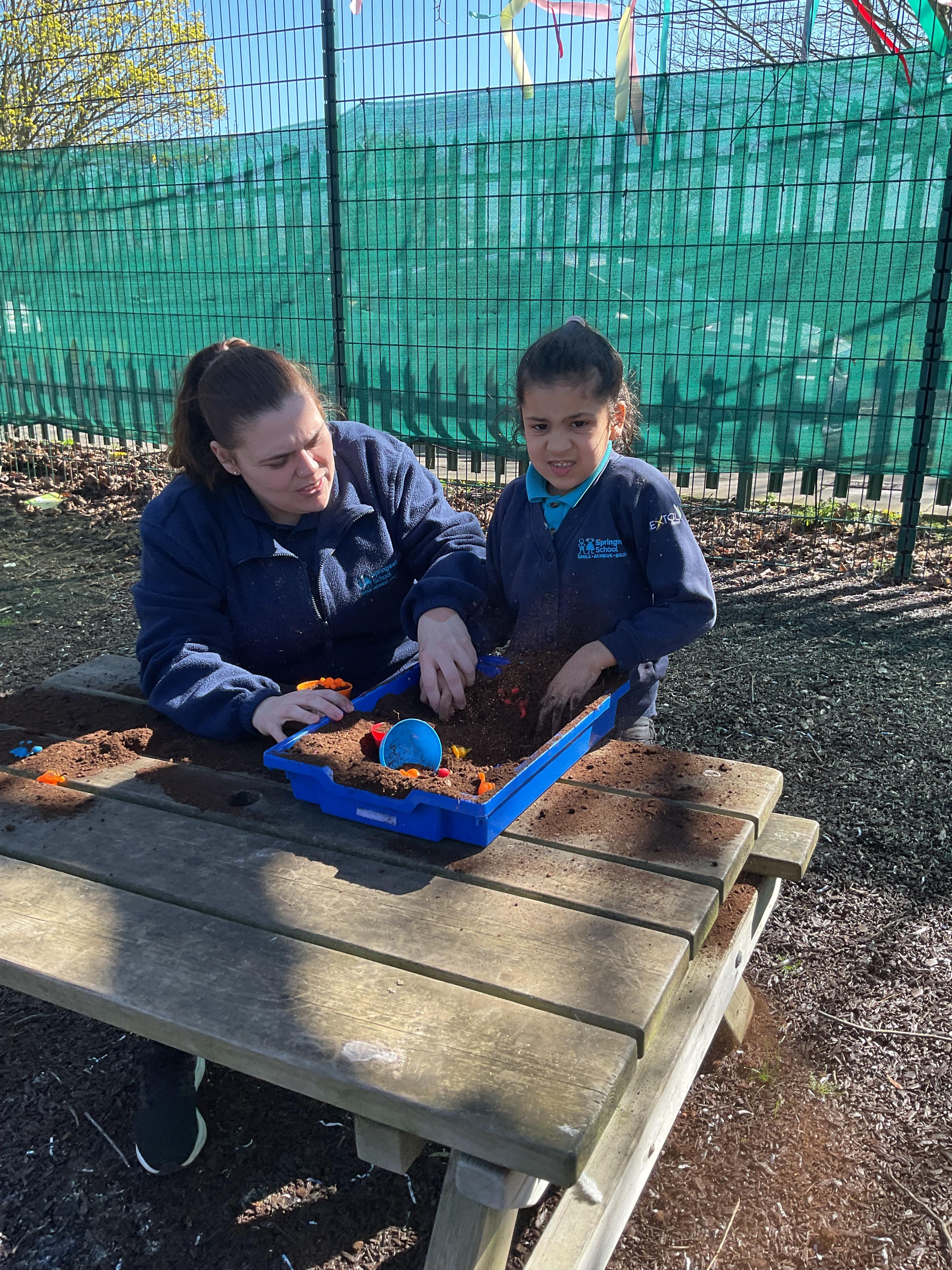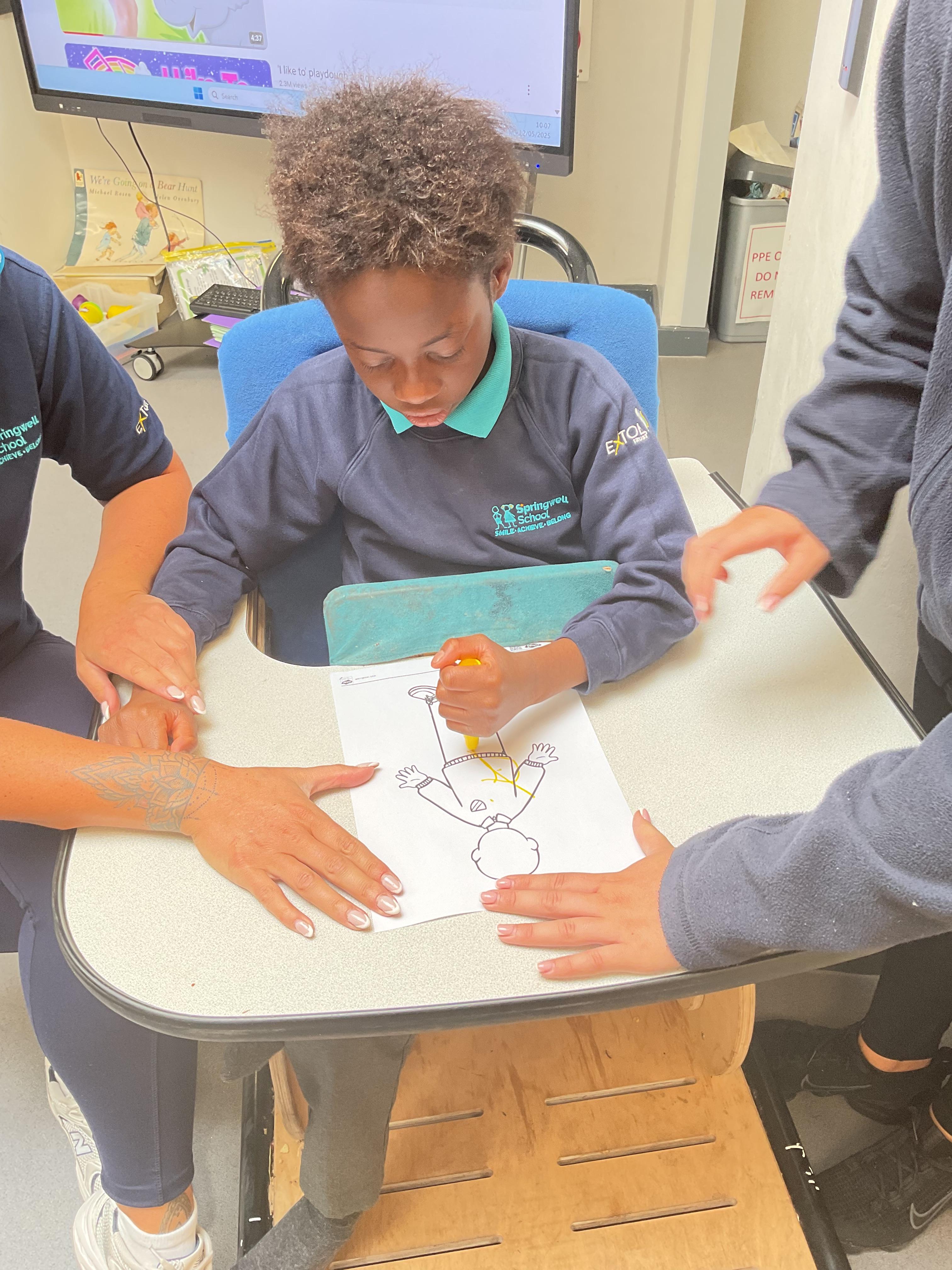 What an amazing and settled week back at school! We have all enjoyed being back with our friends and participating in our familiar routines. We started the week with a relaxing TACPAC session, which uses sensory communication through touch and music. In art, we decorated colourful paper plates with various materials we found around school. Our focused story this week is “We’re Going on a Bear Hunt,” which is one of our favourites! All our hard work this week has been linked to our focused story. In cookery, we made bear biscuits using digestive biscuits, icing and chocolate buttons. We tried very hard with our adults to ice the biscuits, but we definitely didn’t need any help eating them! In literacy, we went out into the community and read our story in the sunshine. We visited Ward Jackson Park, where we joined in on our own little bear hunt, just like in the story. We had lots of fun searching for the bears hidden in the woods. When we returned to school, we found bears hidden in our outdoor area. During swimming this week, we worked on our individual targets in the pool by communicating in the water for toys and floating without adult support. In PSHRE, we practiced our cutting skills trying very hard. We also enjoyed exploring our new play equipment in the school yard with our friends, taking turns while playing. We want to say a massive thank you to PlayDale for working hard over the two week break to make our playtime so fun!