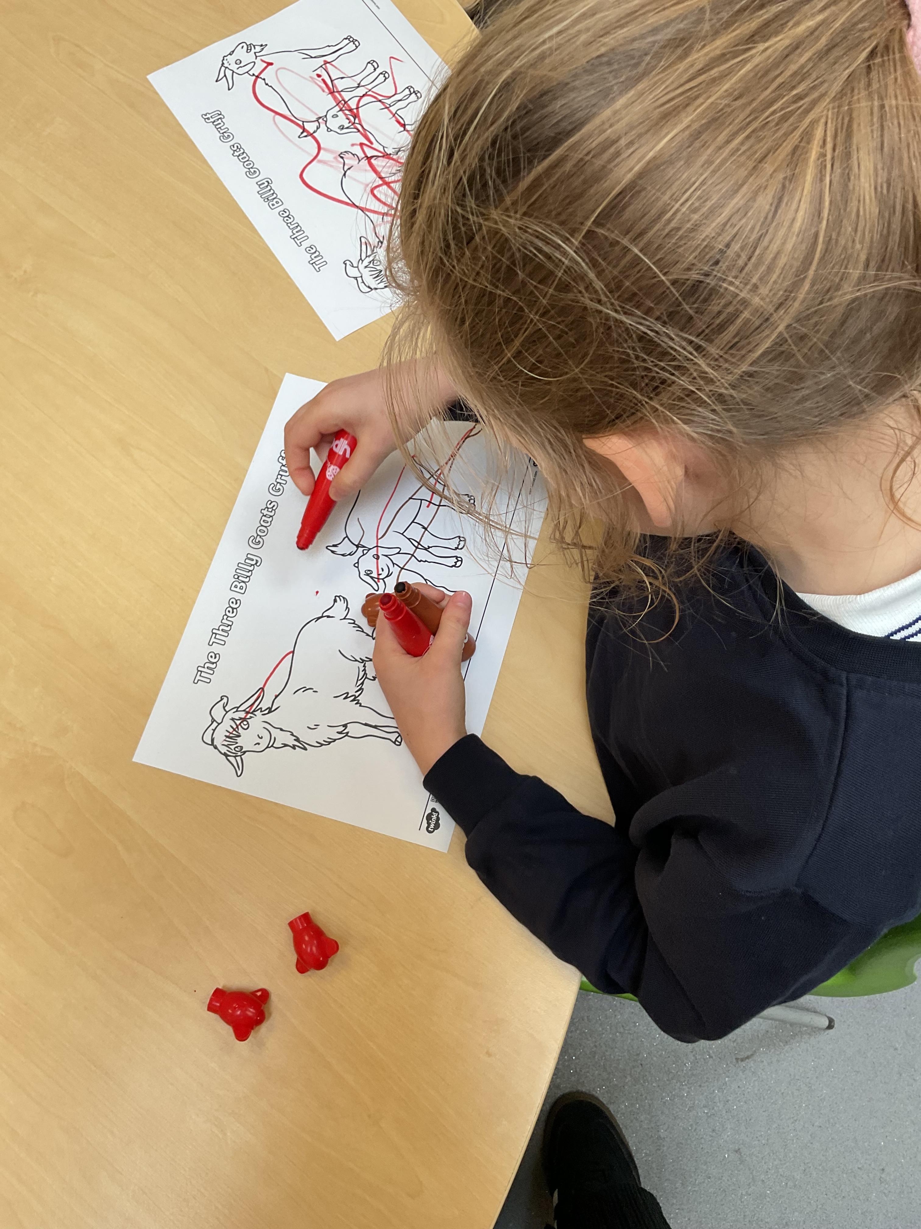 This week we have explored the colour red, we looked around the classroom for red objects. We found red tomatoes, red bricks and a red bus. We listened to the red song and danced with some musical instruments. In literacy this week, we listened to our focused sensory story “The Three Billy Goats Gruff”. In art, we choose our own crayon or felt tip to mark make on the goats. This Thursday, we had an amazing end of year trip visiting Seaton for the day. All the children loved the train ride an