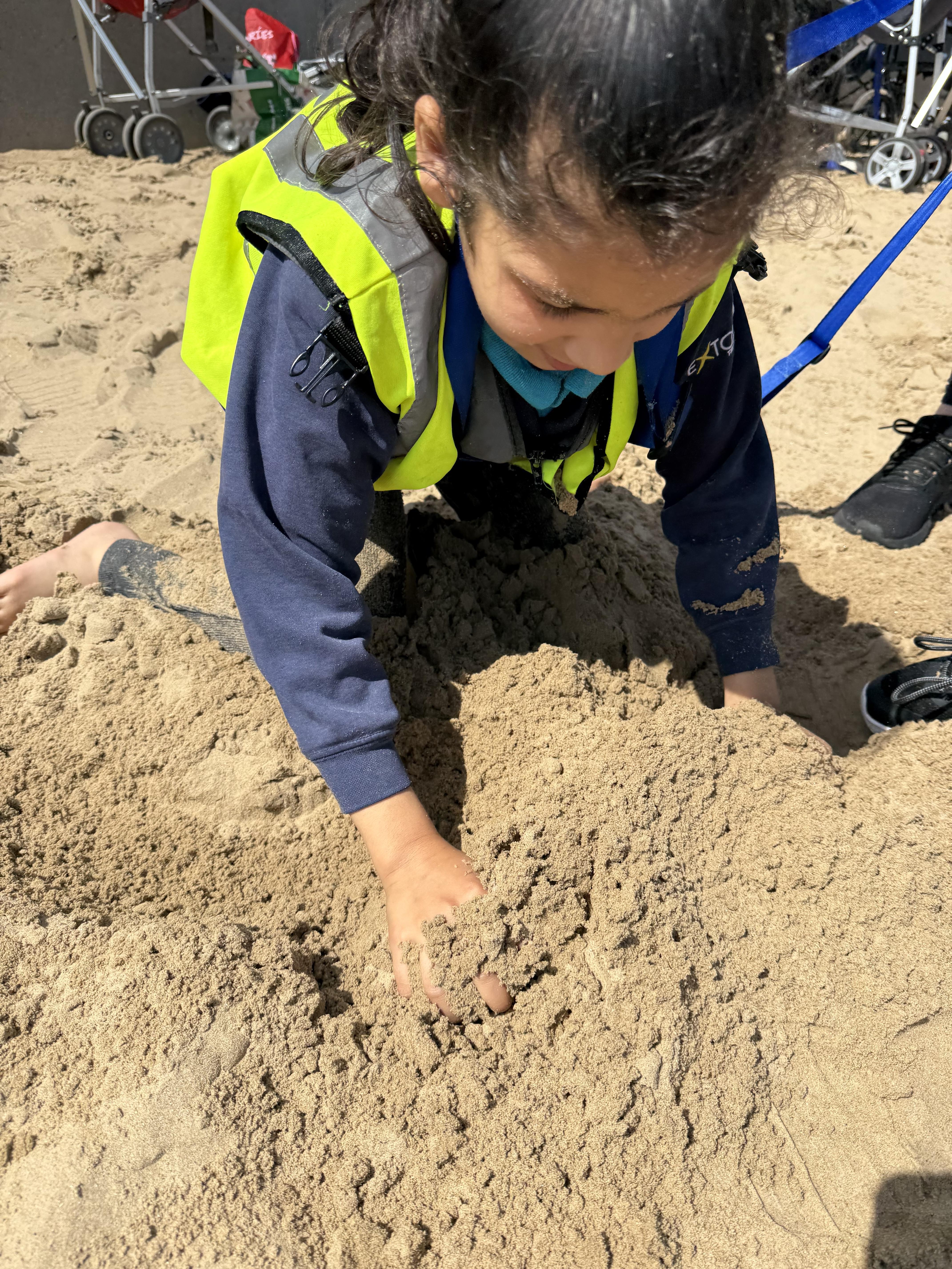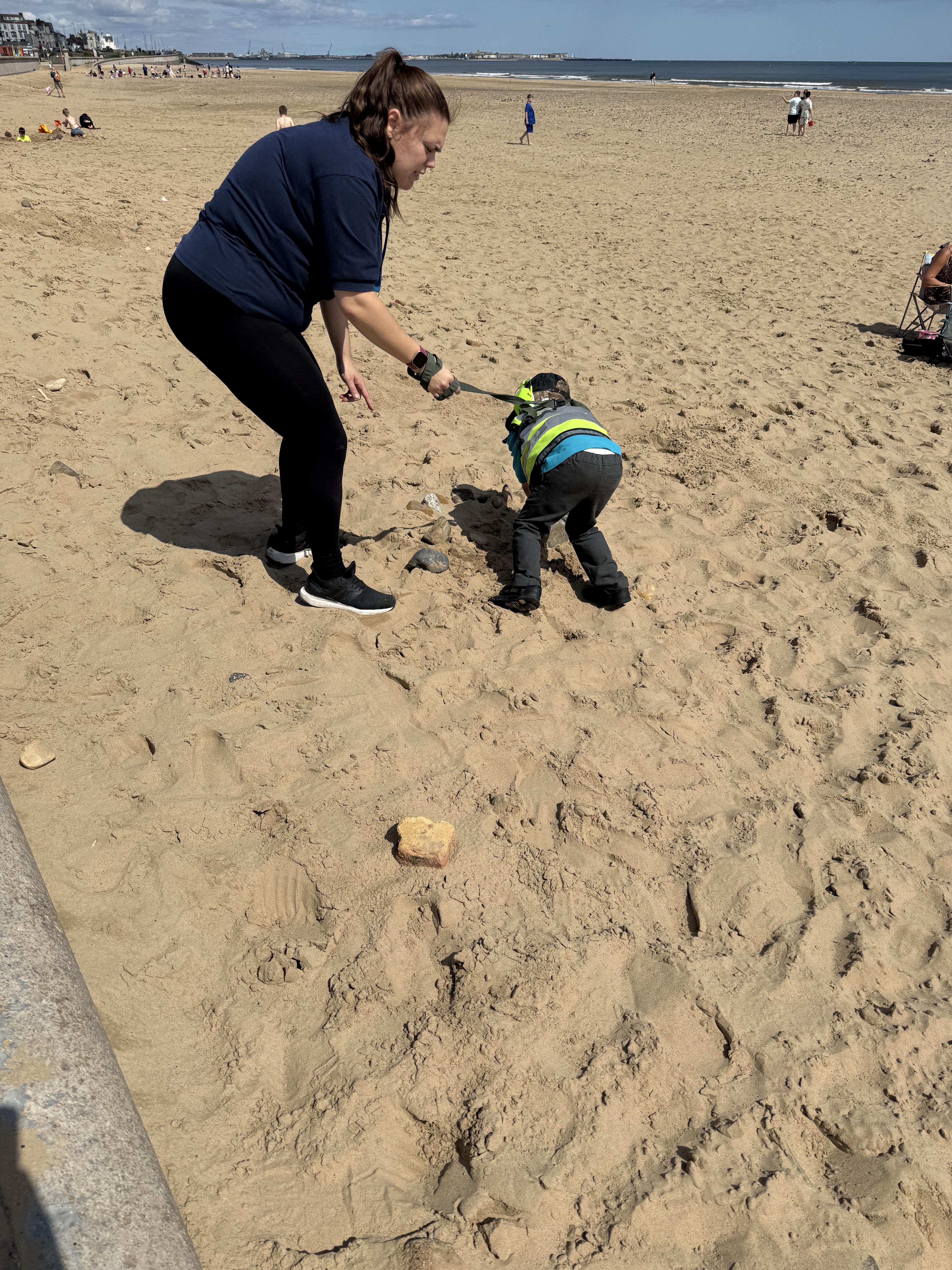 What a fantastic day we had! We hopped onto the bus and visited the beach. To start off, we enjoyed a calm, relaxing walk around Northgare. The children had fun exploring using their senses pouring sand, listening to the waves, looking for shells and rocks. It was lots of fun being outside enjoying the fresh sea air.