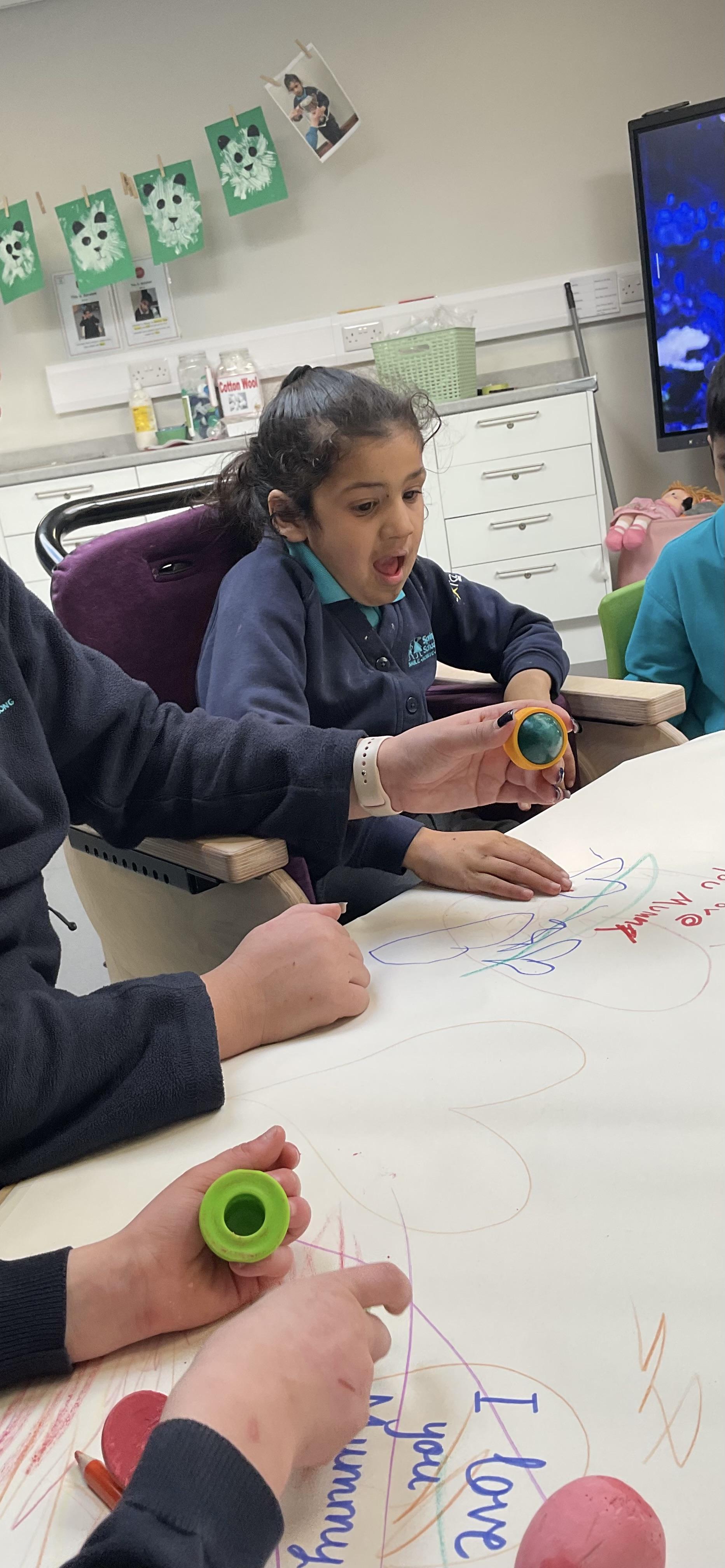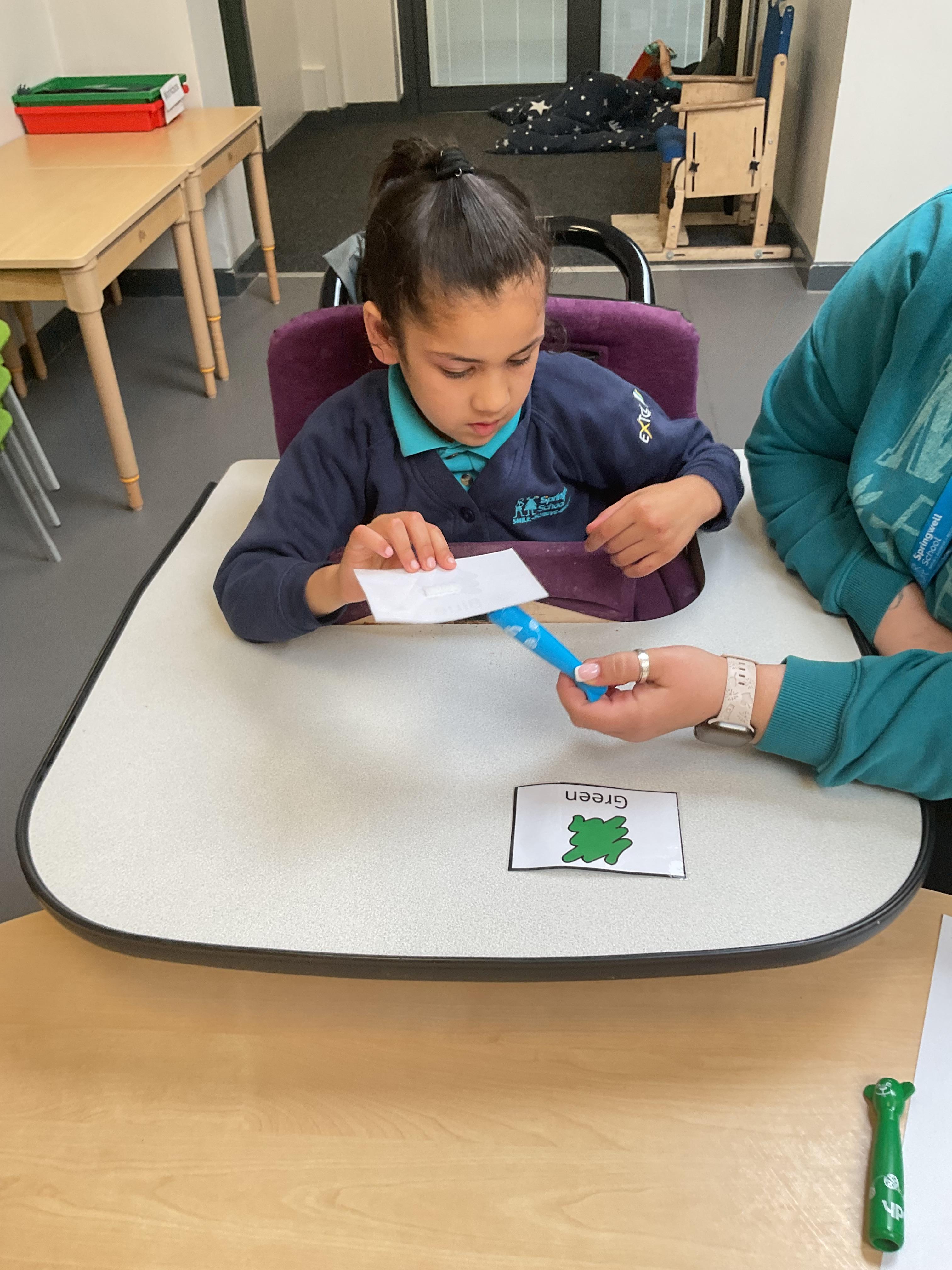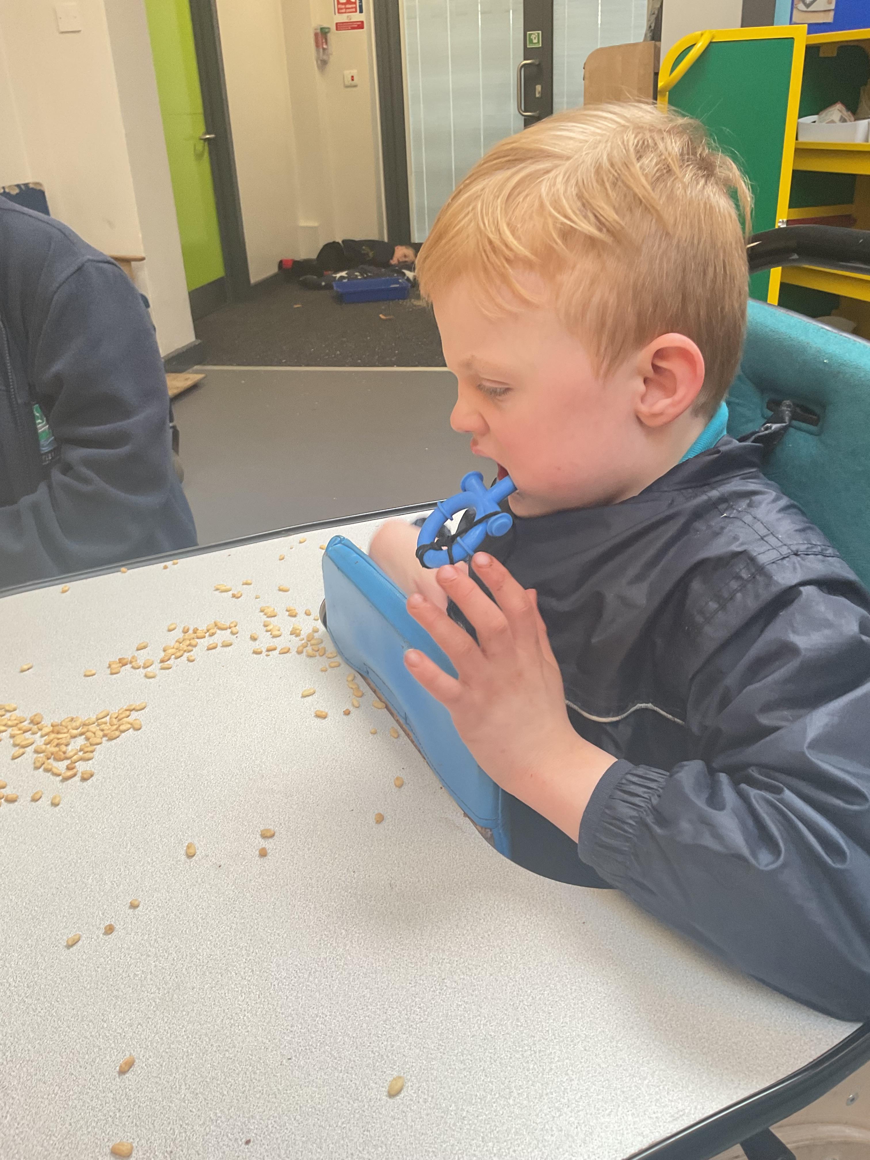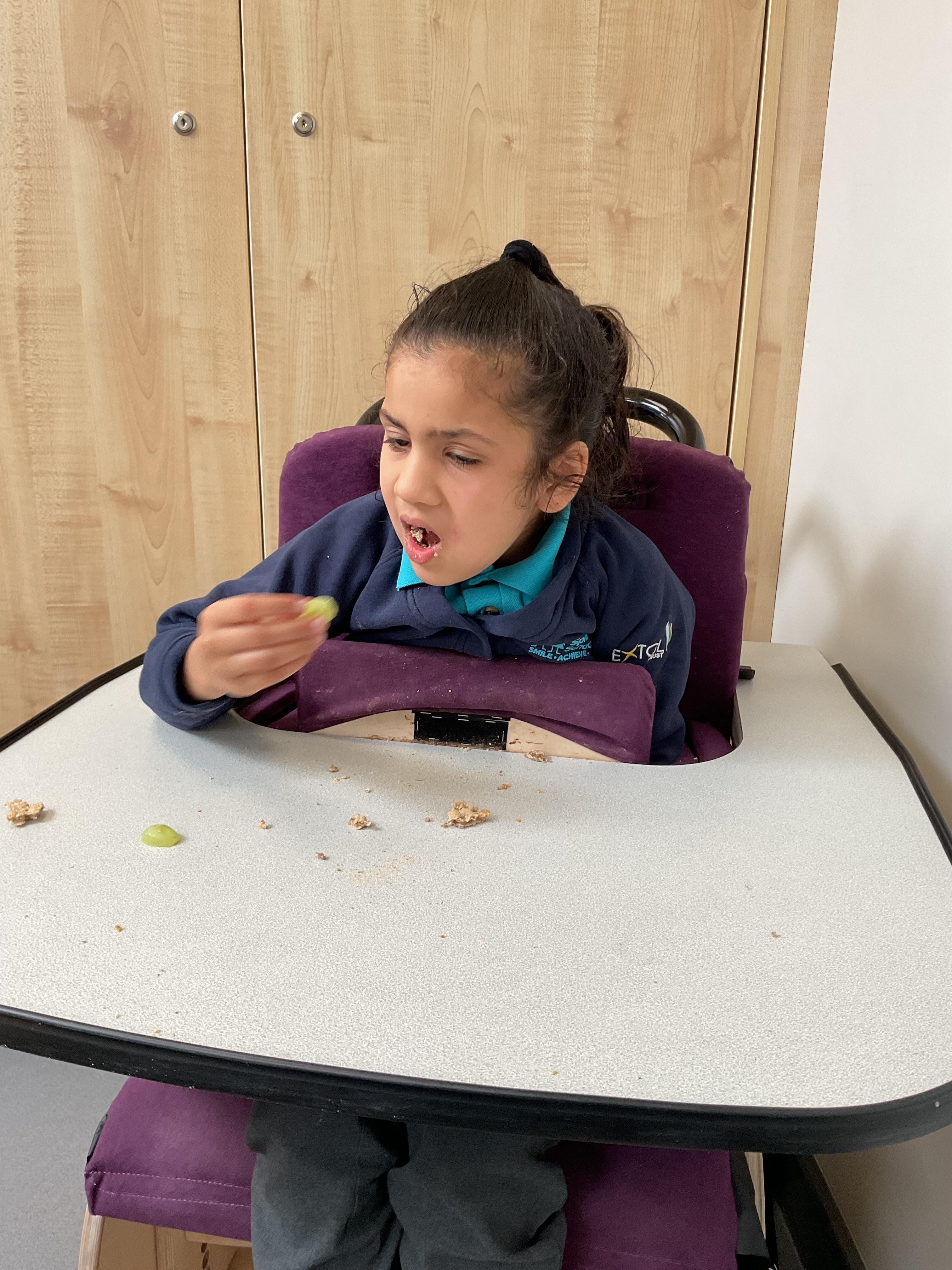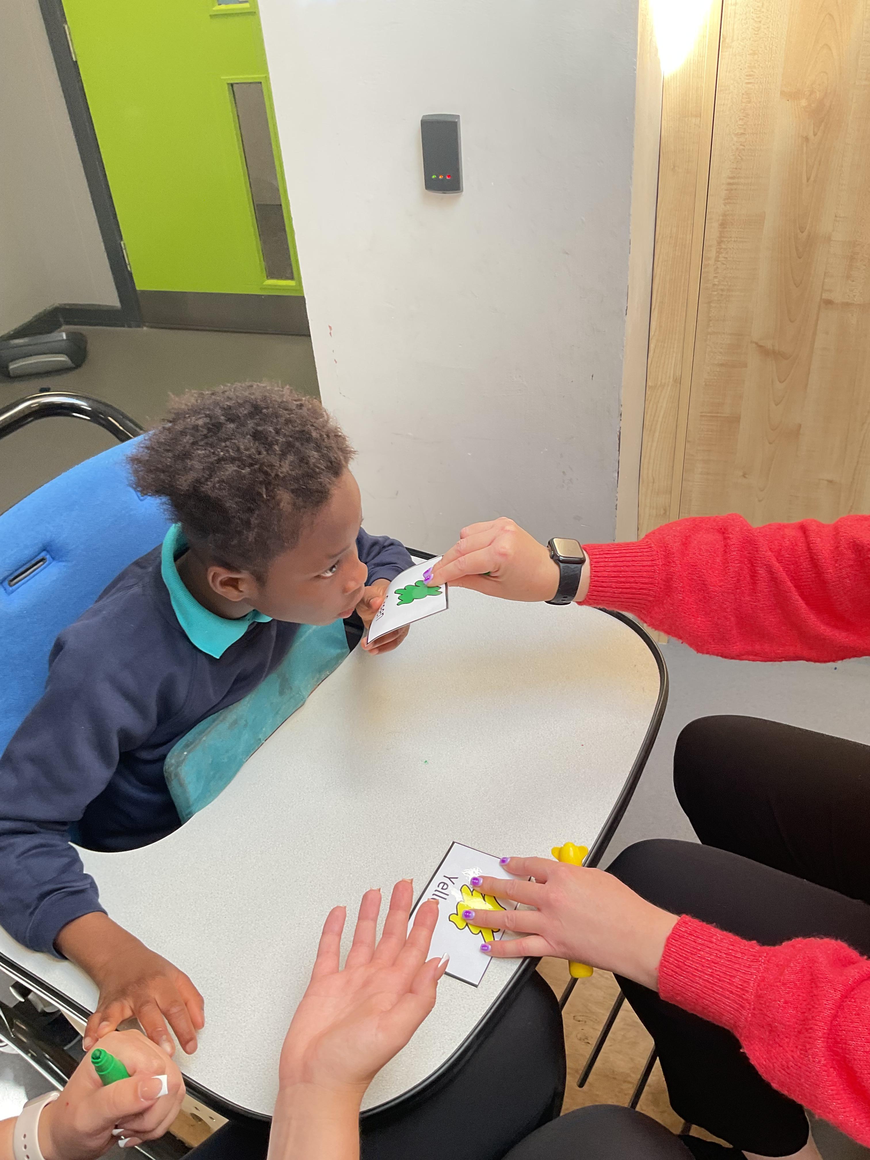 This week in Zebra Class we have made the most of sunshine and got out of the classroom a lot. We have enjoyed lots of water play and exploring in the community. We walked to Lidl and bought some ice lollies for us to enjoy for our snacks. Working on our fine motor skills, we practised cutting, making marks with our fingers and pens. Our colour of the week this week was green, we enjoyed using our senses to explore green foods. Some of us preferred tactile exploring over tasting! All of the children in Zebras really enjoy Attention Time, we are trying really hard to develop and prolong our interest in objects and tracking skills. One of our favourite things to track is bubbles!
