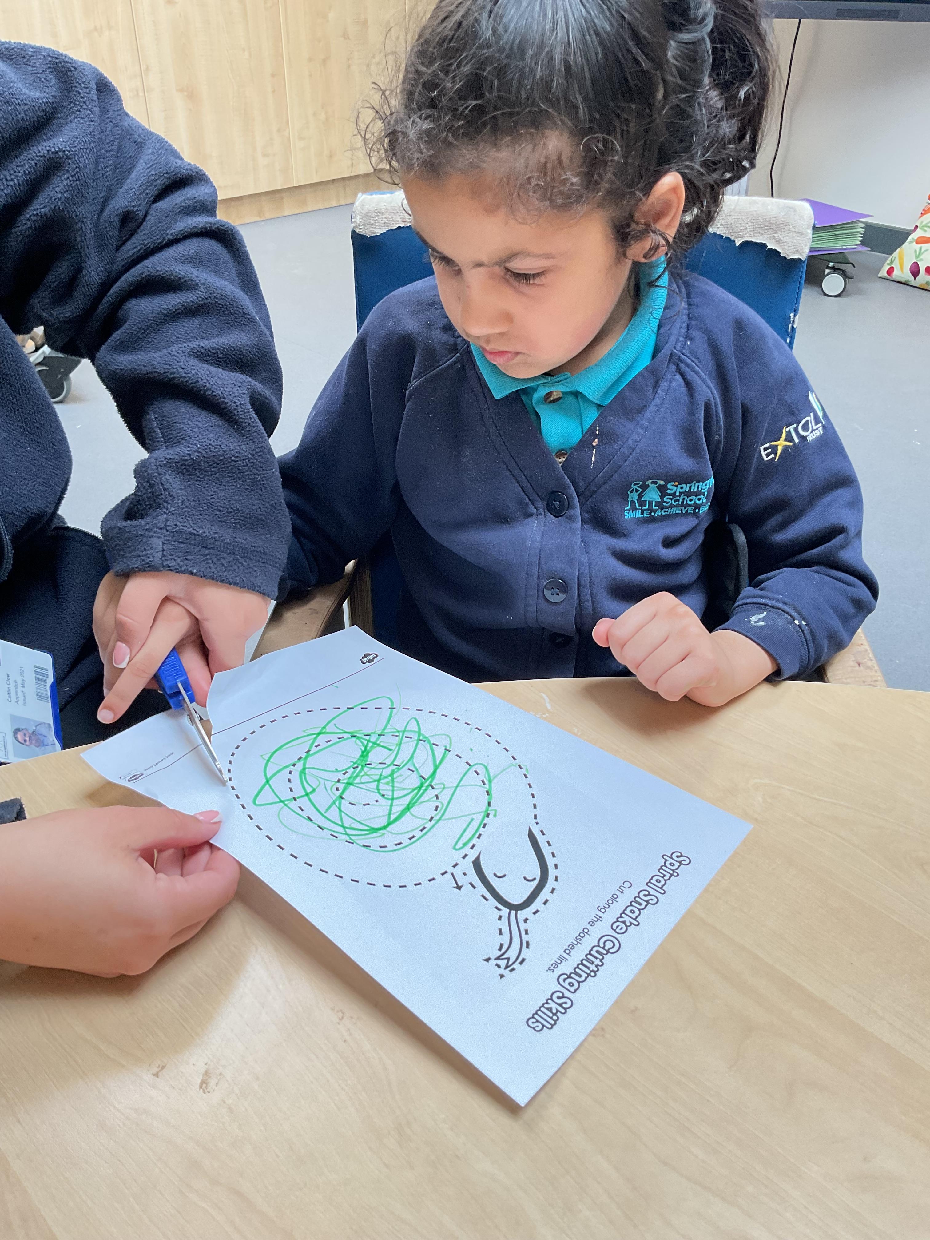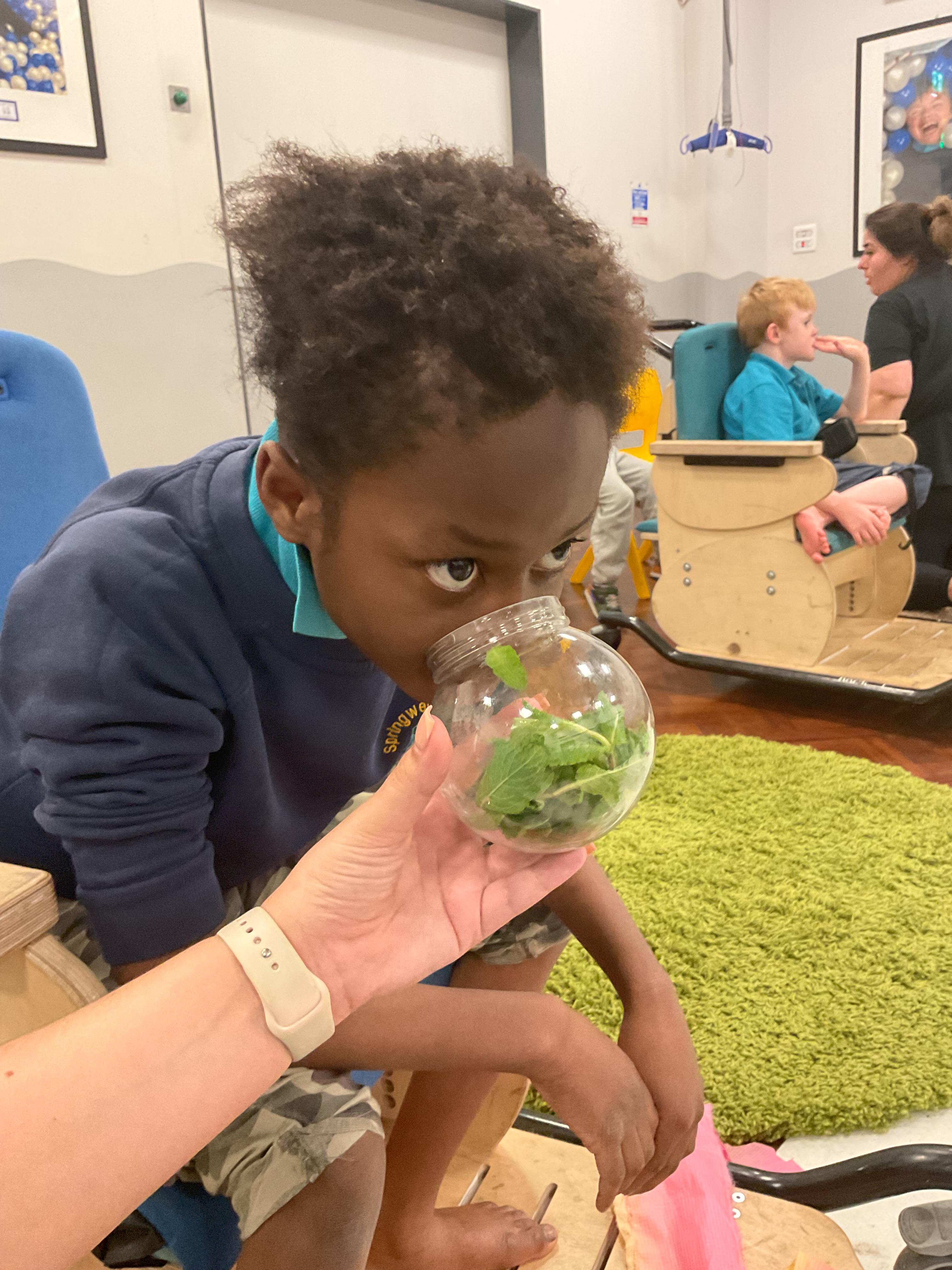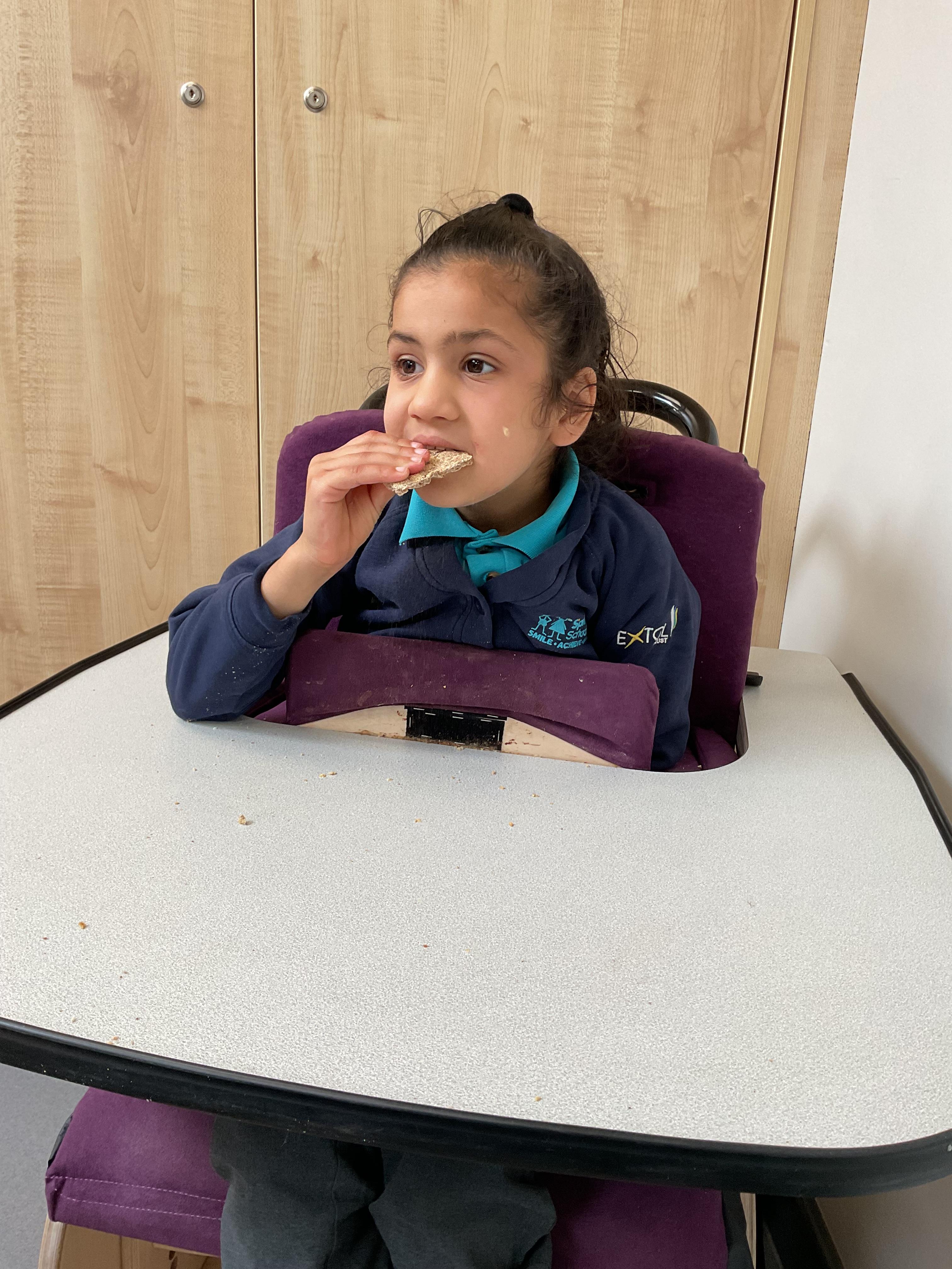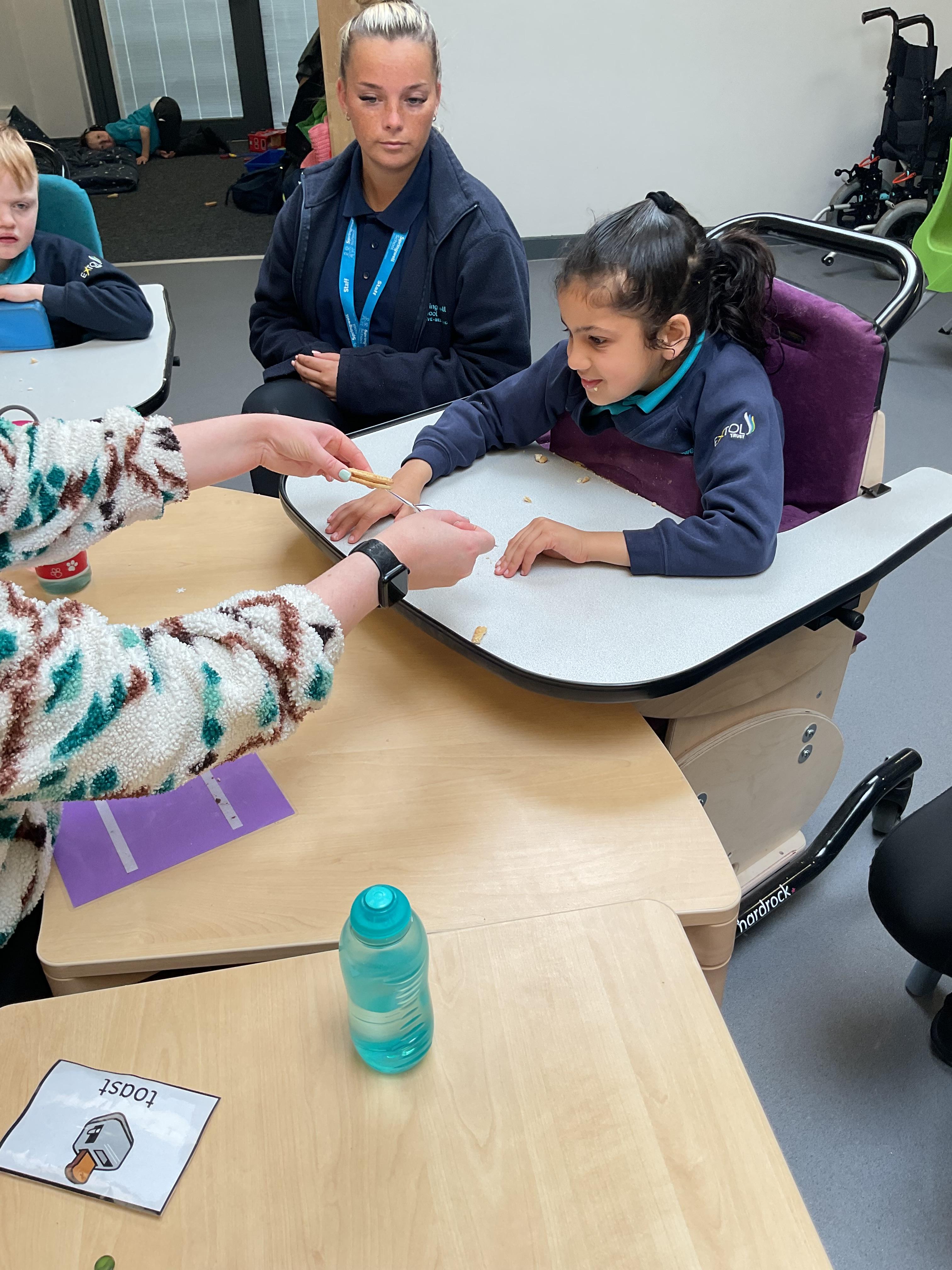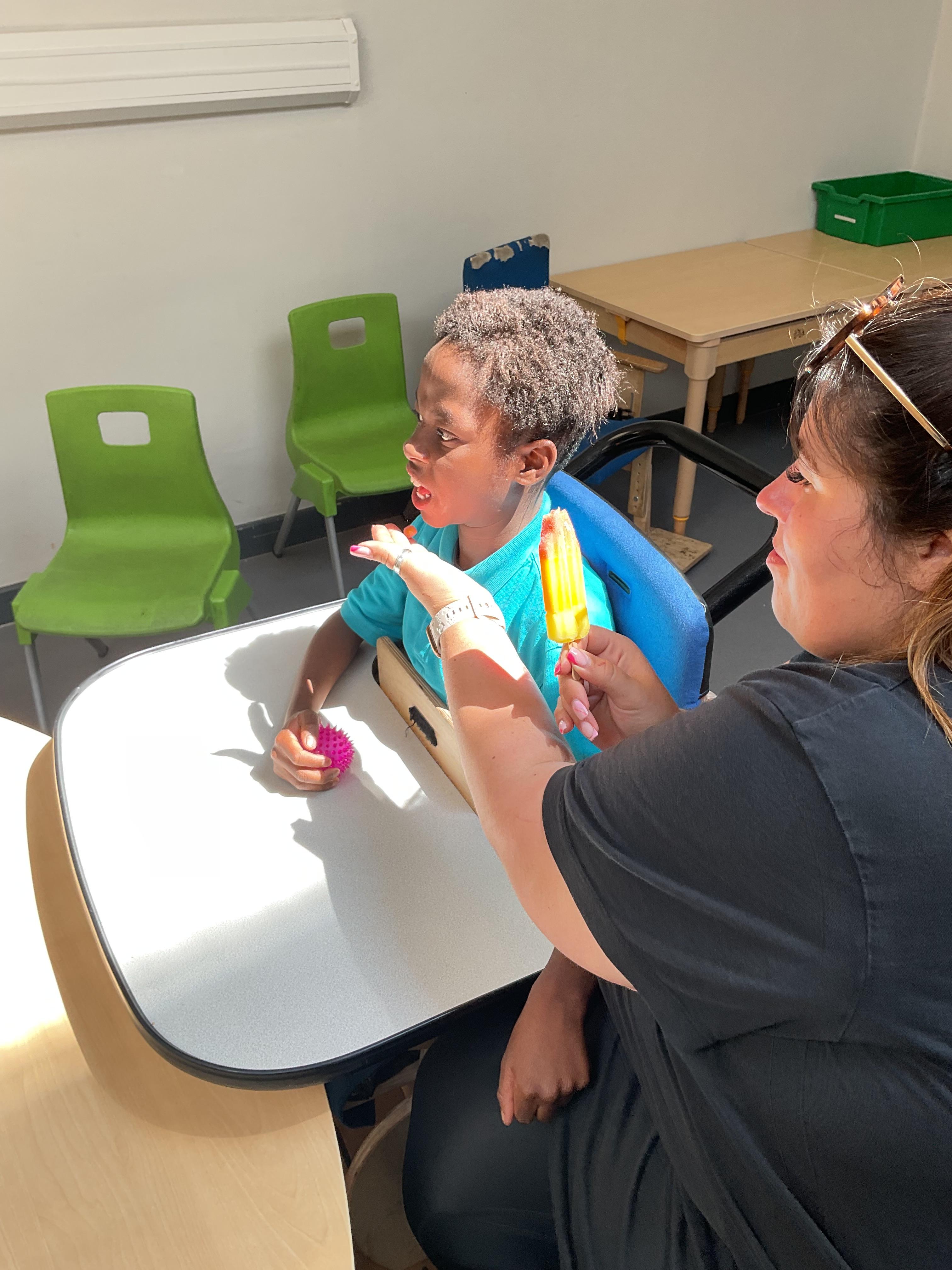 This week in Zebra Class we have made the most of sunshine and got out of the classroom a lot. We have enjoyed lots of water play and exploring in the community. We walked to Lidl and bought some ice lollies for us to enjoy for our snacks. Working on our fine motor skills, we practised cutting, making marks with our fingers and pens. Our colour of the week this week was green, we enjoyed using our senses to explore green foods. Some of us preferred tactile exploring over tasting! All of the children in Zebras really enjoy Attention Time, we are trying really hard to develop and prolong our interest in objects and tracking skills. One of our favourite things to track is bubbles!