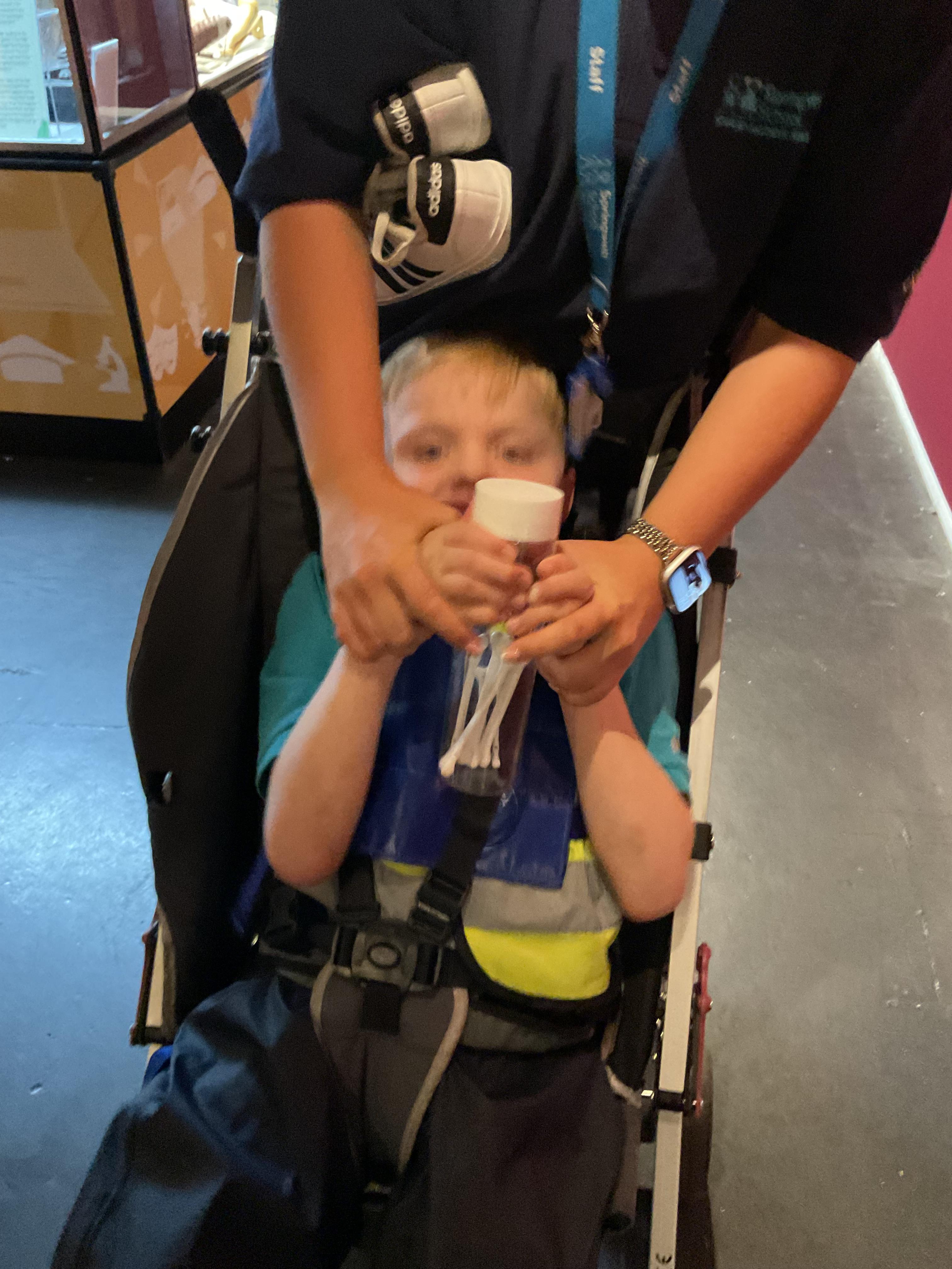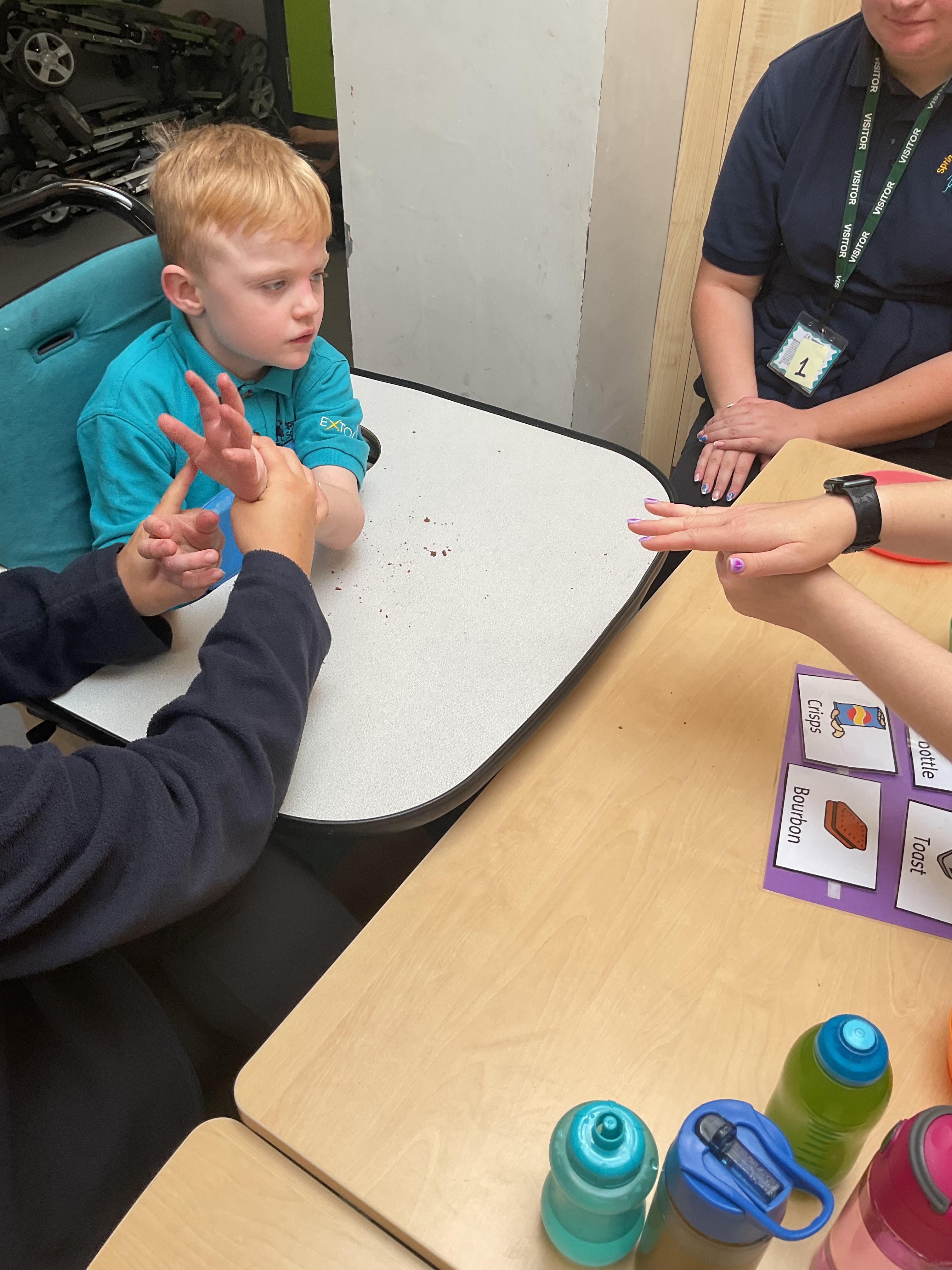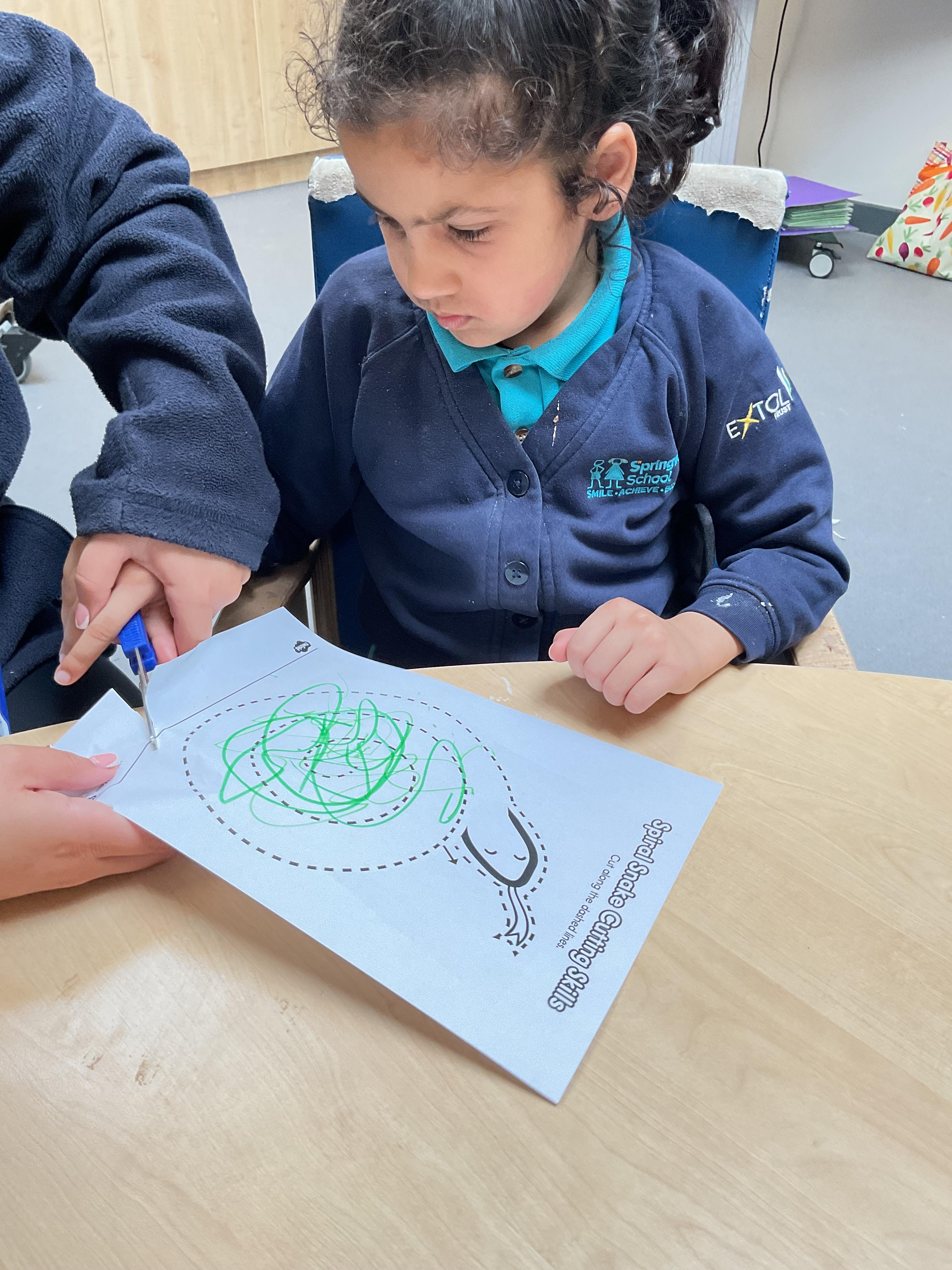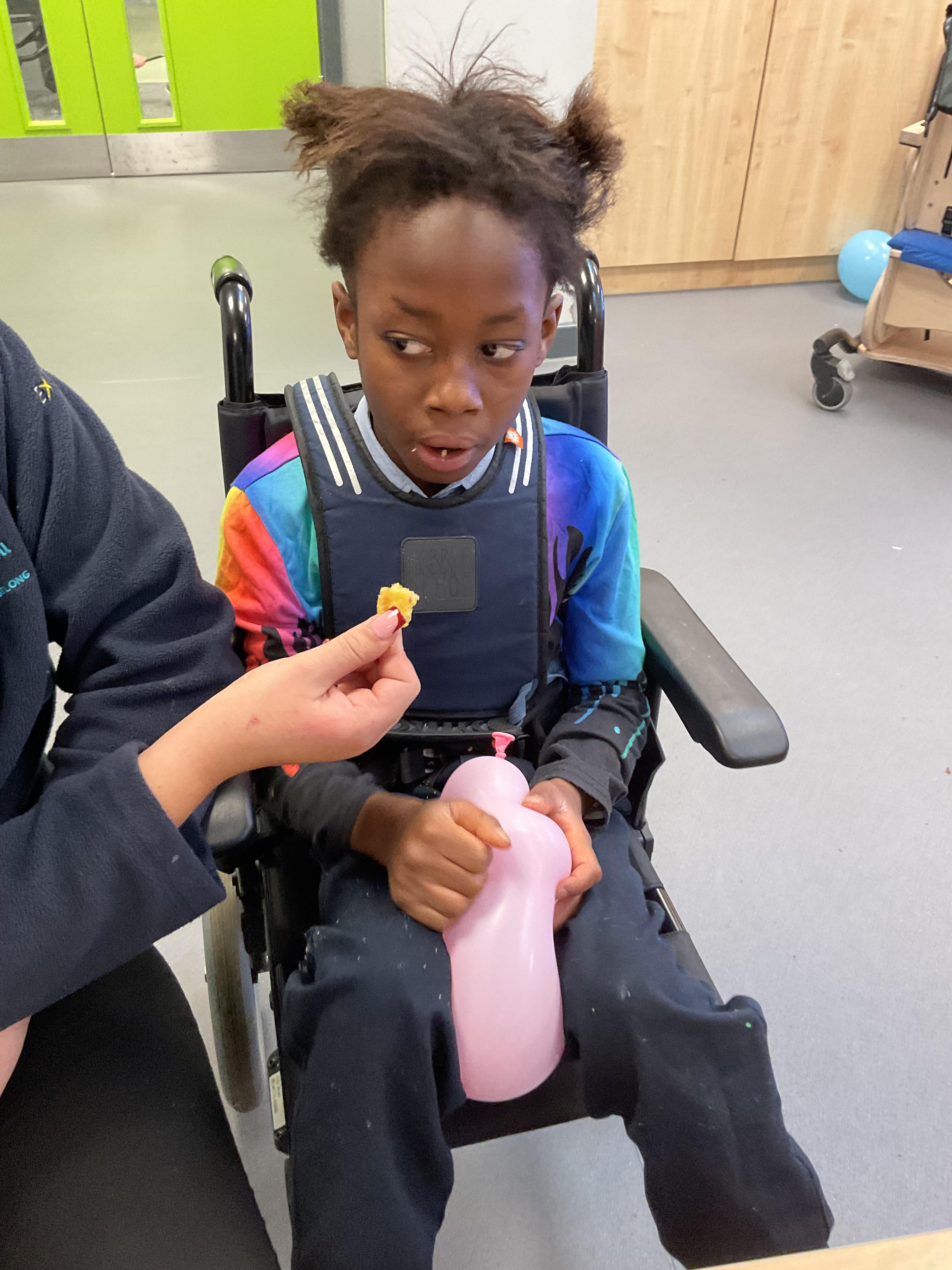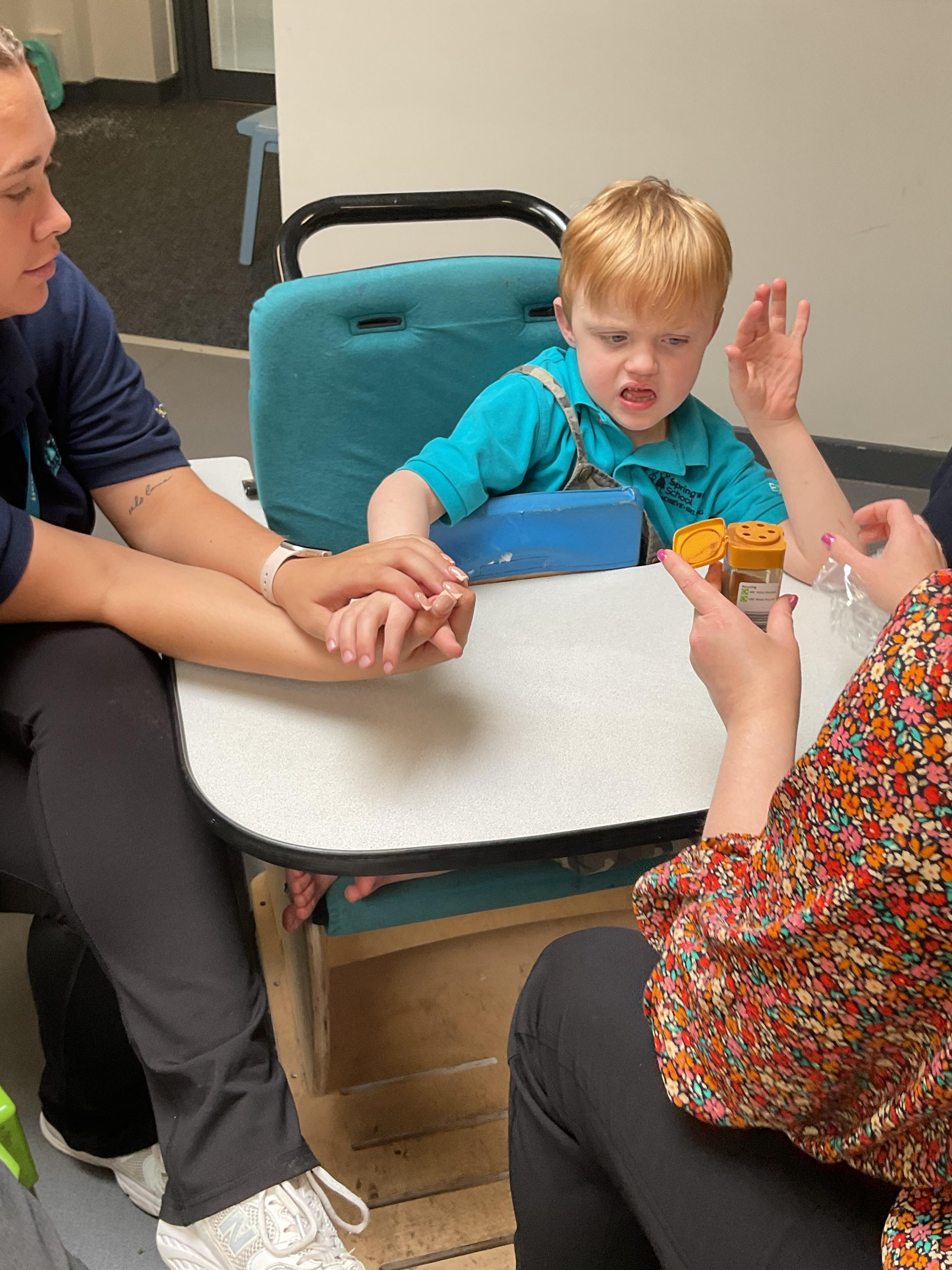 This week in Zebra Class we have made the most of sunshine and got out of the classroom a lot. We have enjoyed lots of water play and exploring in the community. We walked to Lidl and bought some ice lollies for us to enjoy for our snacks. Working on our fine motor skills, we practised cutting, making marks with our fingers and pens. Our colour of the week this week was green, we enjoyed using our senses to explore green foods. Some of us preferred tactile exploring over tasting! All of the children in Zebras really enjoy Attention Time, we are trying really hard to develop and prolong our interest in objects and tracking skills. One of our favourite things to track is bubbles!
