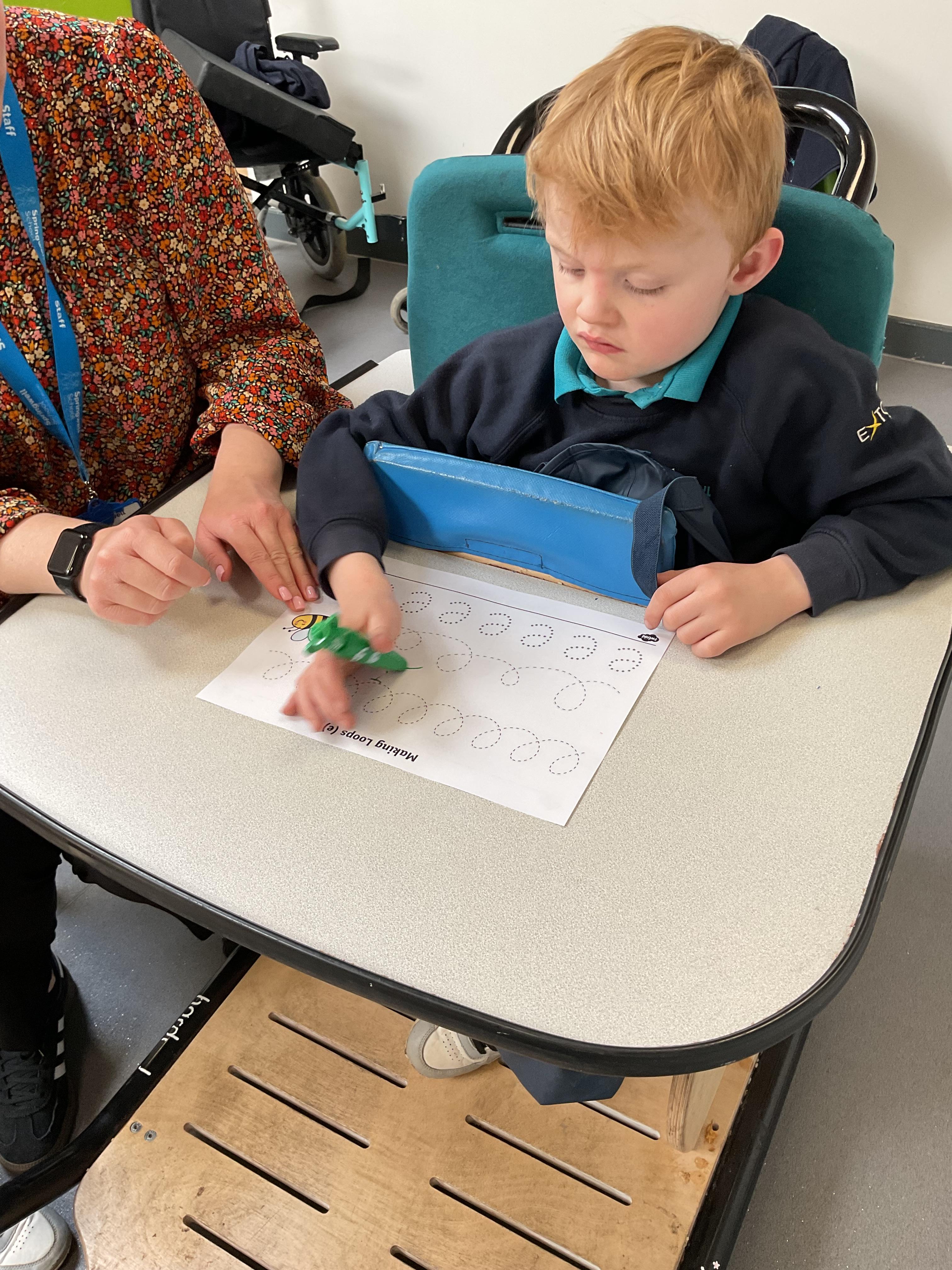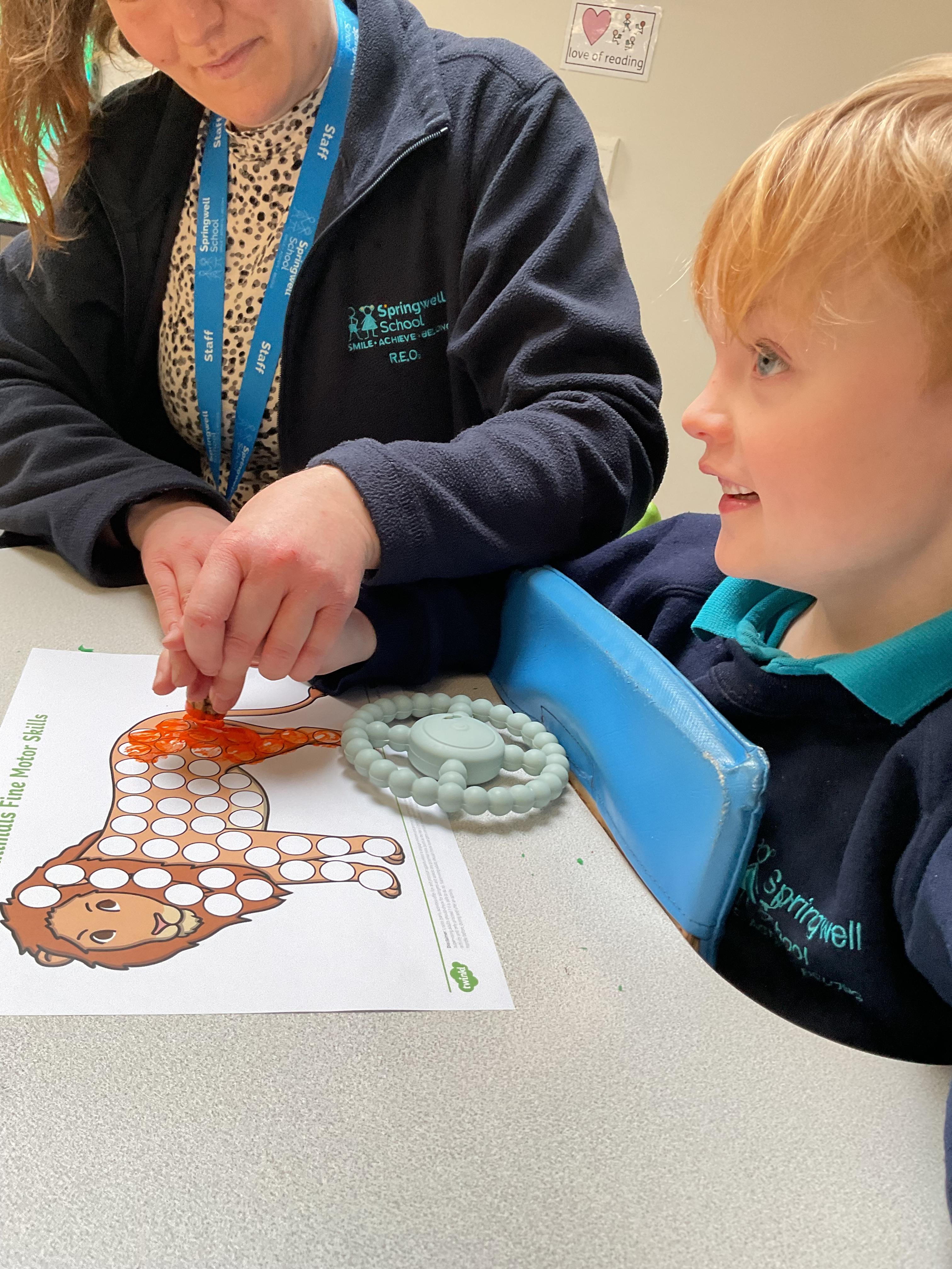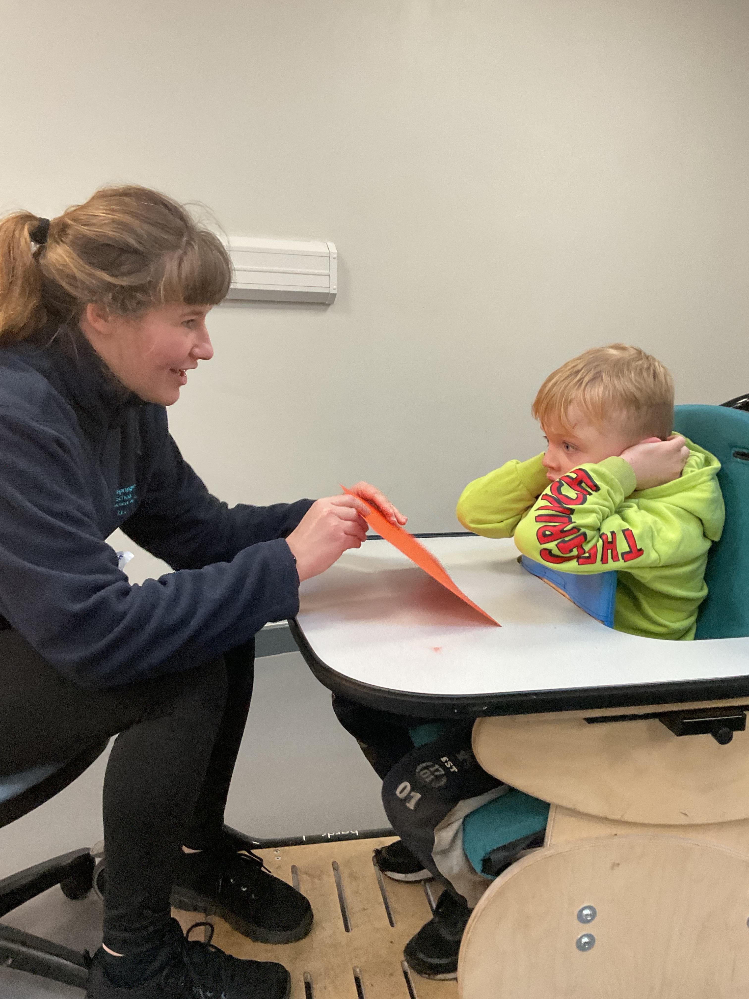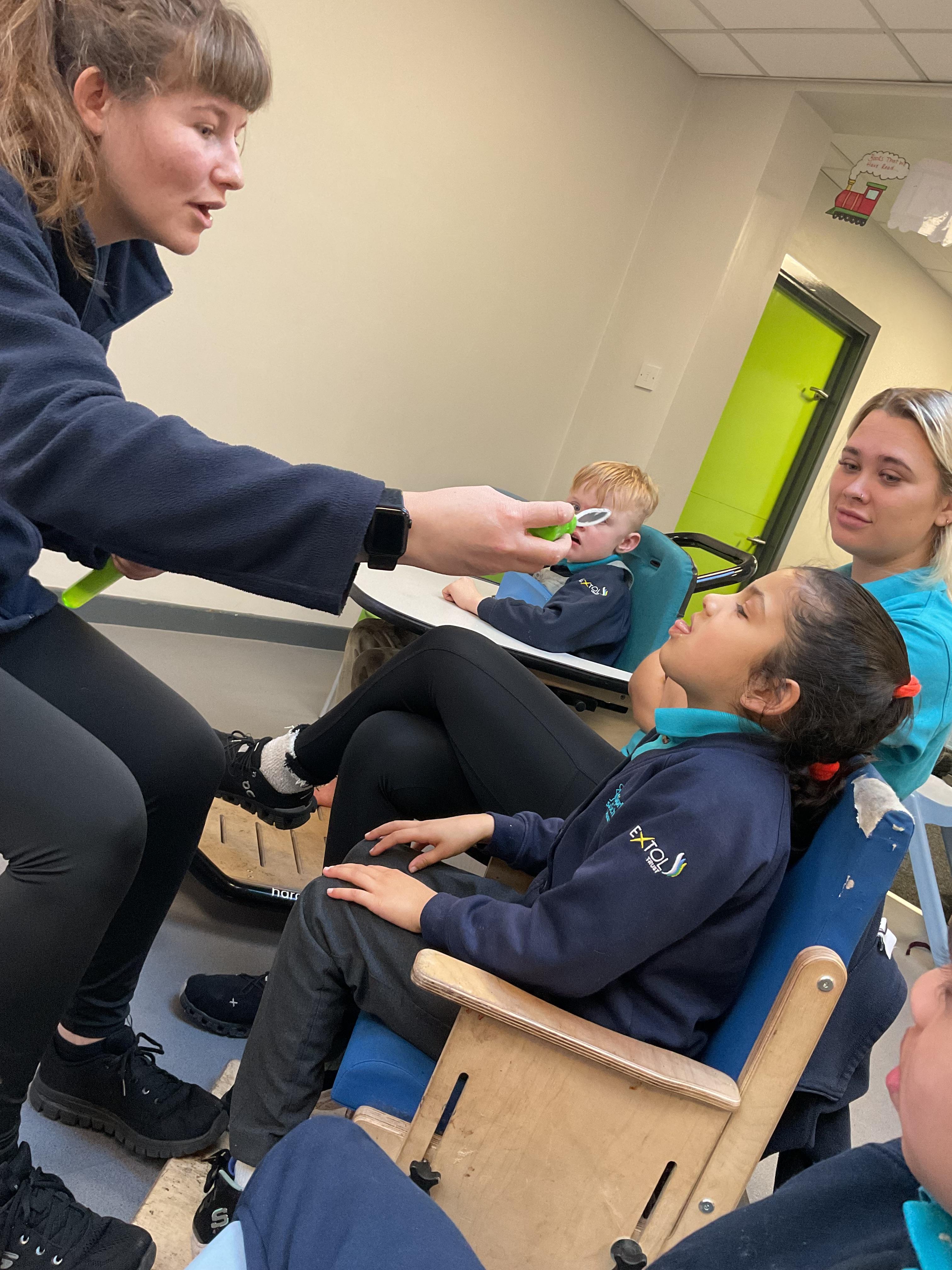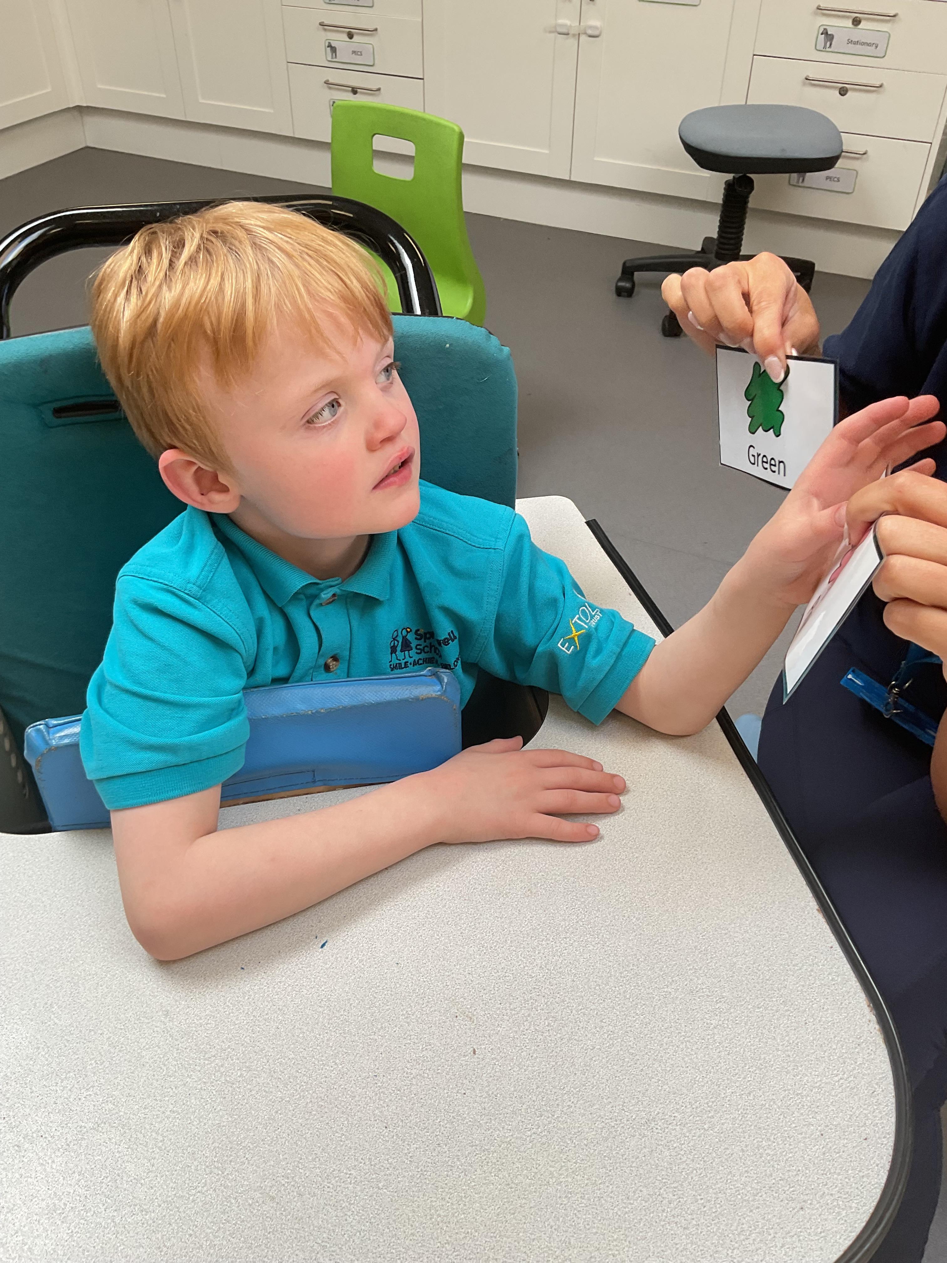 This week in Zebra Class we have made the most of sunshine and got out of the classroom a lot. We have enjoyed lots of water play and exploring in the community. We walked to Lidl and bought some ice lollies for us to enjoy for our snacks. Working on our fine motor skills, we practised cutting, making marks with our fingers and pens. Our colour of the week this week was green, we enjoyed using our senses to explore green foods. Some of us preferred tactile exploring over tasting! All of the children in Zebras really enjoy Attention Time, we are trying really hard to develop and prolong our interest in objects and tracking skills. One of our favourite things to track is bubbles!