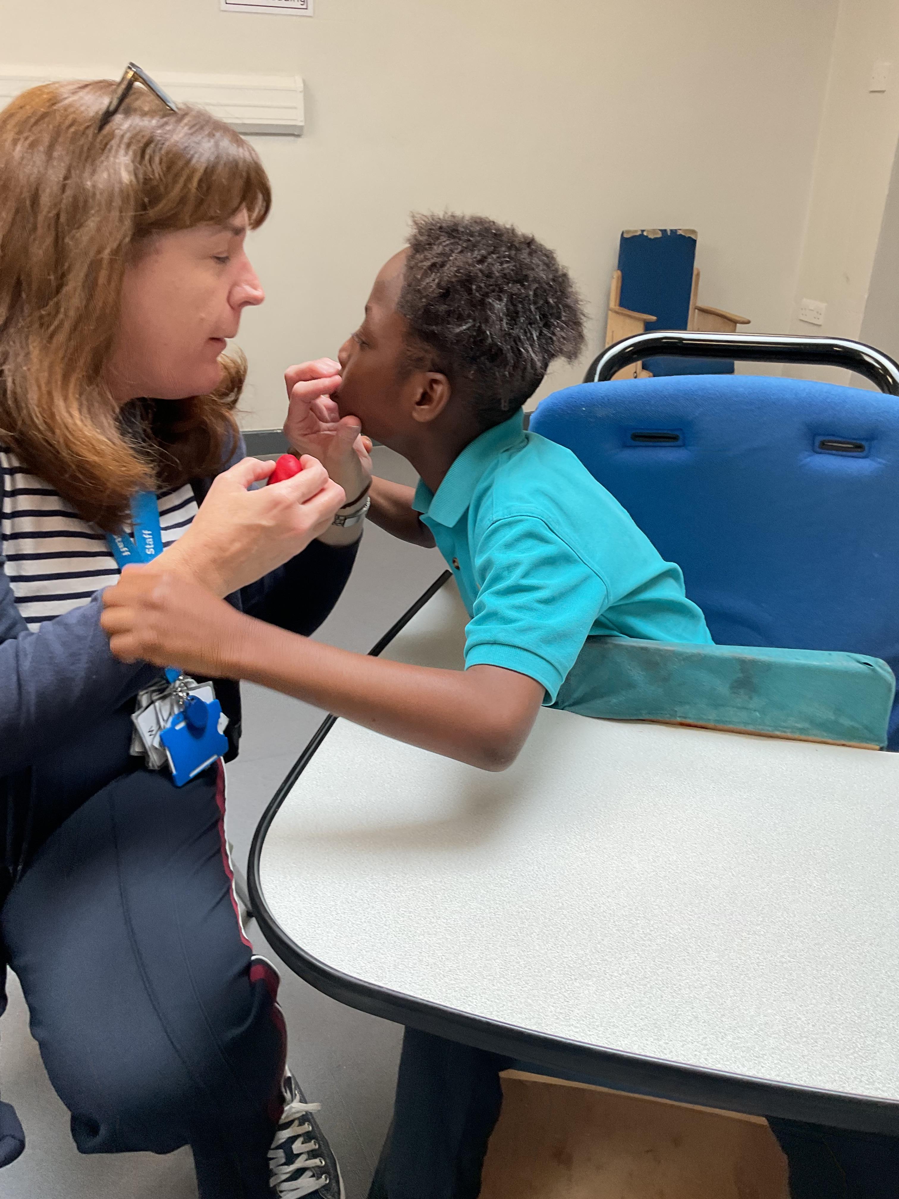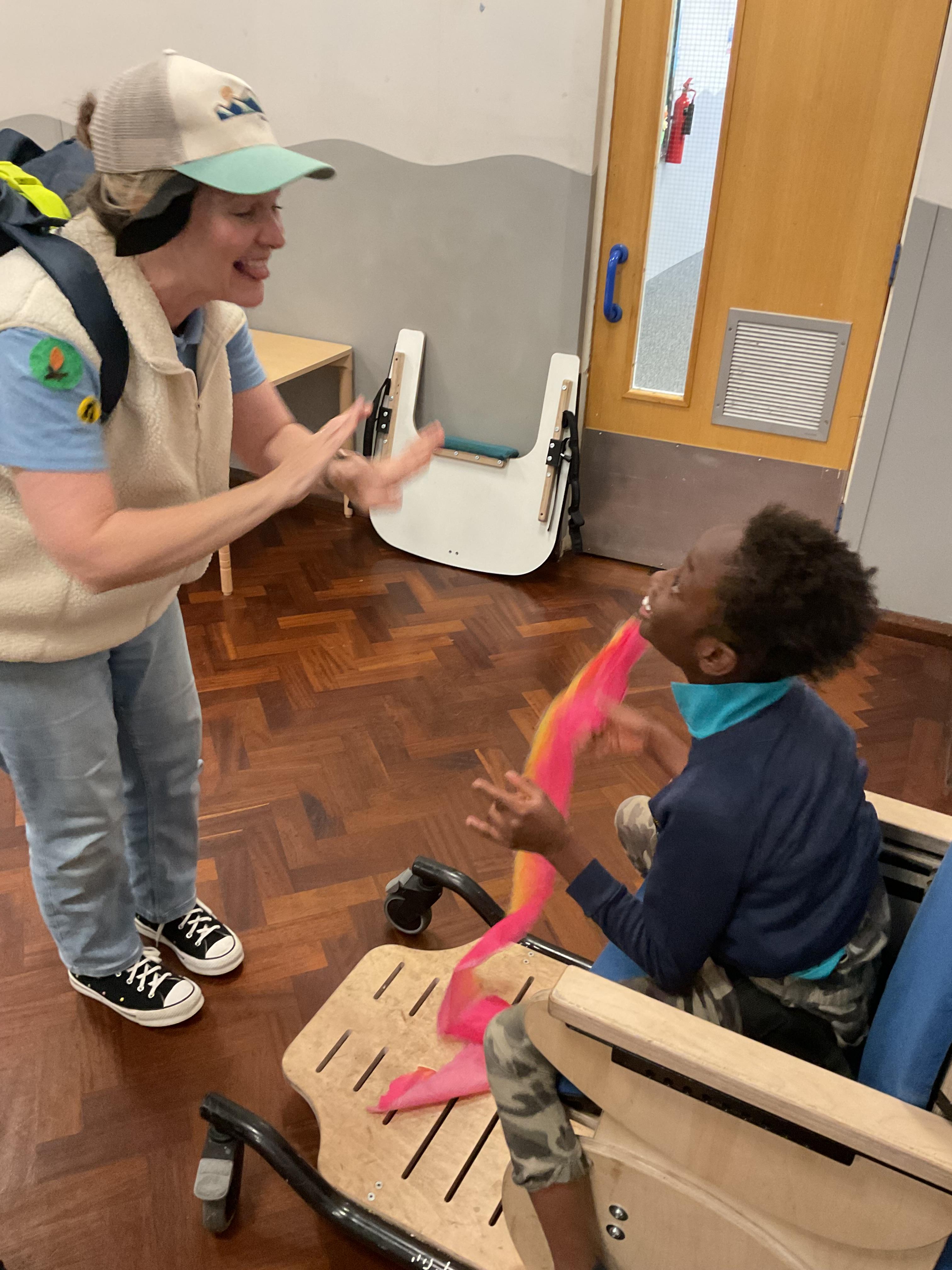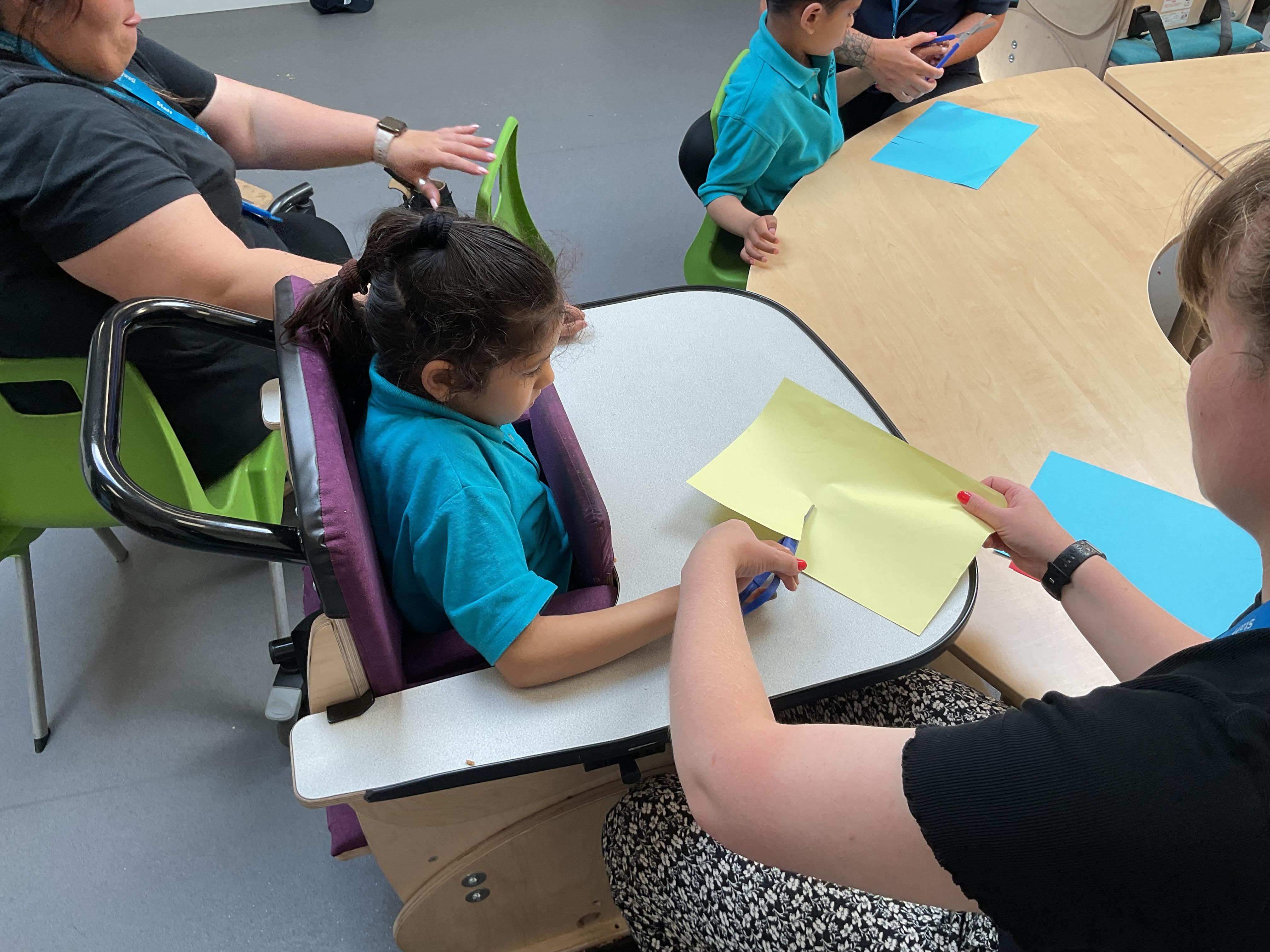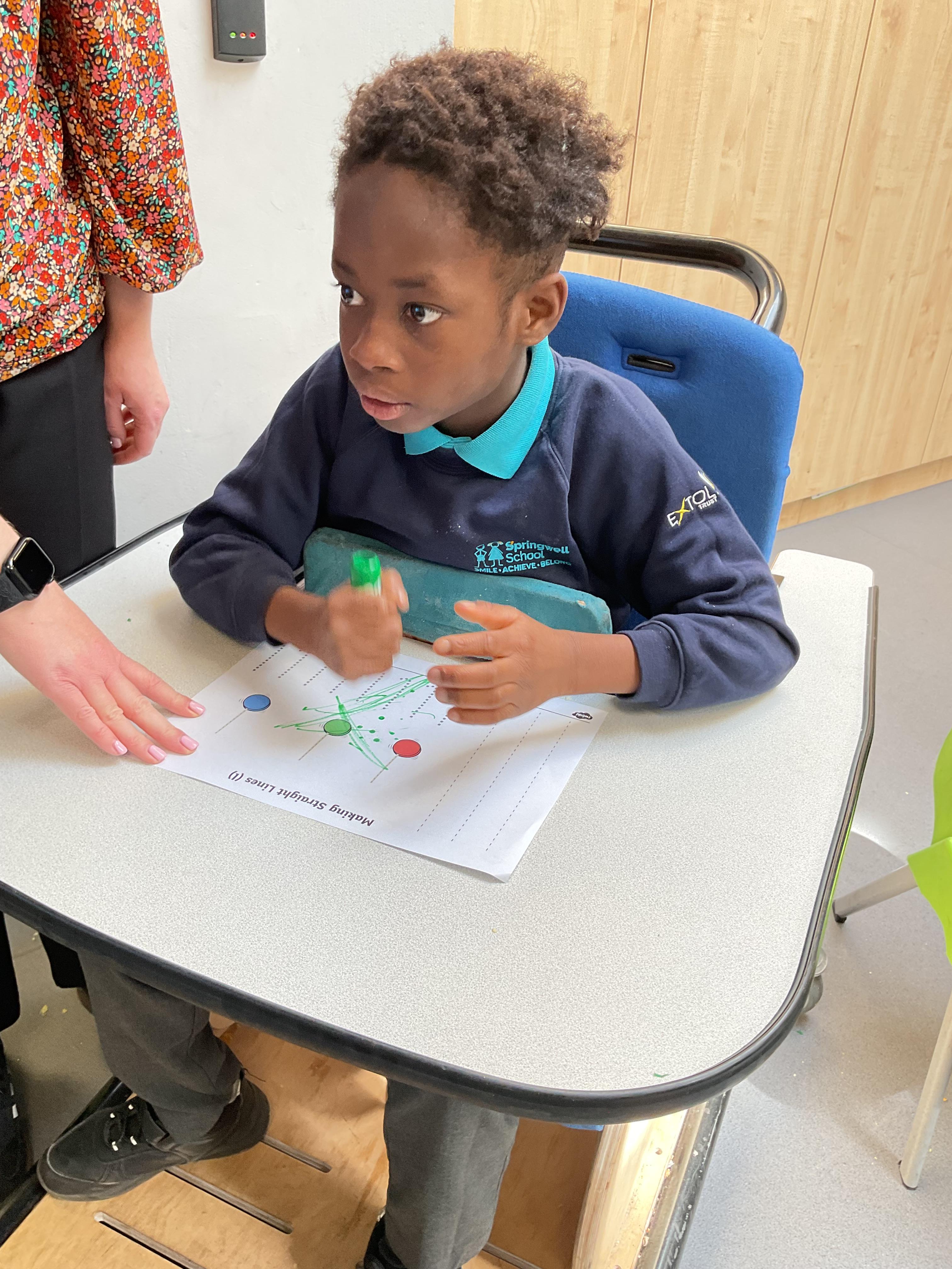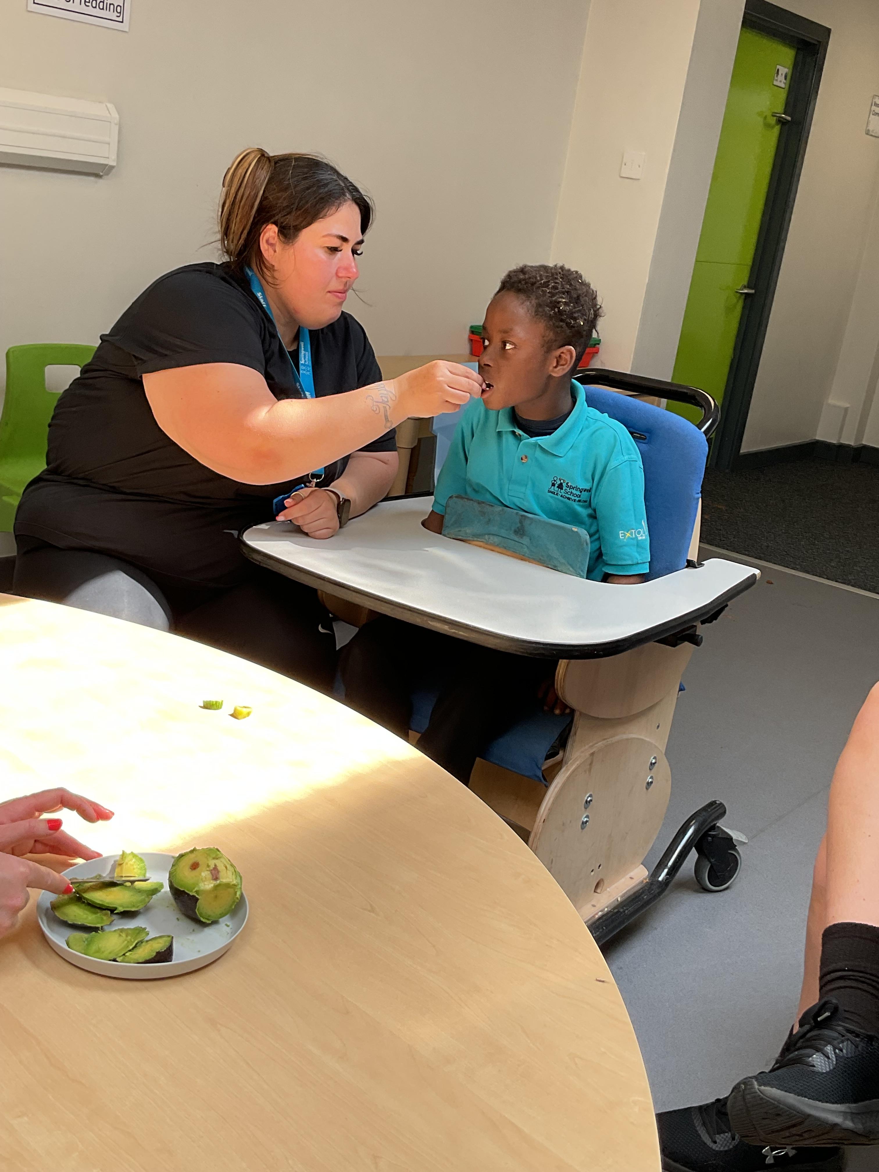 This week in Zebra Class we have made the most of sunshine and got out of the classroom a lot. We have enjoyed lots of water play and exploring in the community. We walked to Lidl and bought some ice lollies for us to enjoy for our snacks. Working on our fine motor skills, we practised cutting, making marks with our fingers and pens. Our colour of the week this week was green, we enjoyed using our senses to explore green foods. Some of us preferred tactile exploring over tasting! All of the children in Zebras really enjoy Attention Time, we are trying really hard to develop and prolong our interest in objects and tracking skills. One of our favourite things to track is bubbles!