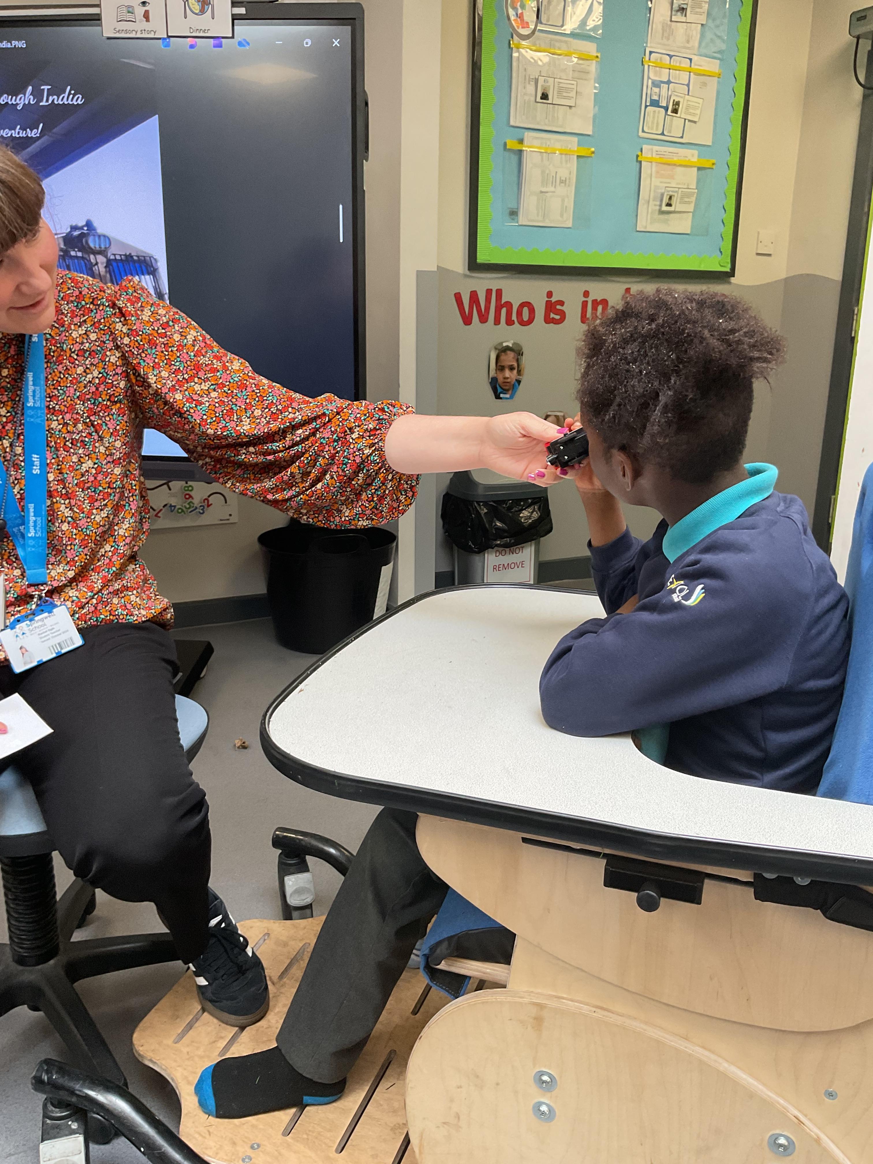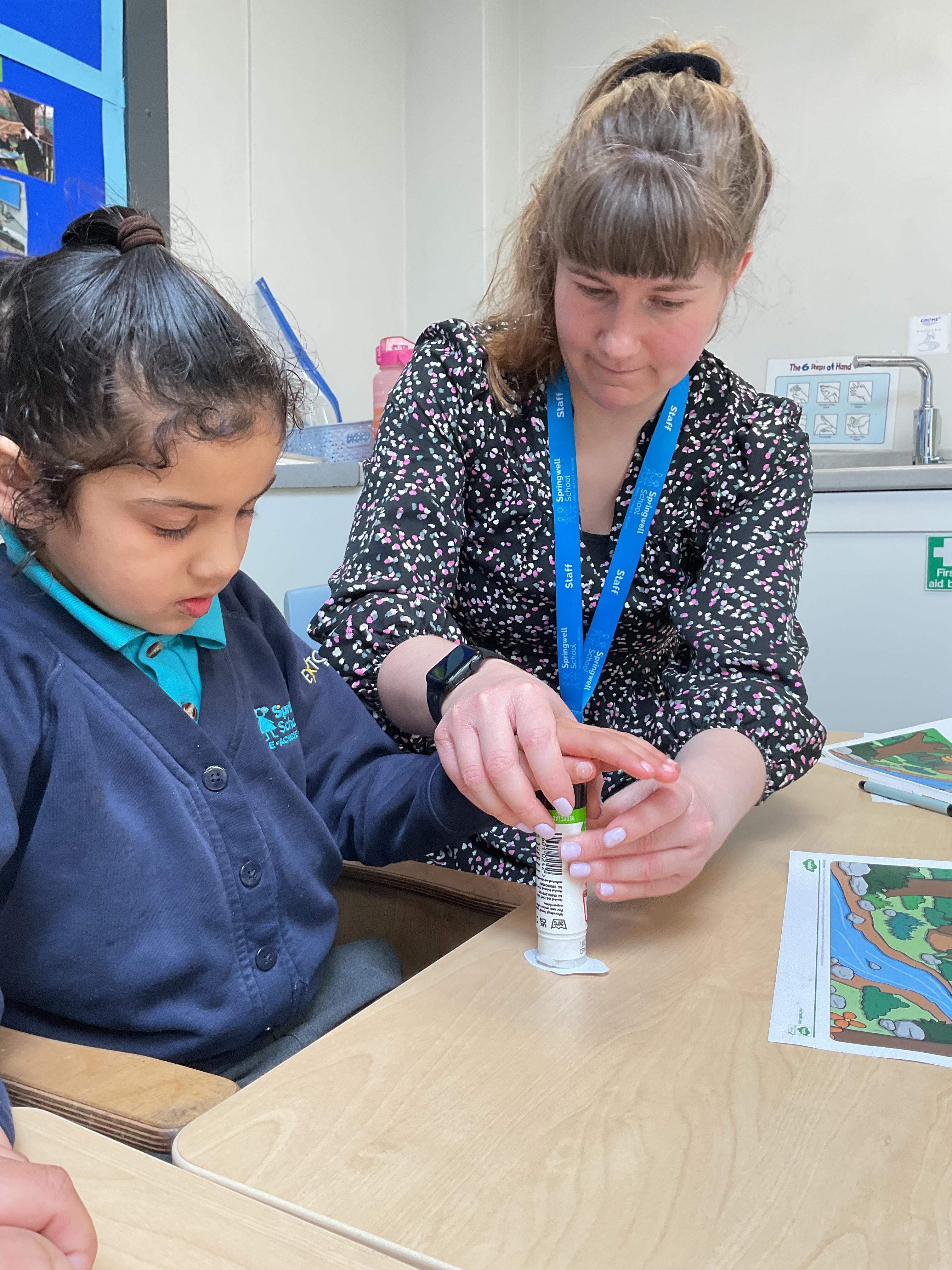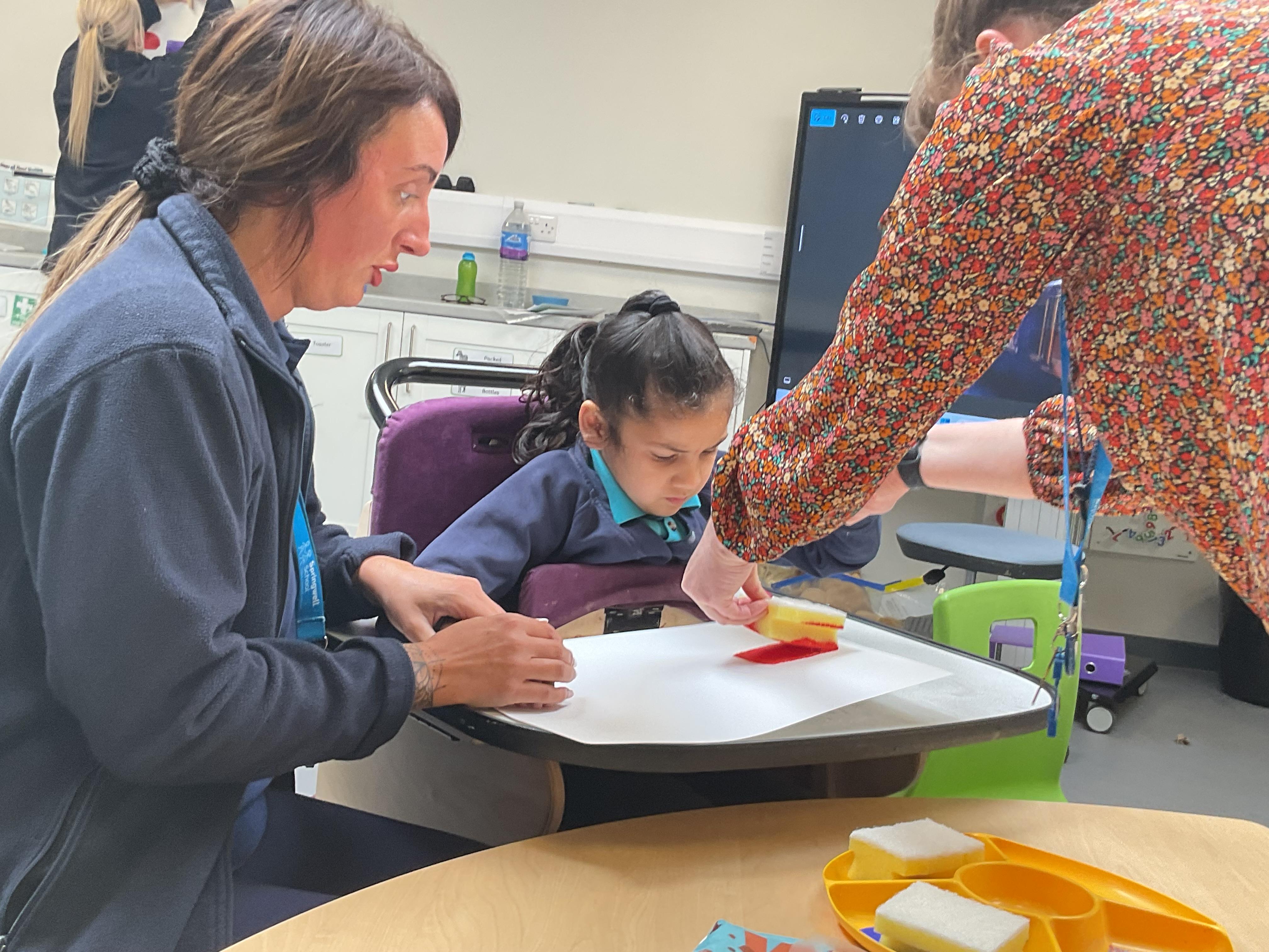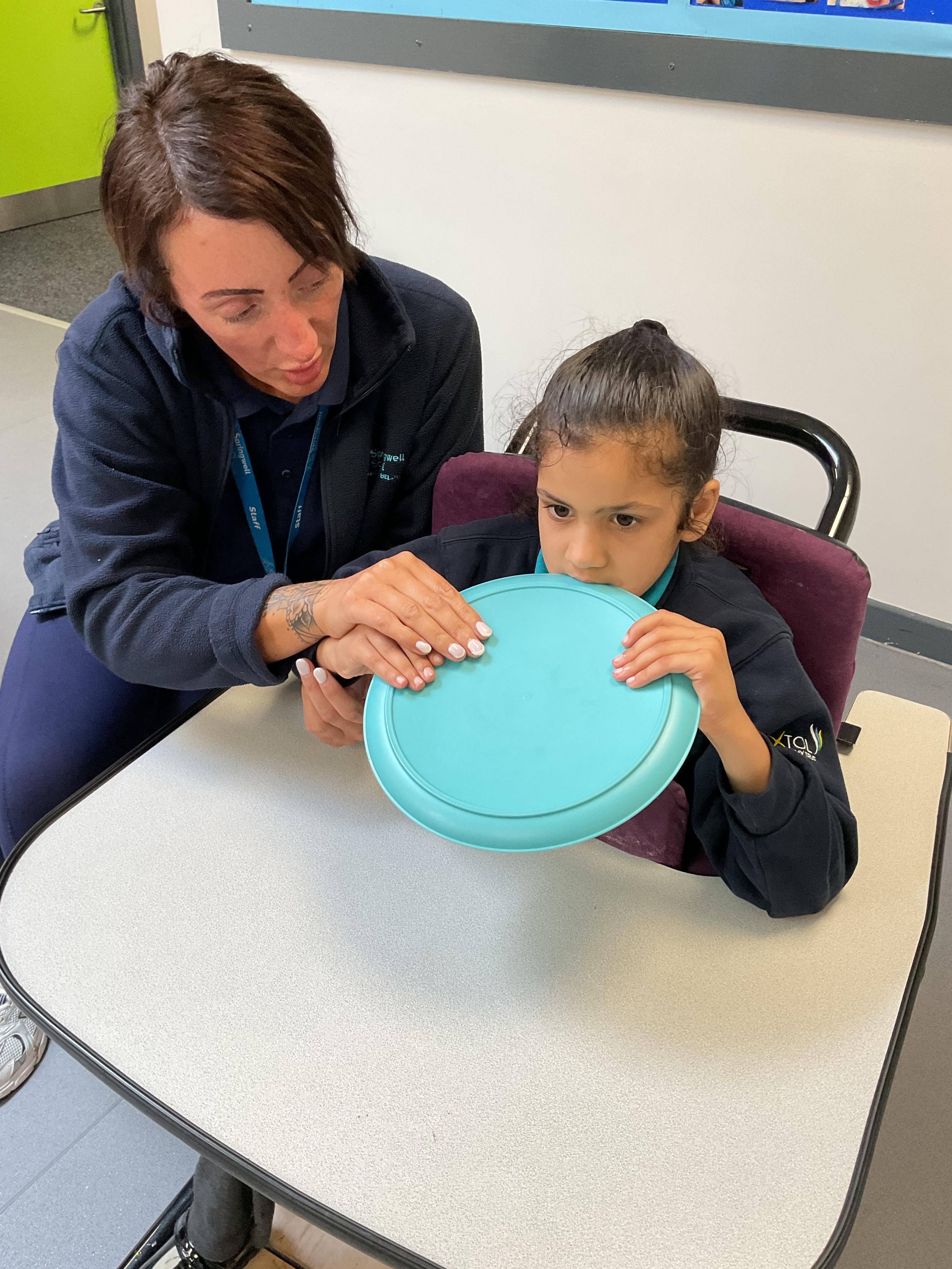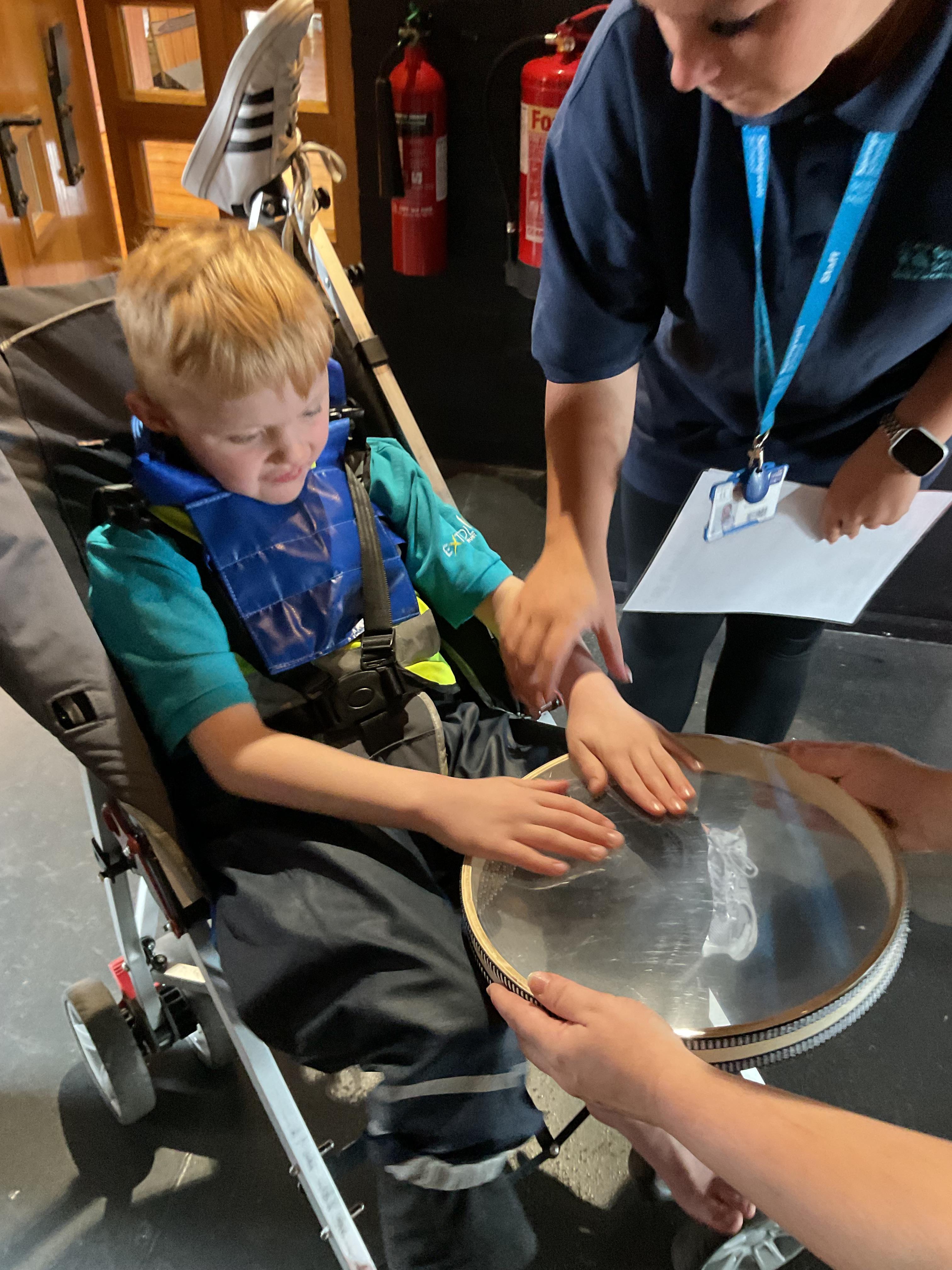 This week in Zebra Class we have made the most of sunshine and got out of the classroom a lot. We have enjoyed lots of water play and exploring in the community. We walked to Lidl and bought some ice lollies for us to enjoy for our snacks. Working on our fine motor skills, we practised cutting, making marks with our fingers and pens. Our colour of the week this week was green, we enjoyed using our senses to explore green foods. Some of us preferred tactile exploring over tasting! All of the children in Zebras really enjoy Attention Time, we are trying really hard to develop and prolong our interest in objects and tracking skills. One of our favourite things to track is bubbles!