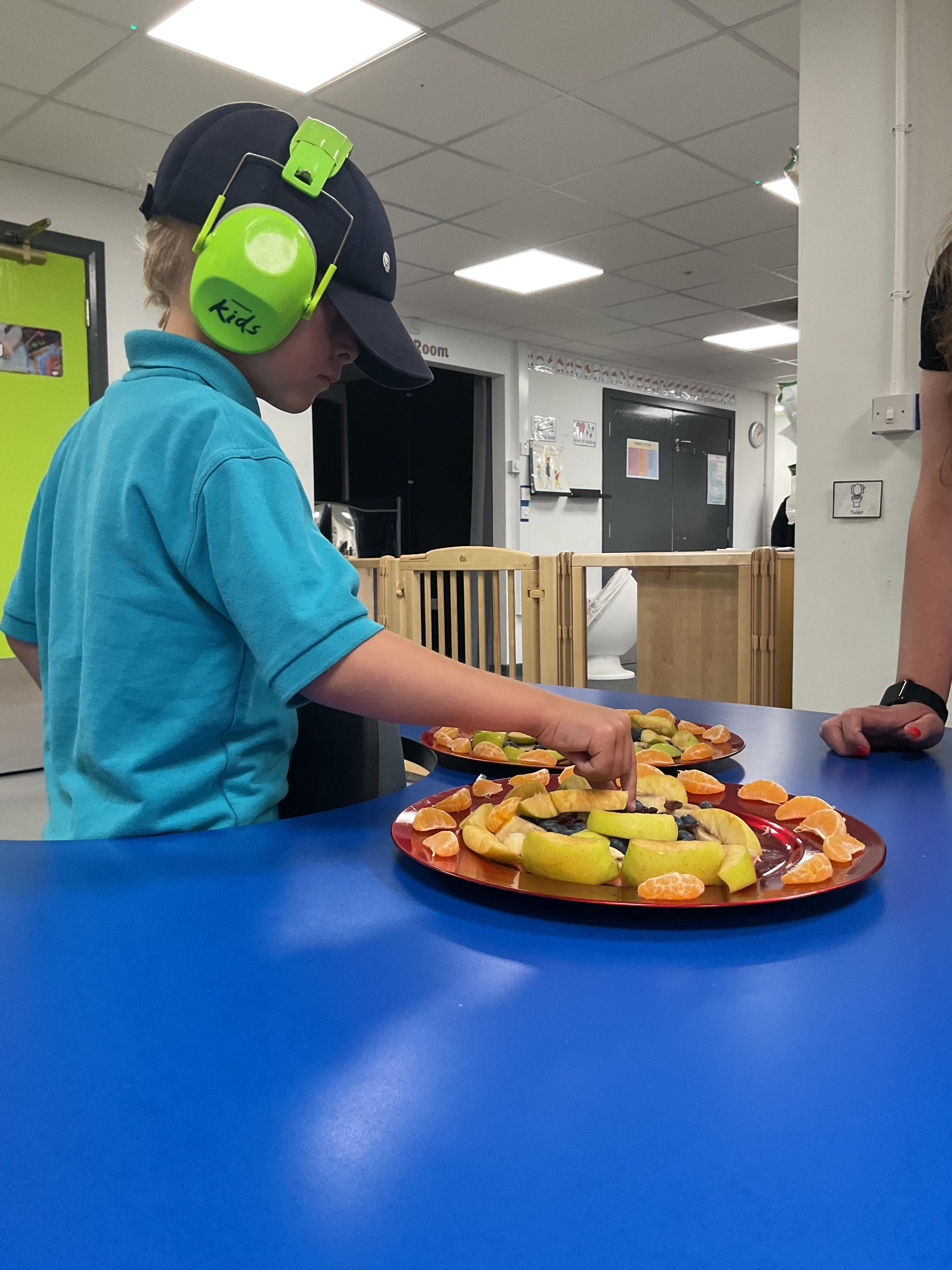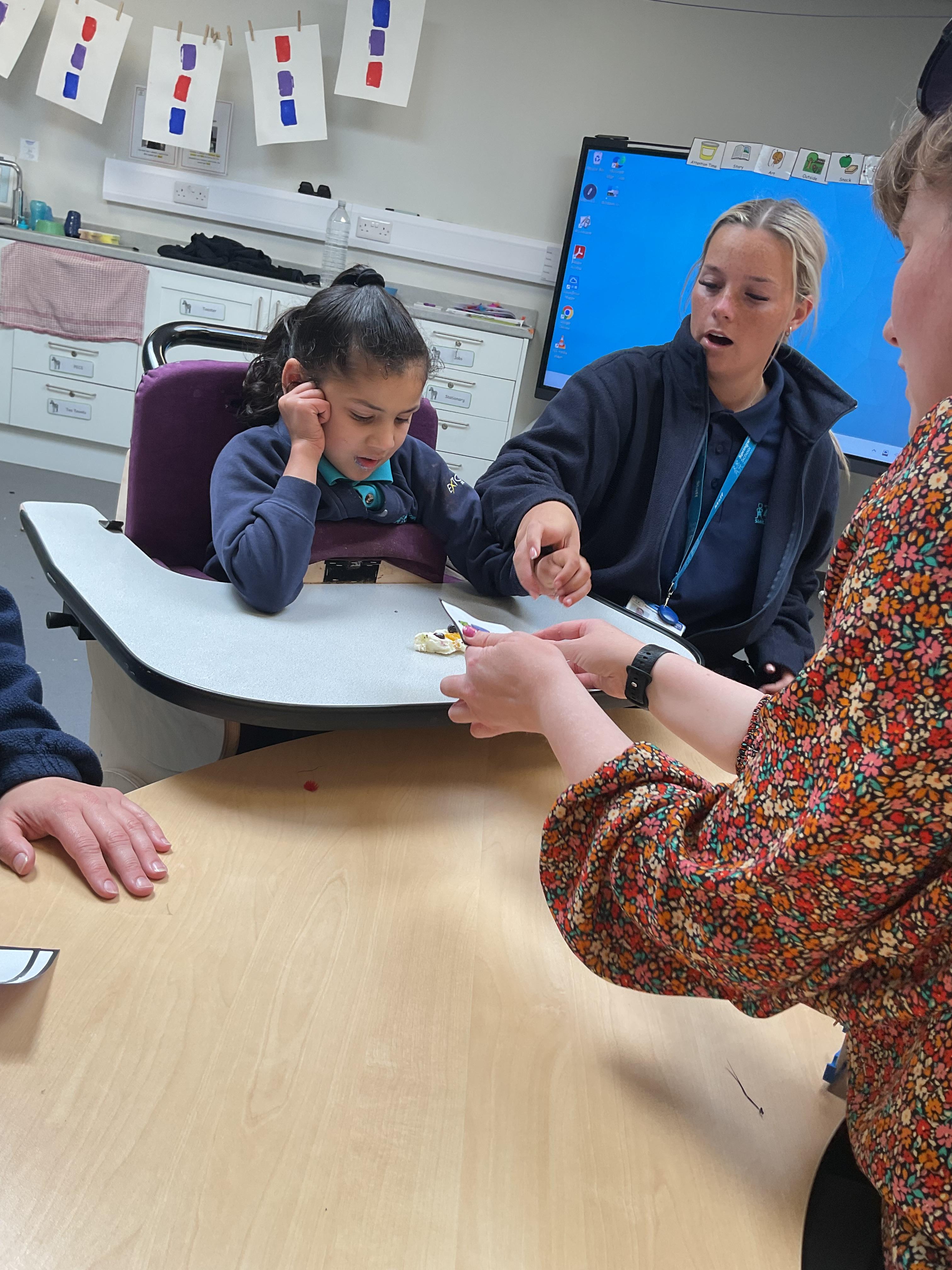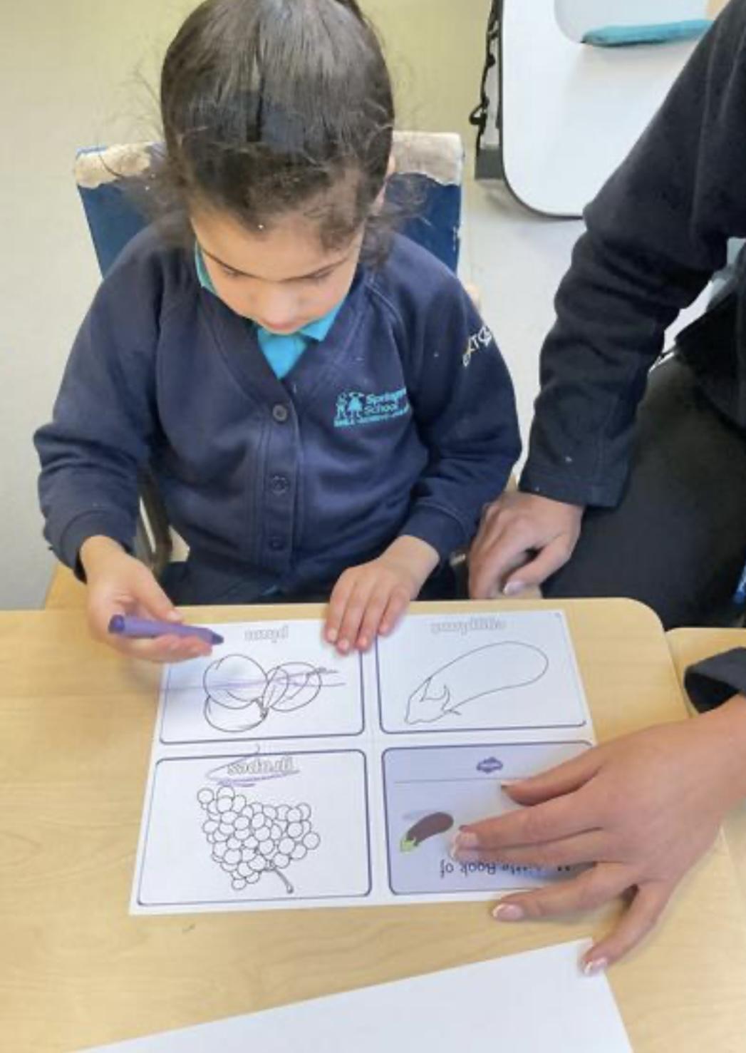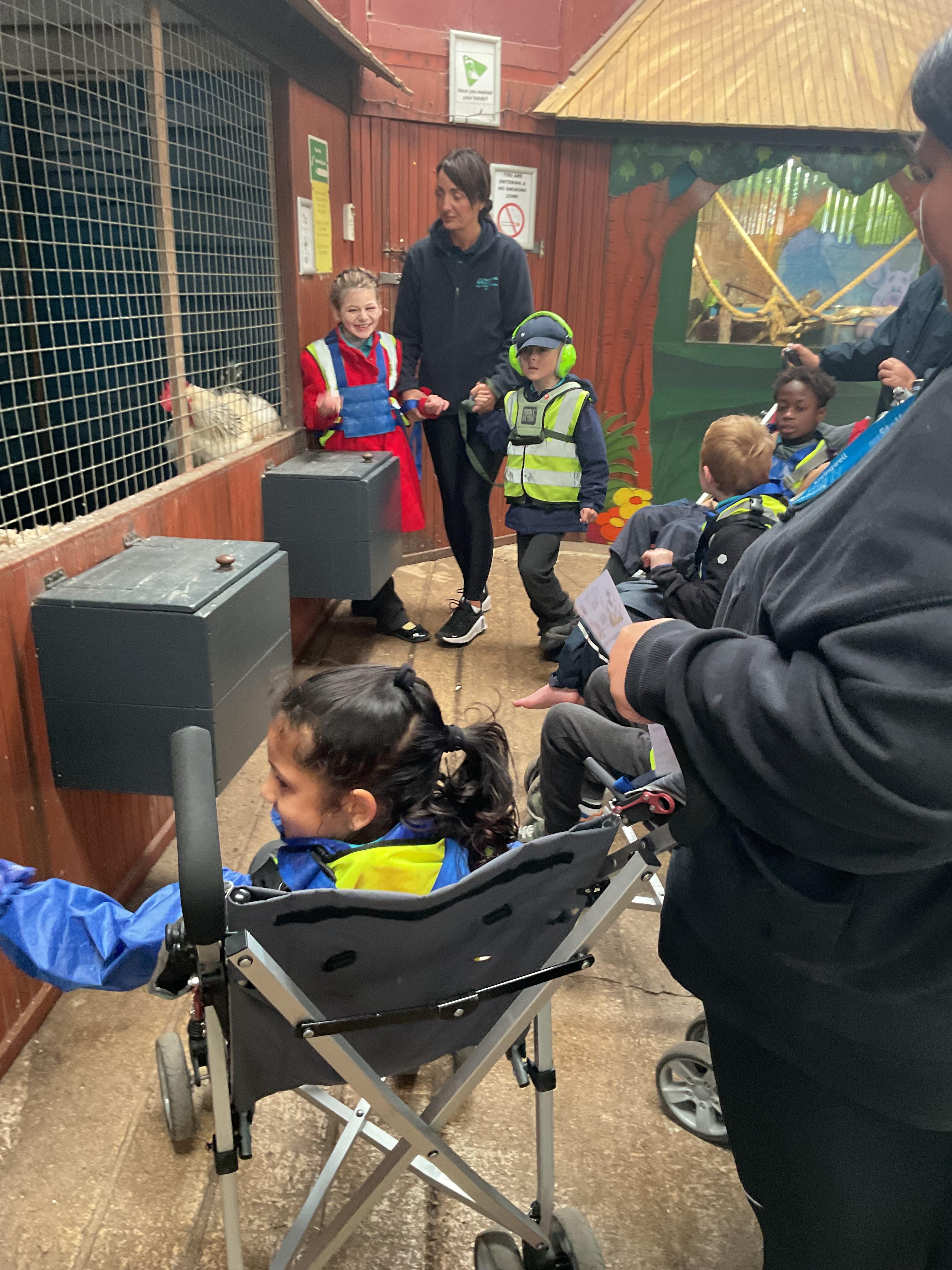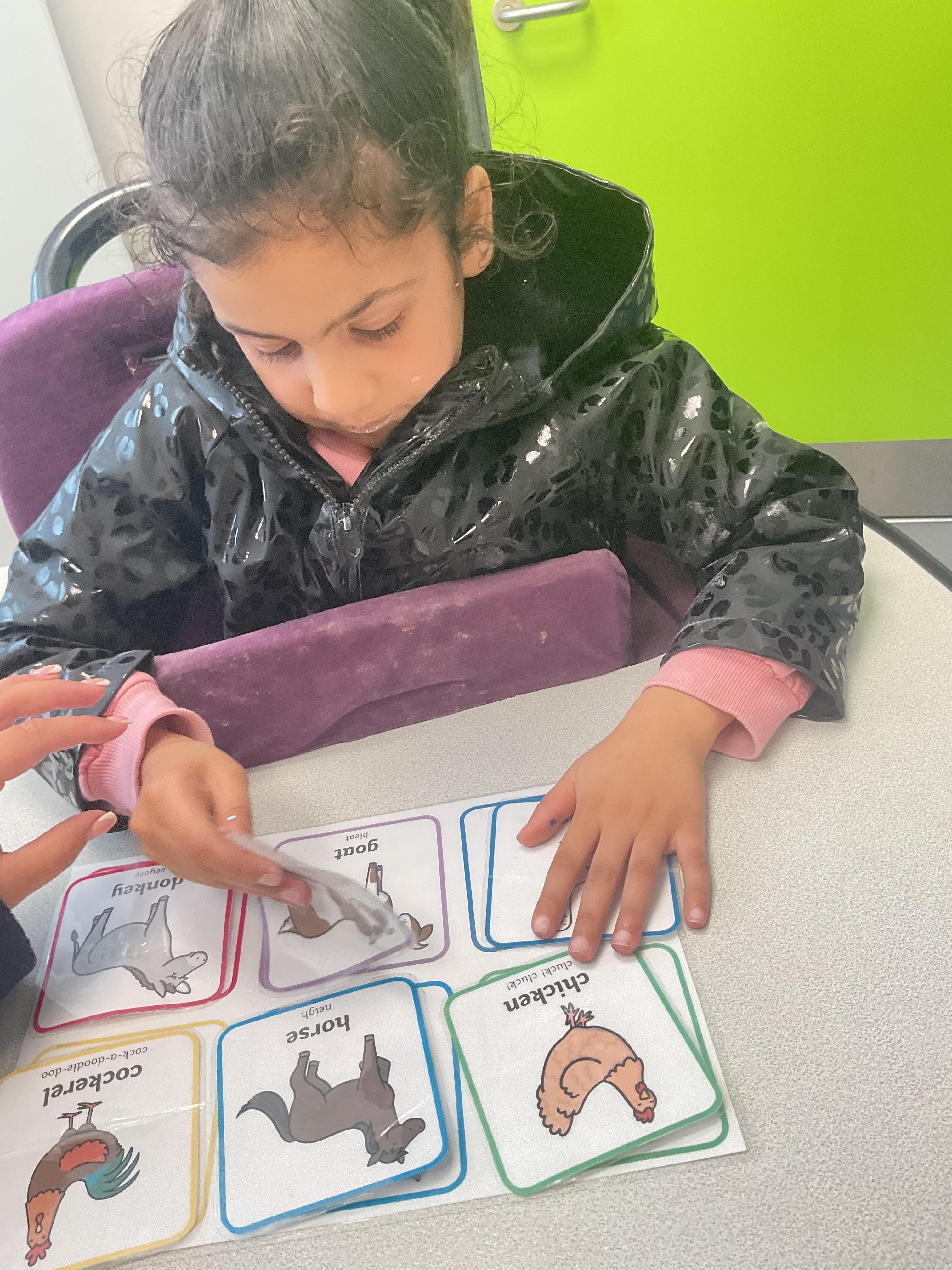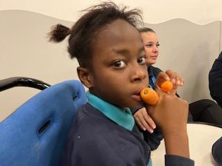 This week was wonderful for the Zebras! We started with art, where children used two different PECs cards to communicate their preferred colour of pen for mark-making. Each child then worked on their fine motor skills by colouring their little uniform character for our new school display. Great job, Zebras! Later, we ventured into the garden for some sensory play, we practised our pouring skills by transferring oats from one cup to another and picking up pasta with tweezers. In maths, we worked on our number recognition by matching the numbers 1-6. In our cooking session, we prepared some delicious and healthy snacks. We began by selecting our favourite fruits and chopping them up. We carefully observed as the yogurt was poured into the tin and then we added the different fruits before freezing the mixture to create fruit ice cream. At snack time, we used PECs symbols to communicate which fruit we wanted to try and it was scrumptious. In literacy, we continued our sensory story “A Train Ride through India”. We engaged with the props, smelt different spices and even listened to the sound of the train. On Thursday, we hopped on the bus to visit Tweddle Farm, where we enjoyed looking at various animals. Our favourite were the chickens! Afterwards, we gathered into the barn to read the story “Chicken Licken”. We finished the week with an exciting but messy attention autism session, where we cracked eggs on the floor and watched a dancing chicken.