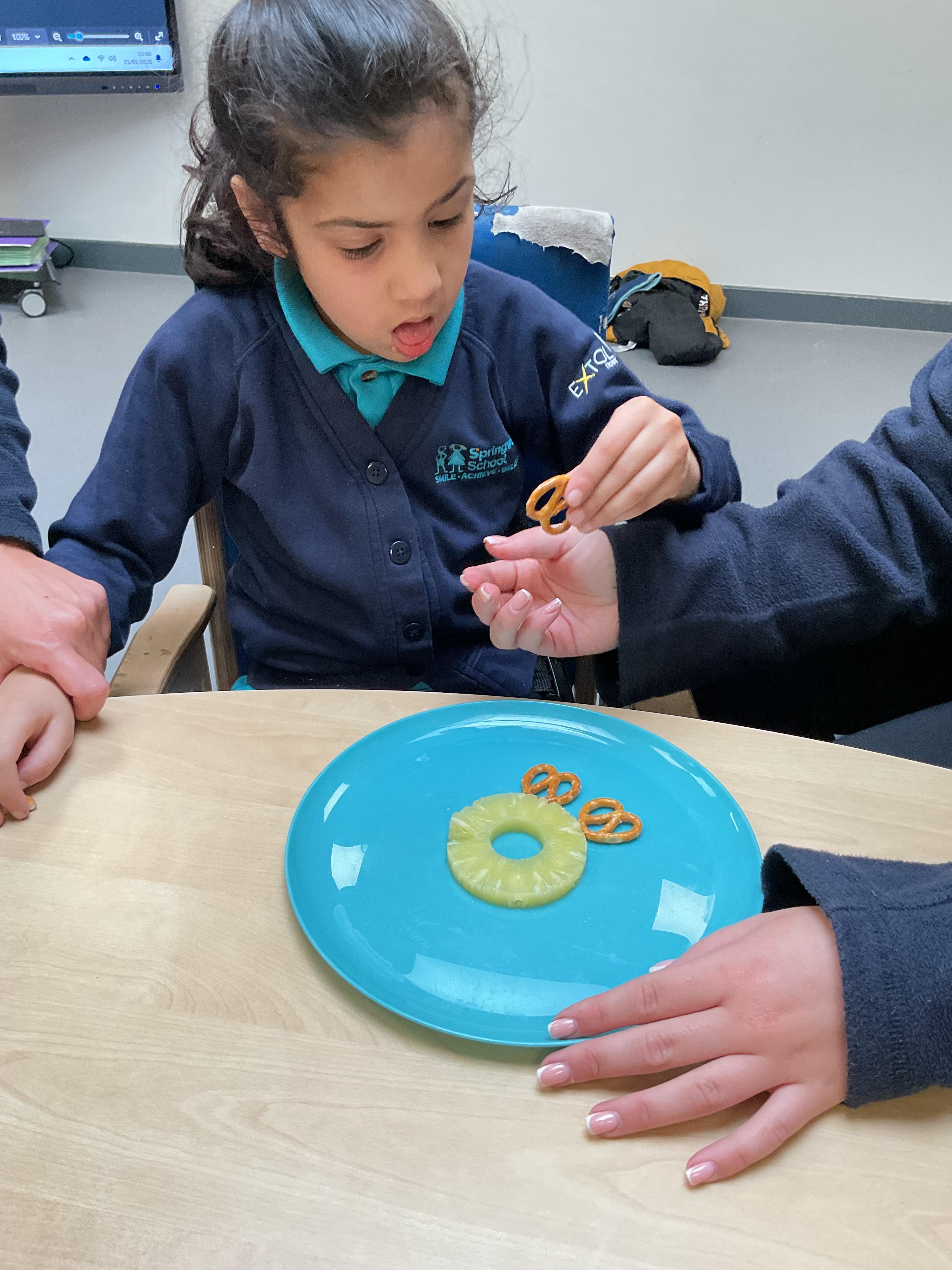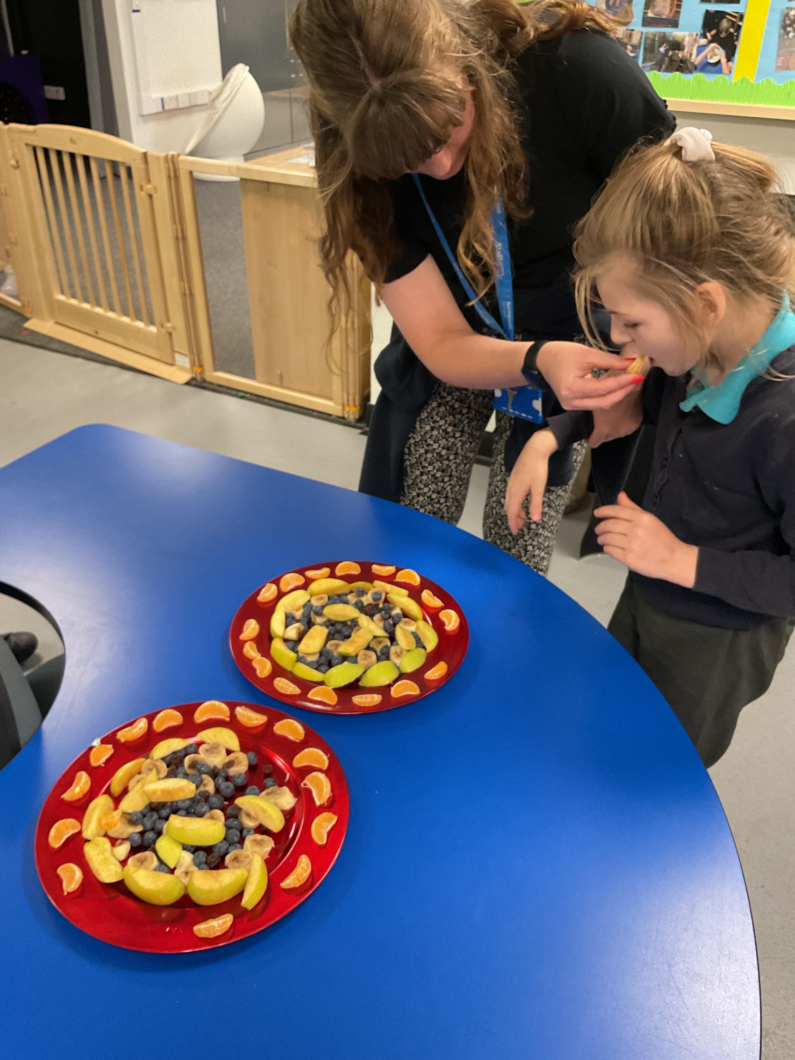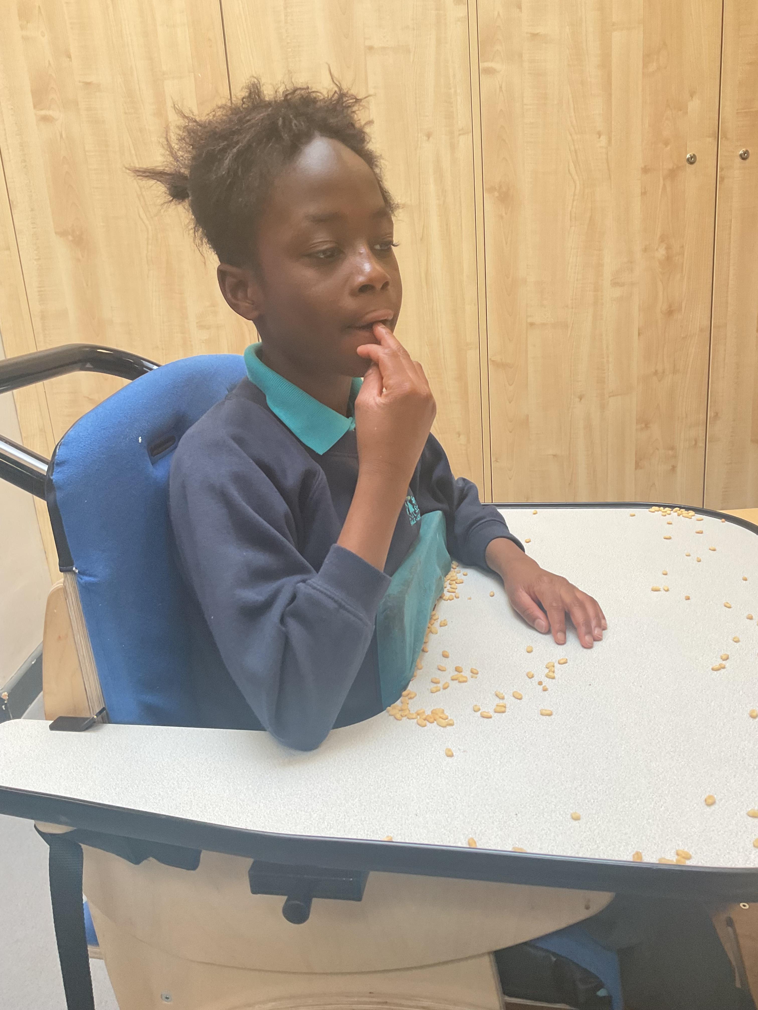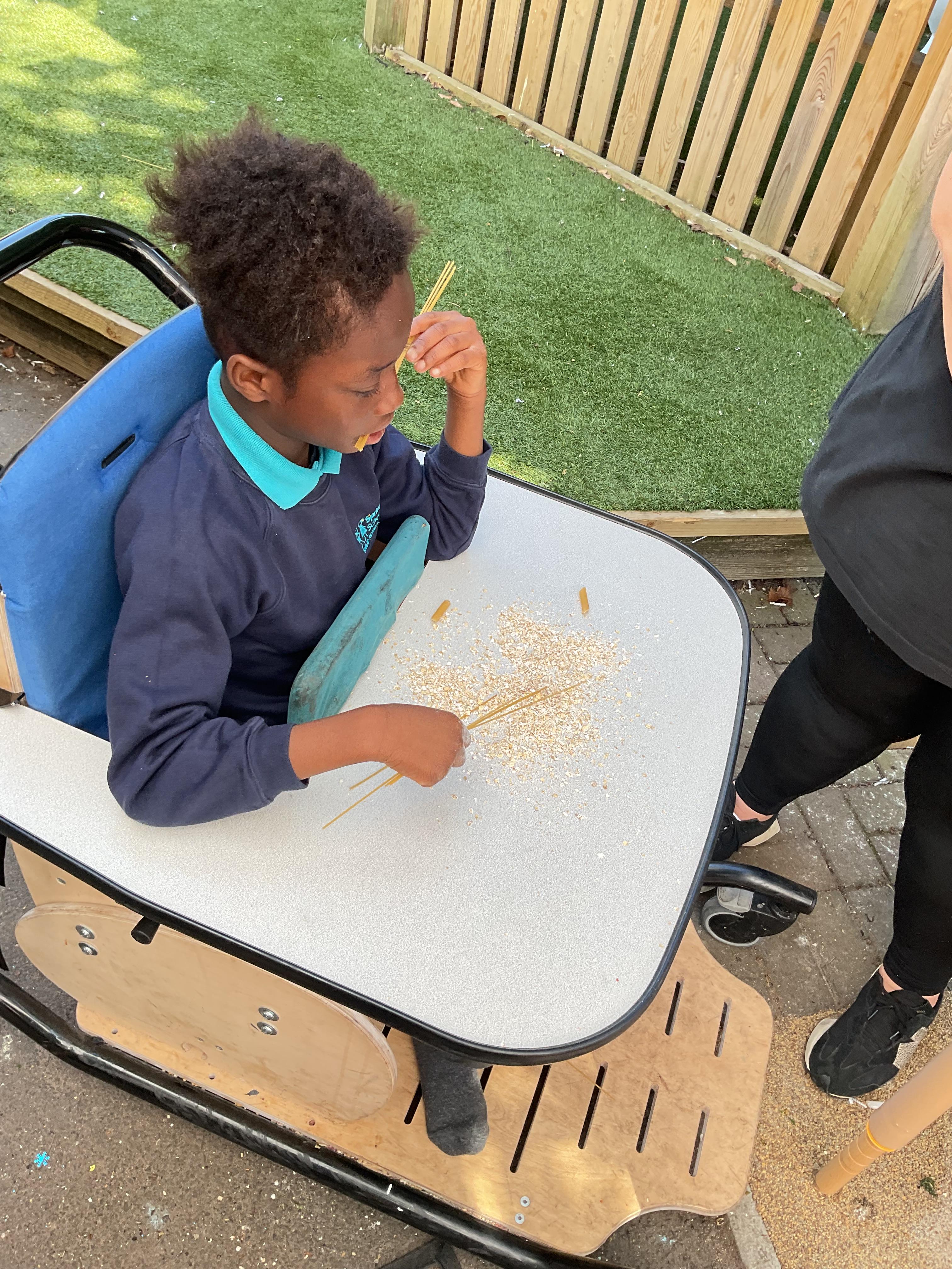 This week was wonderful for the Zebras! We started with art, where children used two different PECs cards to communicate their preferred colour of pen for mark-making. Each child then worked on their fine motor skills by colouring their little uniform character for our new school display. Great job, Zebras! Later, we ventured into the garden for some sensory play, we practised our pouring skills by transferring oats from one cup to another and picking up pasta with tweezers. In maths, we worked on our number recognition by matching the numbers 1-6. In our cooking session, we prepared some delicious and healthy snacks. We began by selecting our favourite fruits and chopping them up. We carefully observed as the yogurt was poured into the tin and then we added the different fruits before freezing the mixture to create fruit ice cream. At snack time, we used PECs symbols to communicate which fruit we wanted to try and it was scrumptious. In literacy, we continued our sensory story “A Train Ride through India”. We engaged with the props, smelt different spices and even listened to the sound of the train. On Thursday, we hopped on the bus to visit Tweddle Farm, where we enjoyed looking at various animals. Our favourite were the chickens! Afterwards, we gathered into the barn to read the story “Chicken Licken”. We finished the week with an exciting but messy attention autism session, where we cracked eggs on the floor and watched a dancing chicken.
