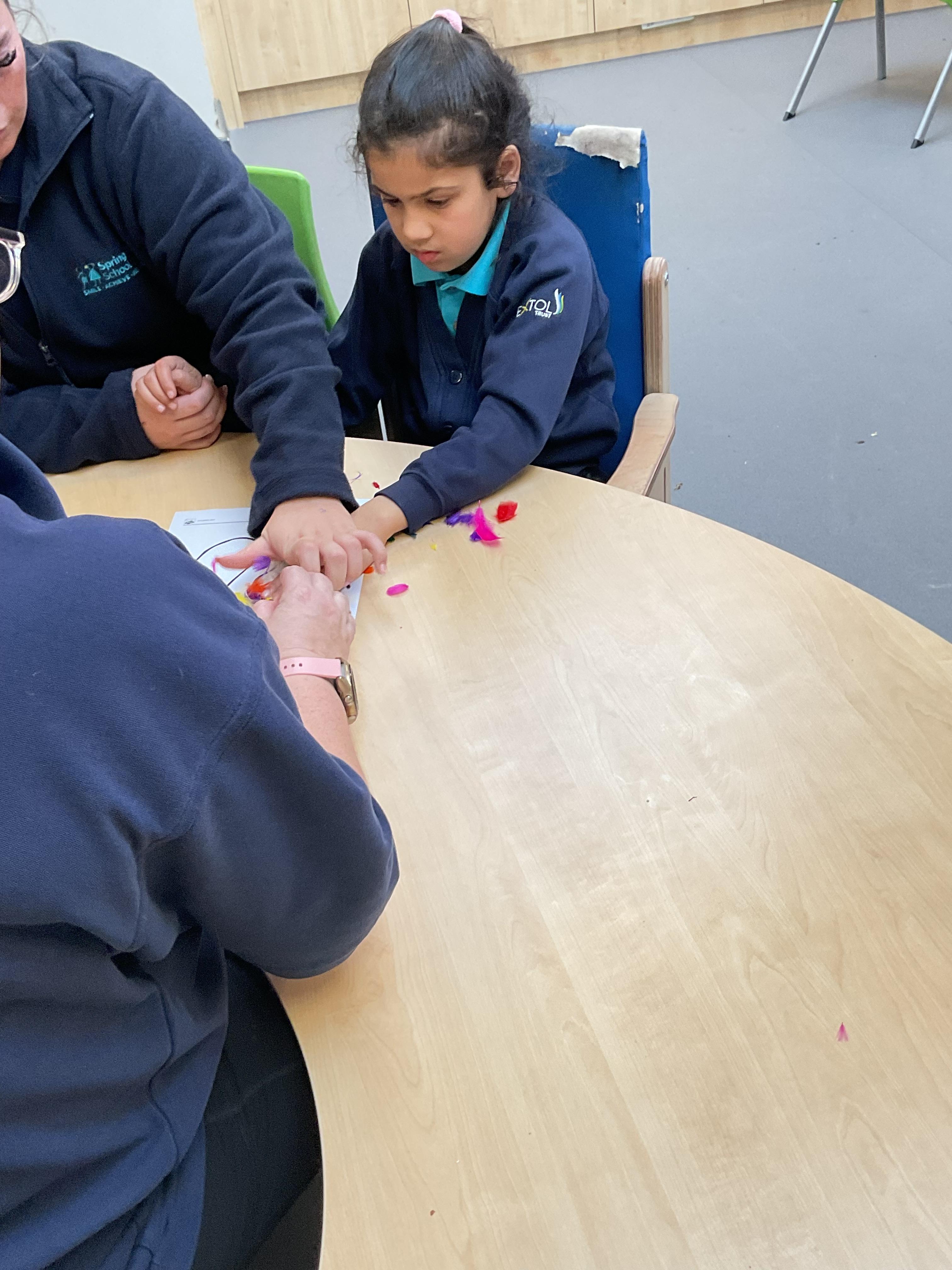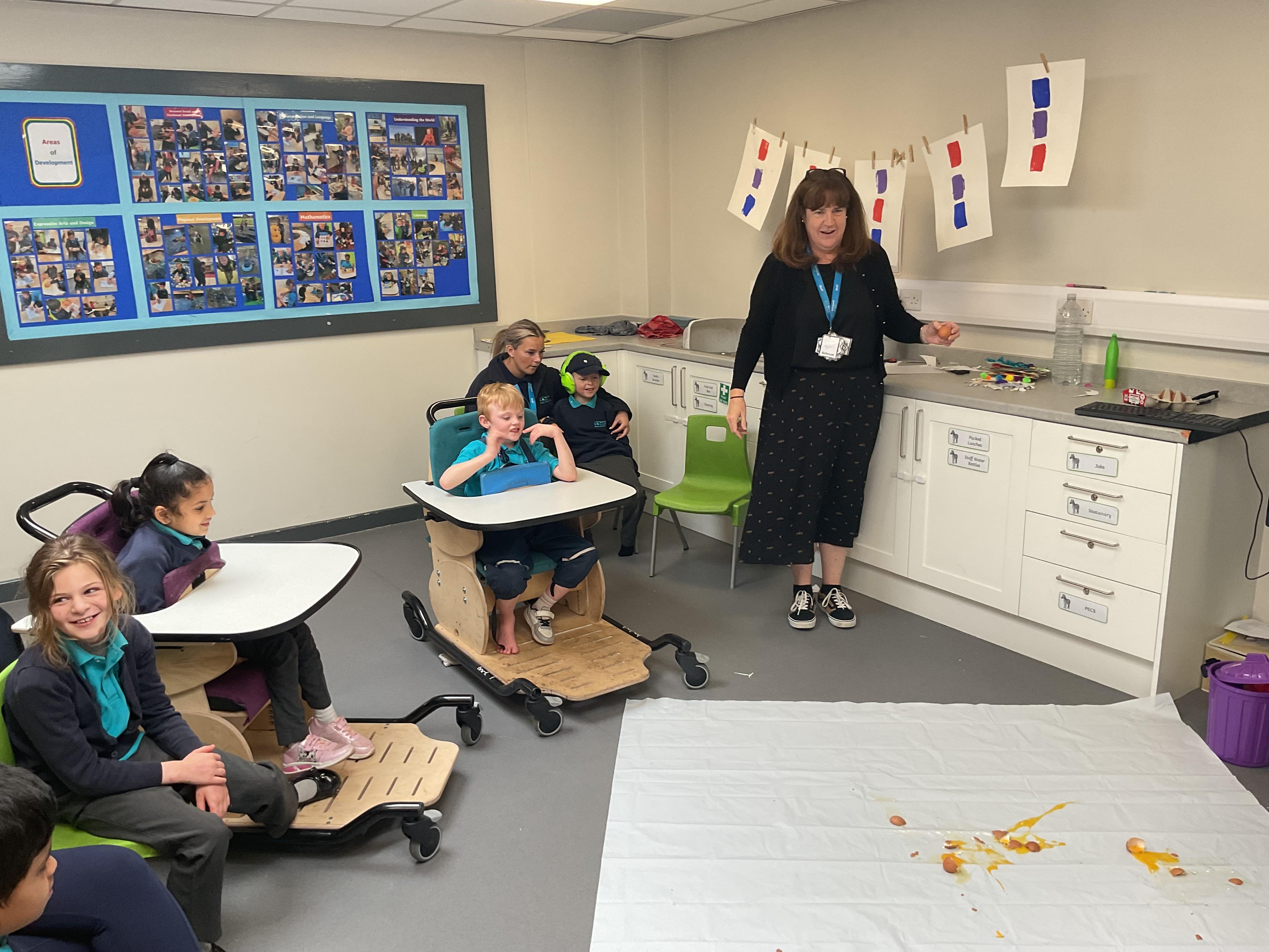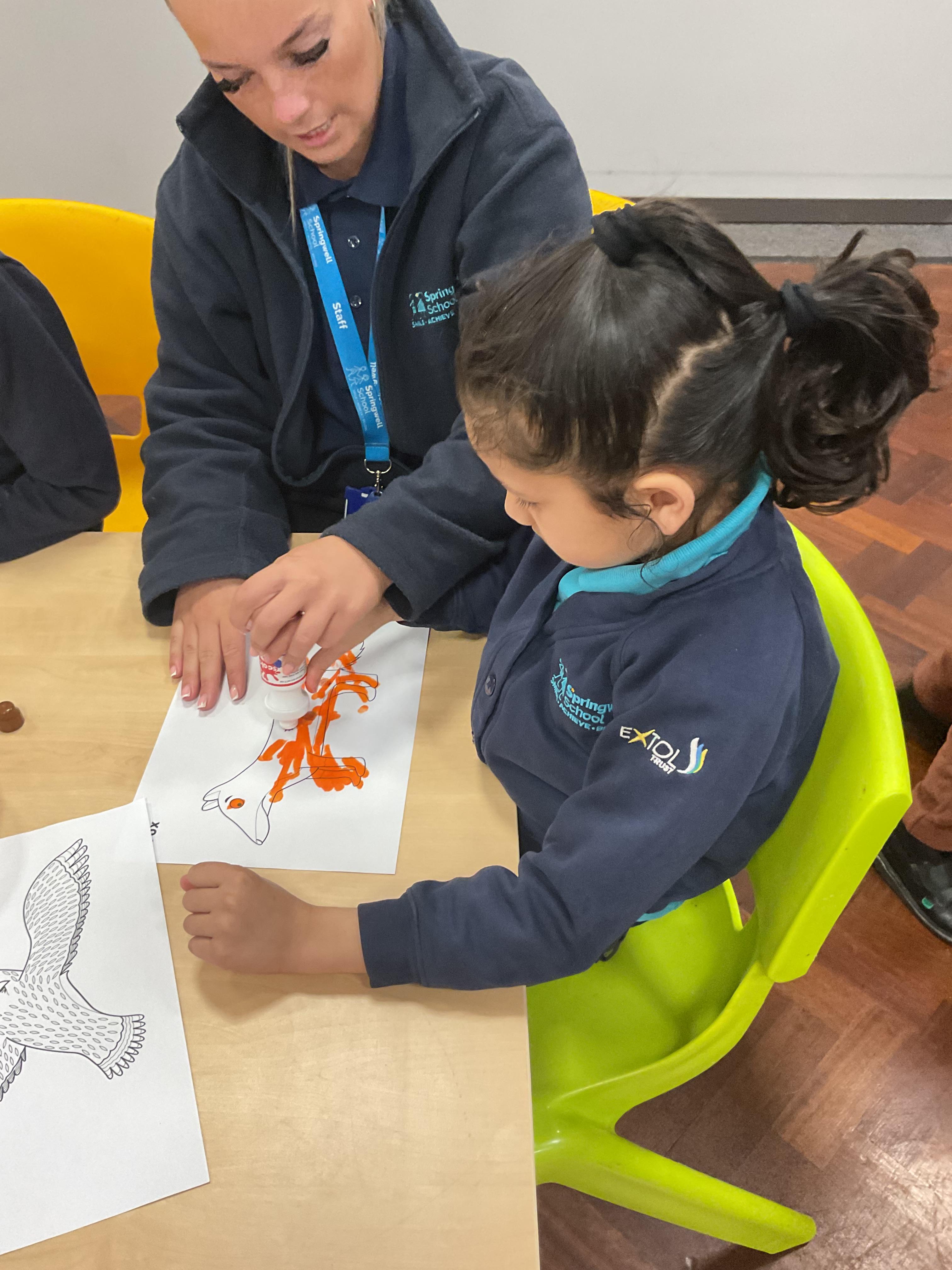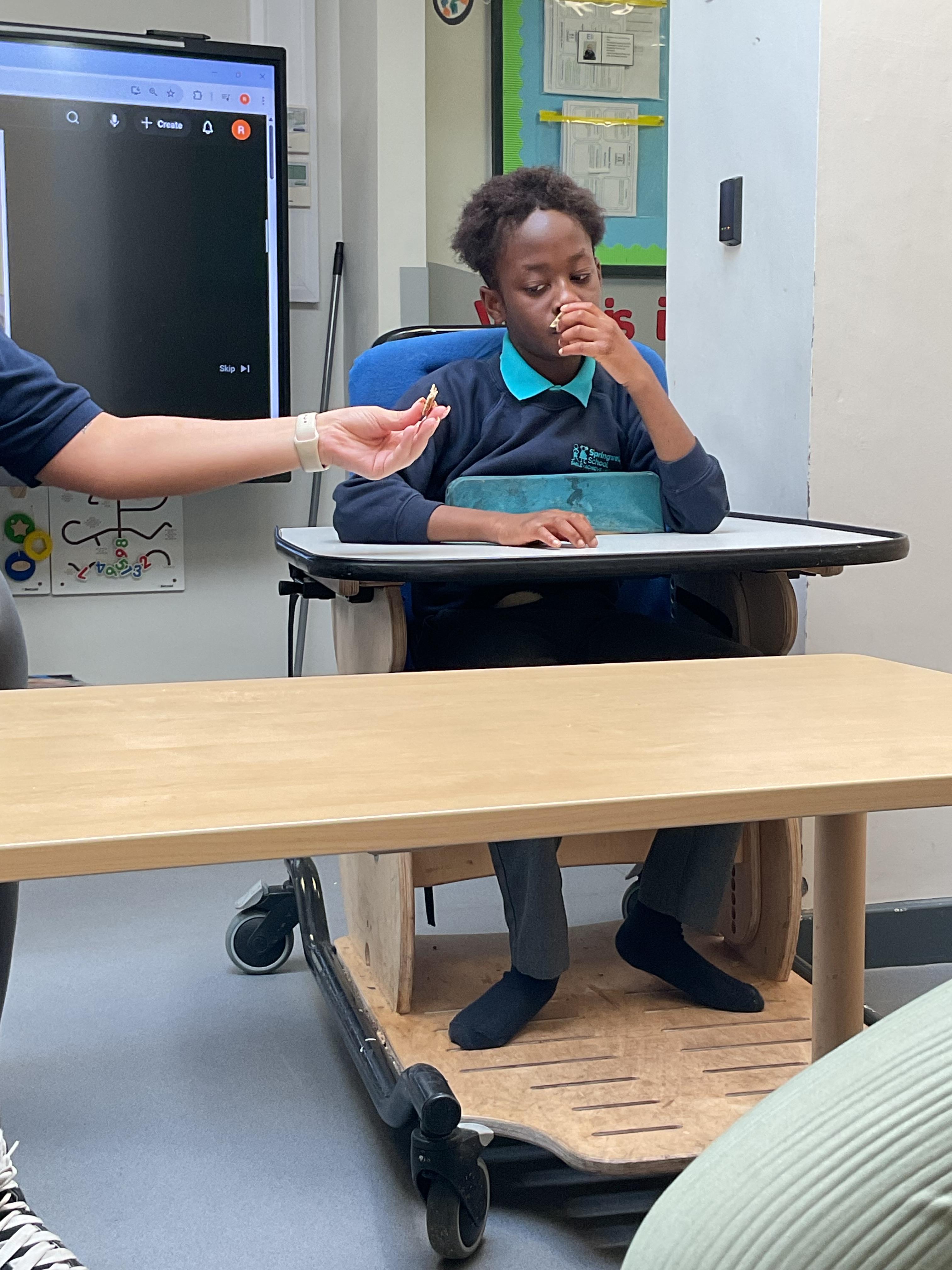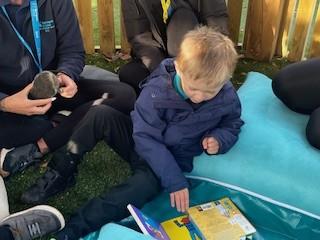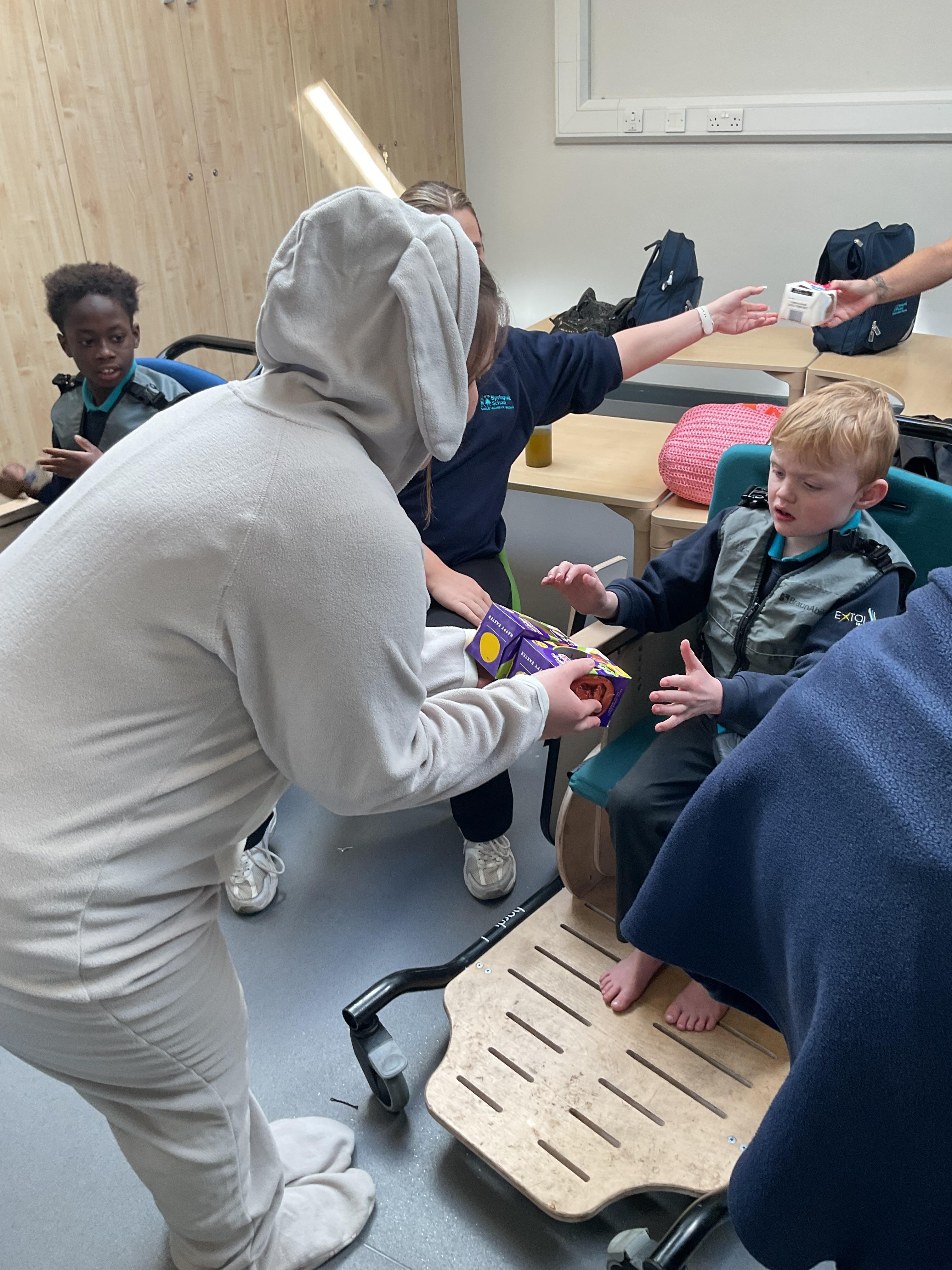 This week was wonderful for the Zebras! We started with art, where children used two different PECs cards to communicate their preferred colour of pen for mark-making. Each child then worked on their fine motor skills by colouring their little uniform character for our new school display. Great job, Zebras! Later, we ventured into the garden for some sensory play, we practised our pouring skills by transferring oats from one cup to another and picking up pasta with tweezers. In maths, we worked on our number recognition by matching the numbers 1-6. In our cooking session, we prepared some delicious and healthy snacks. We began by selecting our favourite fruits and chopping them up. We carefully observed as the yogurt was poured into the tin and then we added the different fruits before freezing the mixture to create fruit ice cream. At snack time, we used PECs symbols to communicate which fruit we wanted to try and it was scrumptious. In literacy, we continued our sensory story “A Train Ride through India”. We engaged with the props, smelt different spices and even listened to the sound of the train. On Thursday, we hopped on the bus to visit Tweddle Farm, where we enjoyed looking at various animals. Our favourite were the chickens! Afterwards, we gathered into the barn to read the story “Chicken Licken”. We finished the week with an exciting but messy attention autism session, where we cracked eggs on the floor and watched a dancing chicken.