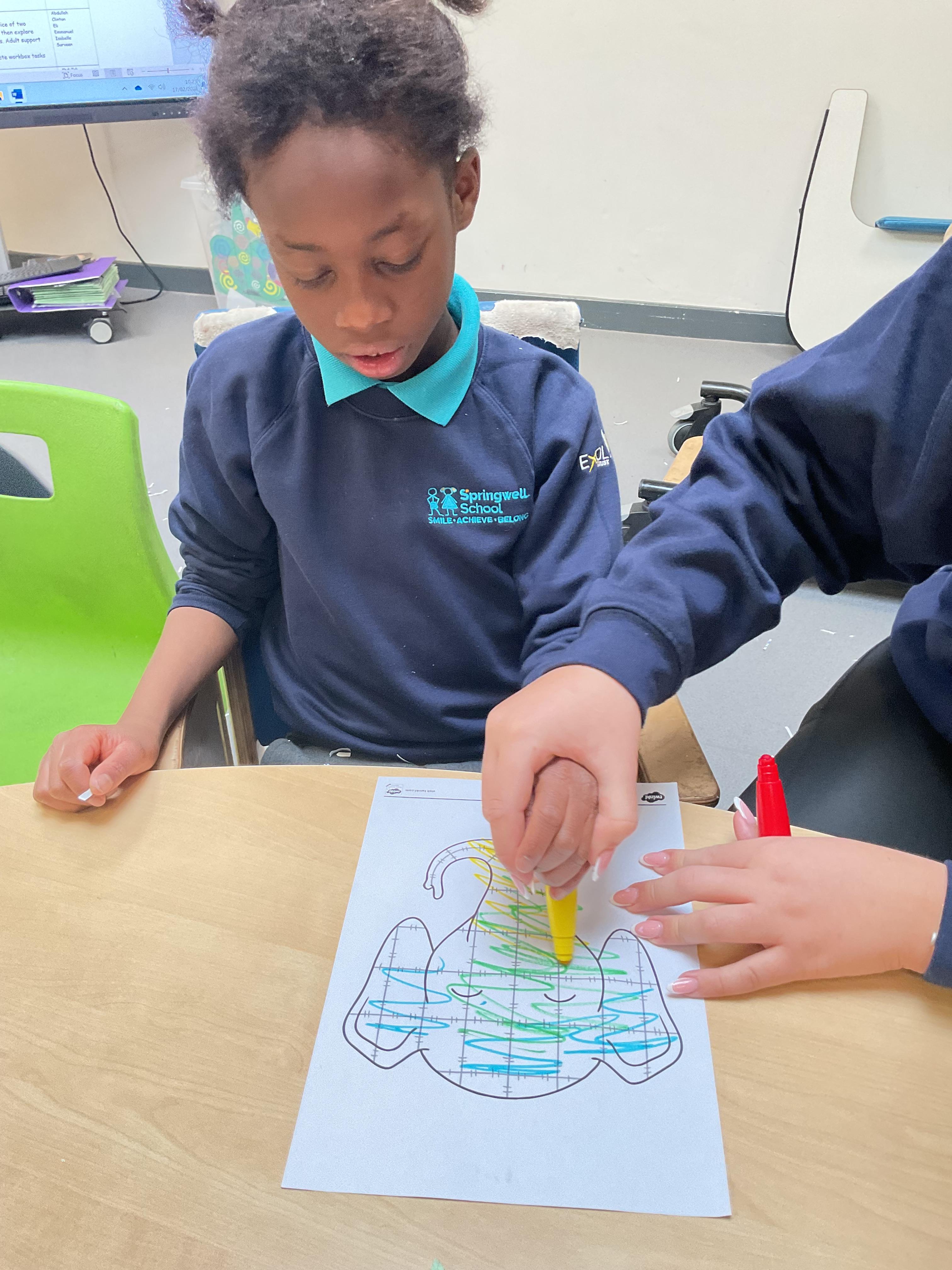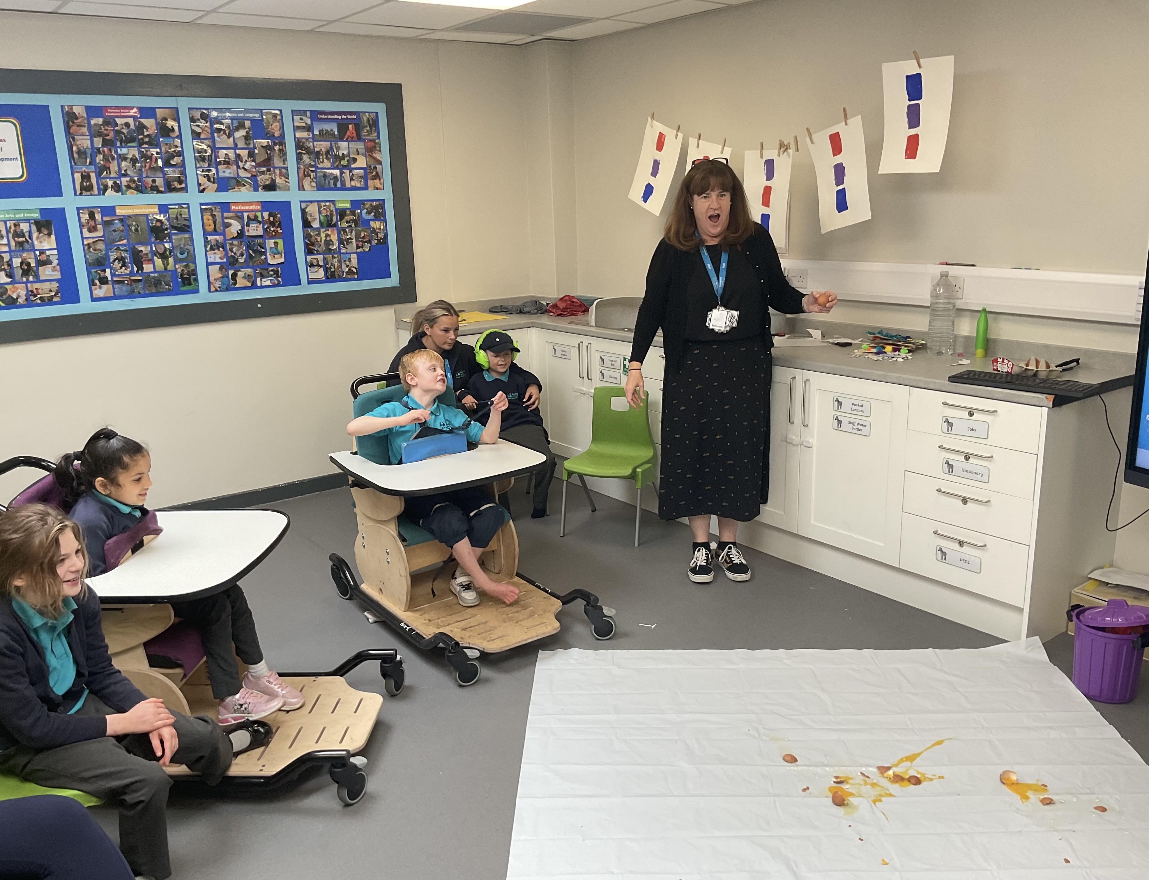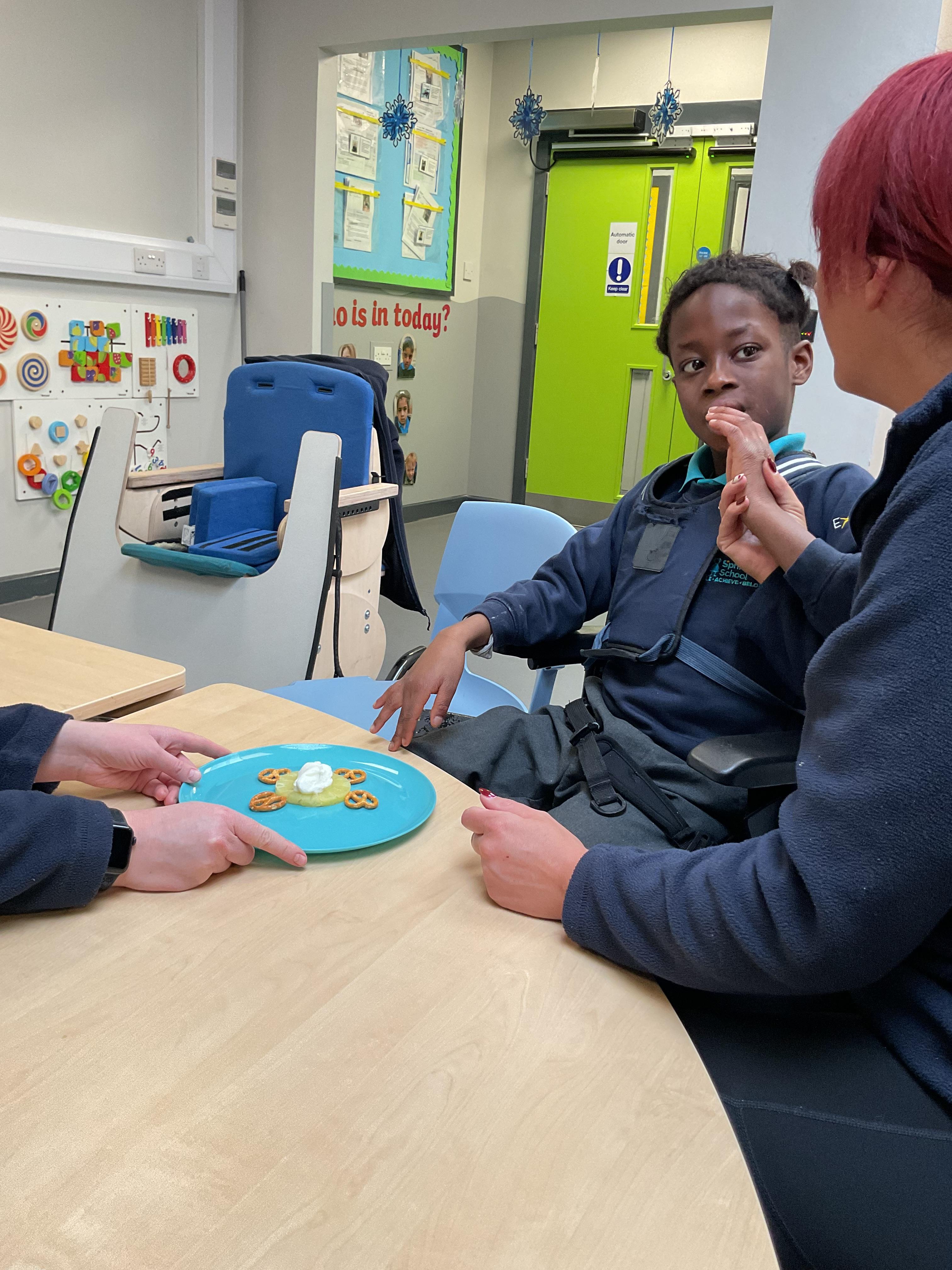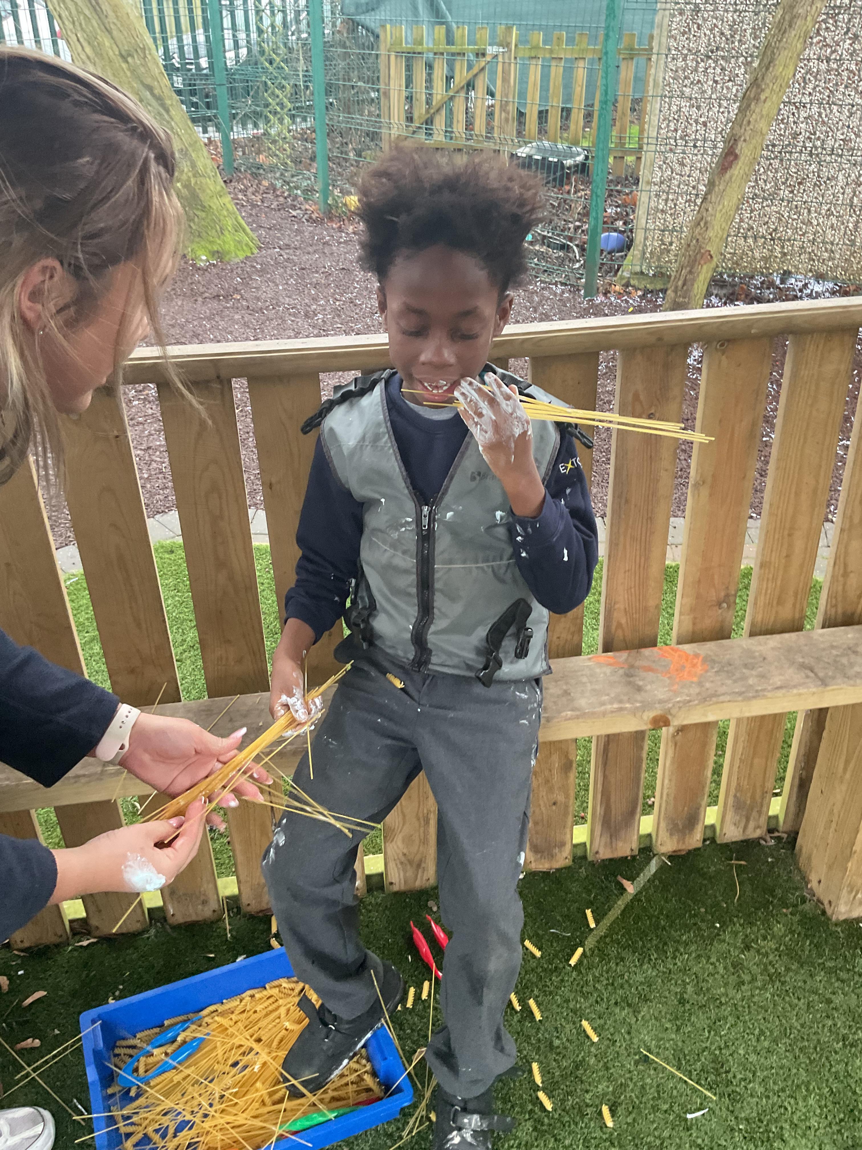 This week was wonderful for the Zebras! We started with art, where children used two different PECs cards to communicate their preferred colour of pen for mark-making. Each child then worked on their fine motor skills by colouring their little uniform character for our new school display. Great job, Zebras! Later, we ventured into the garden for some sensory play, we practised our pouring skills by transferring oats from one cup to another and picking up pasta with tweezers. In maths, we worked on our number recognition by matching the numbers 1-6. In our cooking session, we prepared some delicious and healthy snacks. We began by selecting our favourite fruits and chopping them up. We carefully observed as the yogurt was poured into the tin and then we added the different fruits before freezing the mixture to create fruit ice cream. At snack time, we used PECs symbols to communicate which fruit we wanted to try and it was scrumptious. In literacy, we continued our sensory story “A Train Ride through India”. We engaged with the props, smelt different spices and even listened to the sound of the train. On Thursday, we hopped on the bus to visit Tweddle Farm, where we enjoyed looking at various animals. Our favourite were the chickens! Afterwards, we gathered into the barn to read the story “Chicken Licken”. We finished the week with an exciting but messy attention autism session, where we cracked eggs on the floor and watched a dancing chicken.