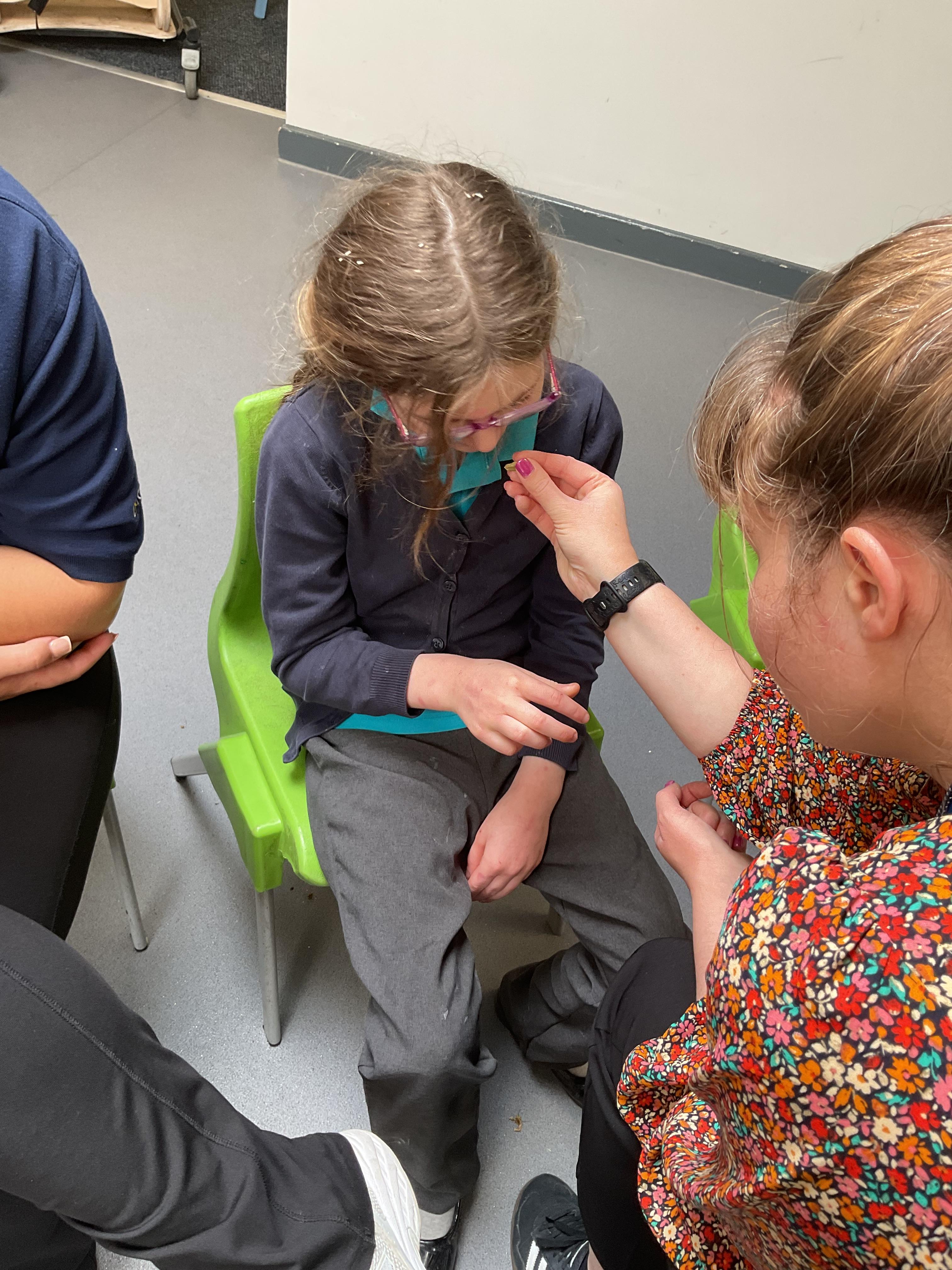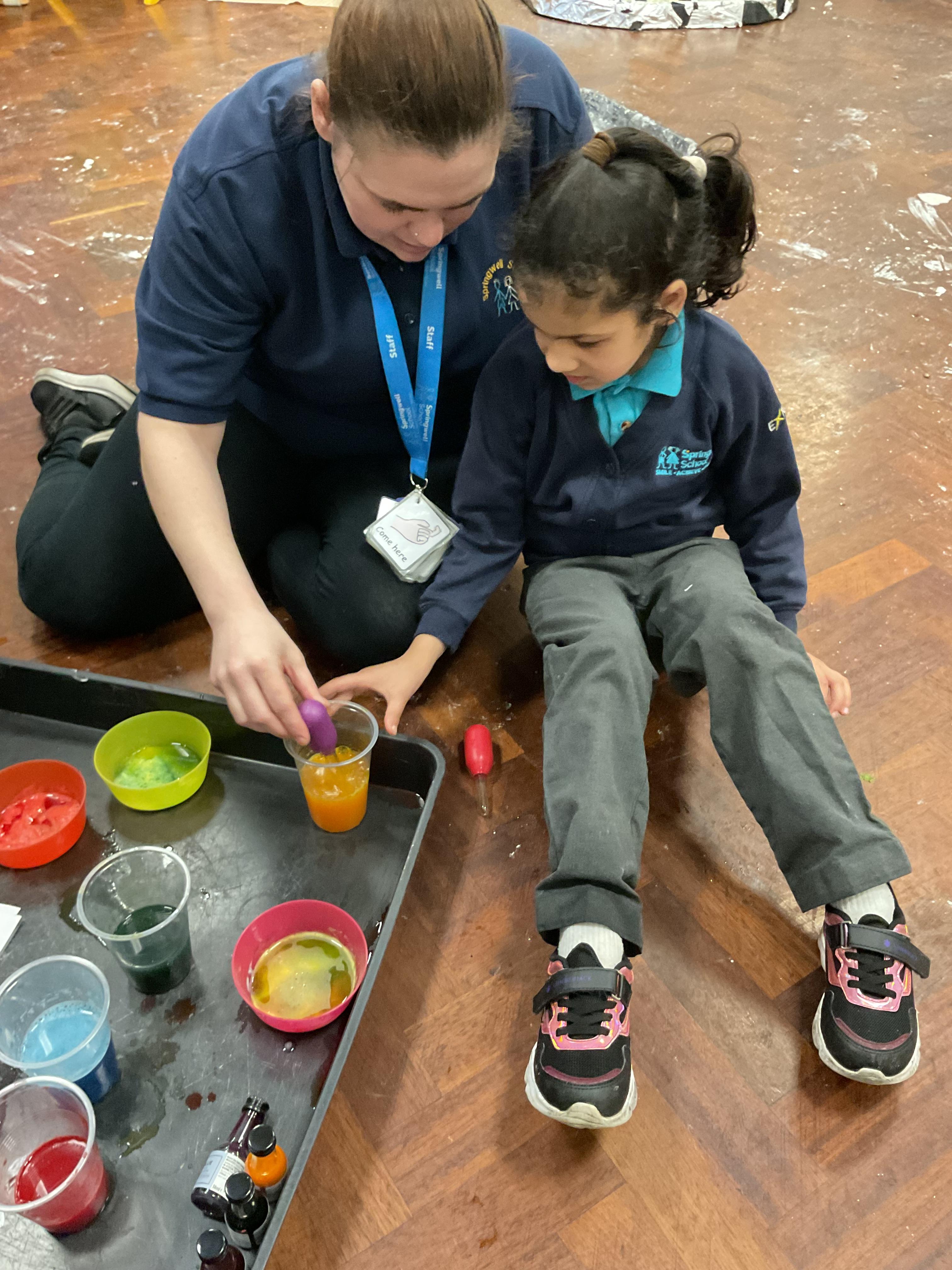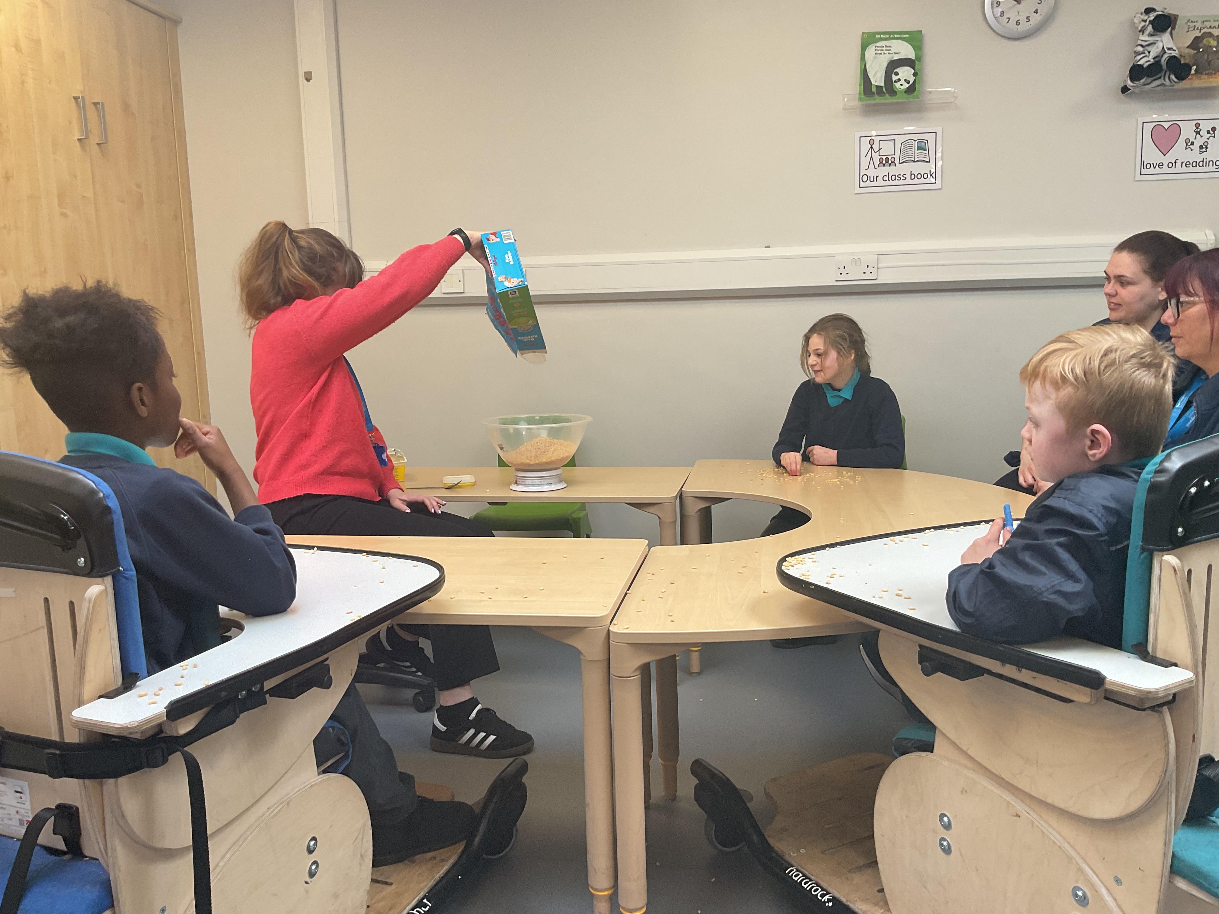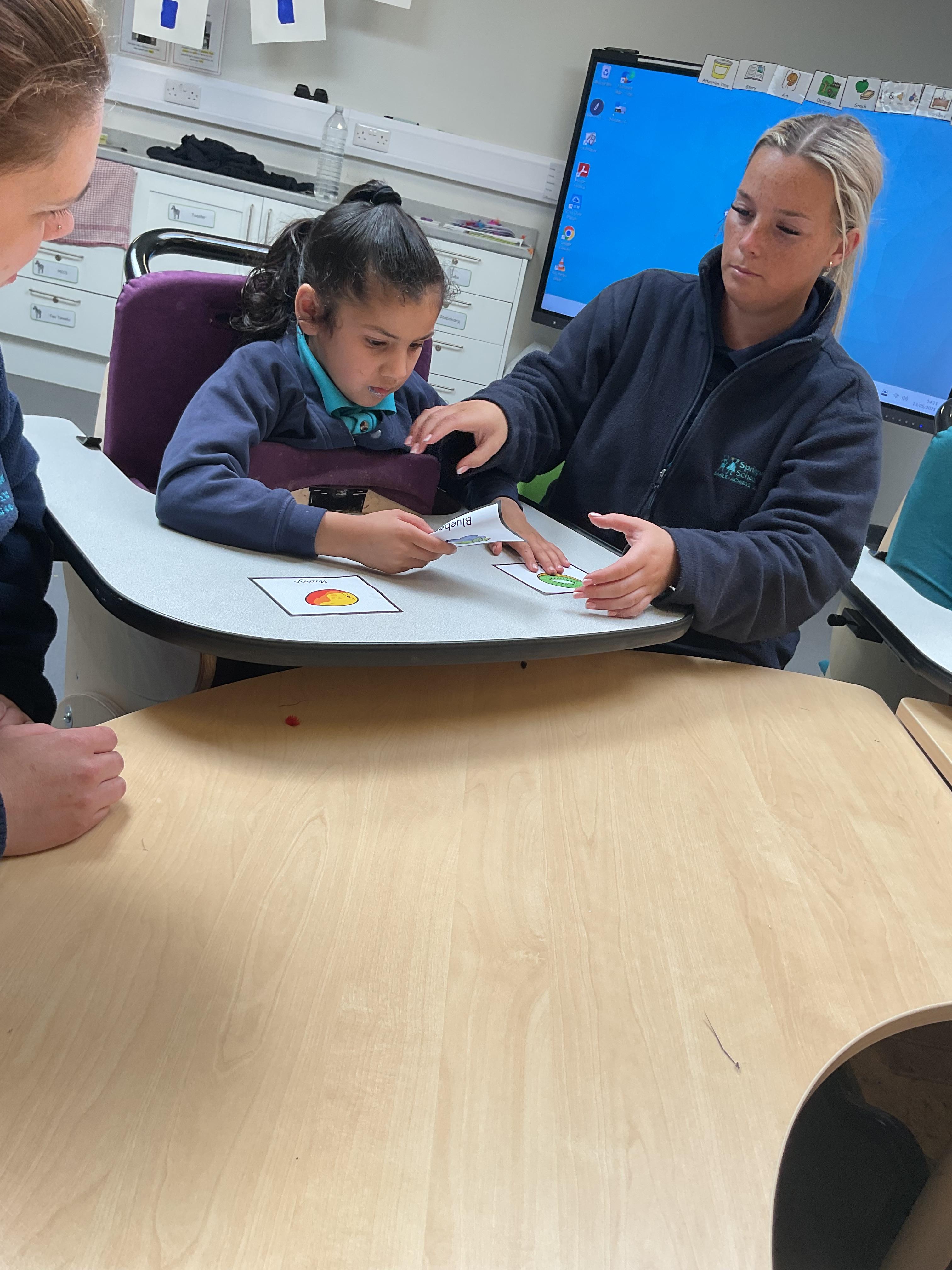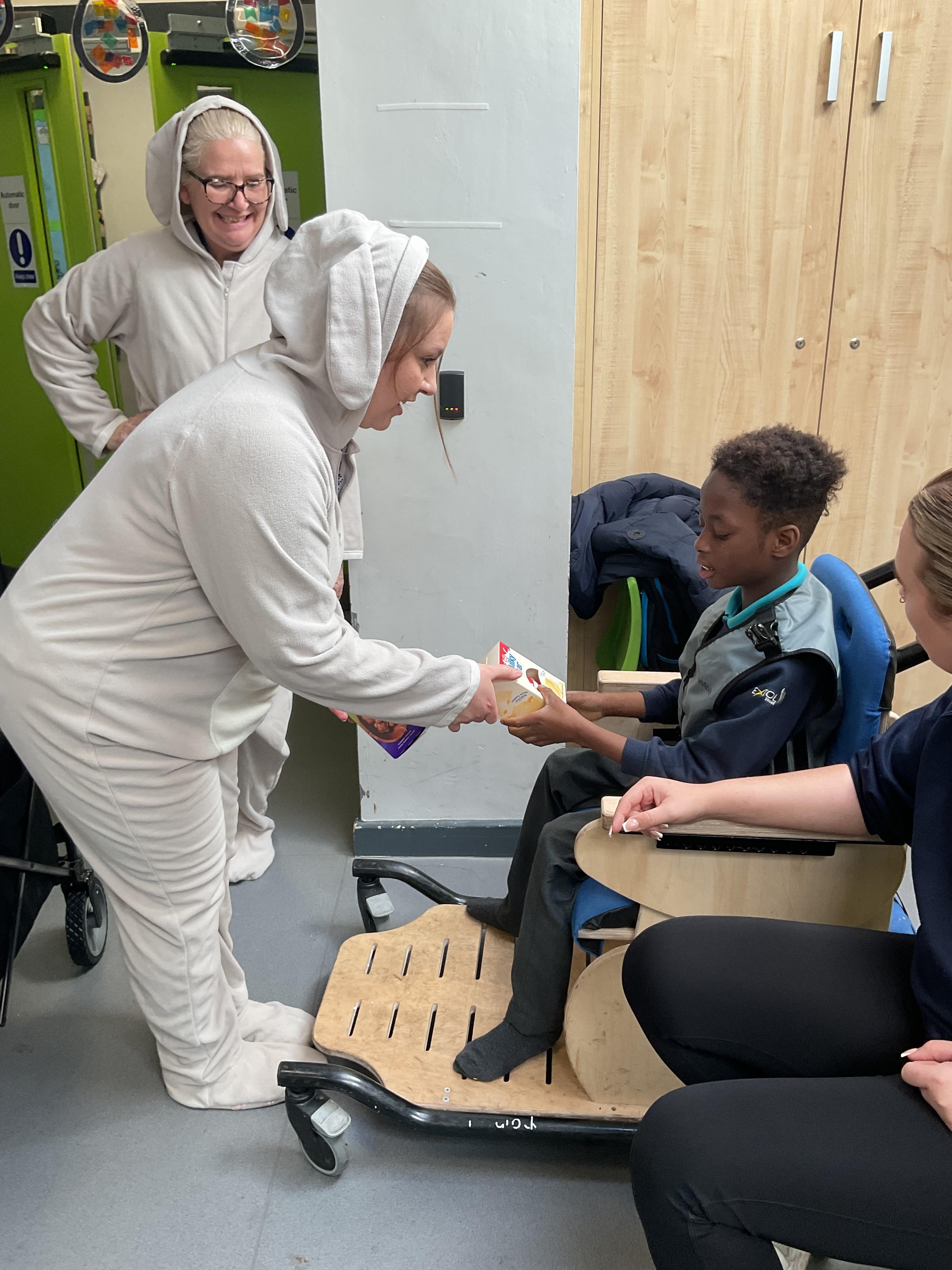 This week was wonderful for the Zebras! We started with art, where children used two different PECs cards to communicate their preferred colour of pen for mark-making. Each child then worked on their fine motor skills by colouring their little uniform character for our new school display. Great job, Zebras! Later, we ventured into the garden for some sensory play, we practised our pouring skills by transferring oats from one cup to another and picking up pasta with tweezers. In maths, we worked on our number recognition by matching the numbers 1-6. In our cooking session, we prepared some delicious and healthy snacks. We began by selecting our favourite fruits and chopping them up. We carefully observed as the yogurt was poured into the tin and then we added the different fruits before freezing the mixture to create fruit ice cream. At snack time, we used PECs symbols to communicate which fruit we wanted to try and it was scrumptious. In literacy, we continued our sensory story “A Train Ride through India”. We engaged with the props, smelt different spices and even listened to the sound of the train. On Thursday, we hopped on the bus to visit Tweddle Farm, where we enjoyed looking at various animals. Our favourite were the chickens! Afterwards, we gathered into the barn to read the story “Chicken Licken”. We finished the week with an exciting but messy attention autism session, where we cracked eggs on the floor and watched a dancing chicken.