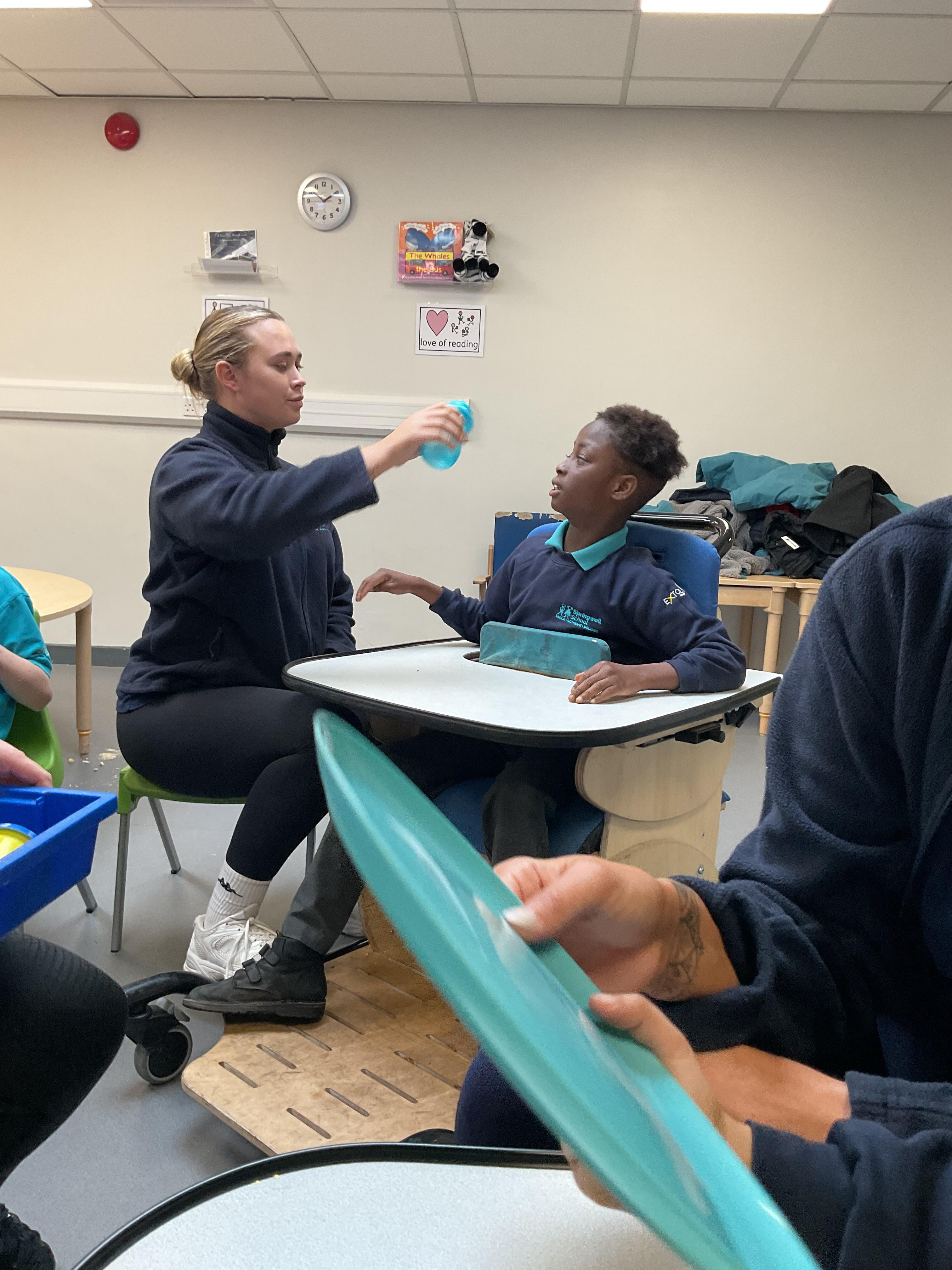 • We use our hydrotherapy pool to develop our water confidence and swimming skills each week.