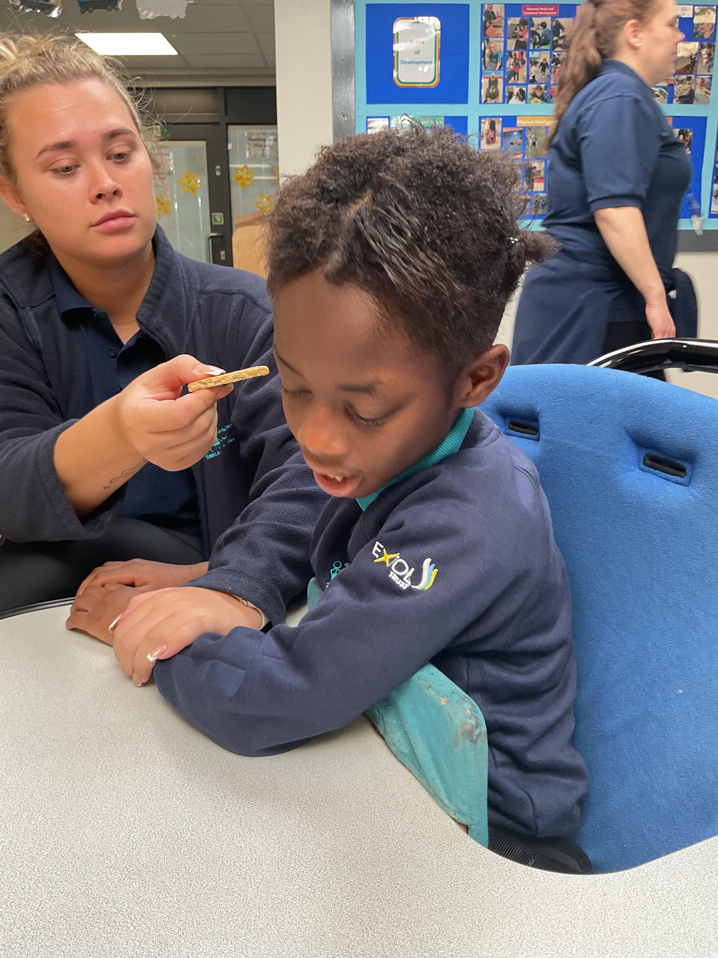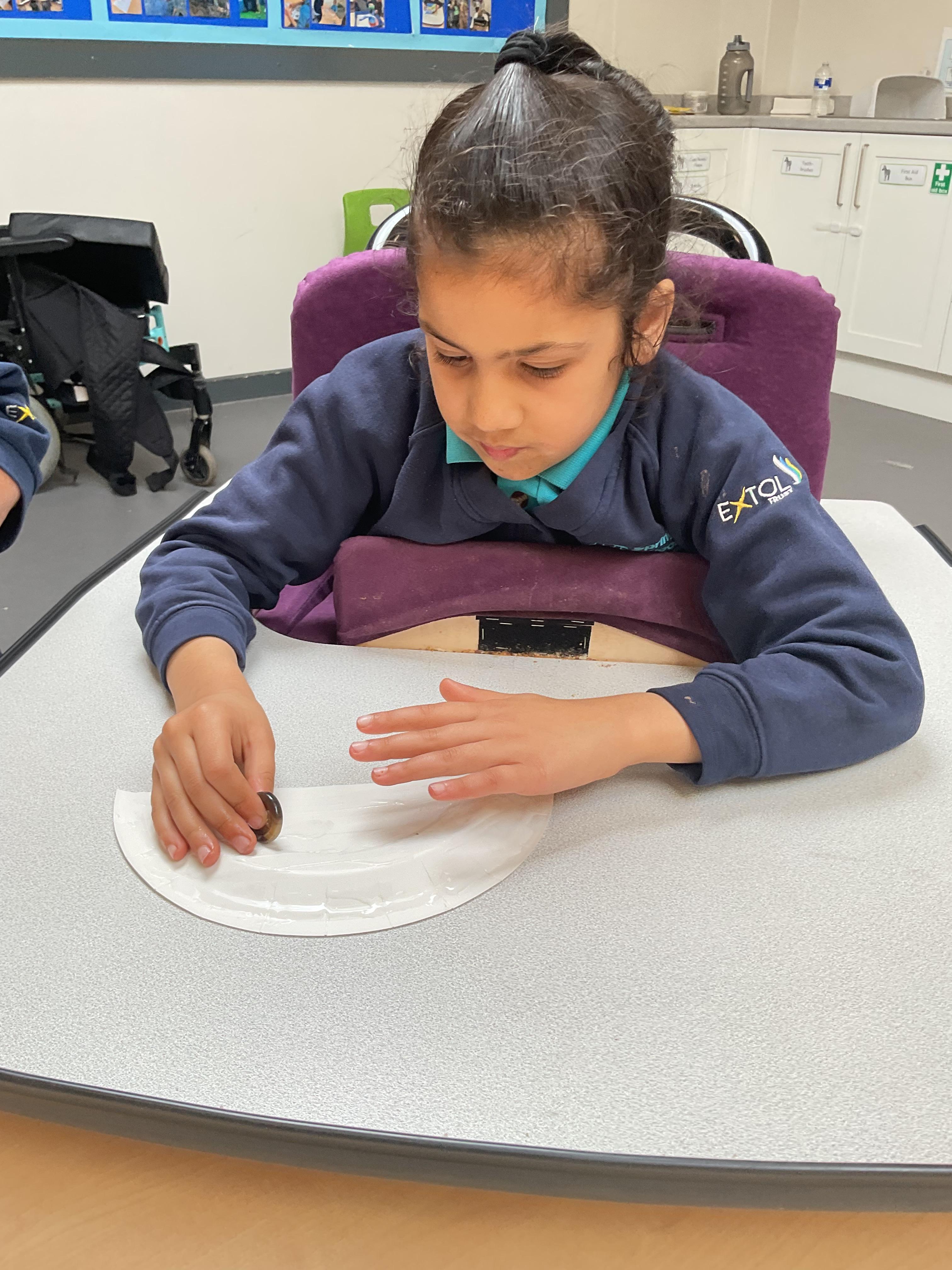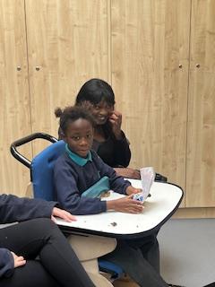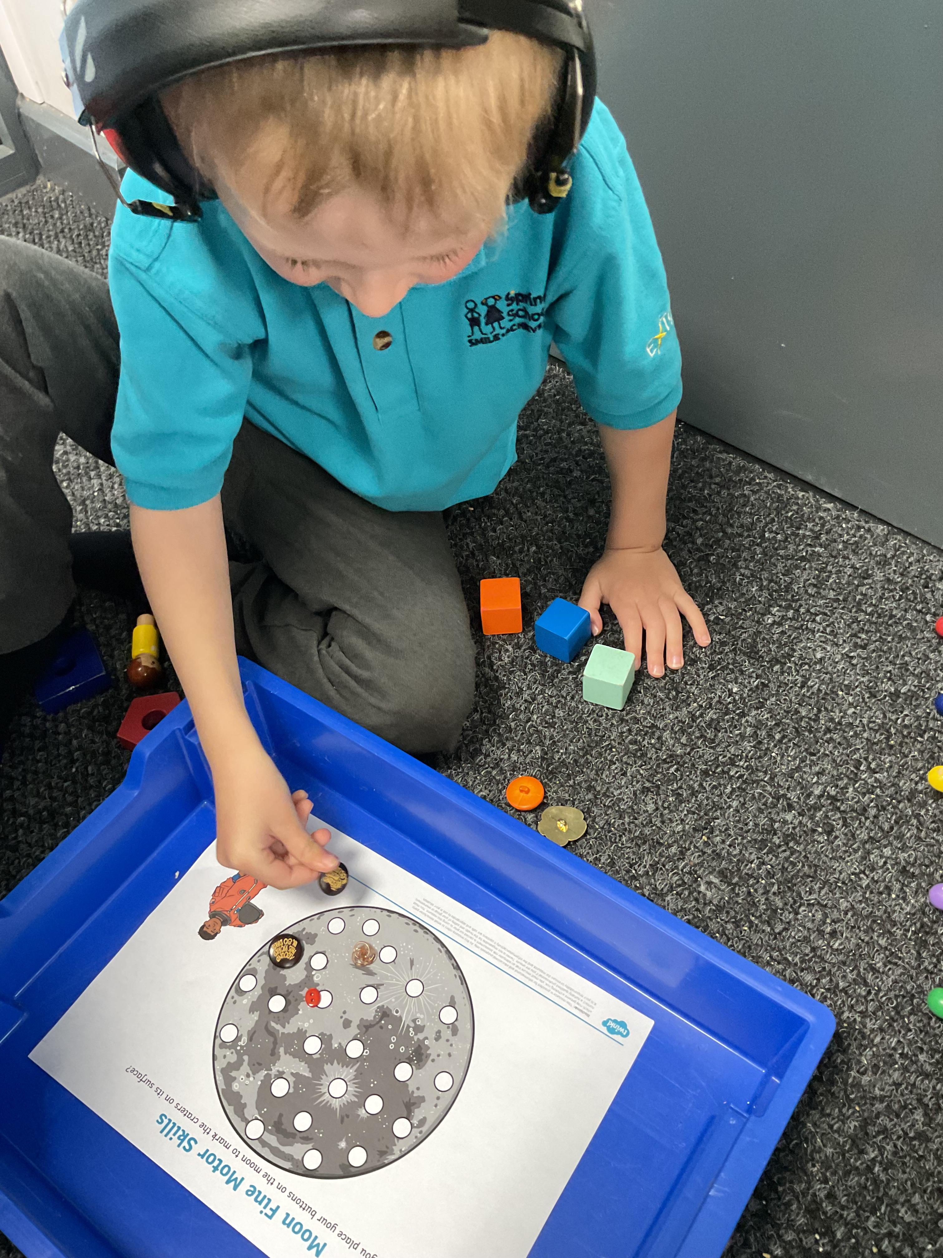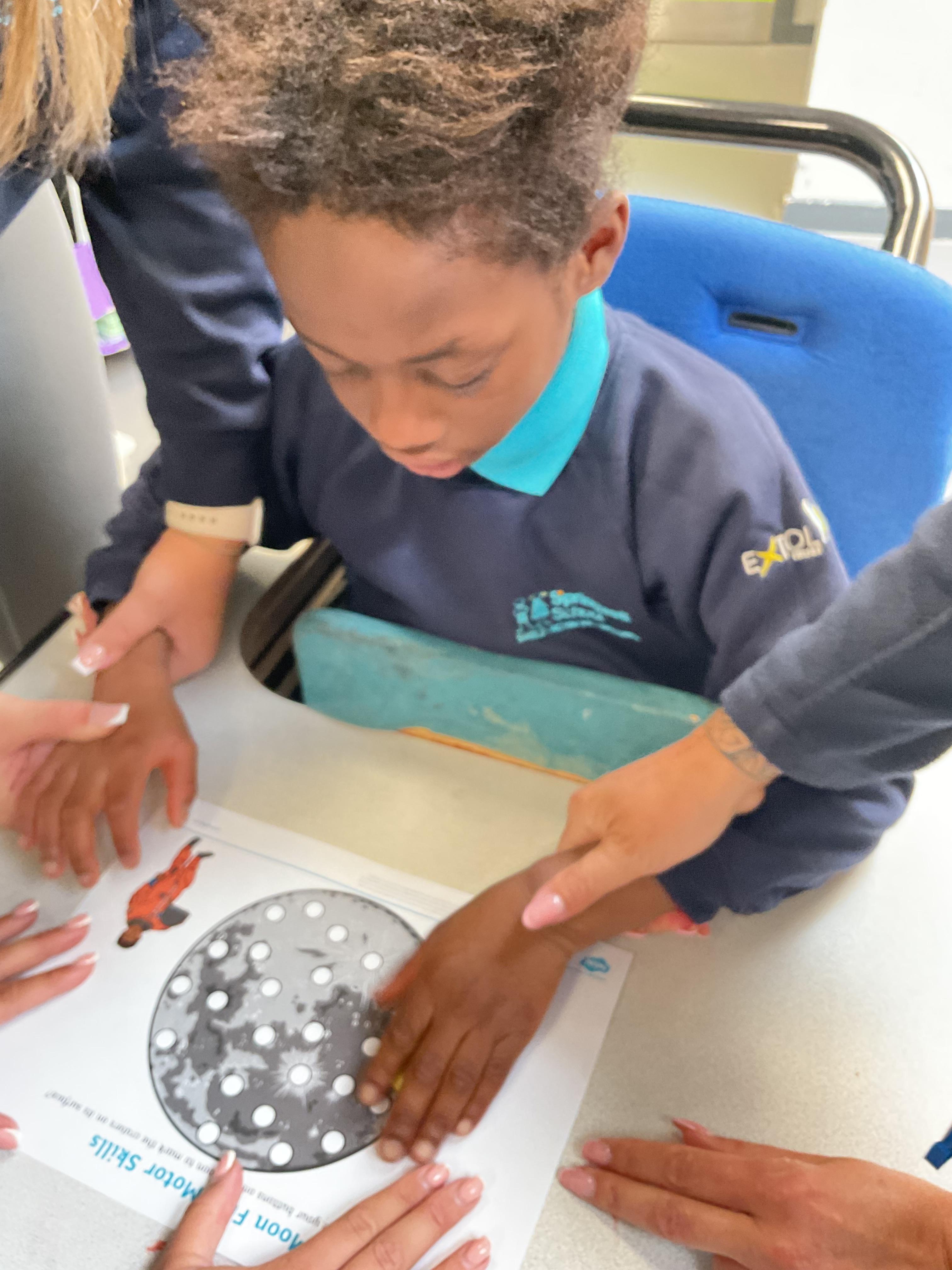 A fantastic week for zebras, we began the week by practising our fine motor skills, placing buttons on the circles of the moon. This was quite tricky but with some help from our adults and the children’s persistence, we all completed the task. Throughout the week, we worked hard using Picture Exchange Communication System (PECS) during various times of the day: breakfast, snack time and even exchanging for our favourite cause and effect toys. Well done to all the zebras! Our favourite part of the week was an attention autism session where we watched dancing skeletons, spinning dancing tops and even dancing chickens. The children were captivated, demonstrating brilliant attention and focus. In literacy, we enjoyed our focused sensory story one last time and explored the props. After the story, we made our own rocky moon bread, getting messy as we mixed the floor. We even got to taste the bread during snack time, it went down a treat.  In maths, we took advantage of the sunshine and participated in some sensory play with maths resources. We had fun getting messy in the mud while searching for different coloured dinosaurs and finding numicon pieces in rice and oats. During swimming, we practised using PECs in the pool, by exchanging for our favourite toys. In PSHRE, we visited ALDI to do our shopping for cooking ingredients, we all enjoyed paying for our own shopping using the self checkouts to scan and pay.