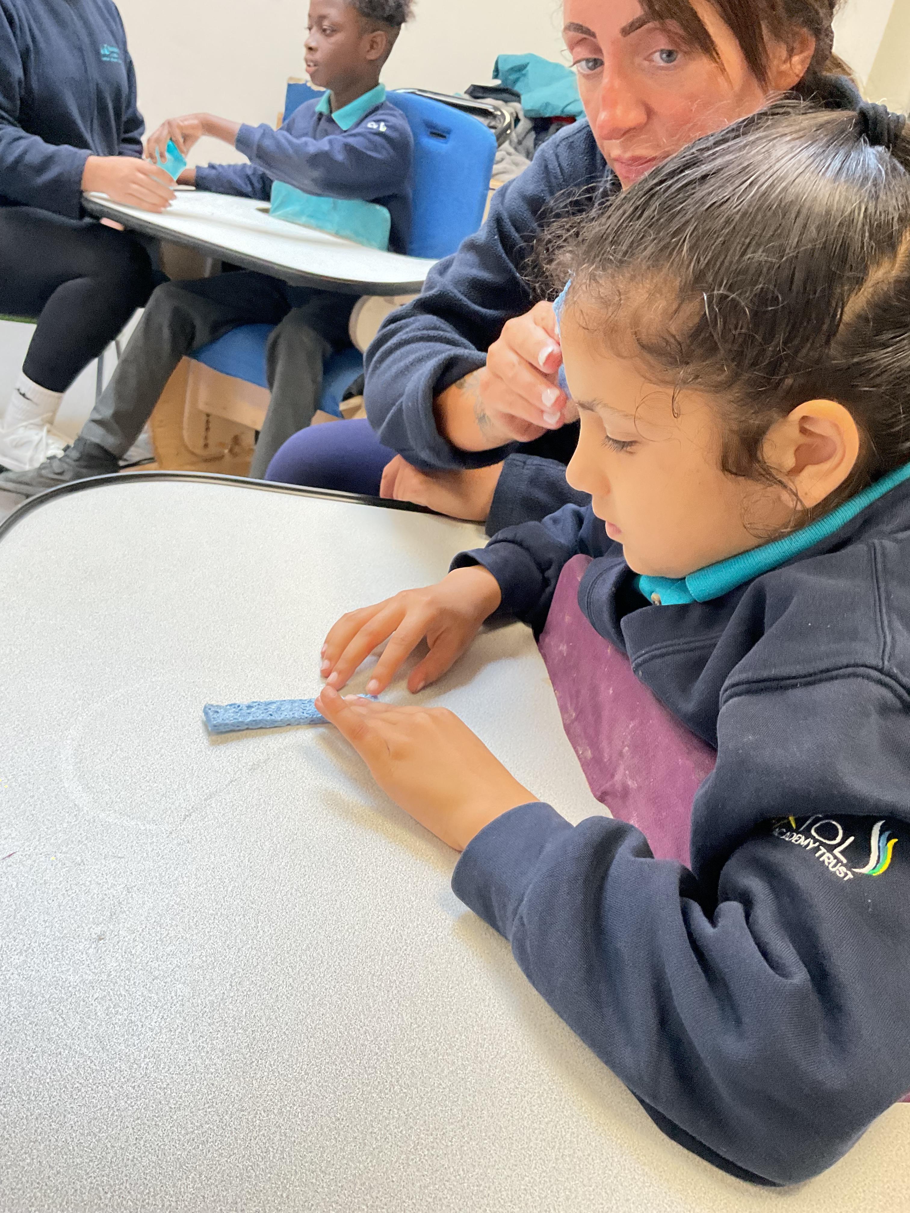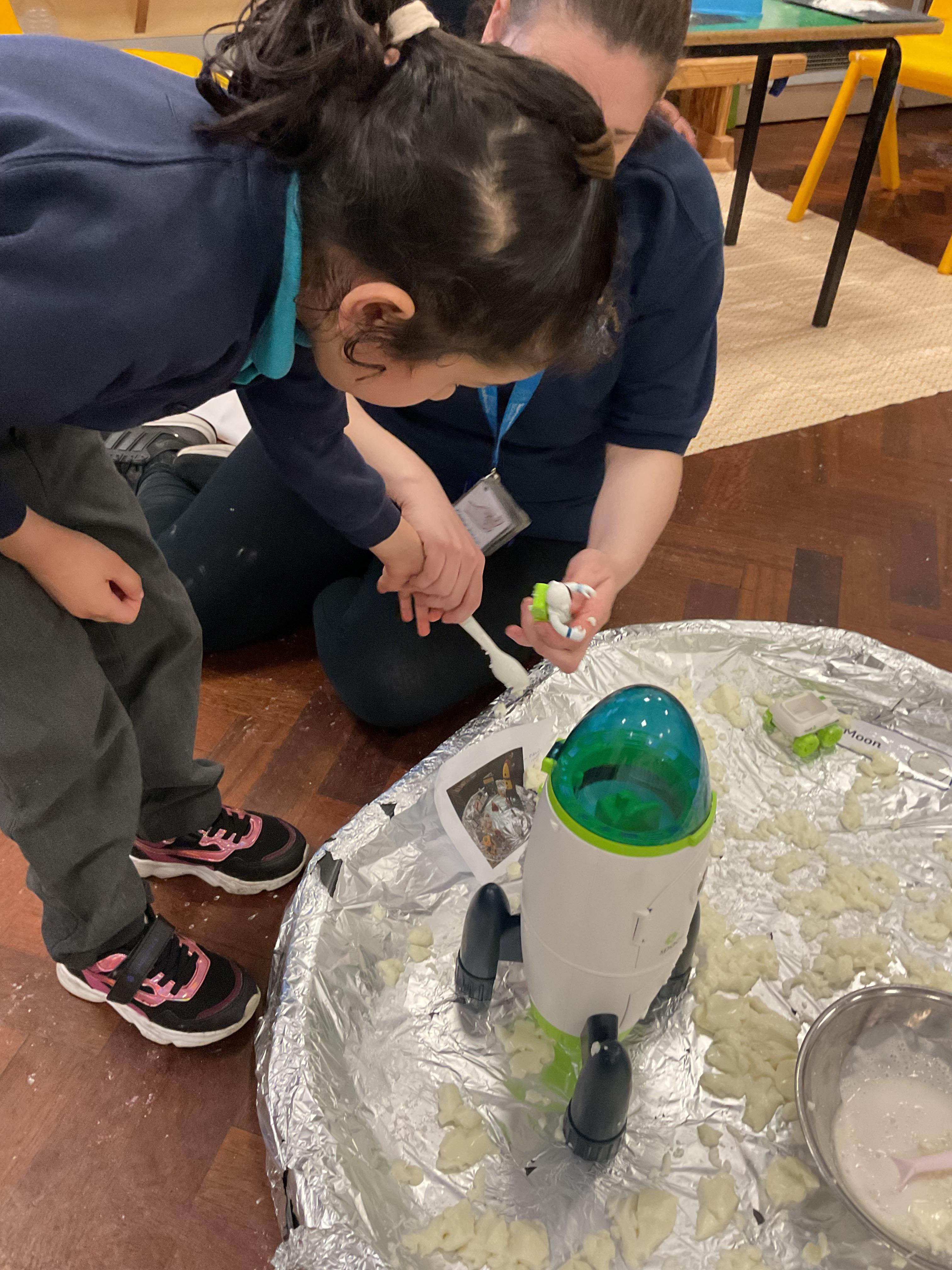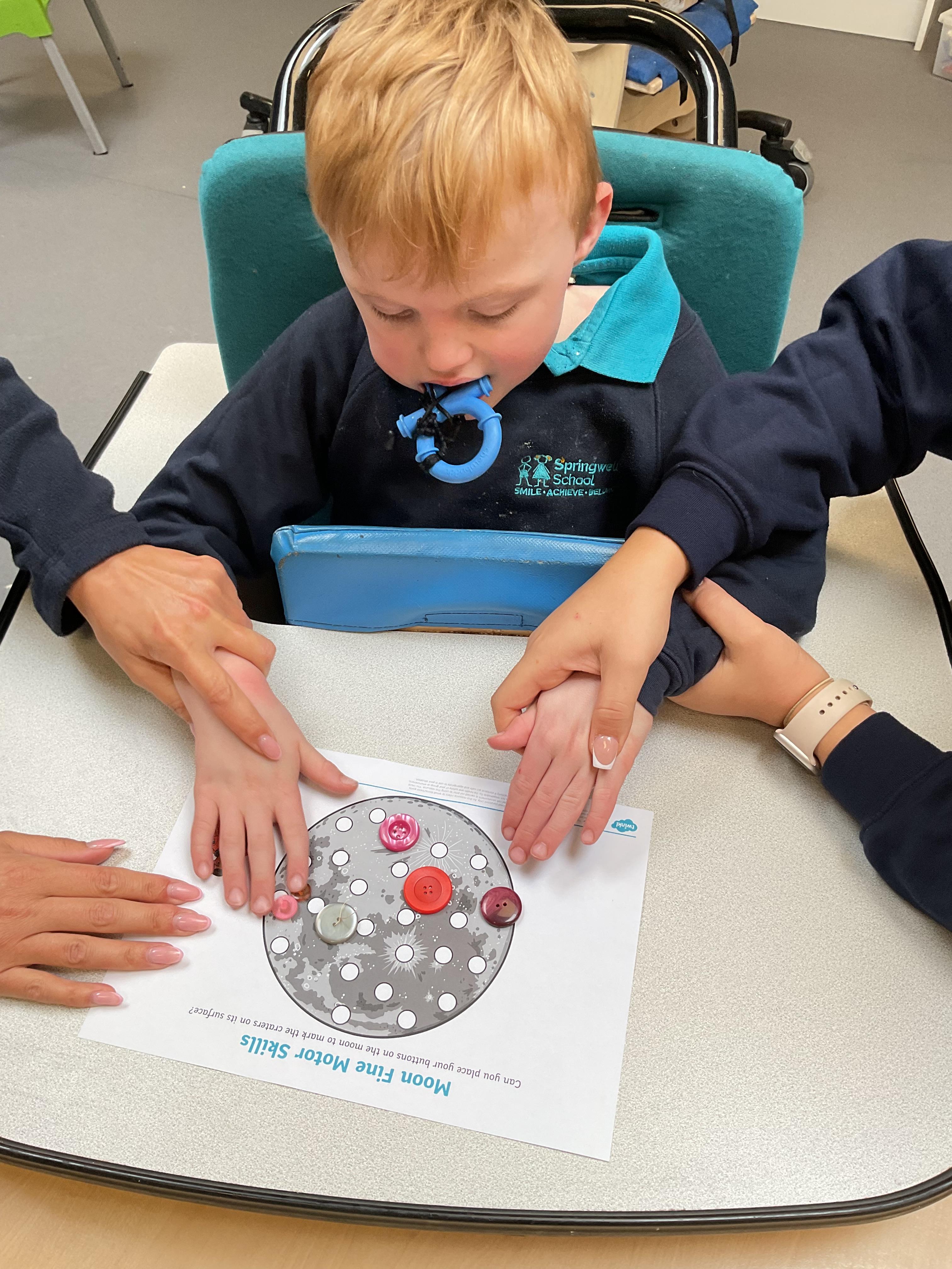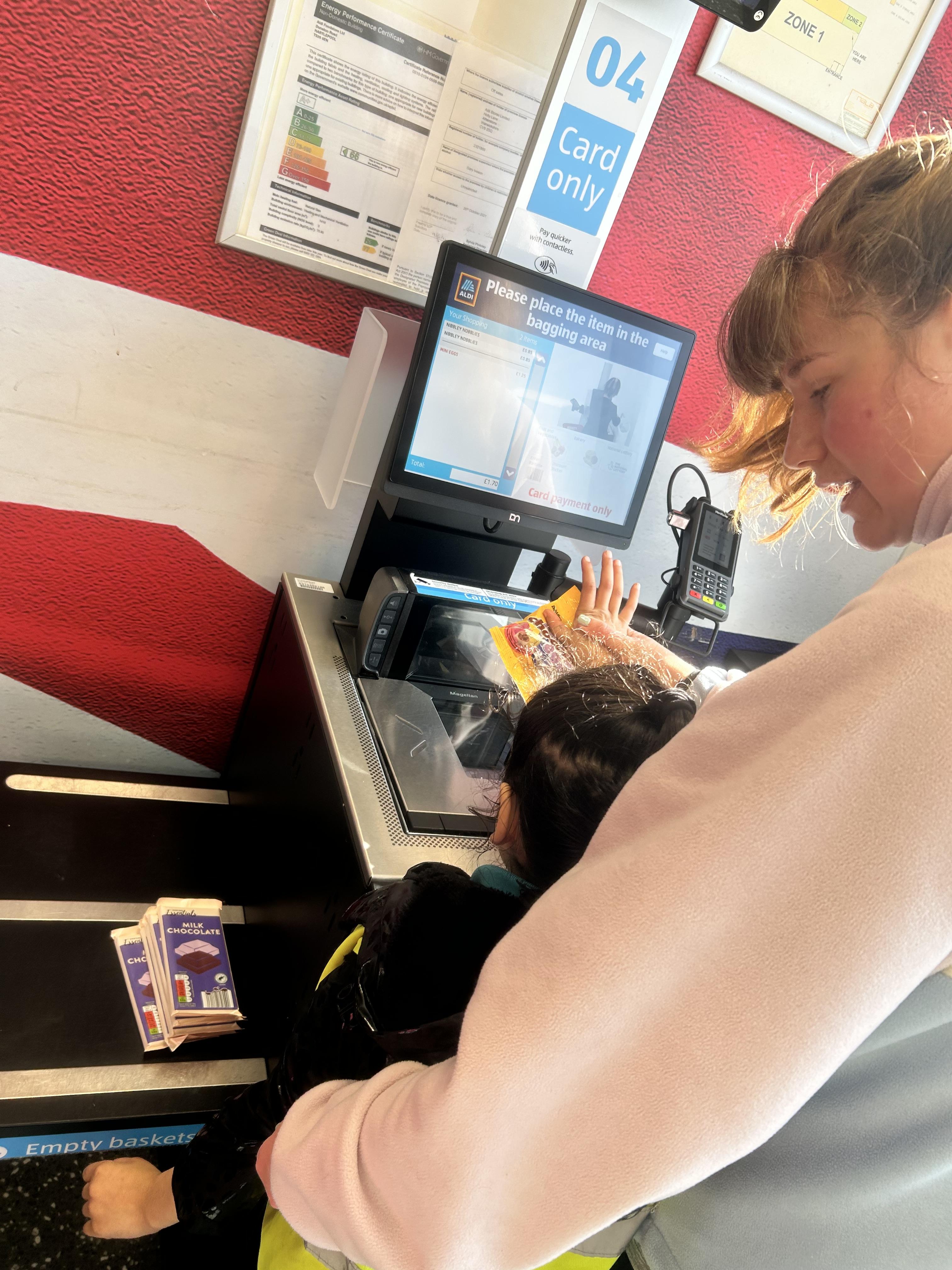 A fantastic week for zebras, we began the week by practising our fine motor skills, placing buttons on the circles of the moon. This was quite tricky but with some help from our adults and the children’s persistence, we all completed the task. Throughout the week, we worked hard using Picture Exchange Communication System (PECS) during various times of the day: breakfast, snack time and even exchanging for our favourite cause and effect toys. Well done to all the zebras! Our favourite part of the week was an attention autism session where we watched dancing skeletons, spinning dancing tops and even dancing chickens. The children were captivated, demonstrating brilliant attention and focus. In literacy, we enjoyed our focused sensory story one last time and explored the props. After the story, we made our own rocky moon bread, getting messy as we mixed the floor. We even got to taste the bread during snack time, it went down a treat.  In maths, we took advantage of the sunshine and participated in some sensory play with maths resources. We had fun getting messy in the mud while searching for different coloured dinosaurs and finding numicon pieces in rice and oats. During swimming, we practised using PECs in the pool, by exchanging for our favourite toys. In PSHRE, we visited ALDI to do our shopping for cooking ingredients, we all enjoyed paying for our own shopping using the self checkouts to scan and pay.