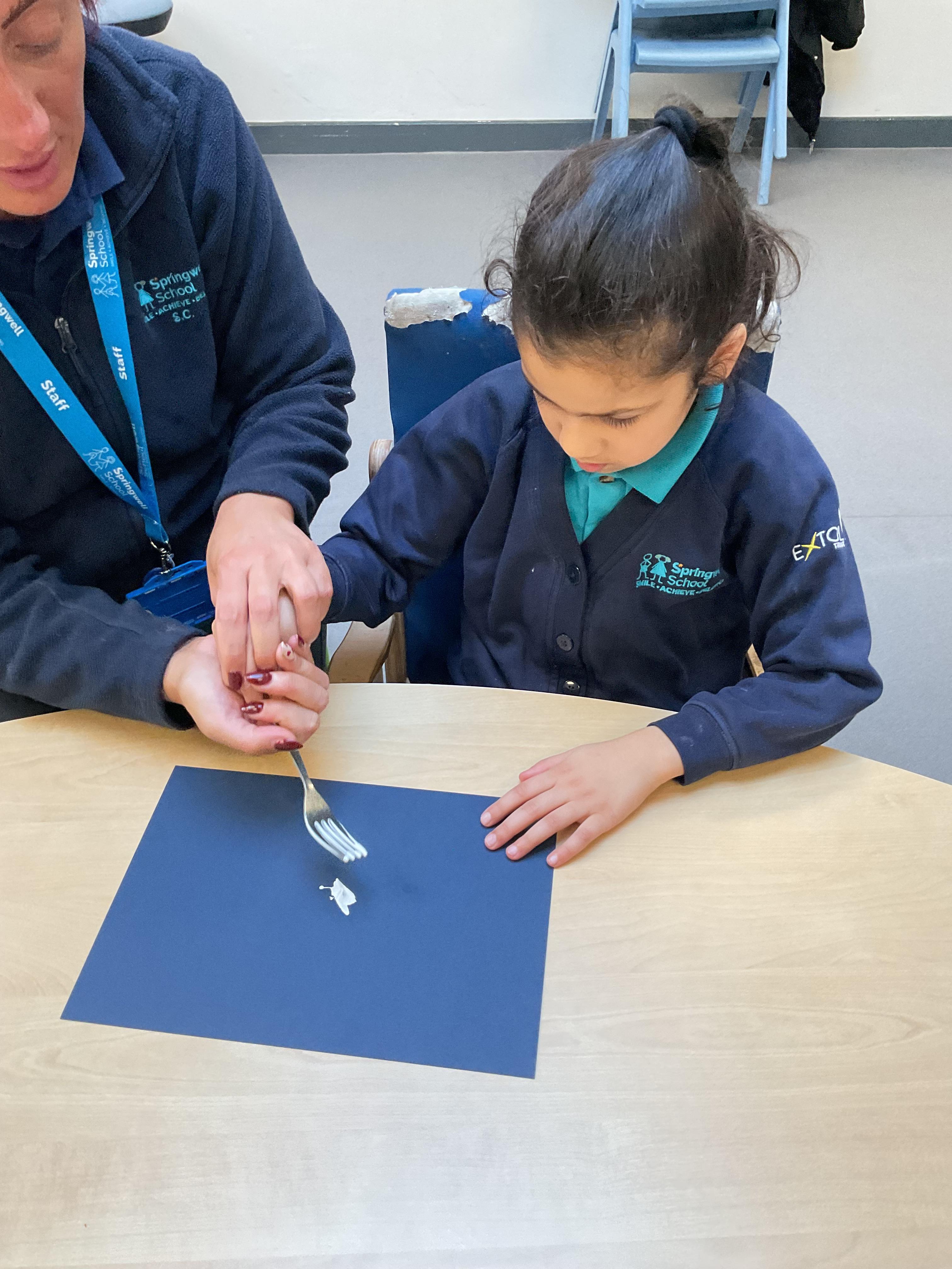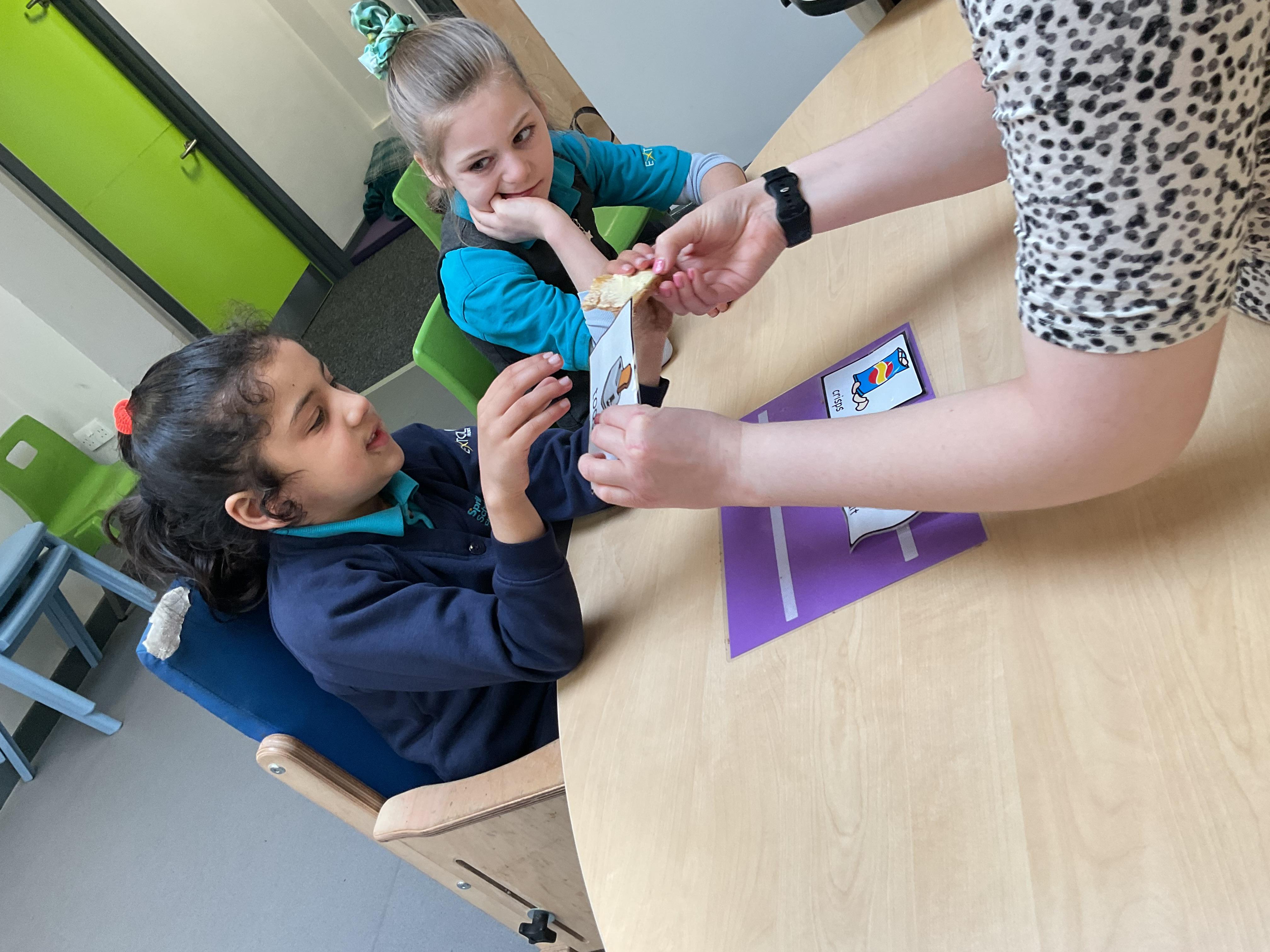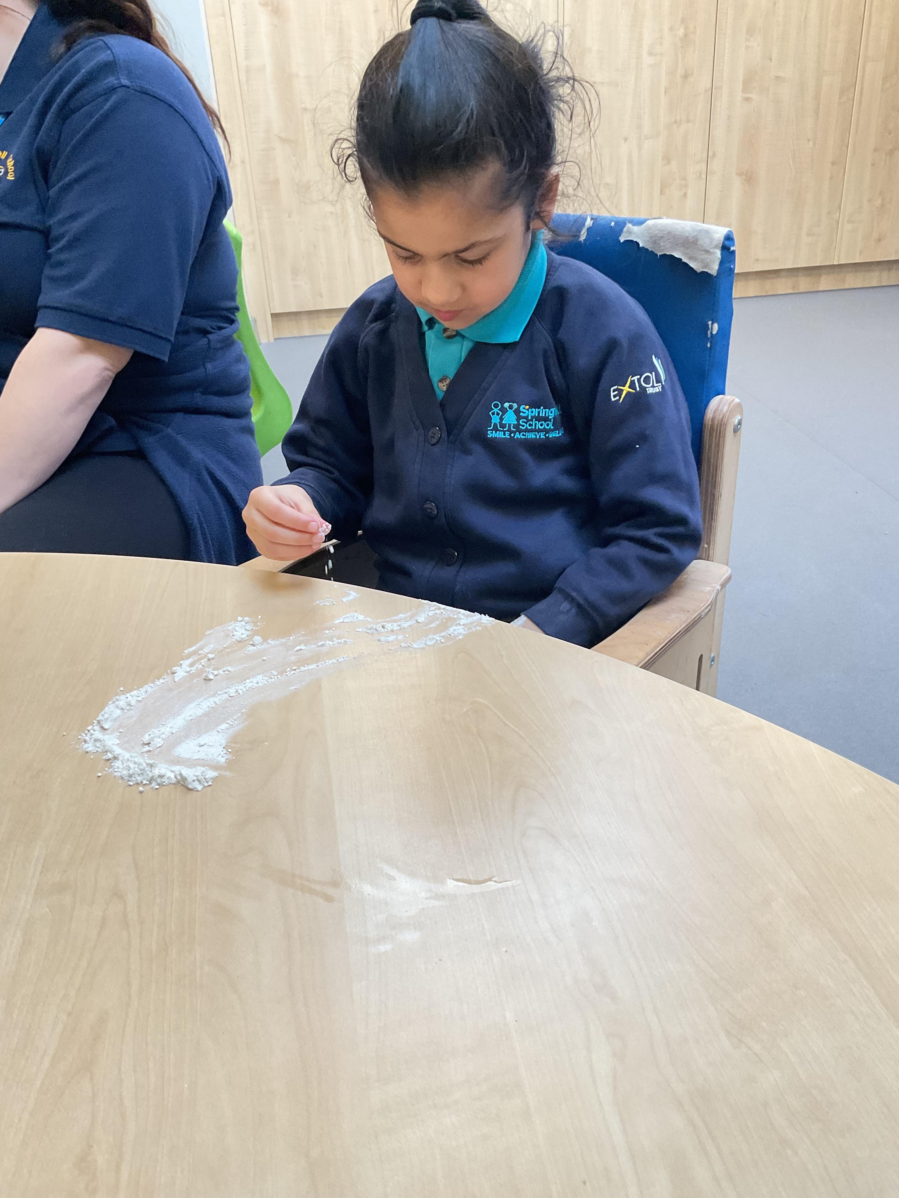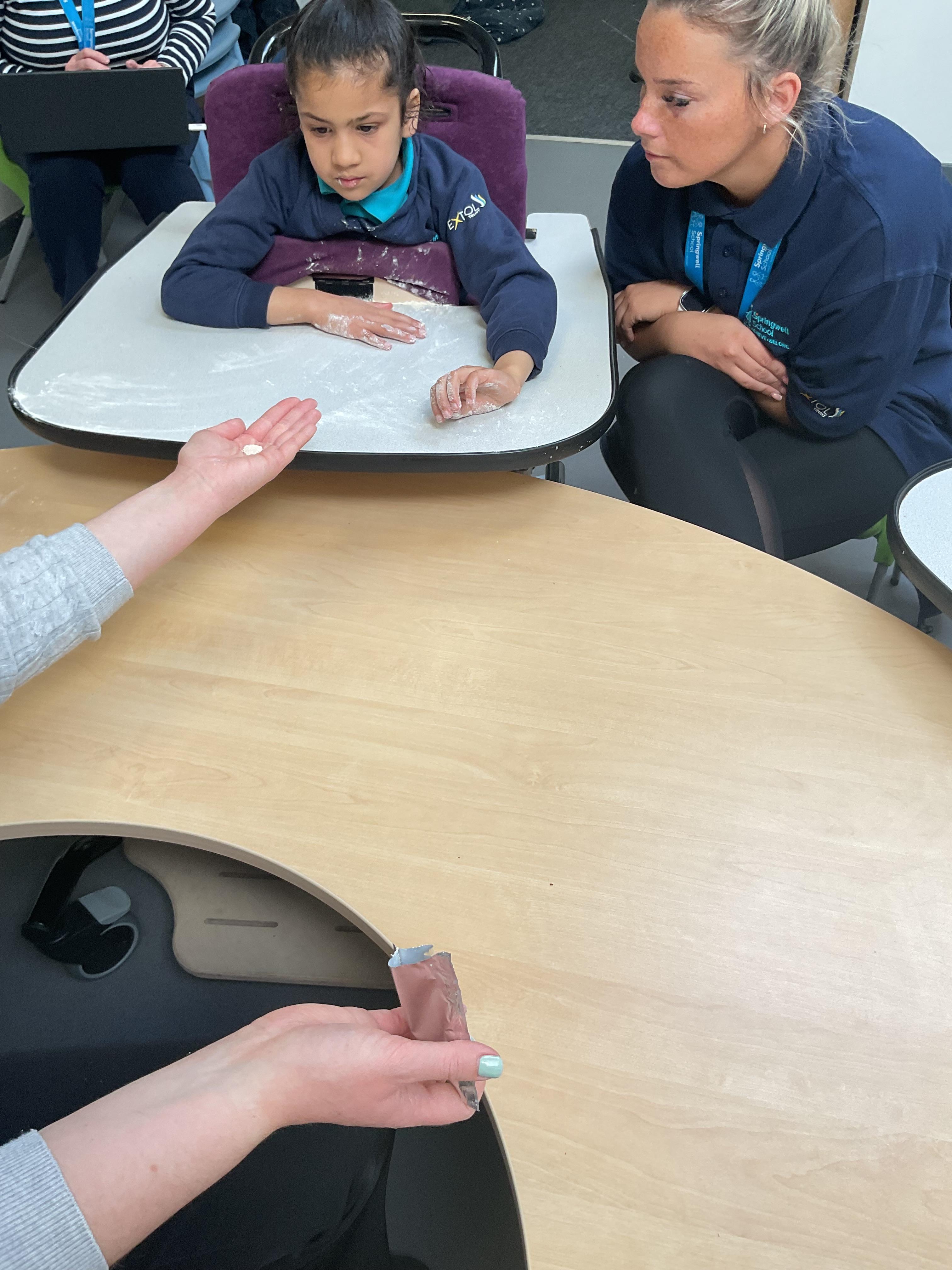 A fantastic week for zebras, we began the week by practising our fine motor skills, placing buttons on the circles of the moon. This was quite tricky but with some help from our adults and the children’s persistence, we all completed the task. Throughout the week, we worked hard using Picture Exchange Communication System (PECS) during various times of the day: breakfast, snack time and even exchanging for our favourite cause and effect toys. Well done to all the zebras! Our favourite part of the week was an attention autism session where we watched dancing skeletons, spinning dancing tops and even dancing chickens. The children were captivated, demonstrating brilliant attention and focus. In literacy, we enjoyed our focused sensory story one last time and explored the props. After the story, we made our own rocky moon bread, getting messy as we mixed the floor. We even got to taste the bread during snack time, it went down a treat.  In maths, we took advantage of the sunshine and participated in some sensory play with maths resources. We had fun getting messy in the mud while searching for different coloured dinosaurs and finding numicon pieces in rice and oats. During swimming, we practised using PECs in the pool, by exchanging for our favourite toys. In PSHRE, we visited ALDI to do our shopping for cooking ingredients, we all enjoyed paying for our own shopping using the self checkouts to scan and pay.